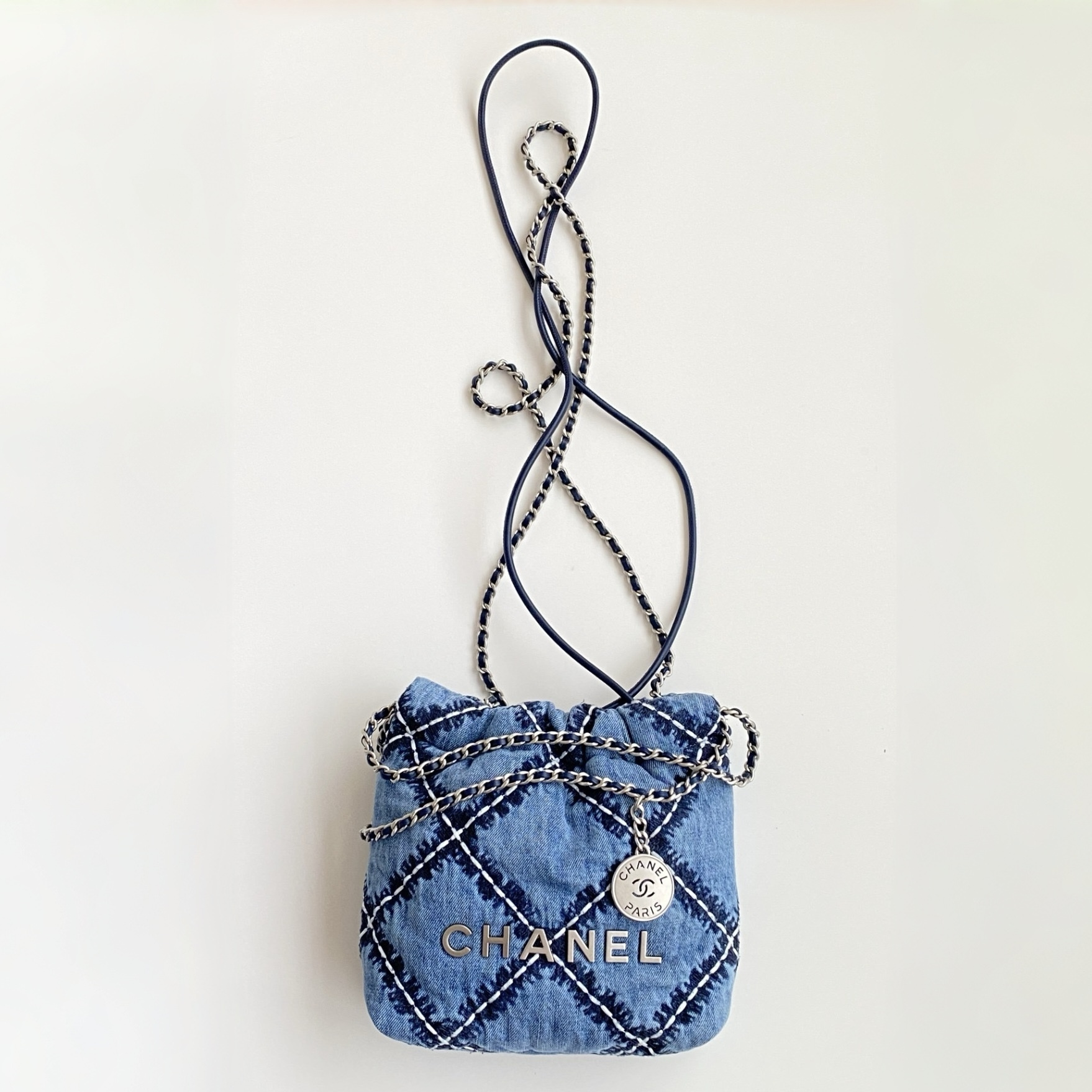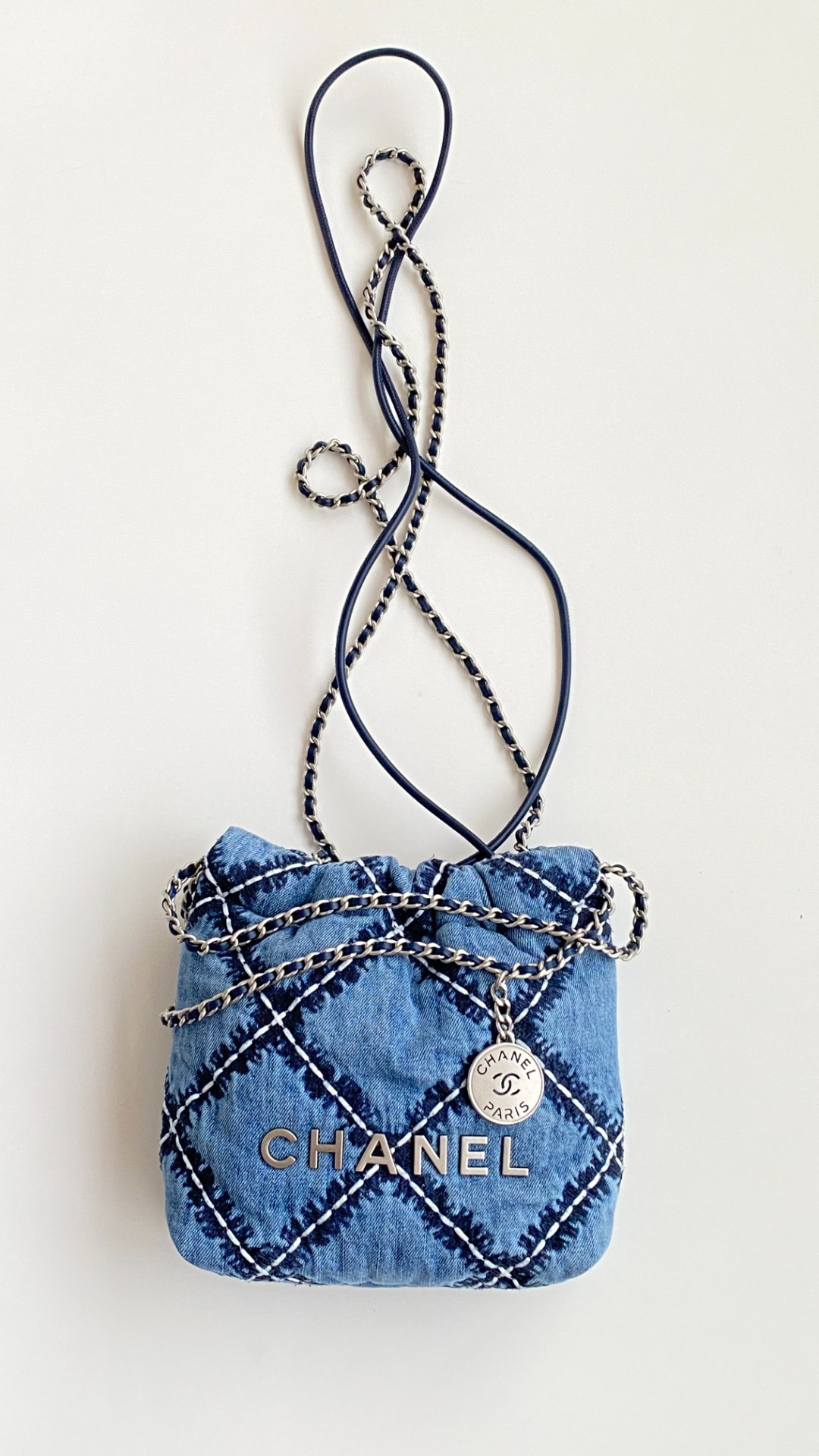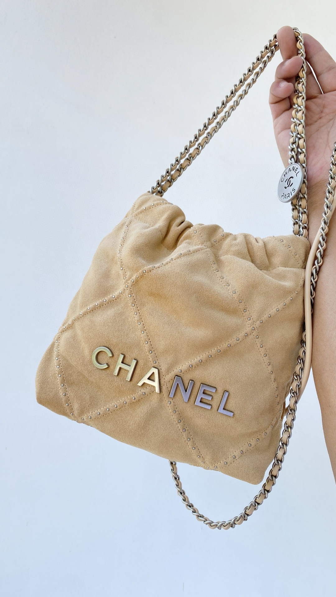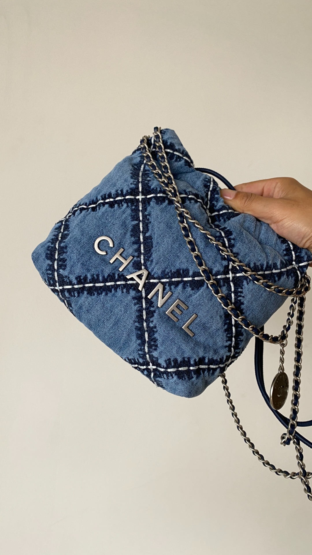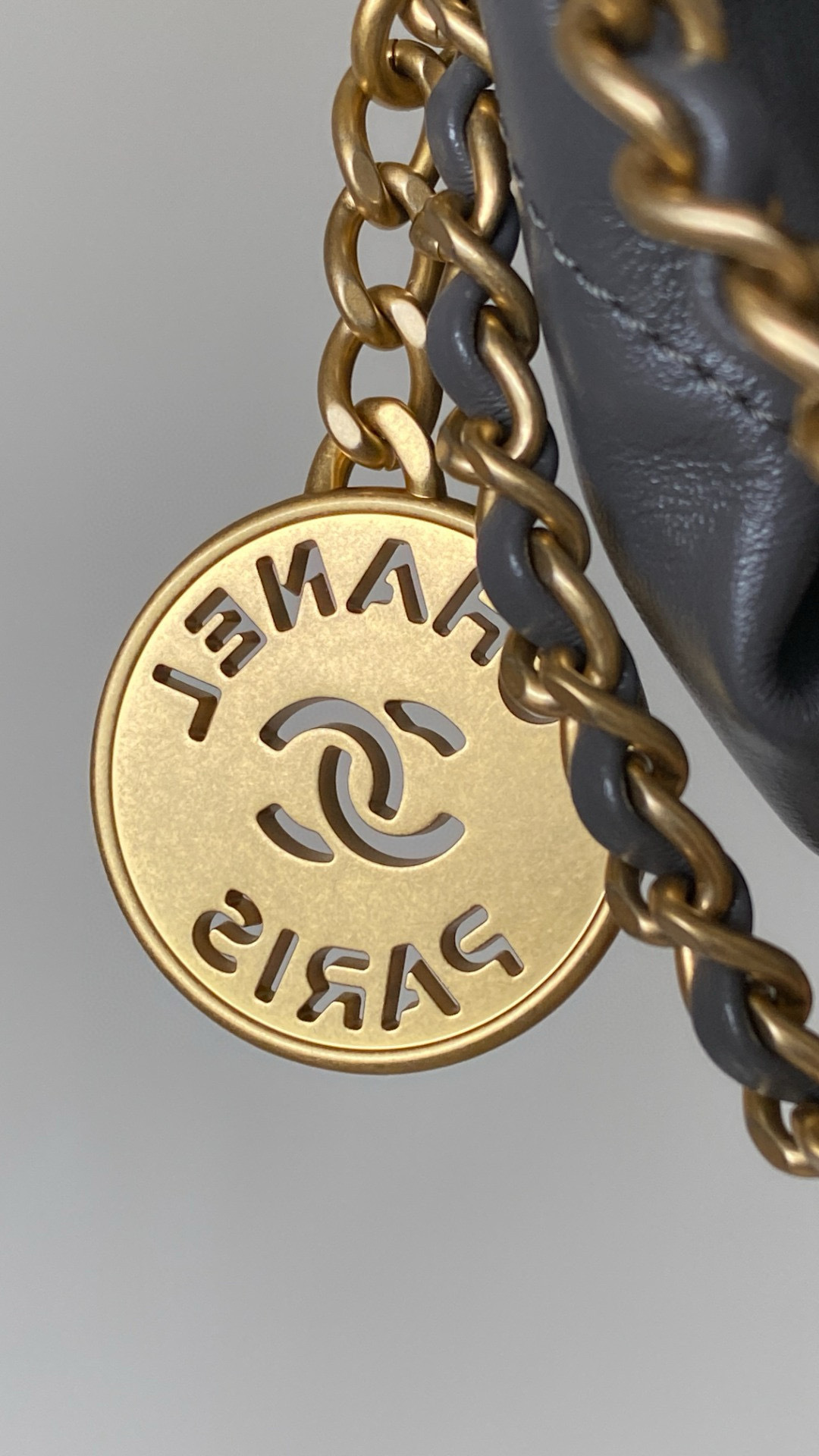 NIGO Chanel 22 Mini Handbag Shiny Calfskin Gold-tone Metal #nigo319128