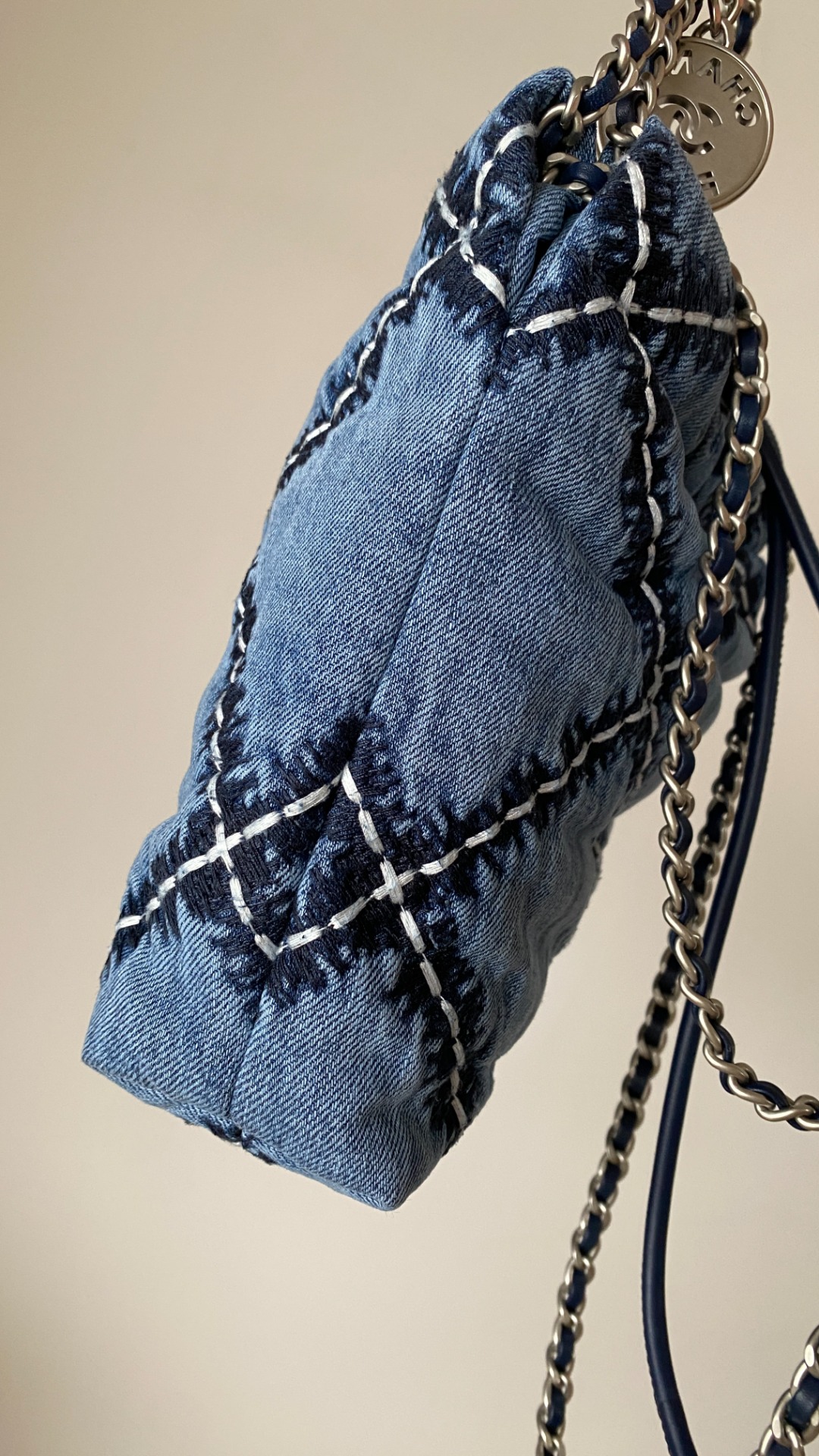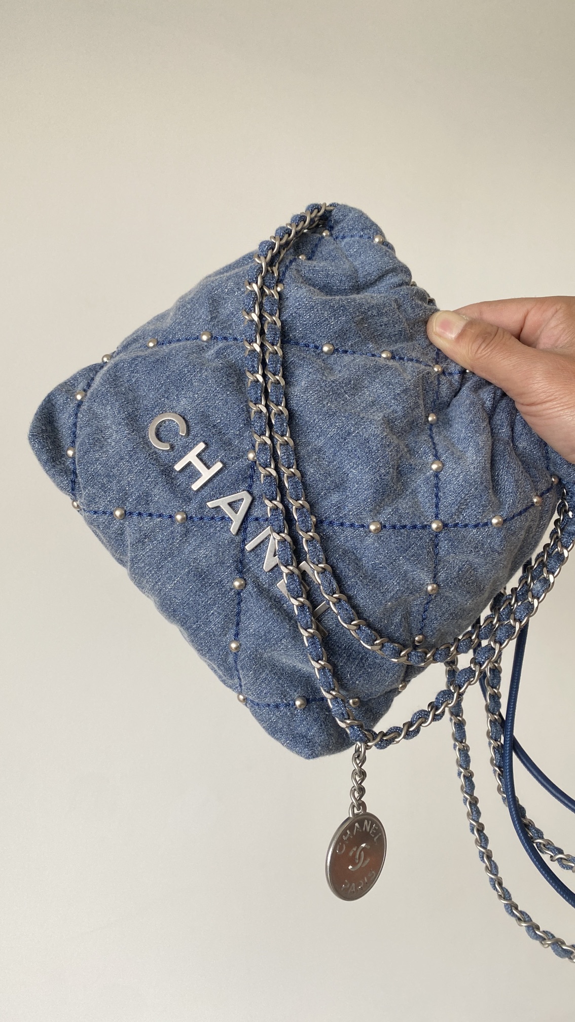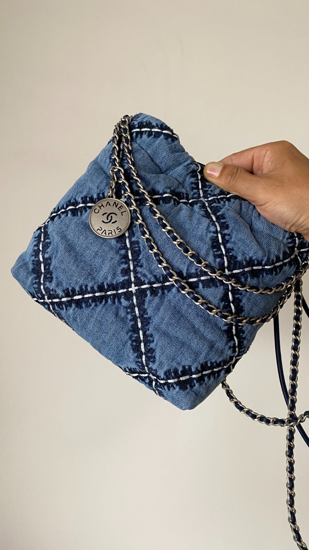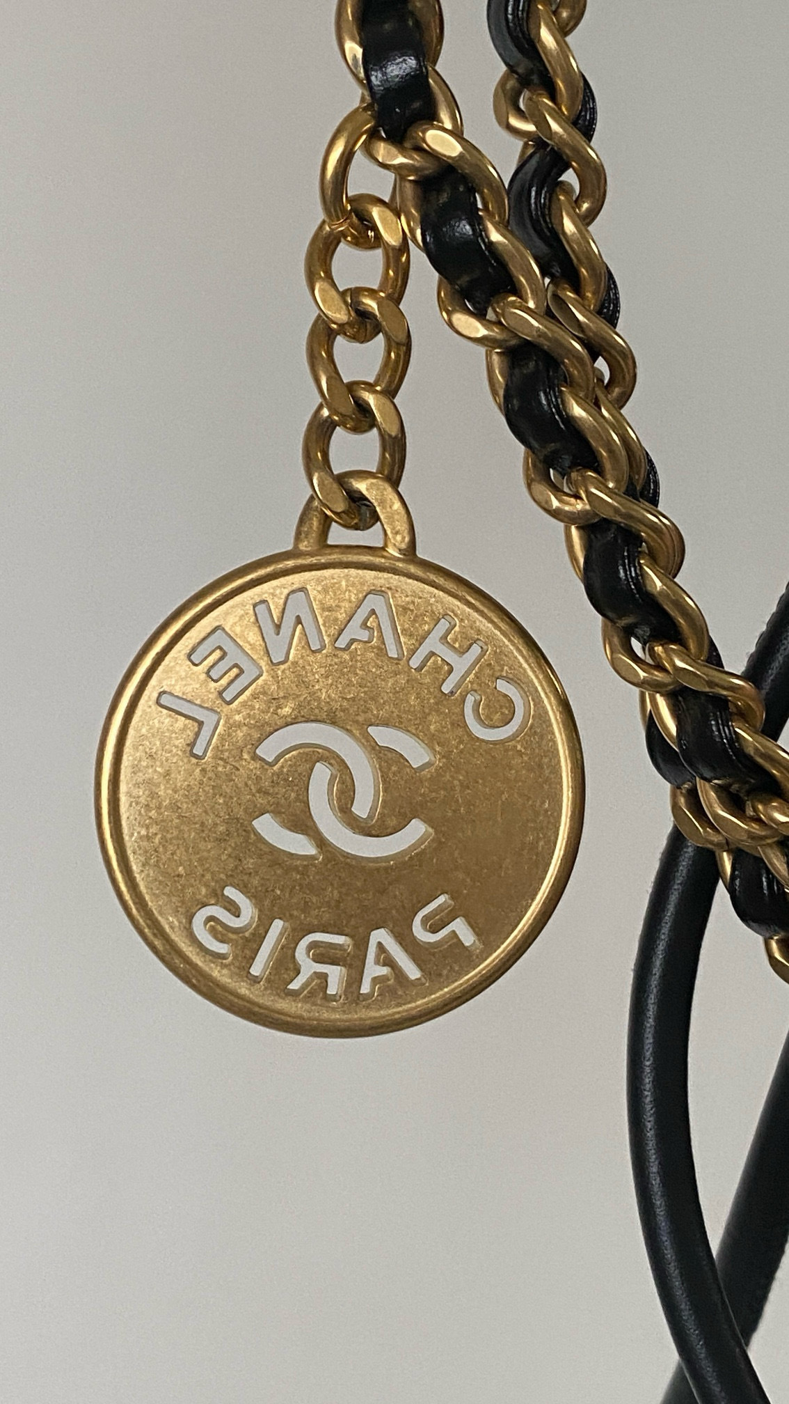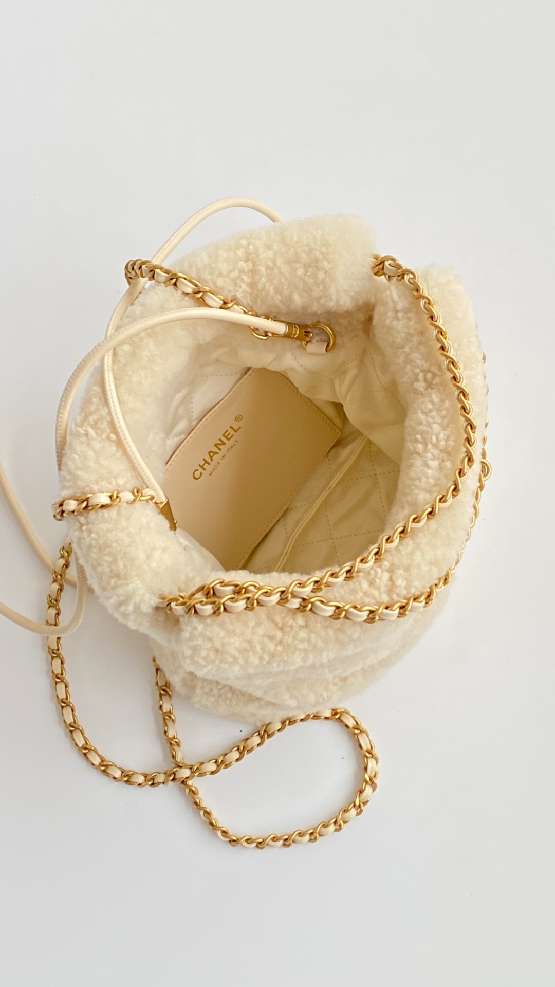 NIGO Chanel 22 Mini Handbag Shiny Calfskin Gold-tone Metal #nigo319128