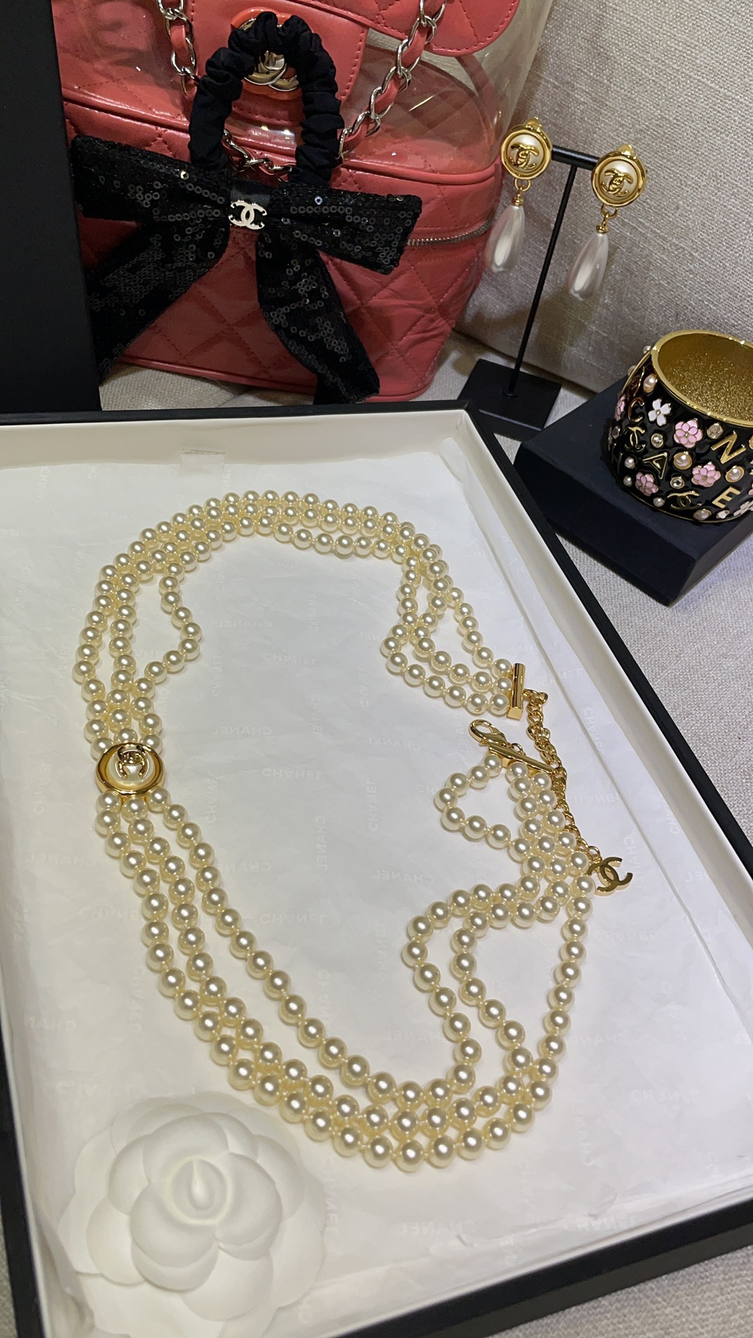 NIGO Chanel 24A Gold Button Double C Pearl Triple Layer Waist Chain #nigo302519
