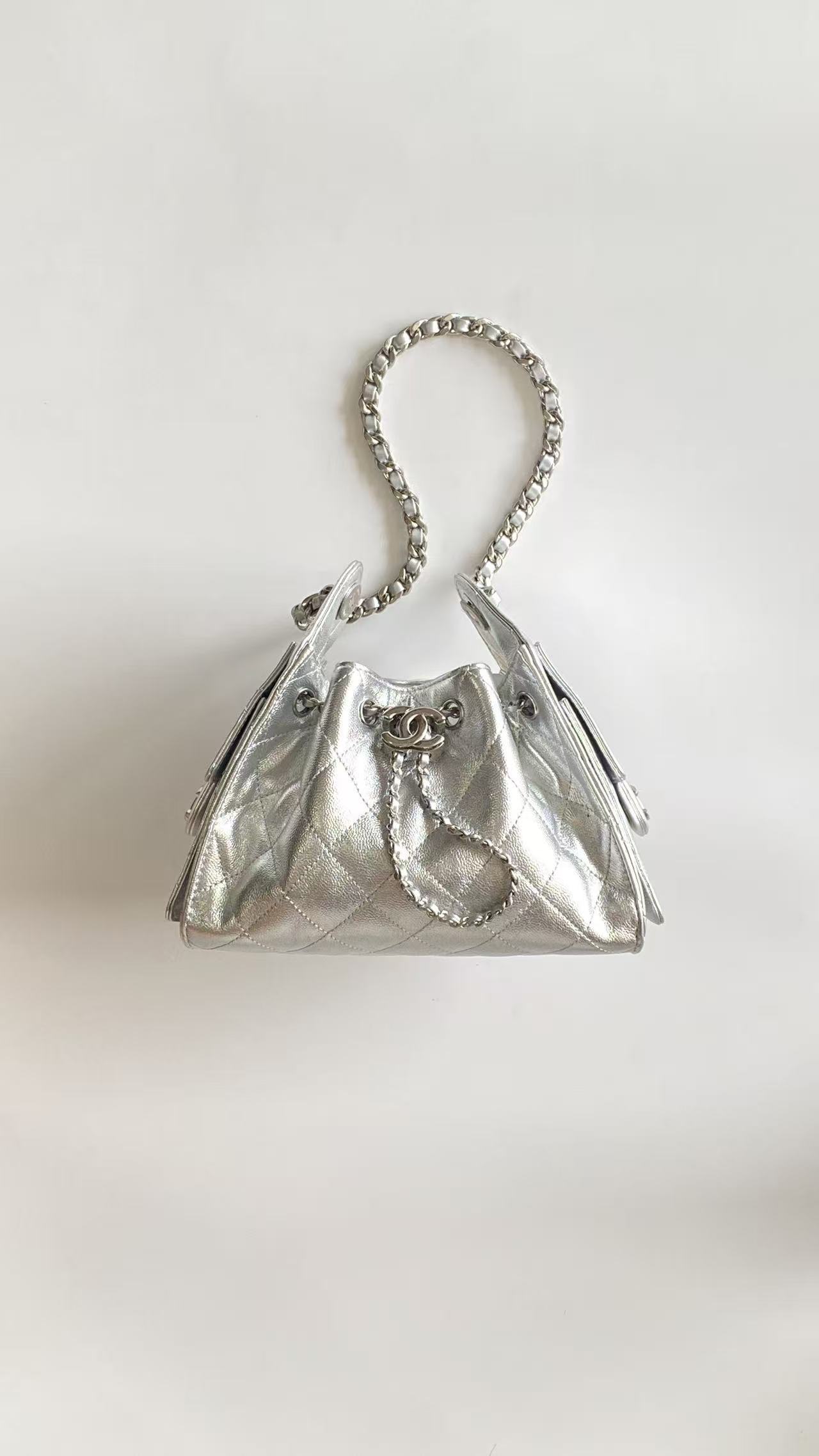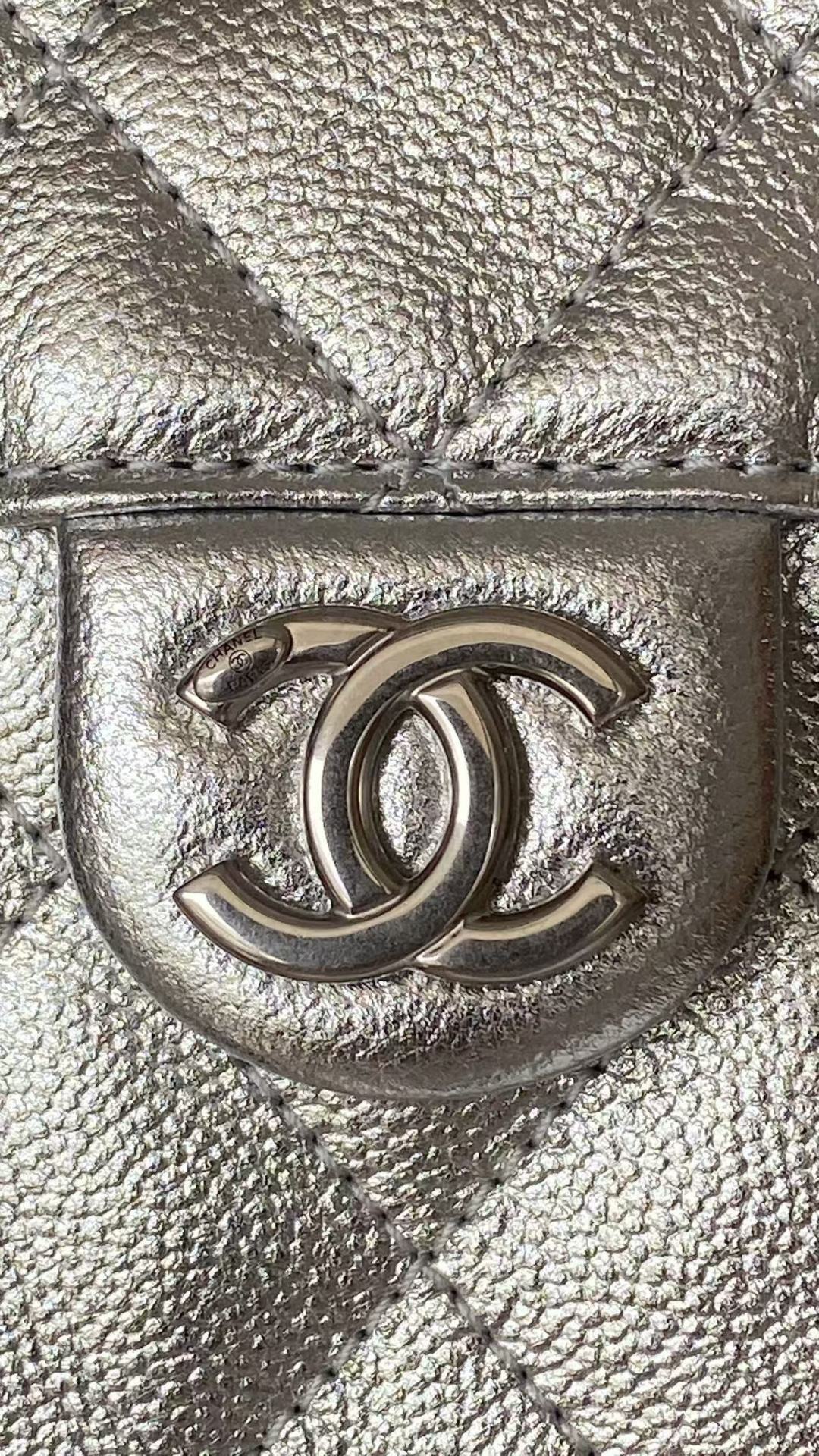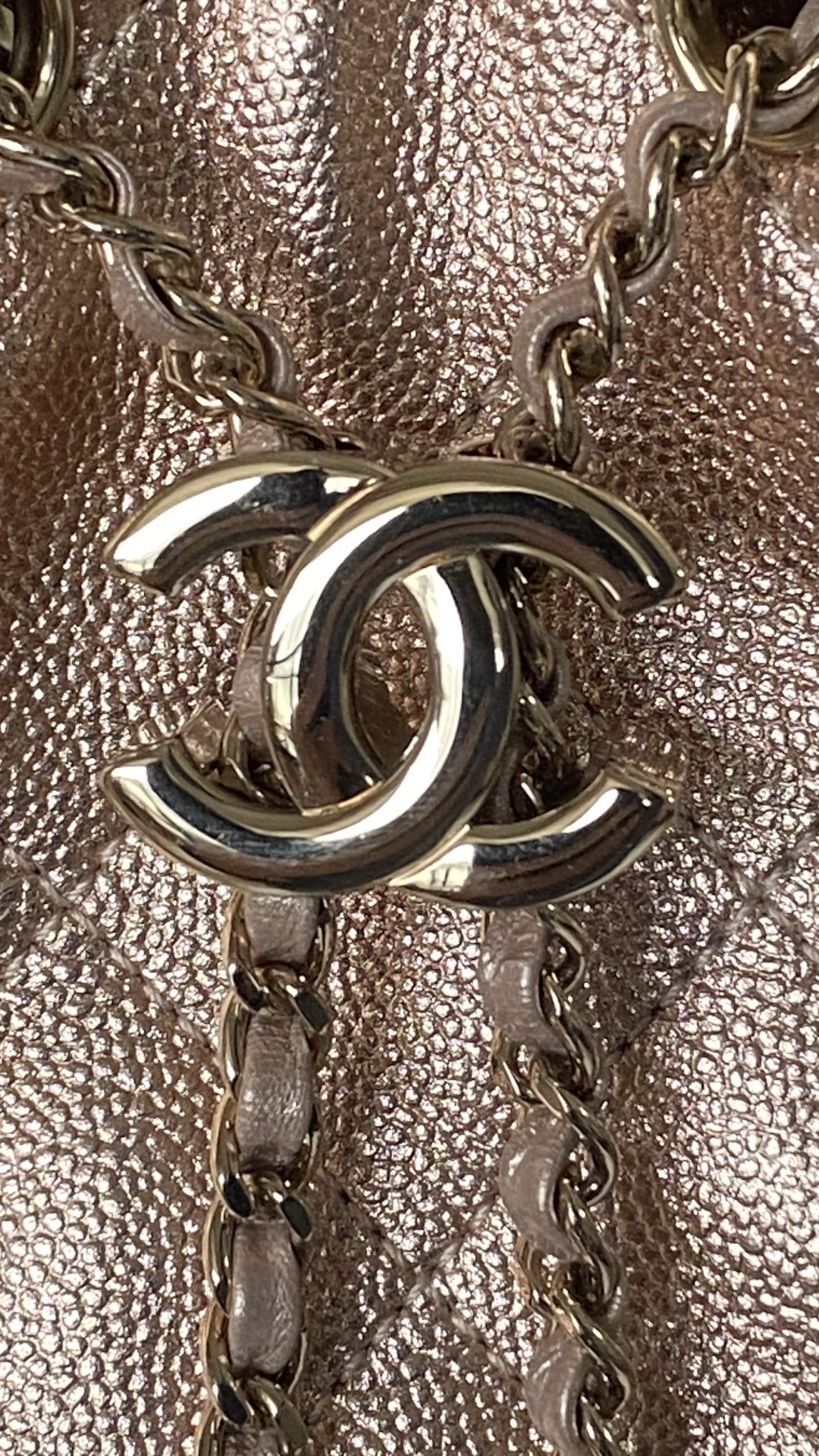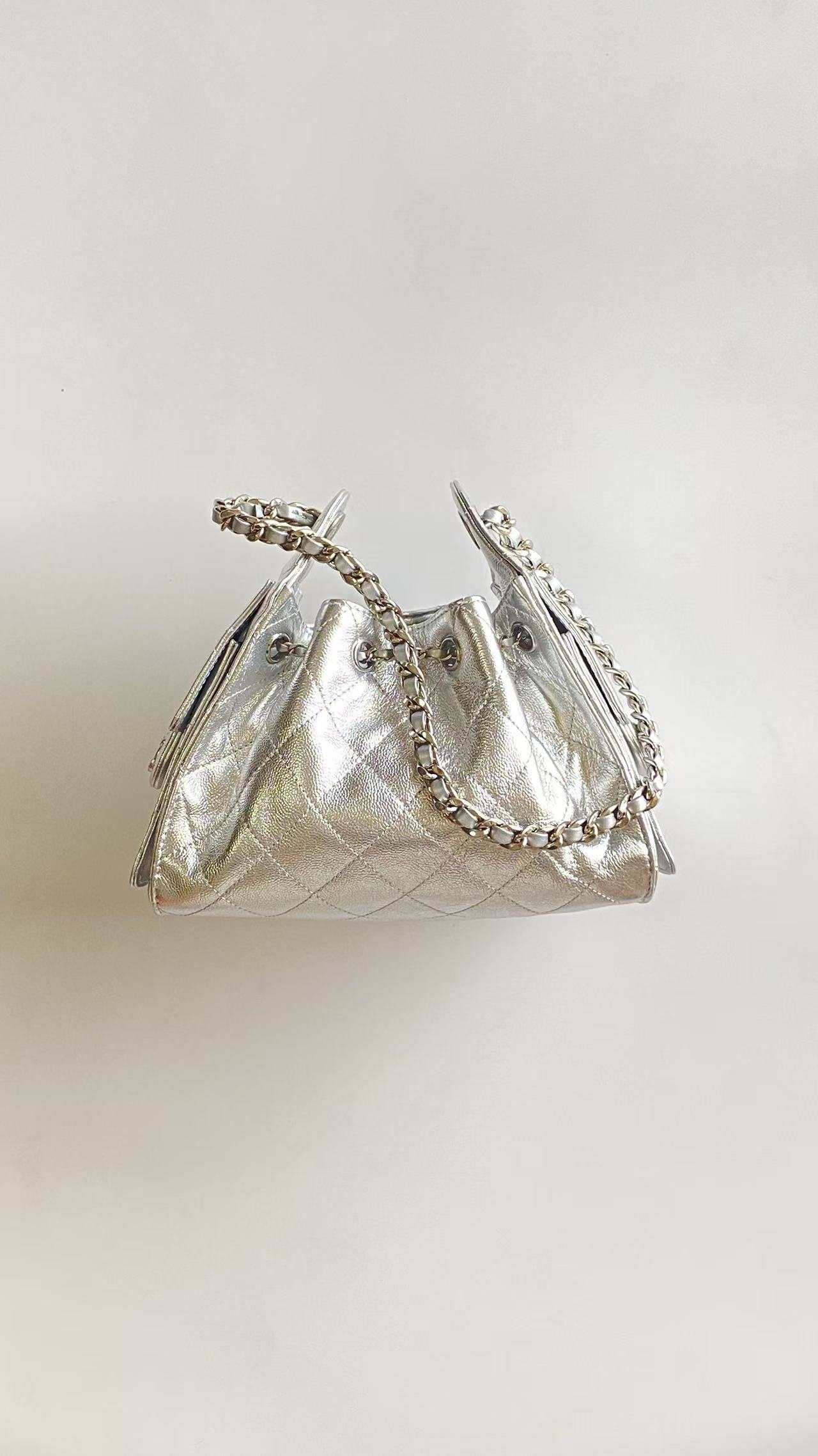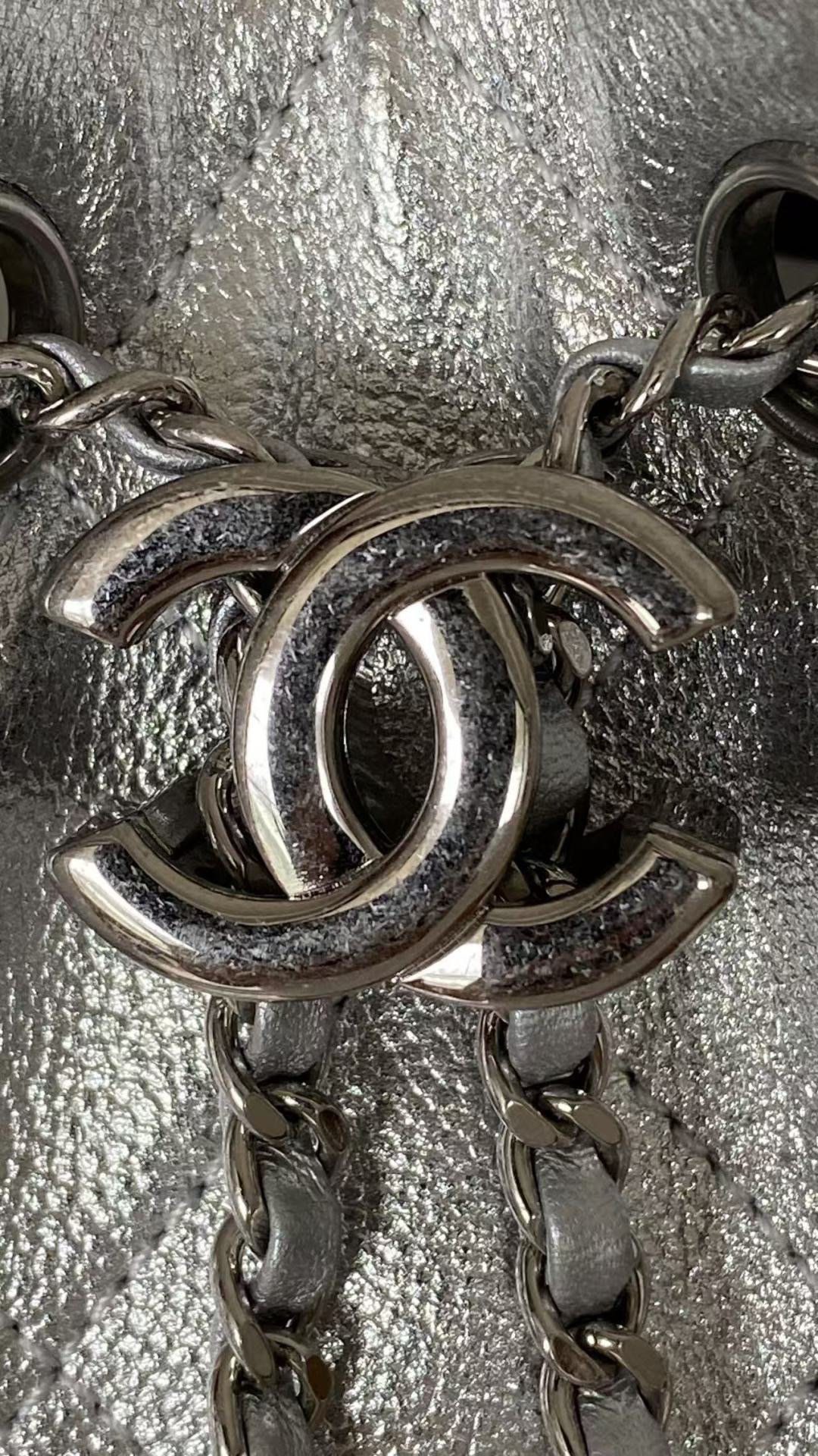 This Chanel handbag showcases the brand's exceptional craftsmanship and attention to detail. Crafted from premium calfskin, metallic, this piece combines timeless luxury with modern style.