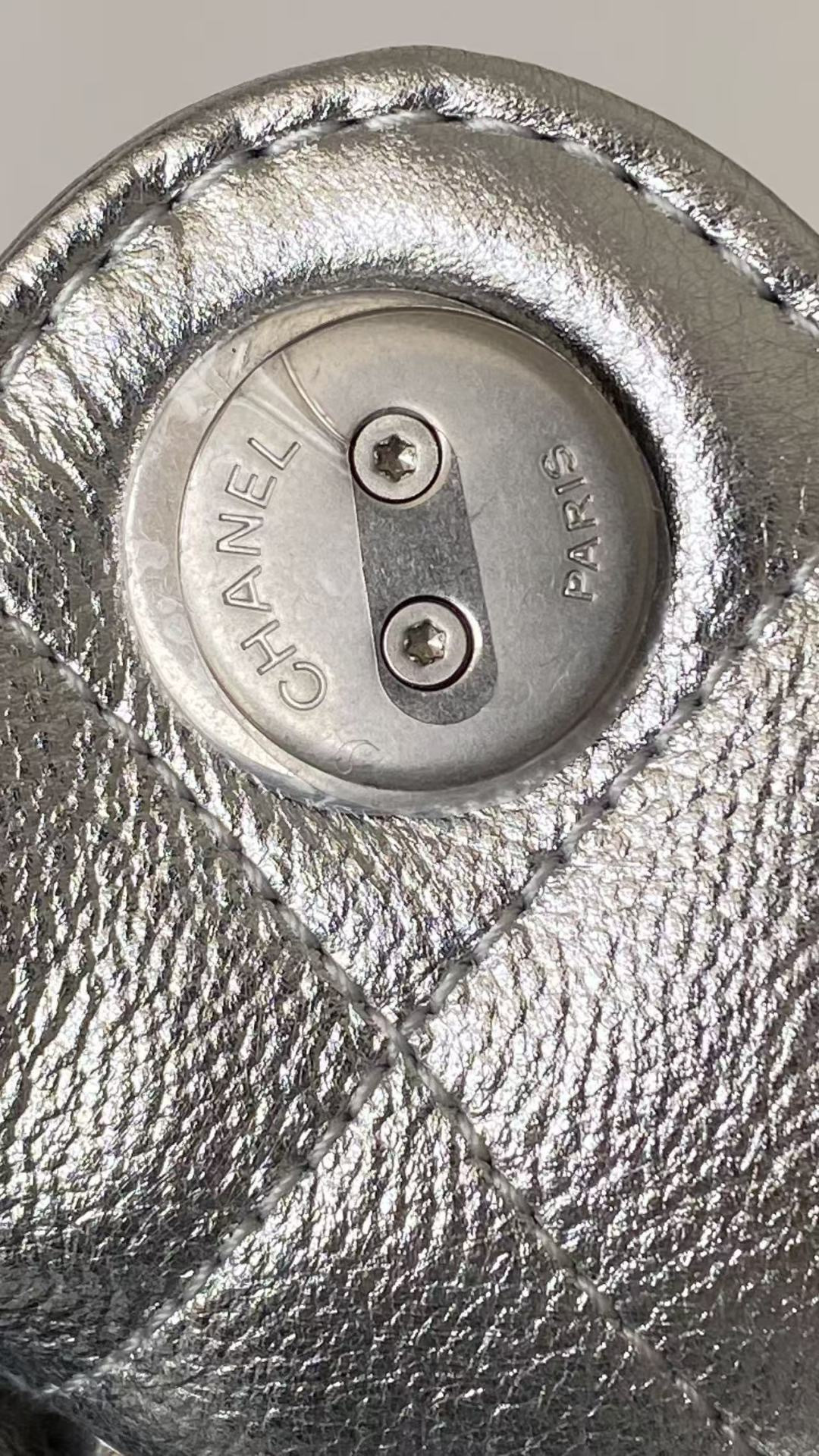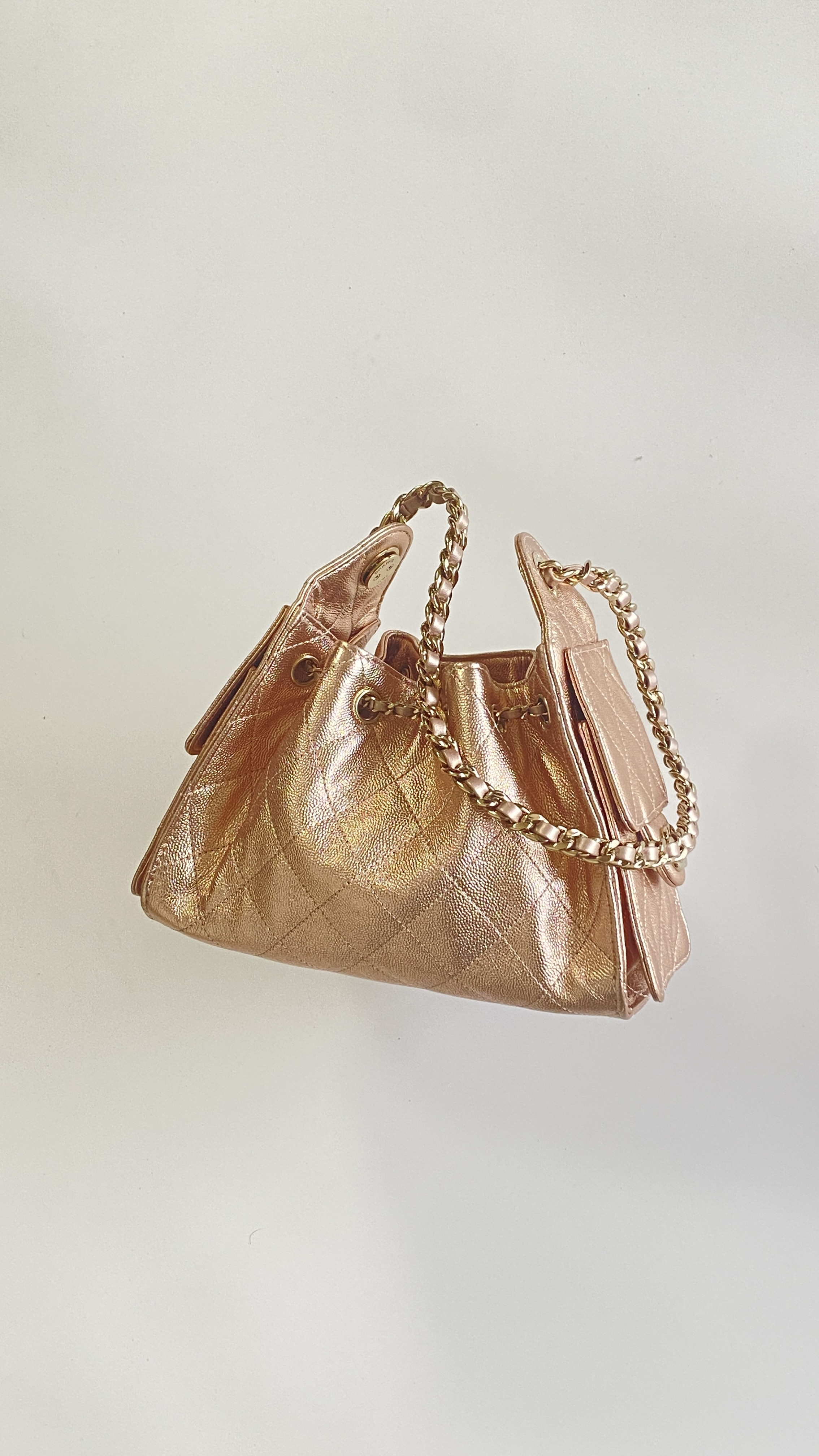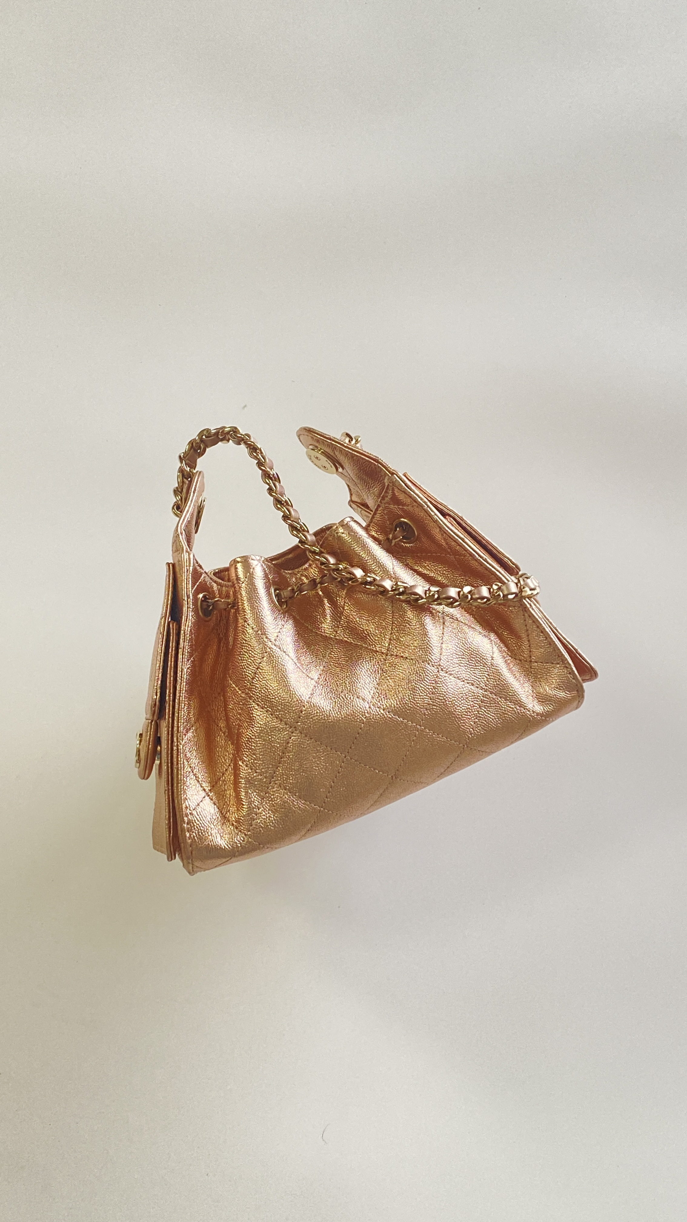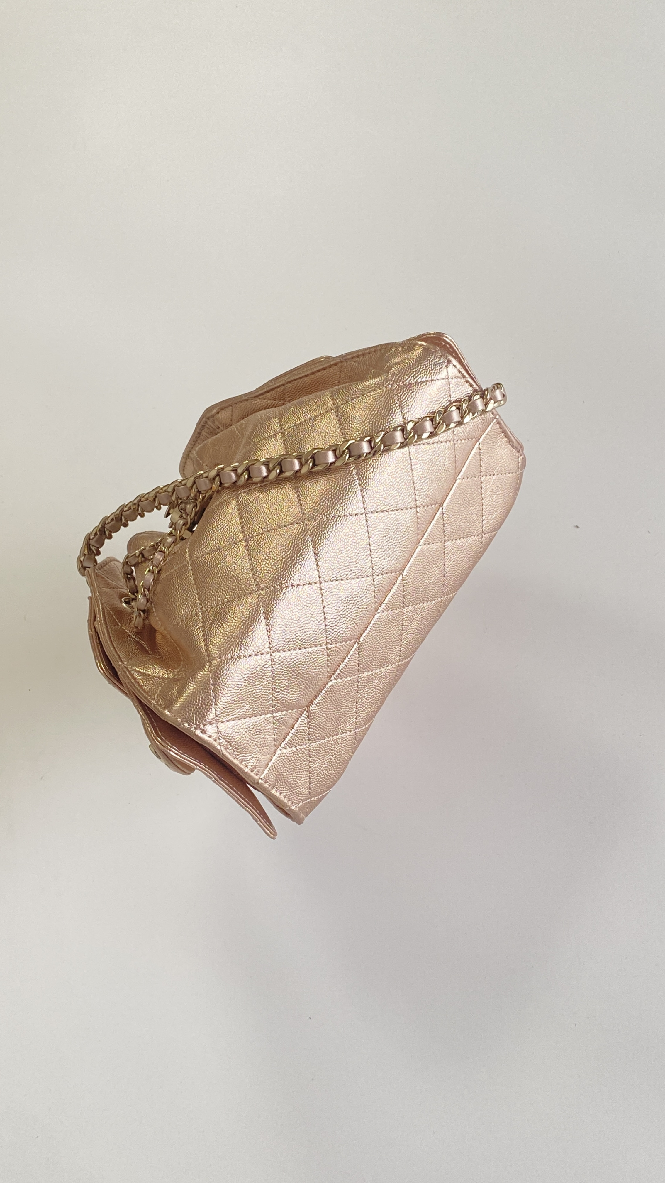 This Chanel handbag showcases the brand's exceptional craftsmanship and attention to detail. Crafted from premium calfskin, metallic, this piece combines timeless luxury with modern style.