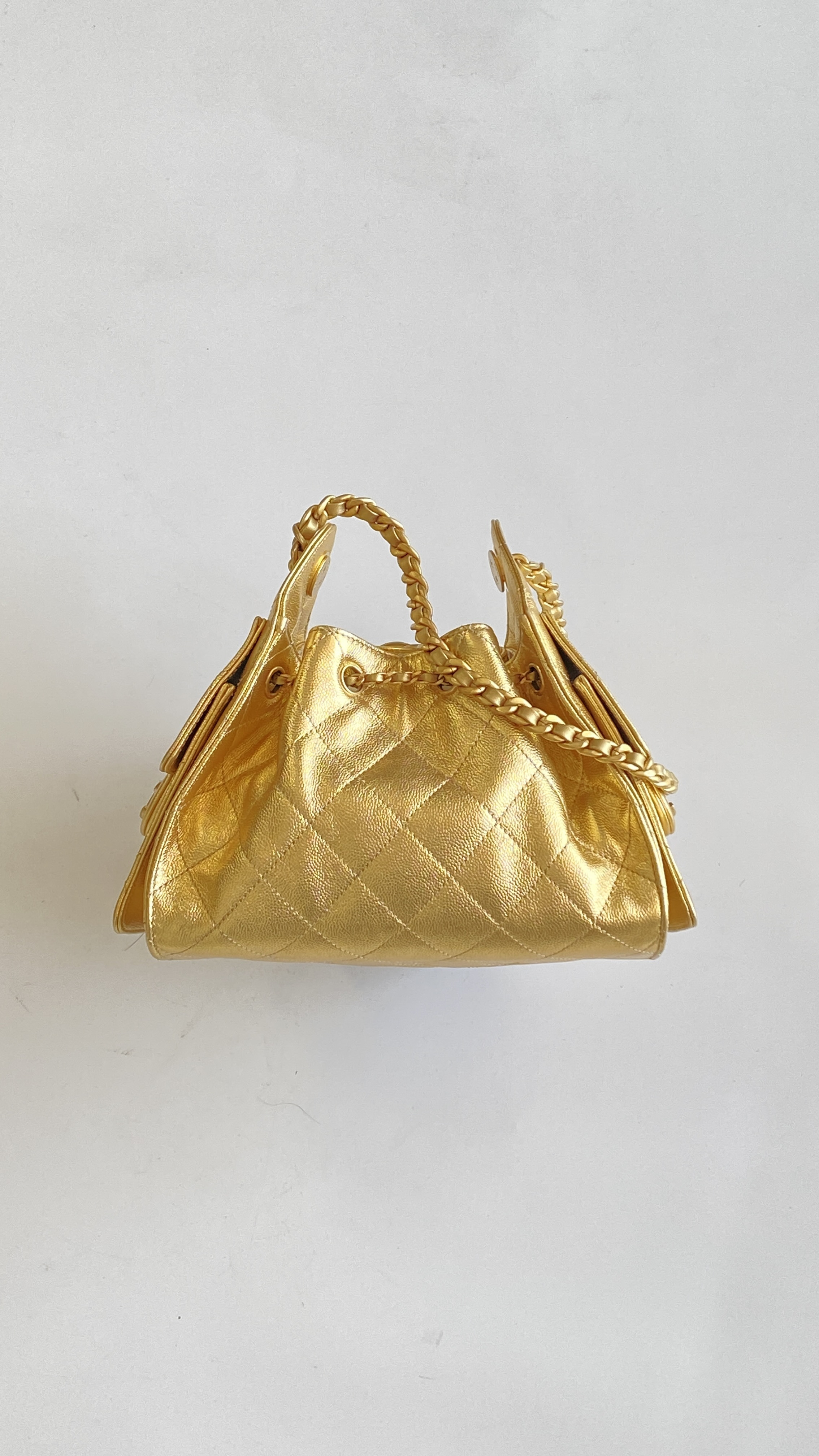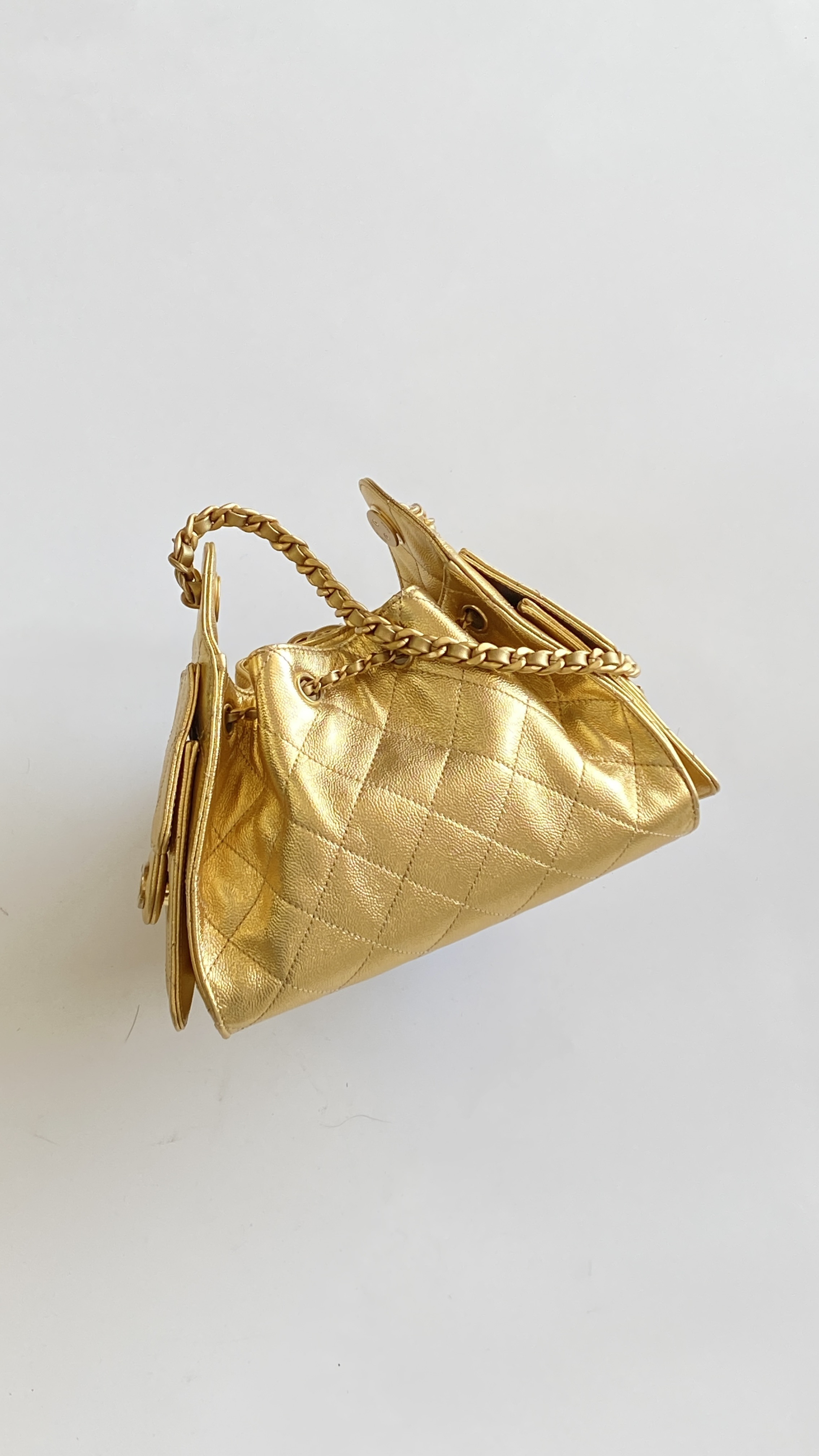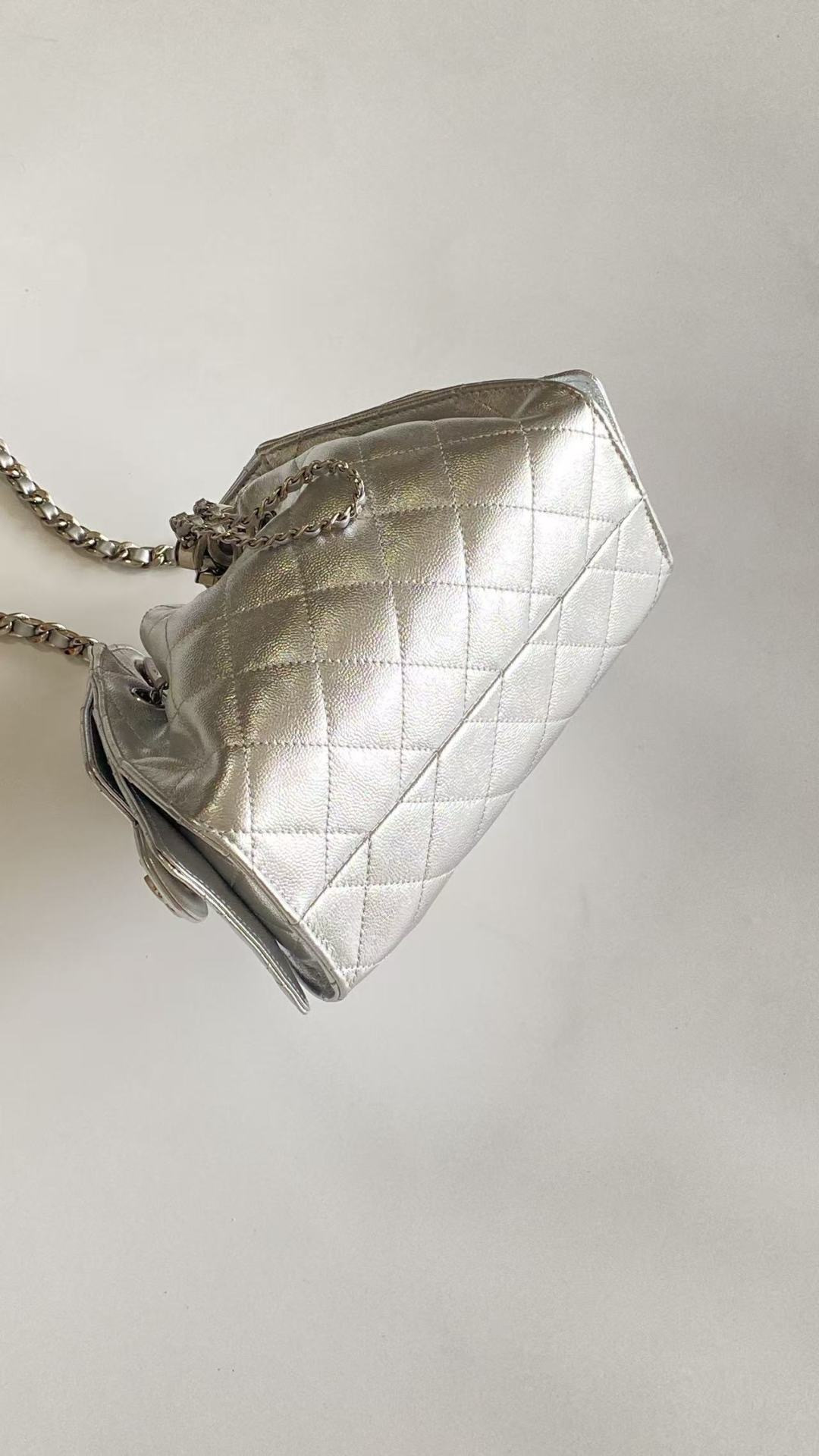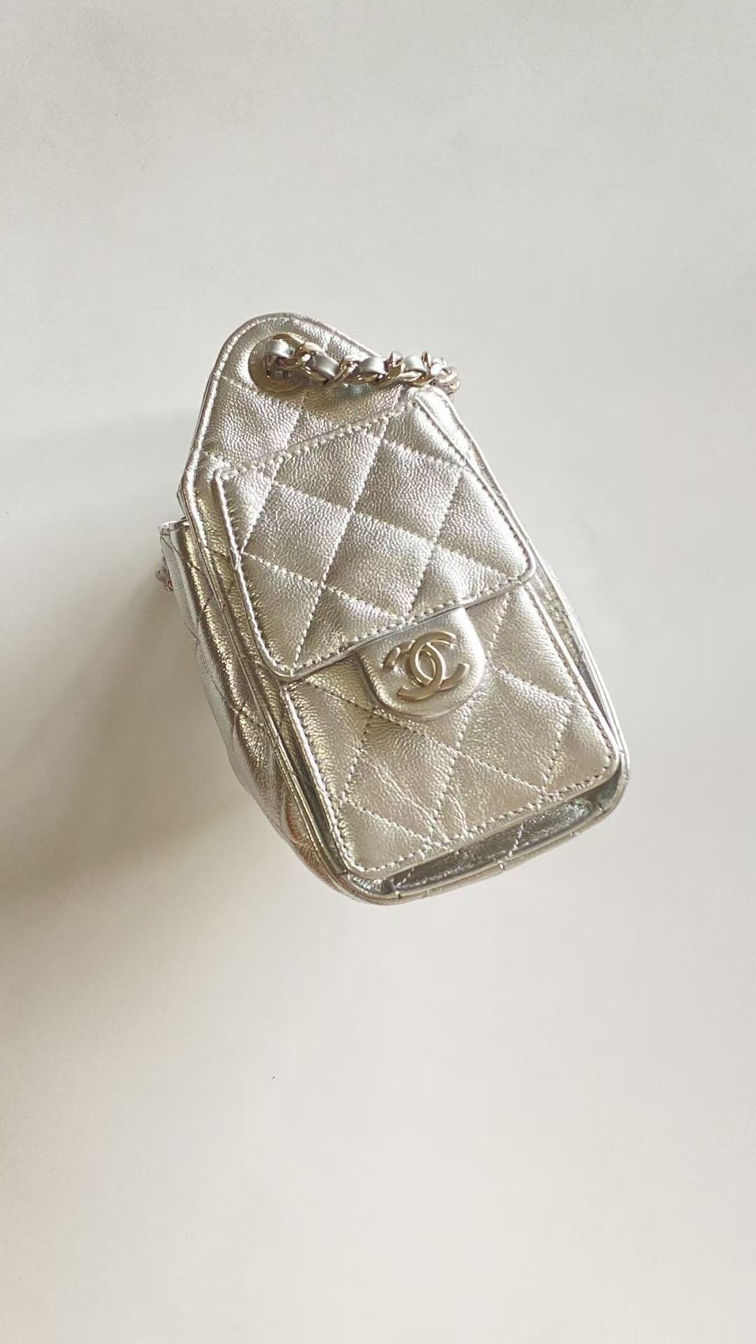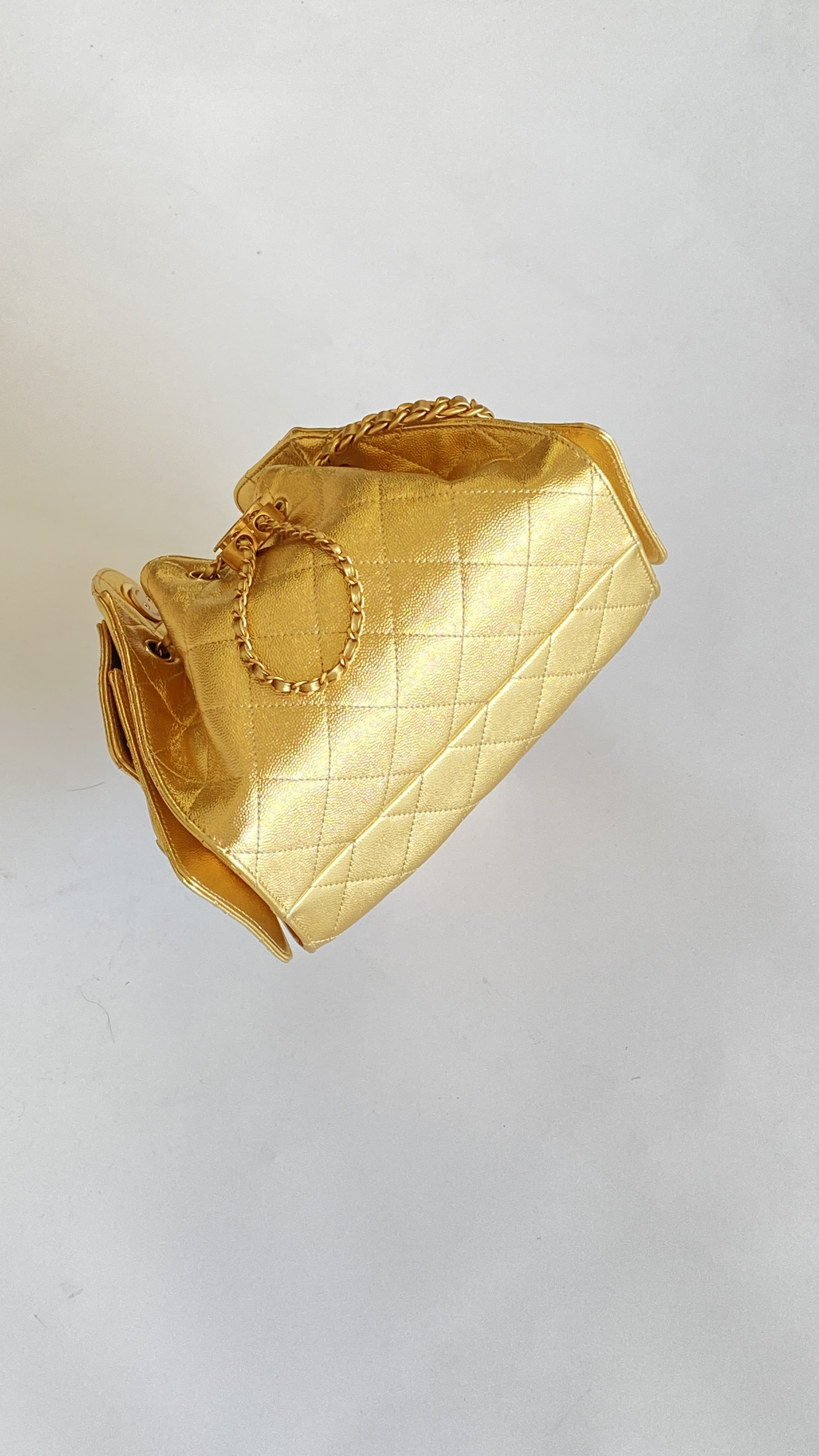 This Chanel handbag showcases the brand's exceptional craftsmanship and attention to detail. Crafted from premium calfskin, metallic, this piece combines timeless luxury with modern style.