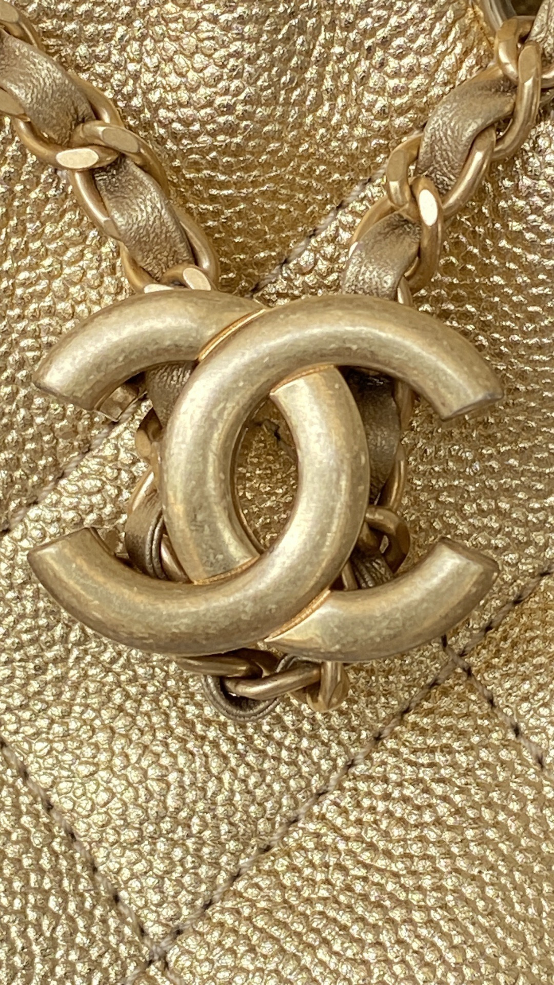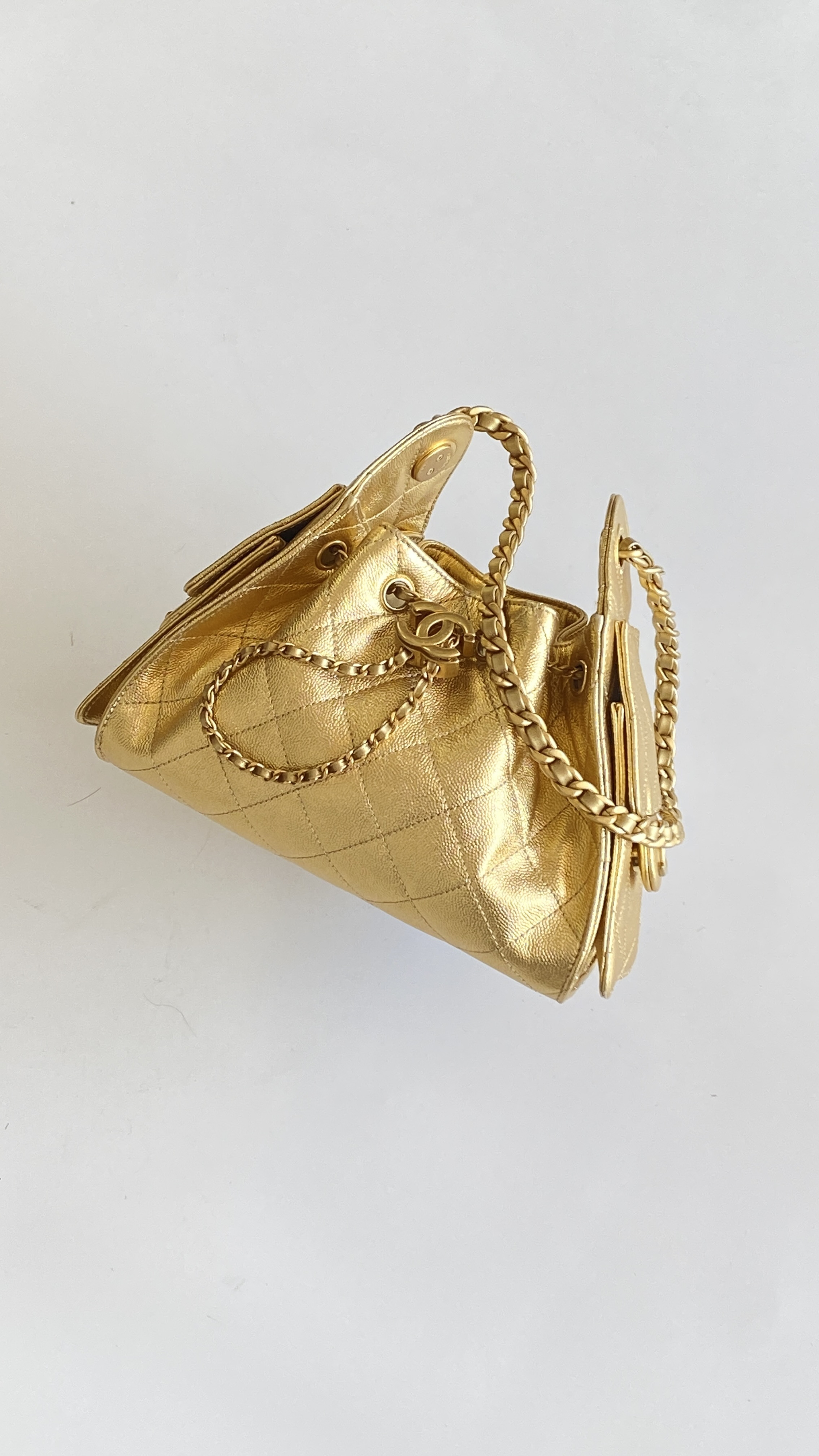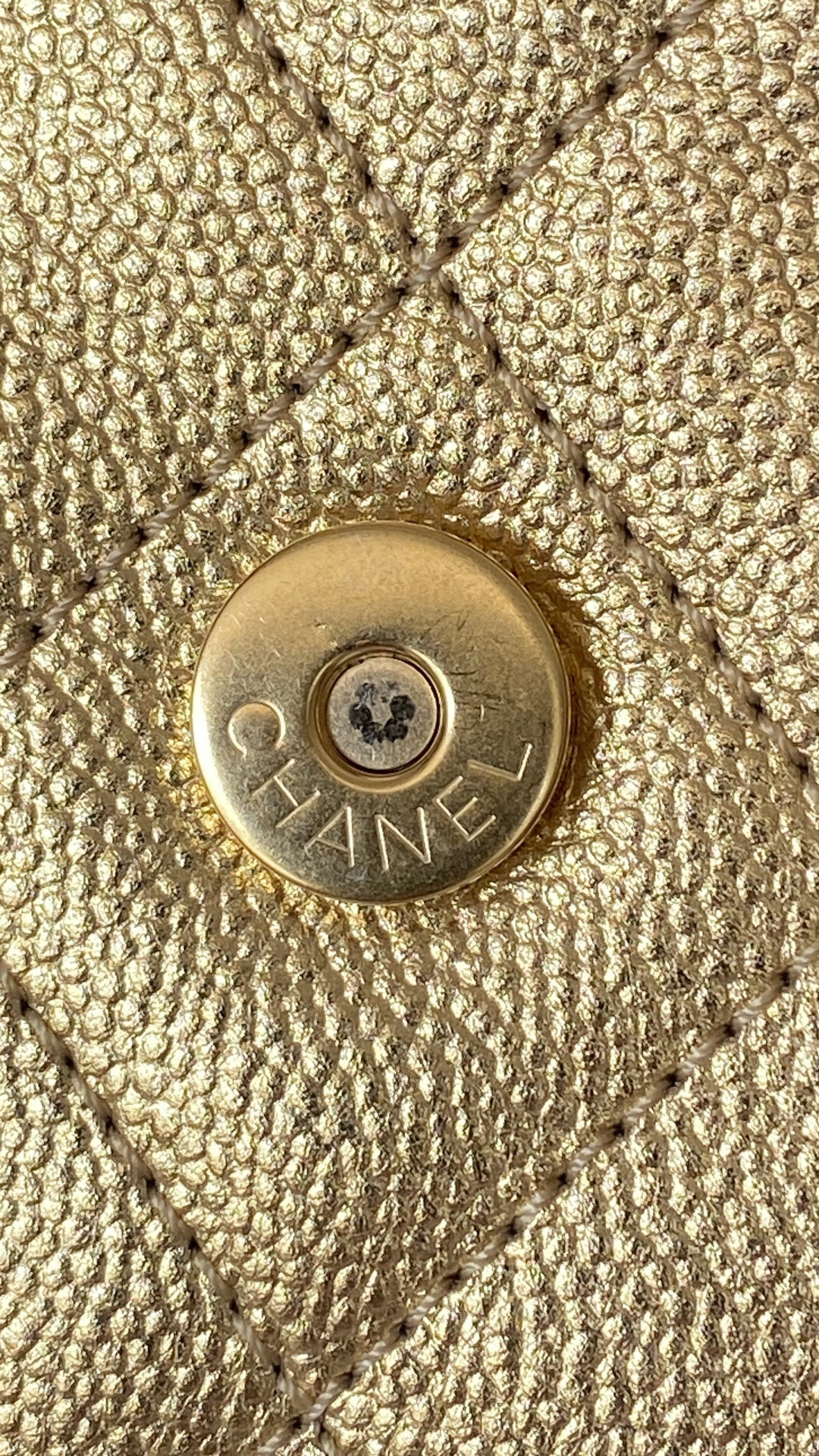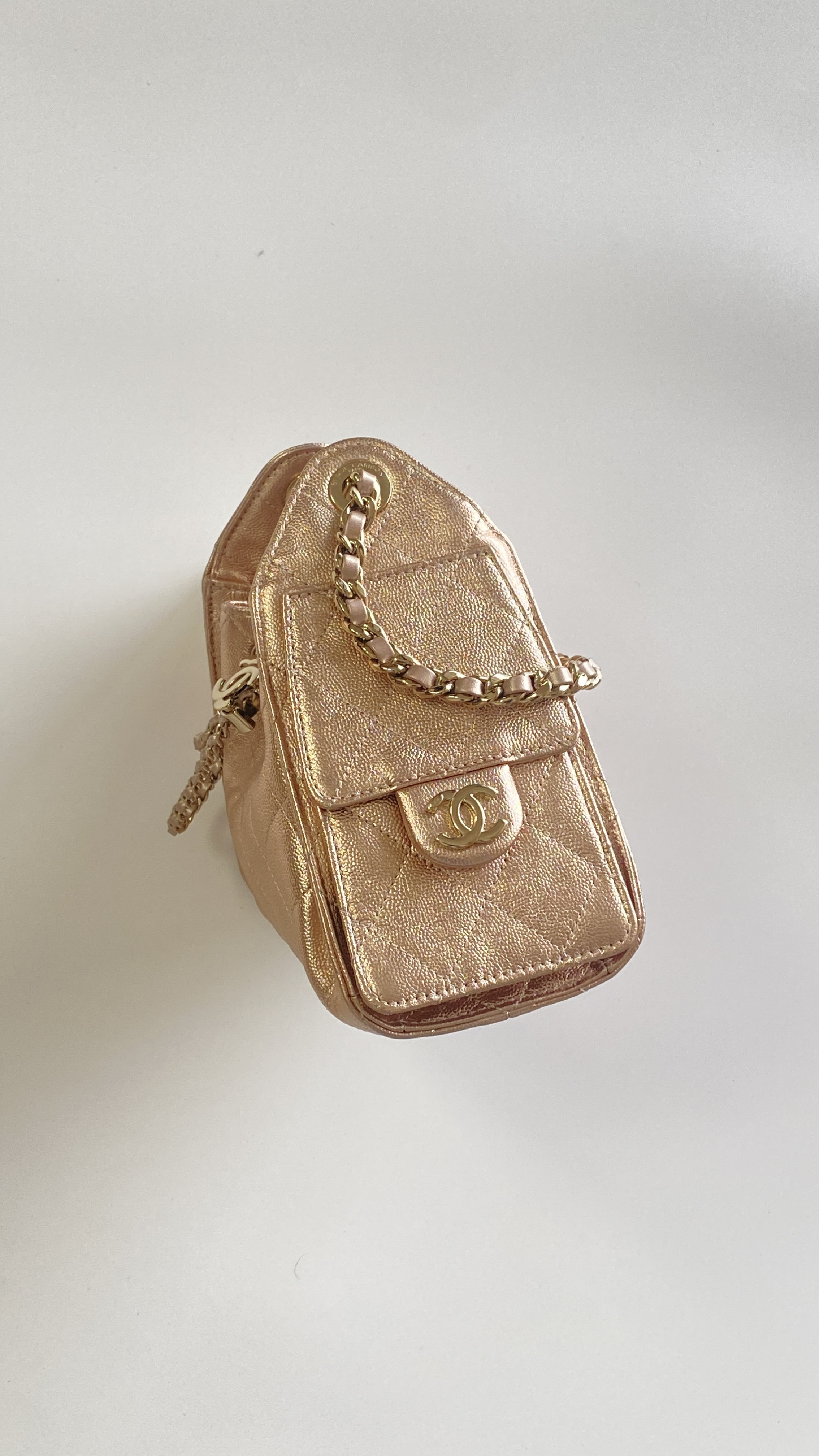 This Chanel handbag showcases the brand's exceptional craftsmanship and attention to detail. Crafted from premium calfskin, metallic, this piece combines timeless luxury with modern style.