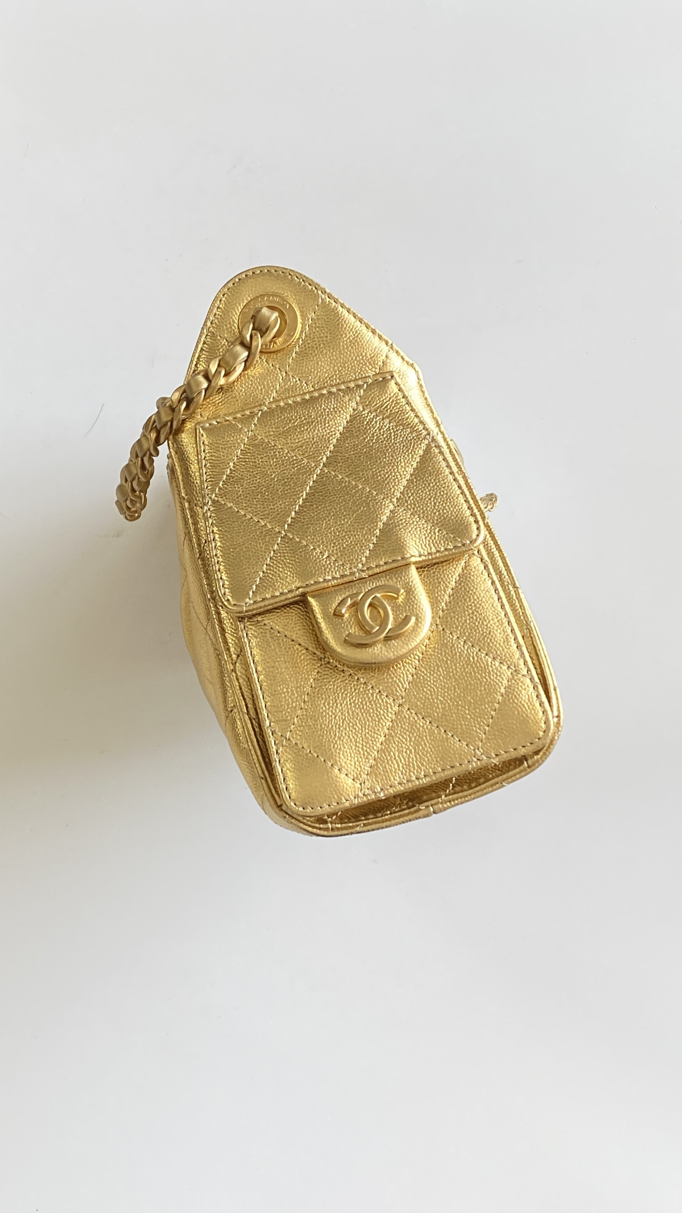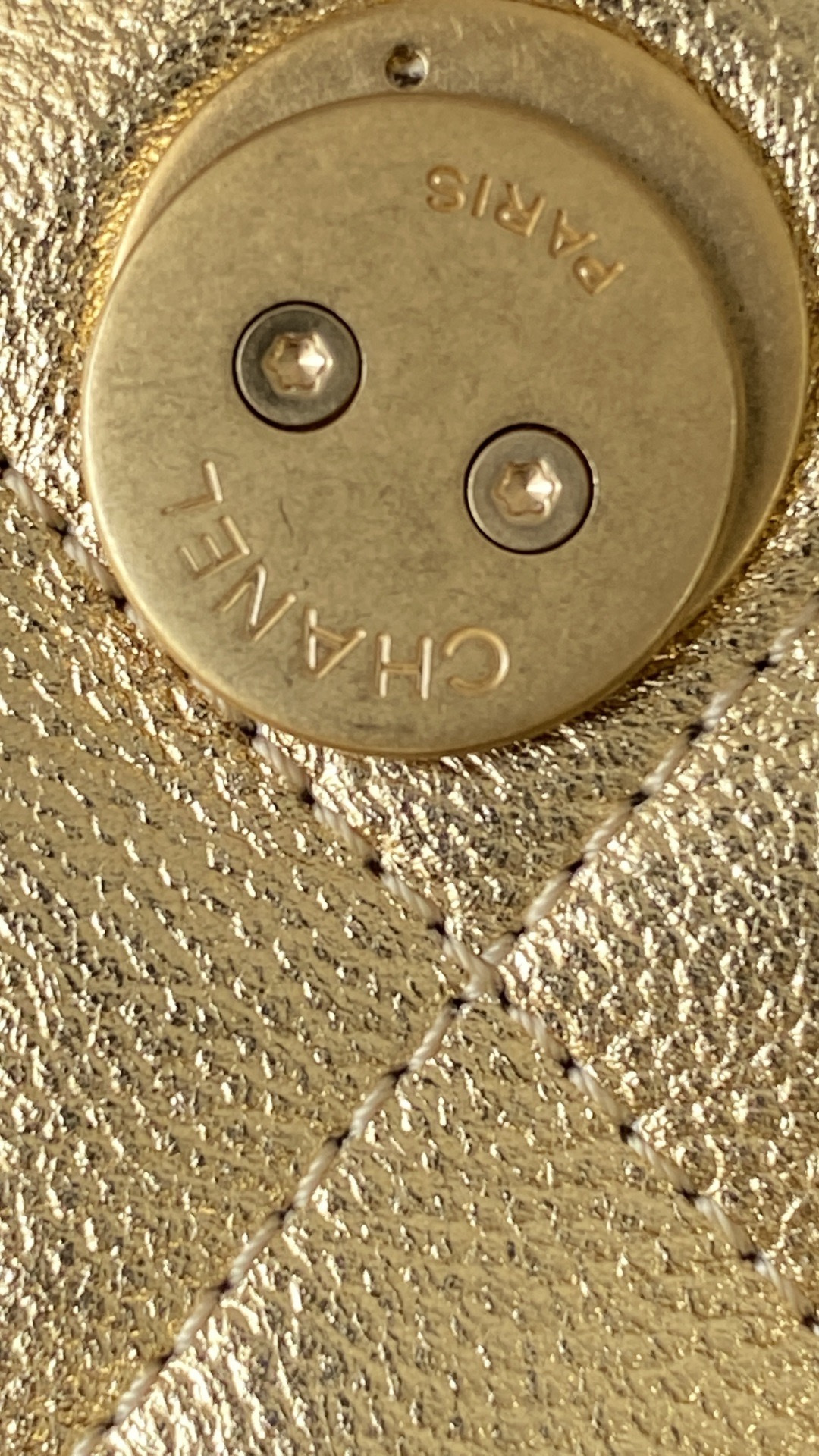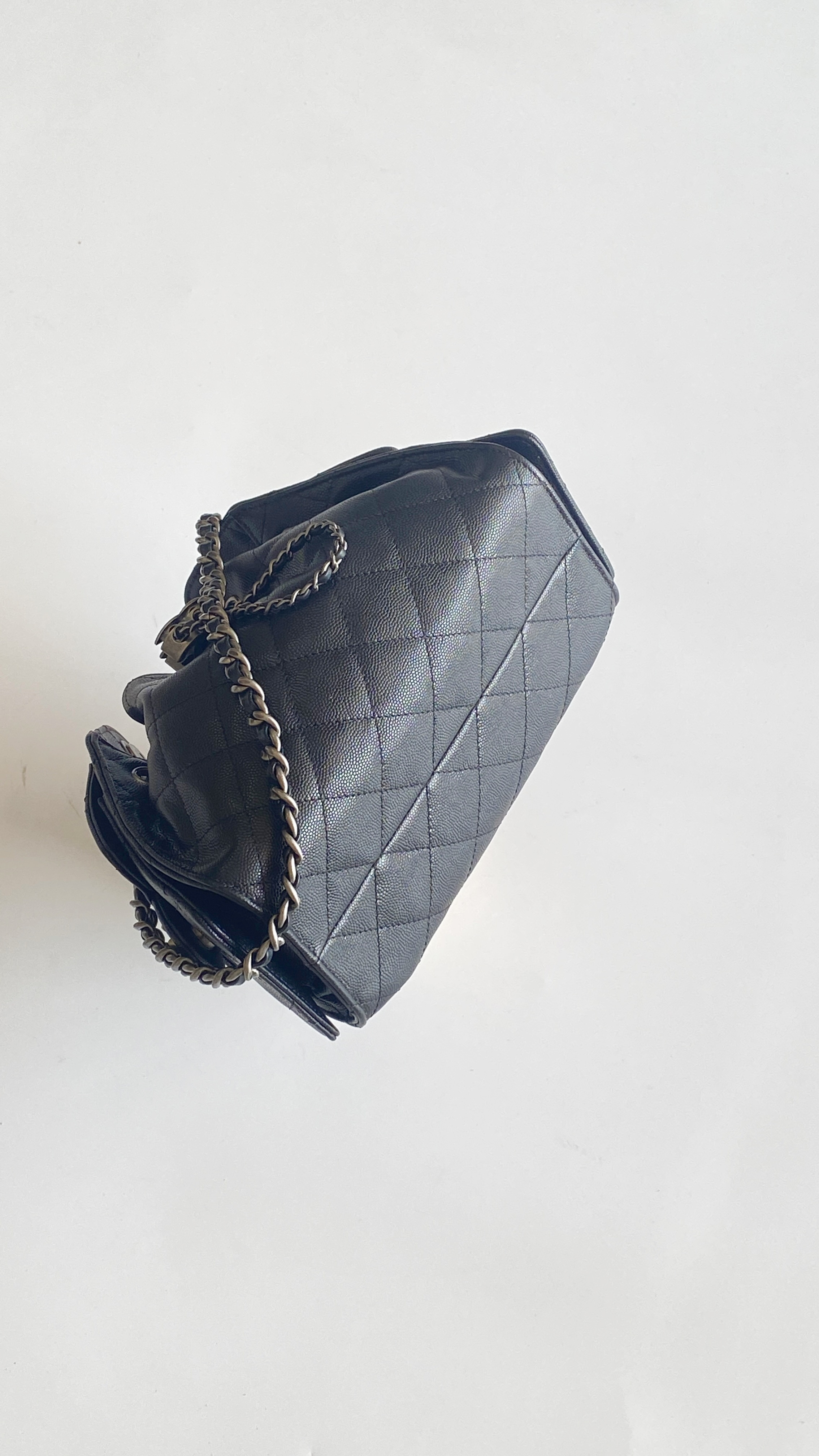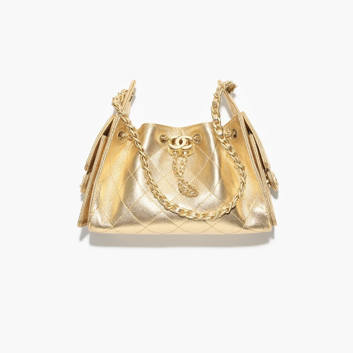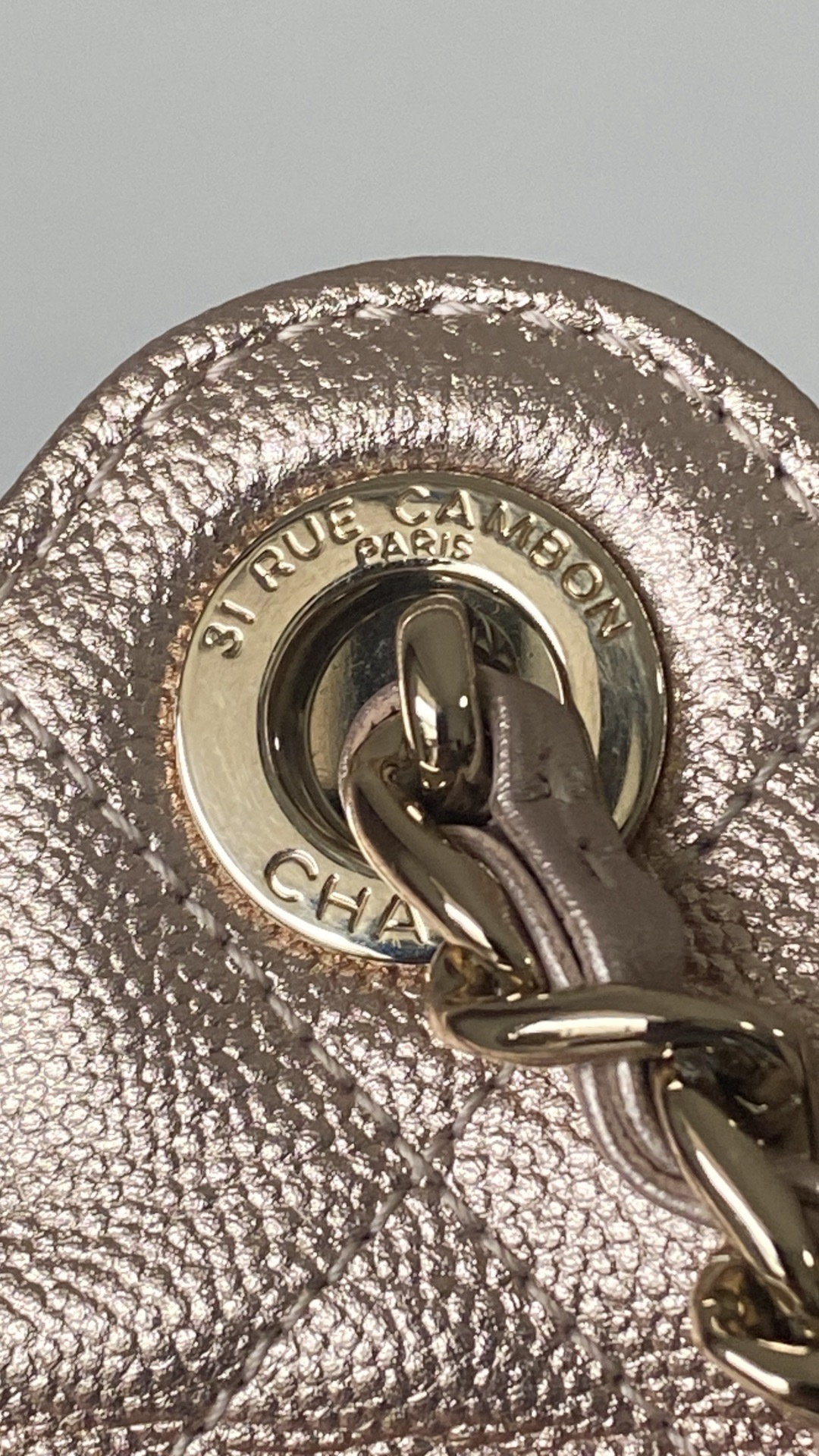 This Chanel handbag showcases the brand's exceptional craftsmanship and attention to detail. Crafted from premium calfskin, metallic, this piece combines timeless luxury with modern style.