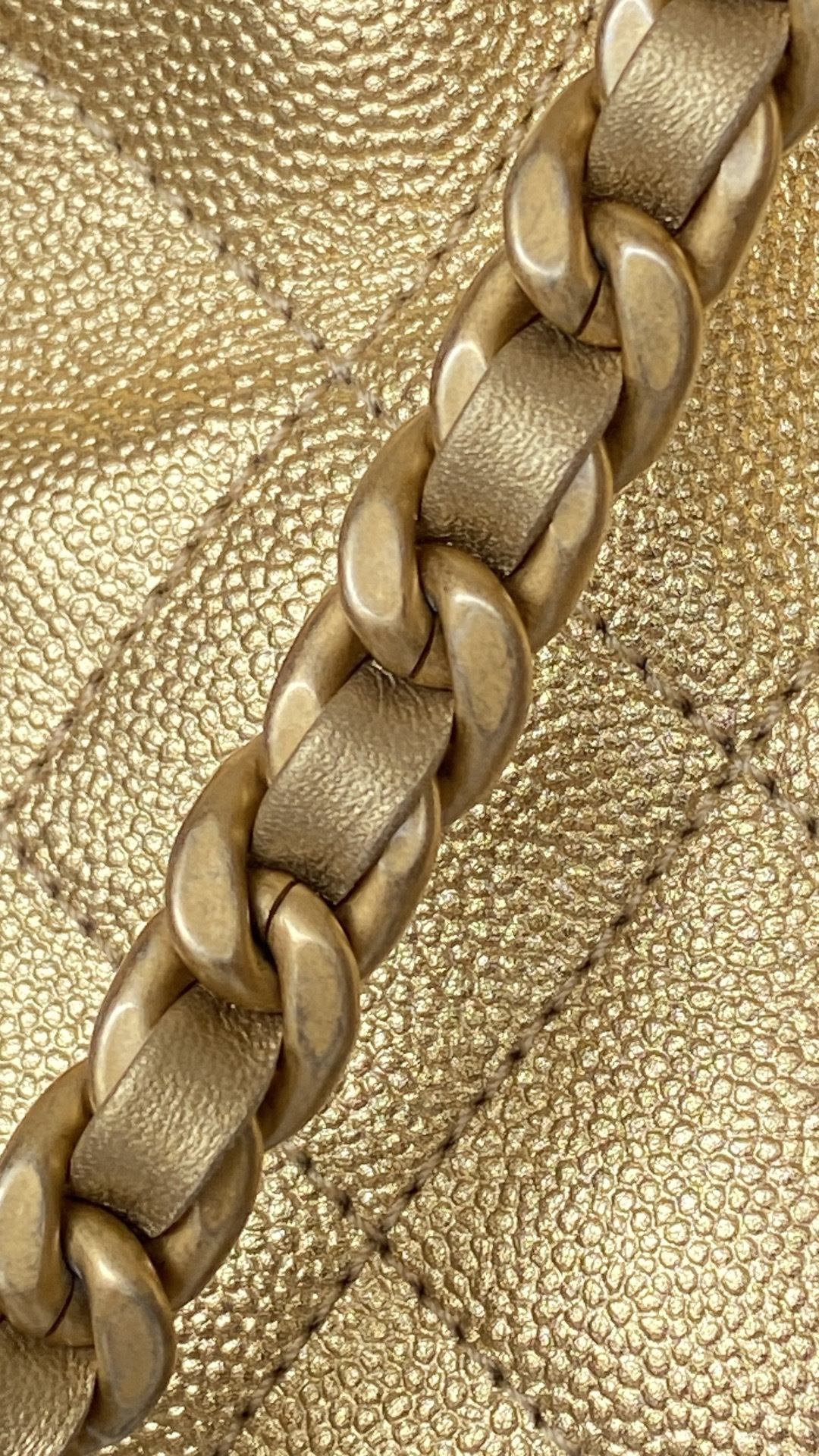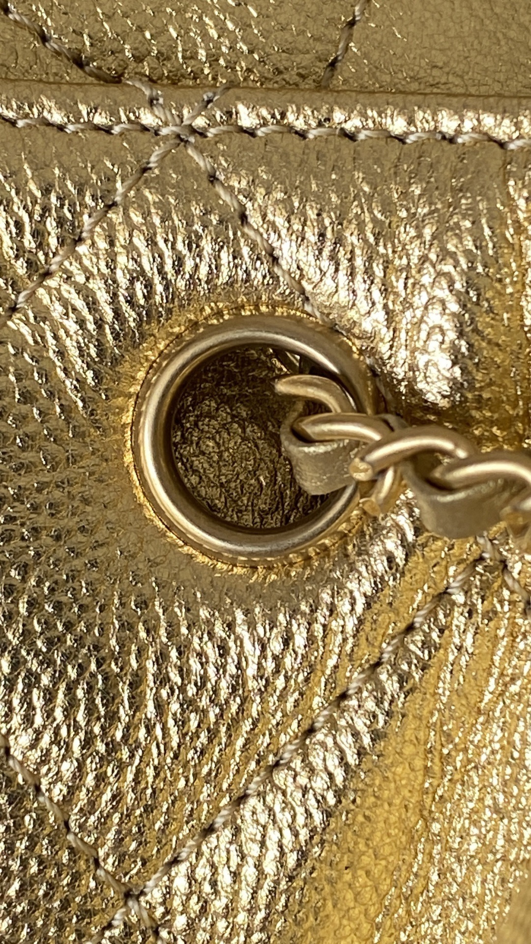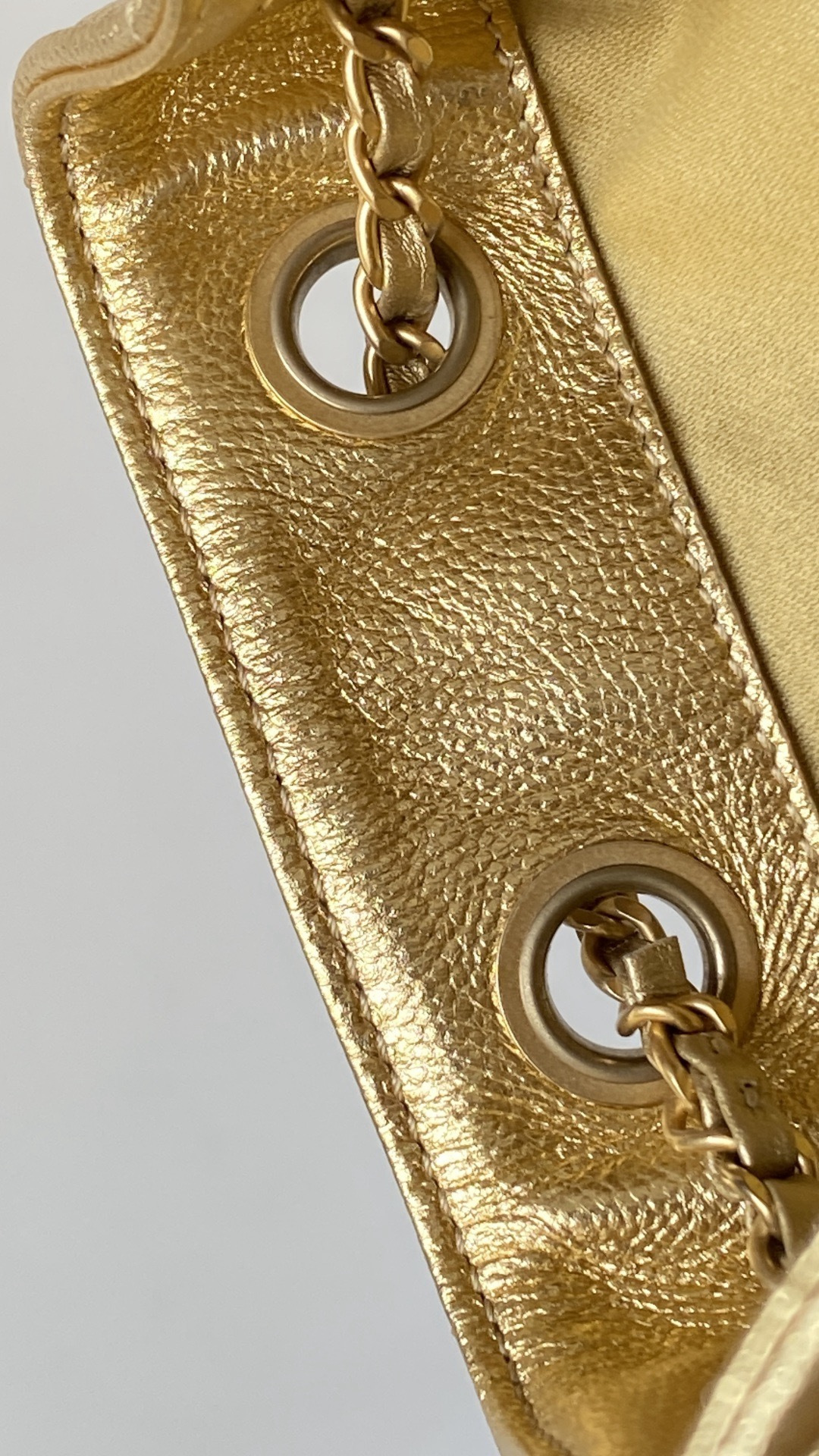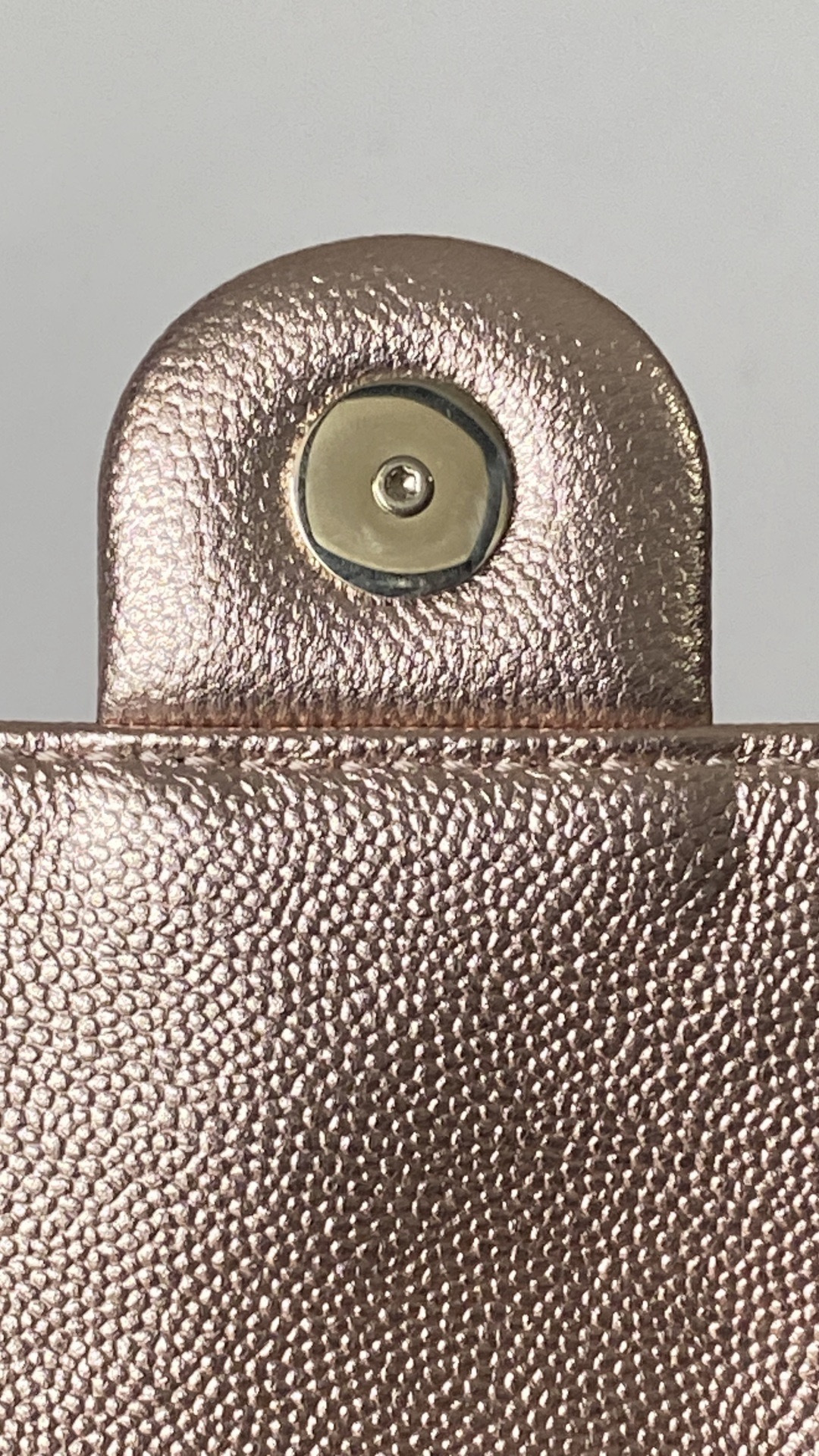 This Chanel handbag showcases the brand's exceptional craftsmanship and attention to detail. Crafted from premium calfskin, metallic, this piece combines timeless luxury with modern style.