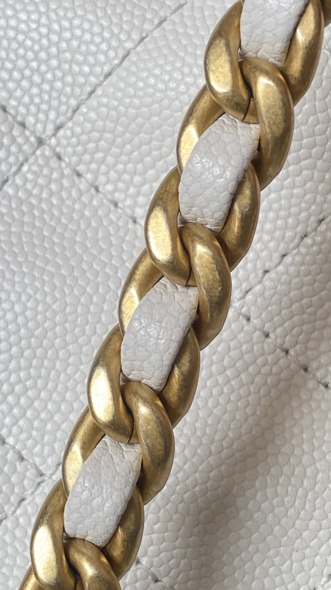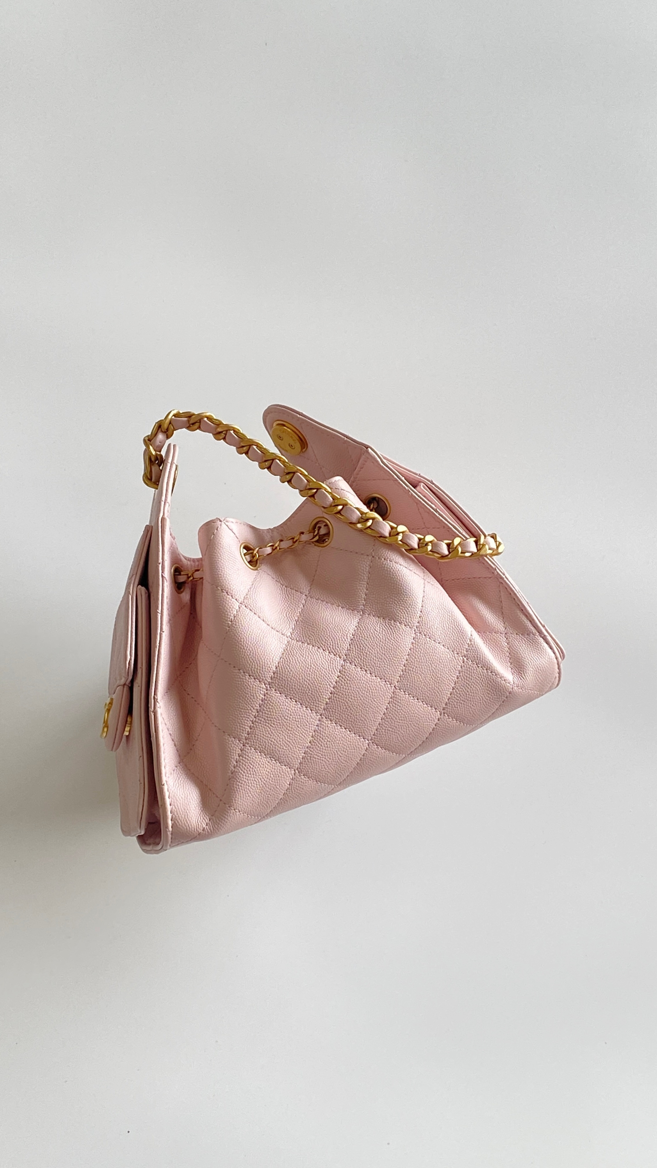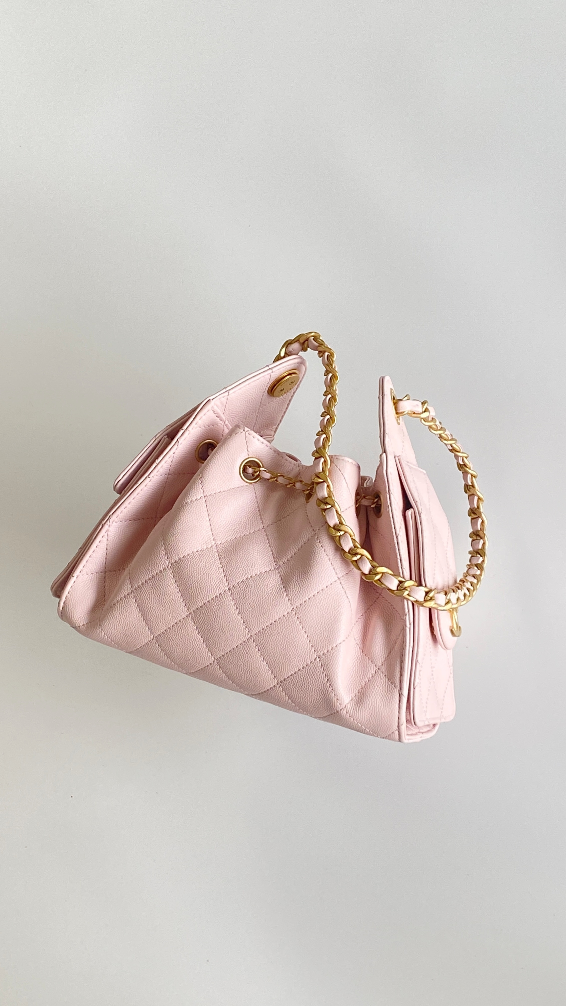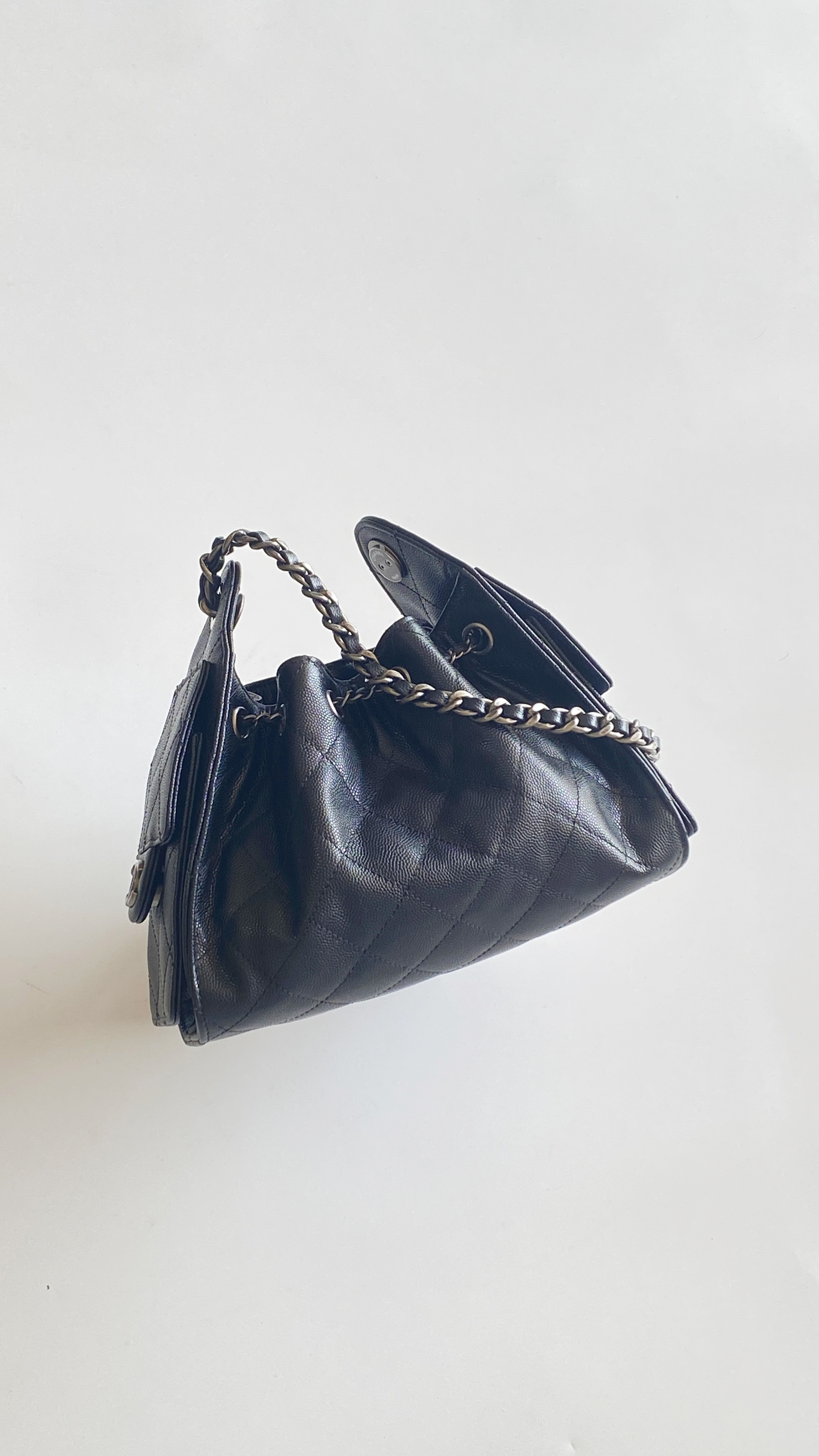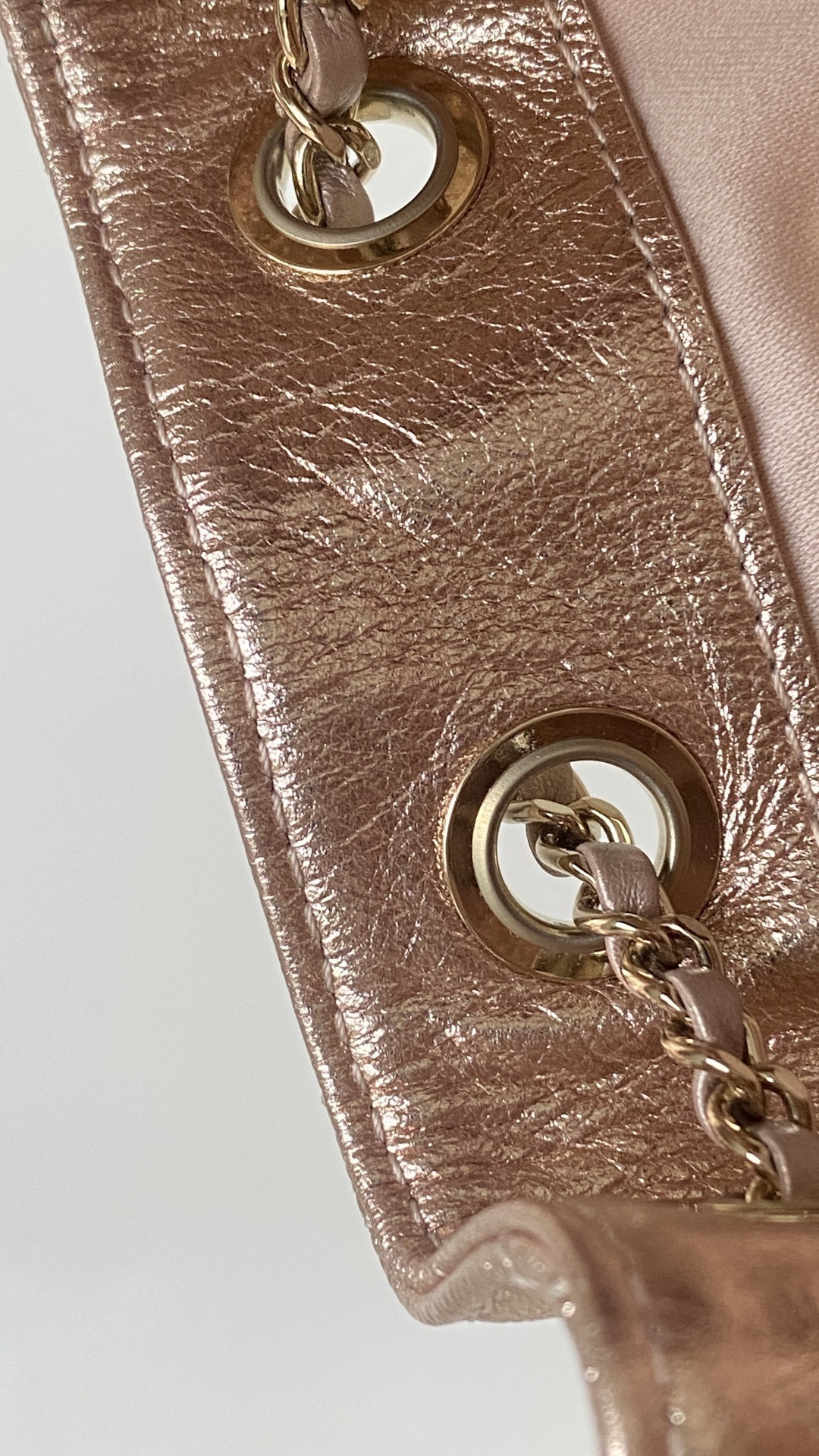 This Chanel handbag showcases the brand's exceptional craftsmanship and attention to detail. Crafted from premium calfskin, metallic, this piece combines timeless luxury with modern style.
