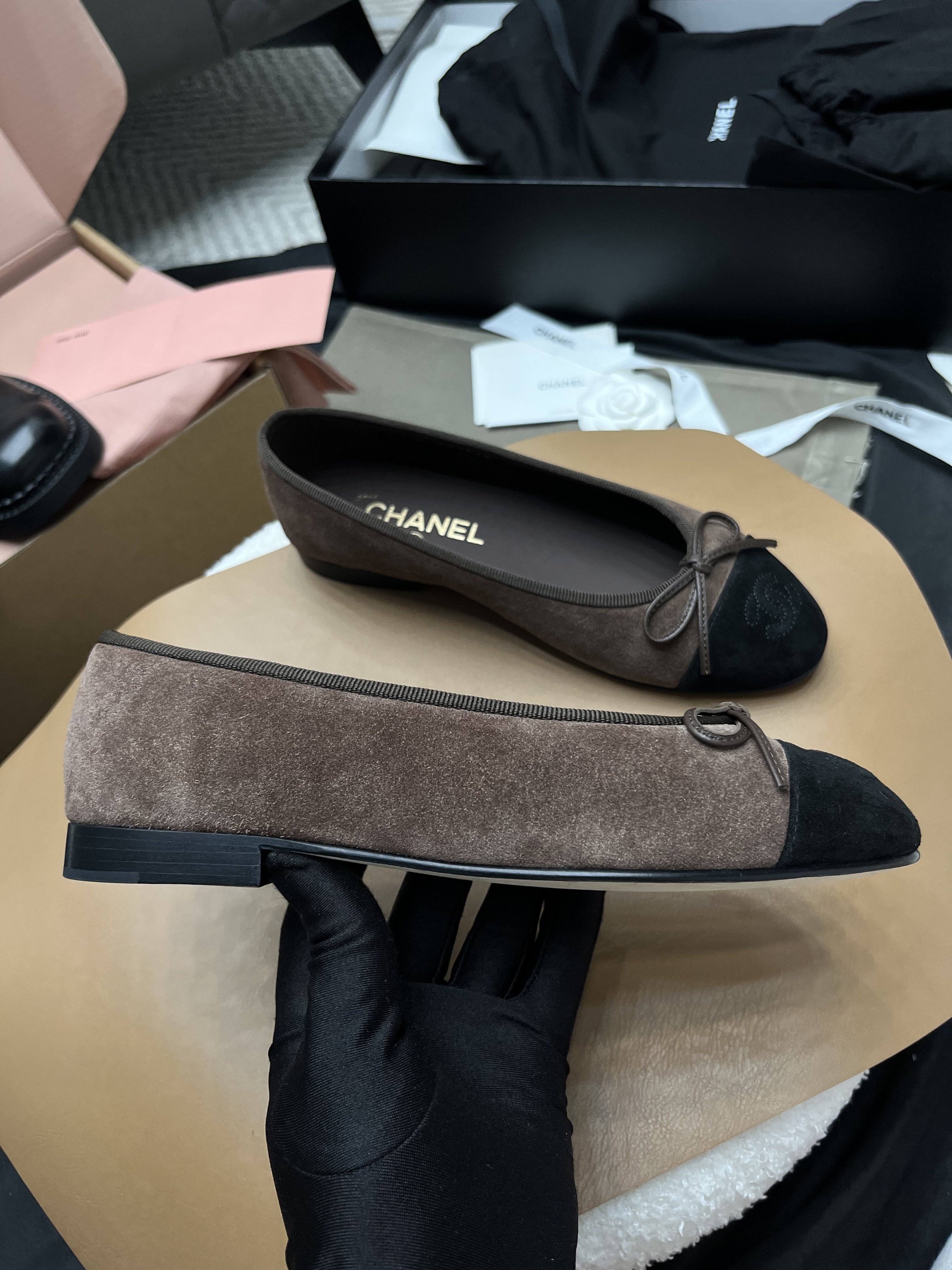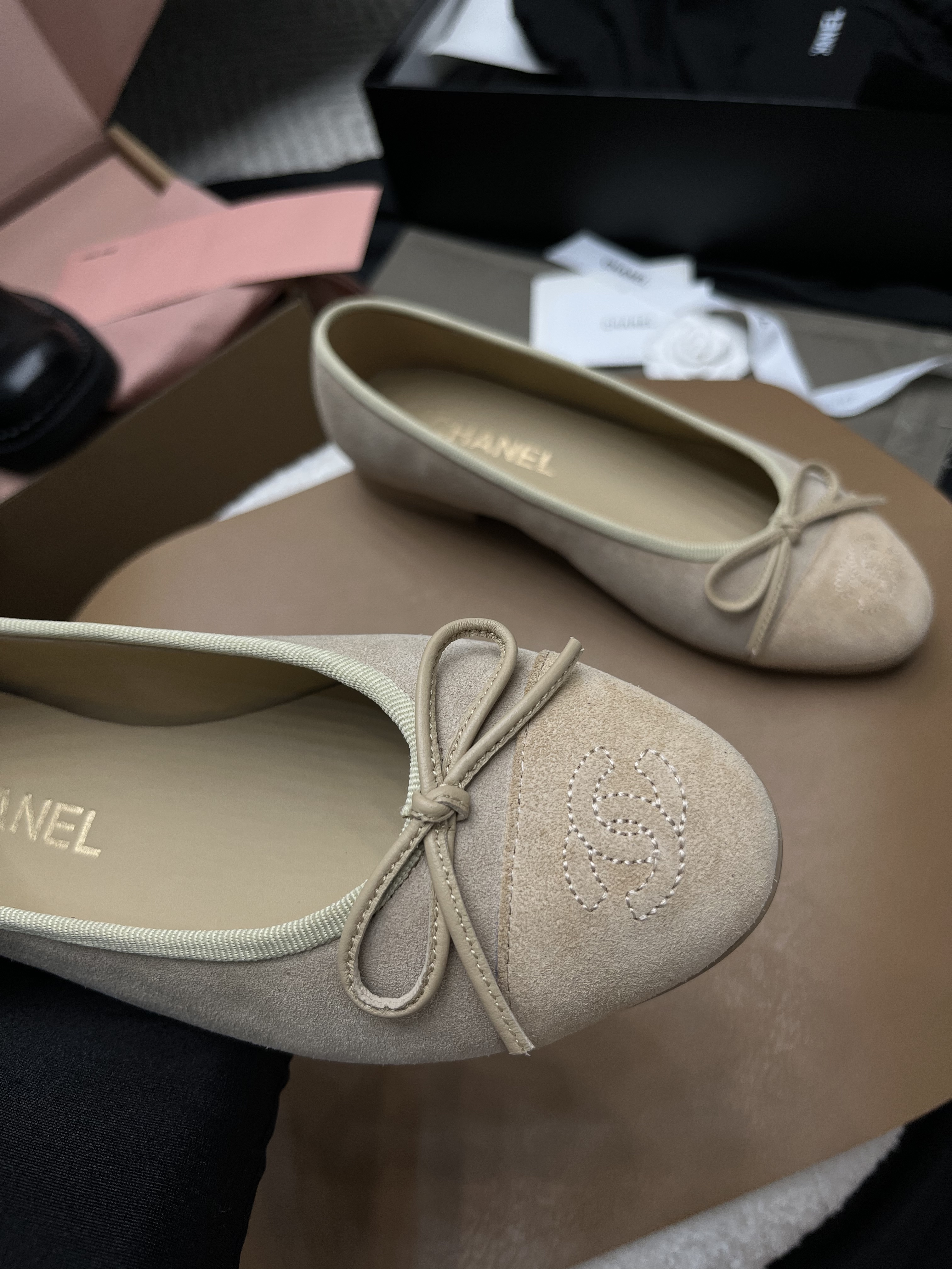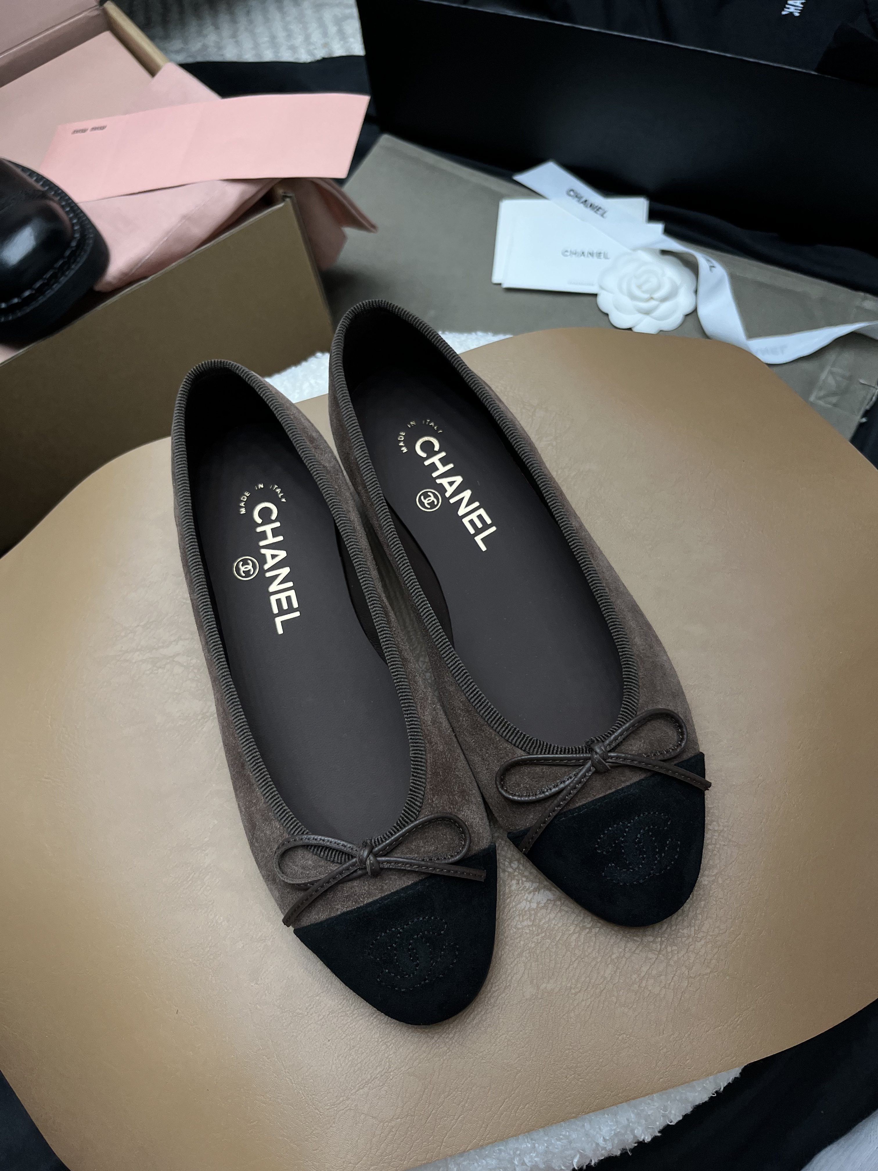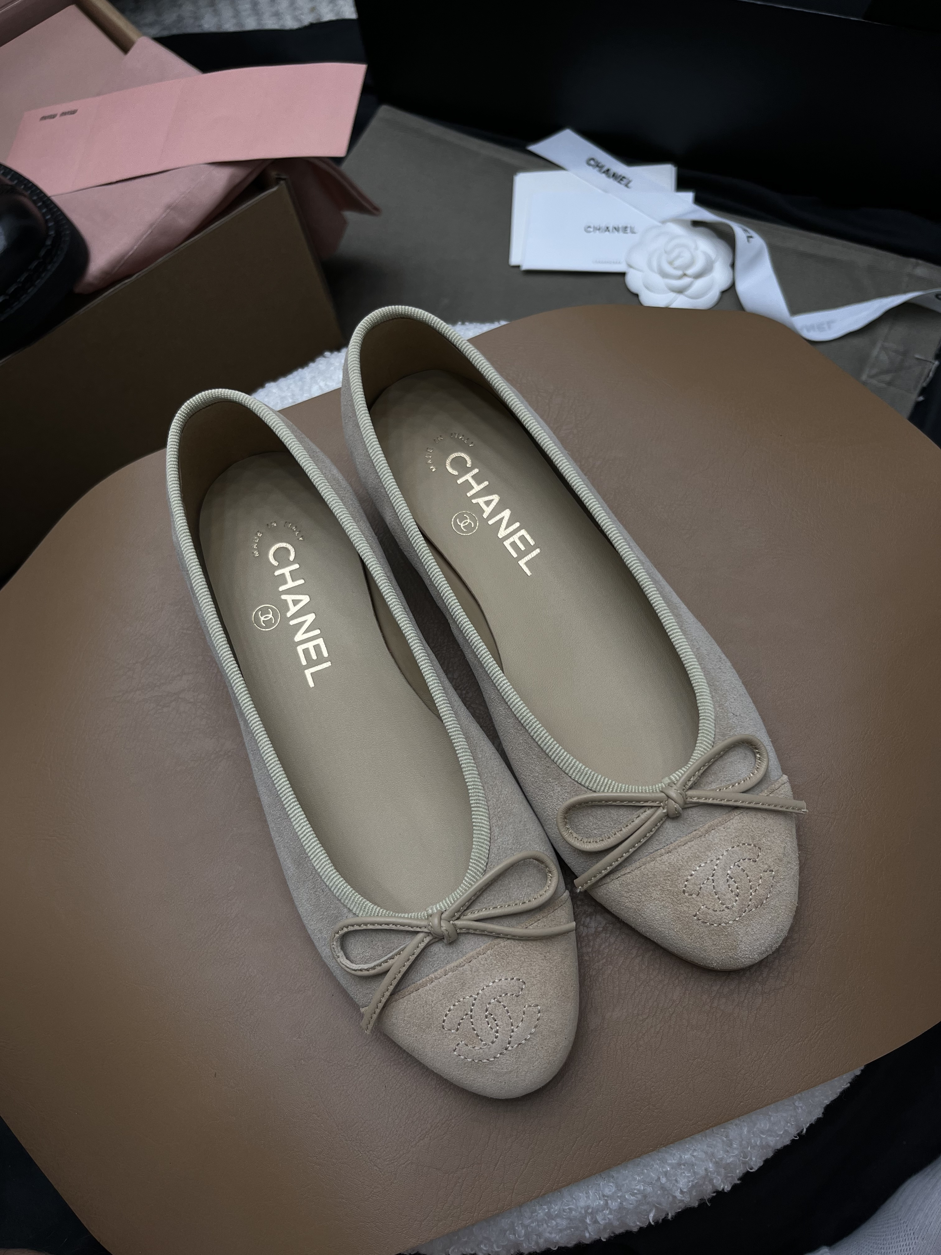 NIGO Chanel Ballet Flat Grey-taupe Suede #nigo328432