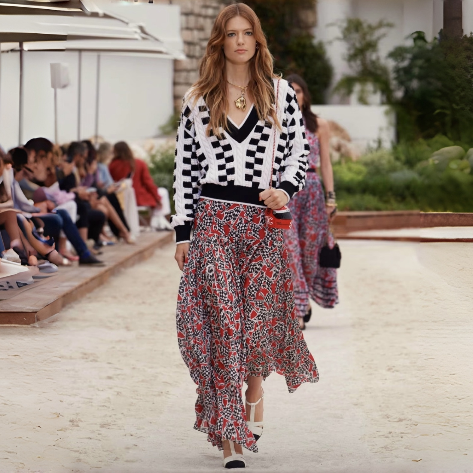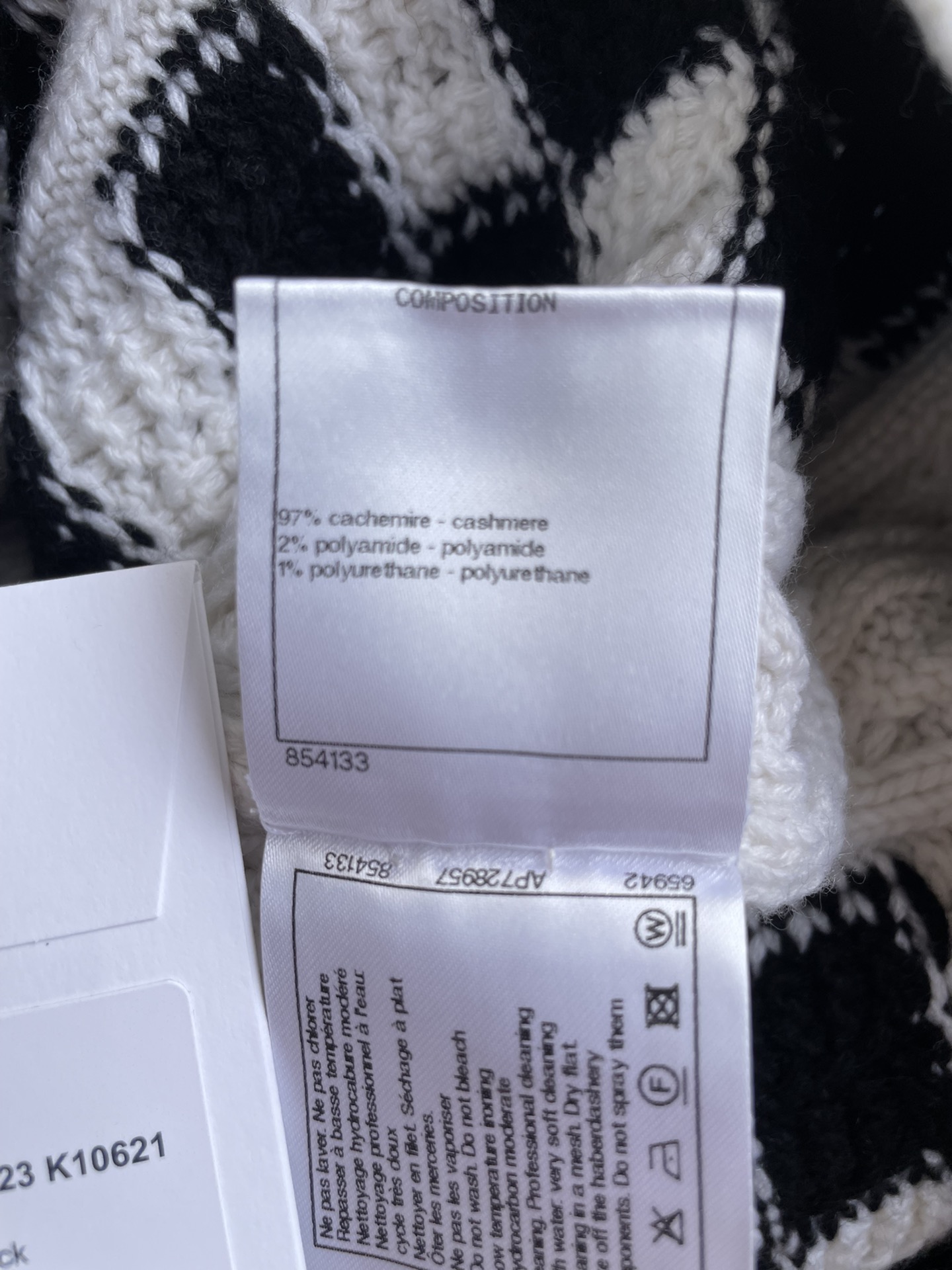 This Chanel clothing showcases the brand's exceptional craftsmanship and attention to detail. Crafted from premium cashmere, in a stunning black / white / red colorway, this piece combines timeless luxury with modern style.