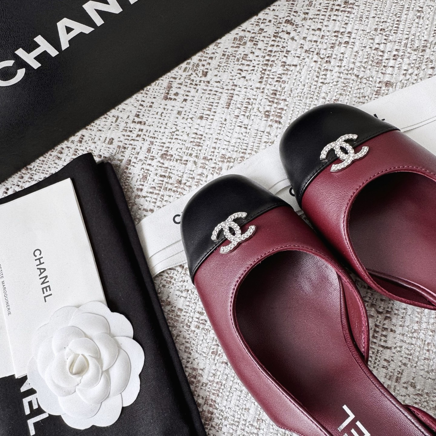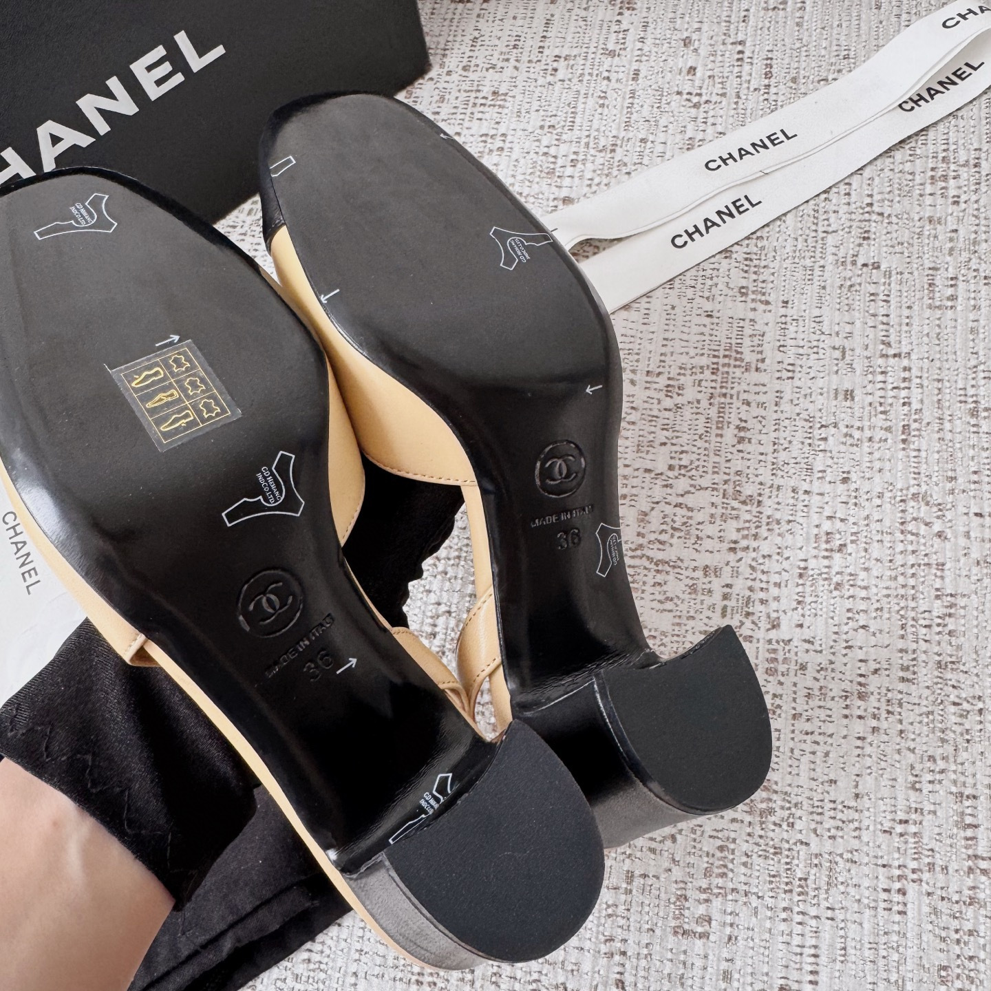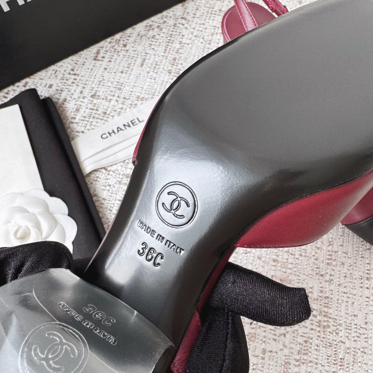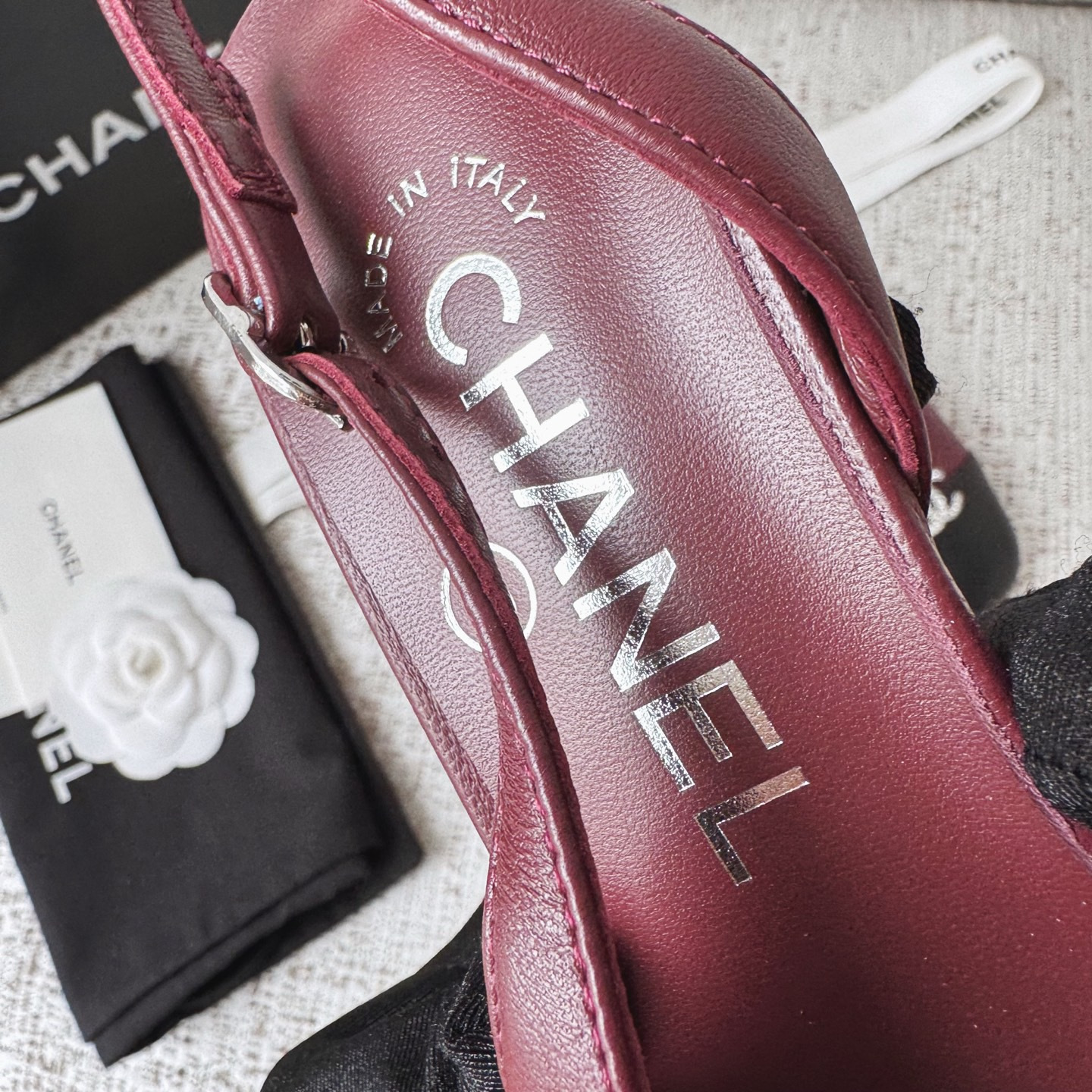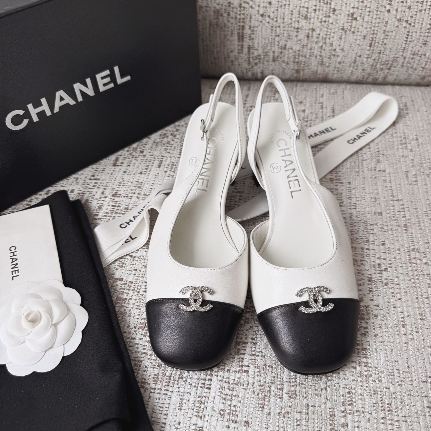 This Chanel shoes showcases the brand's exceptional craftsmanship and attention to detail. Crafted from premium lambskin, this piece combines timeless luxury with modern style.