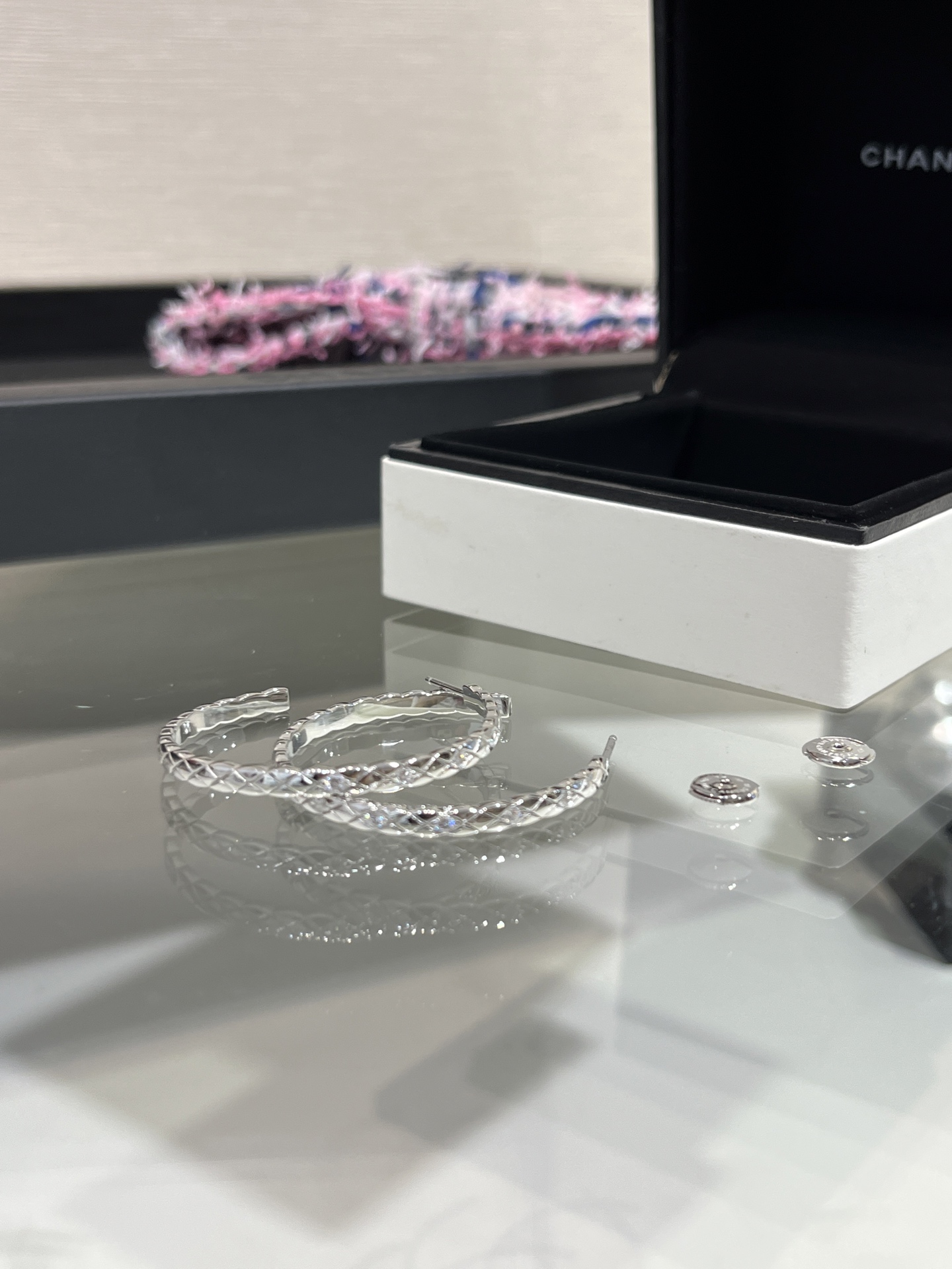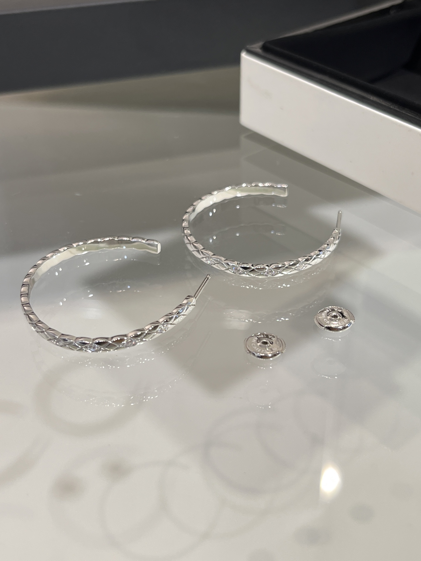 NIGO Chanel Coco Crush Hoop Earrings White Gold J12094 #nigo336970