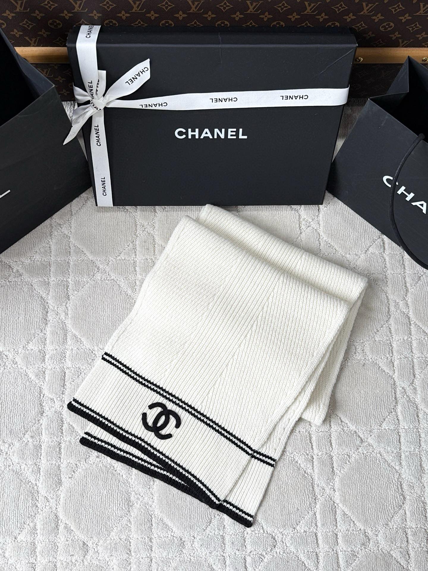 This Chanel scarf showcases the brand's exceptional craftsmanship and attention to detail. this piece combines timeless luxury with modern style.