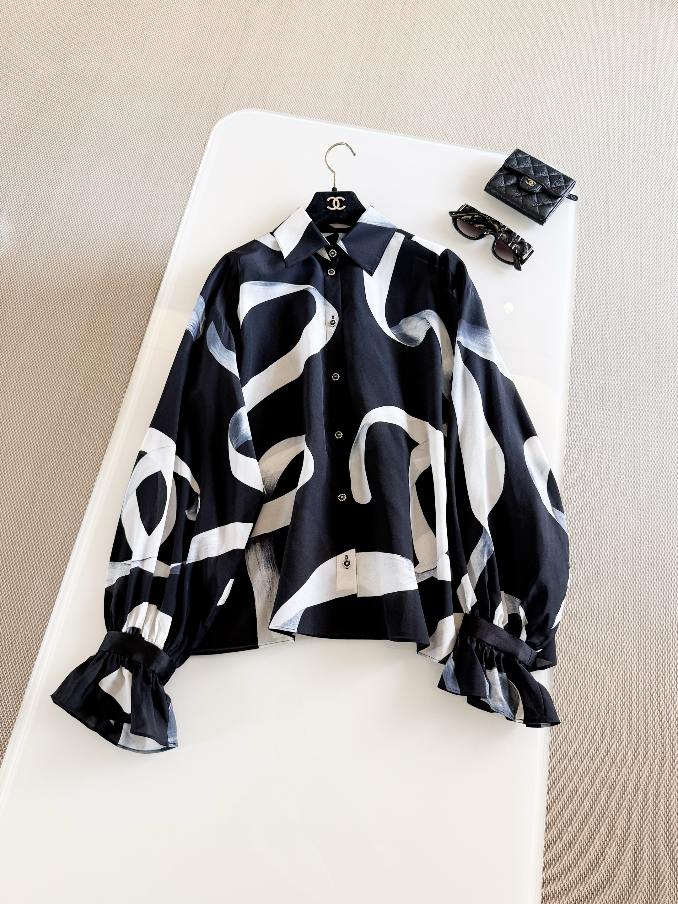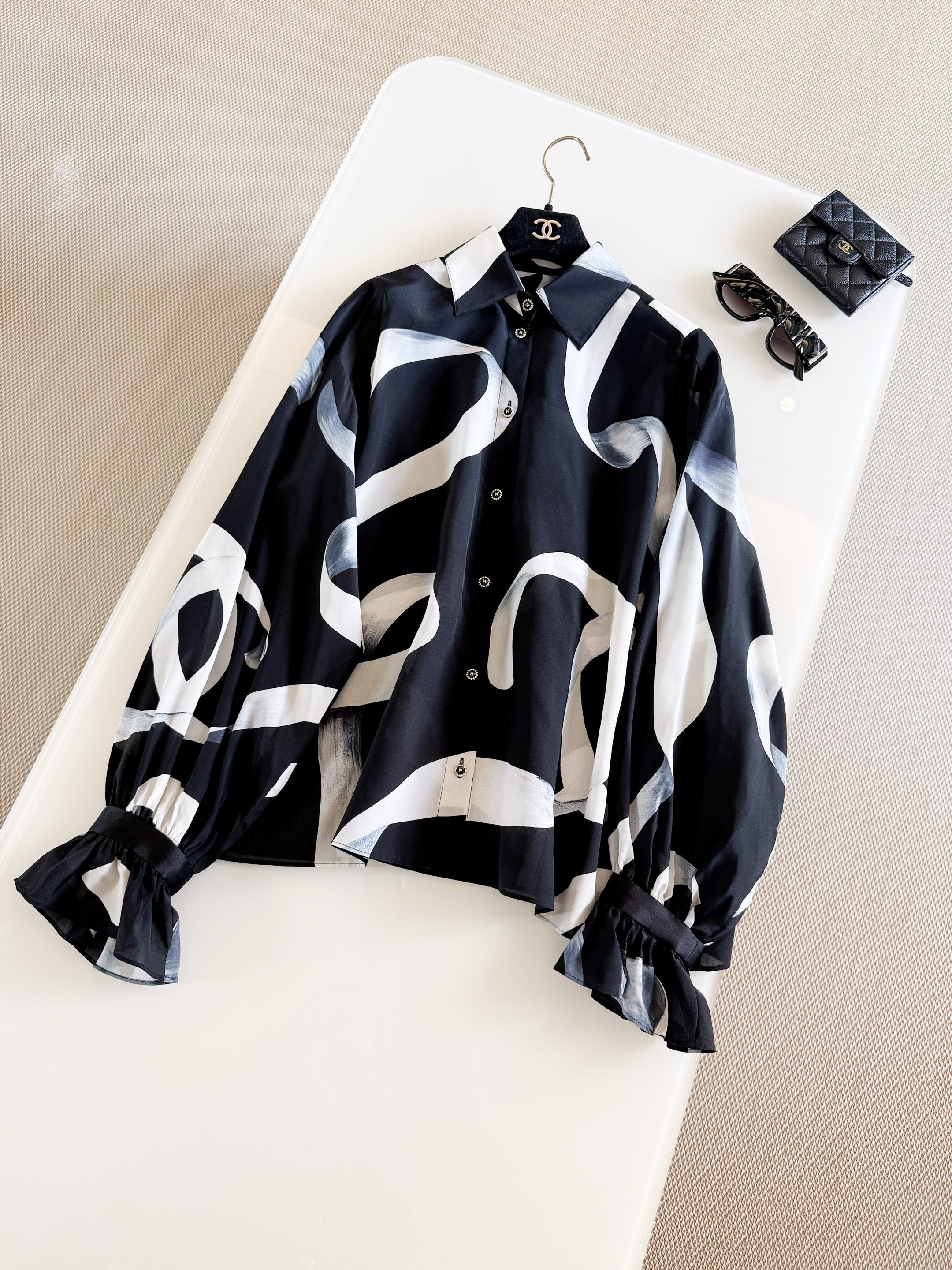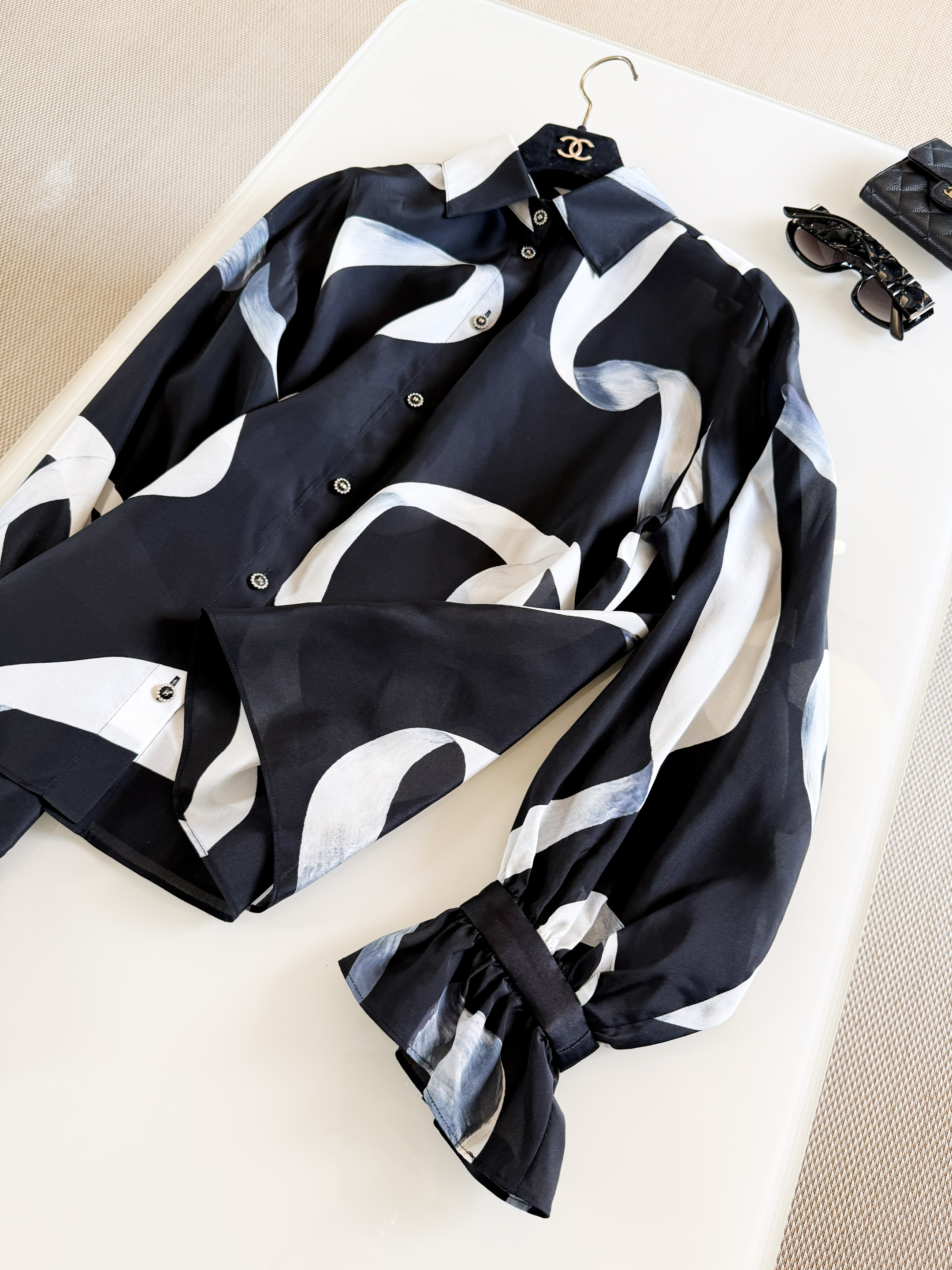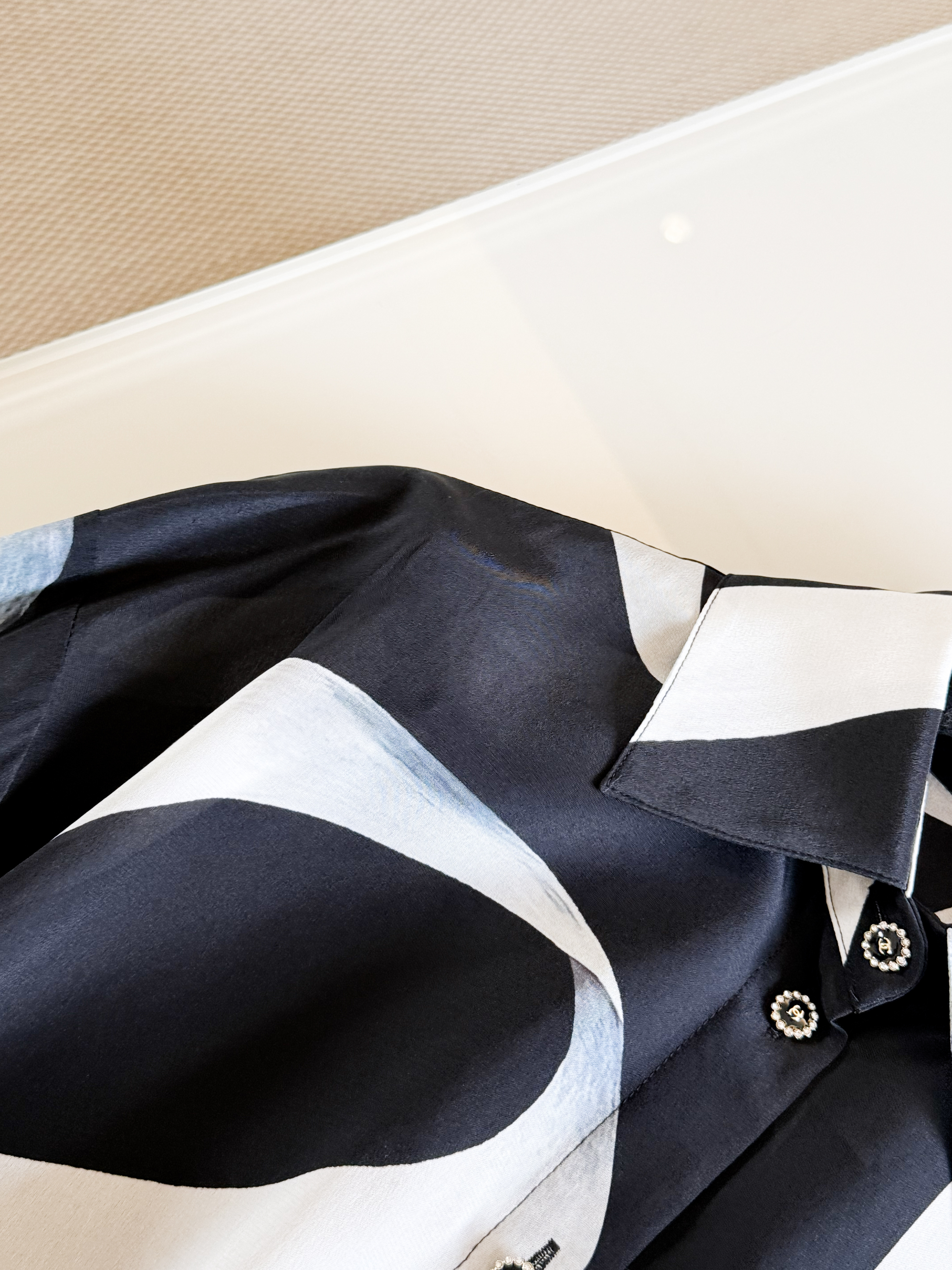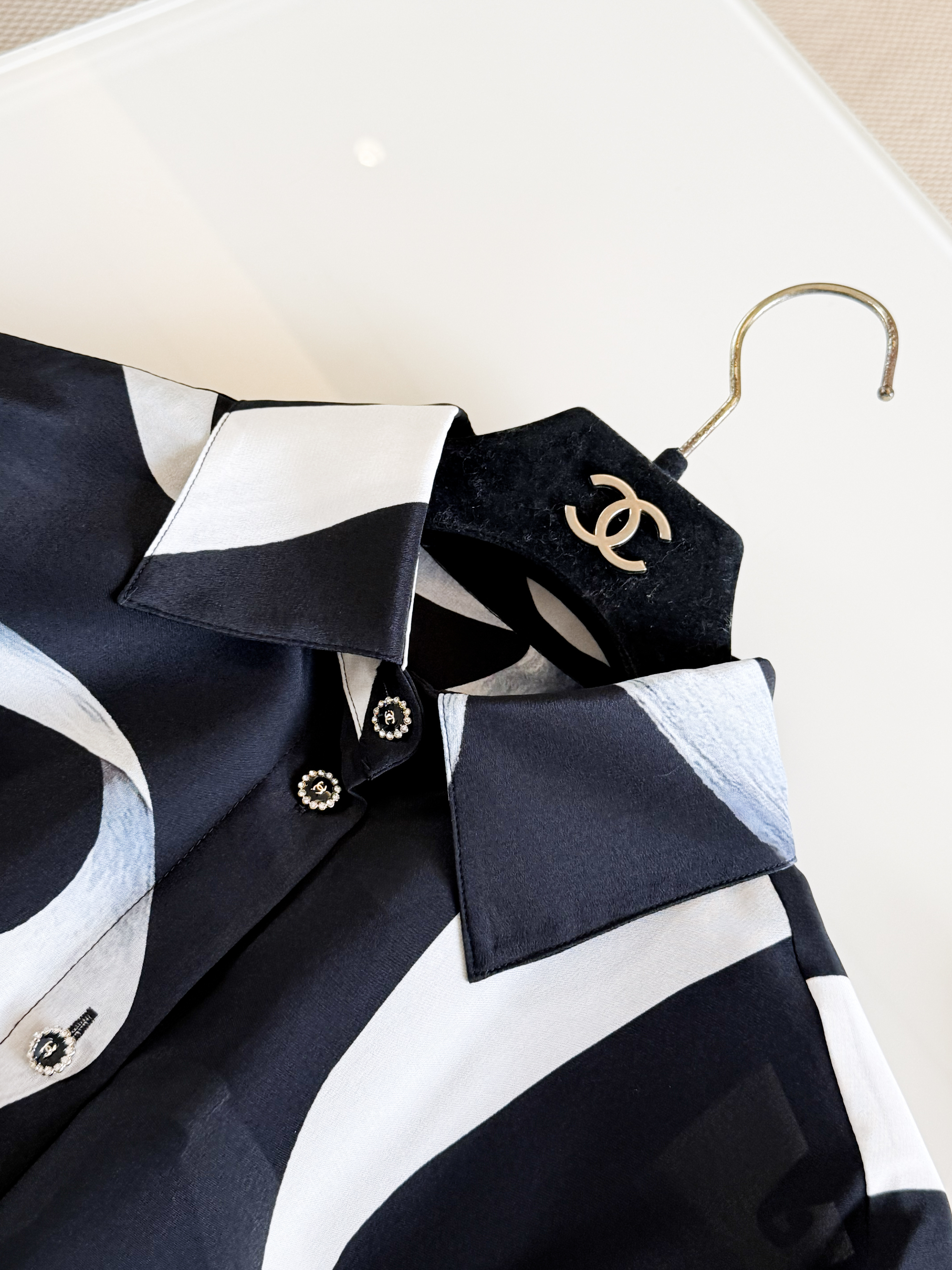 This Chanel clothing showcases the brand's exceptional craftsmanship and attention to detail. Crafted from premium silk, this piece combines timeless luxury with modern style.