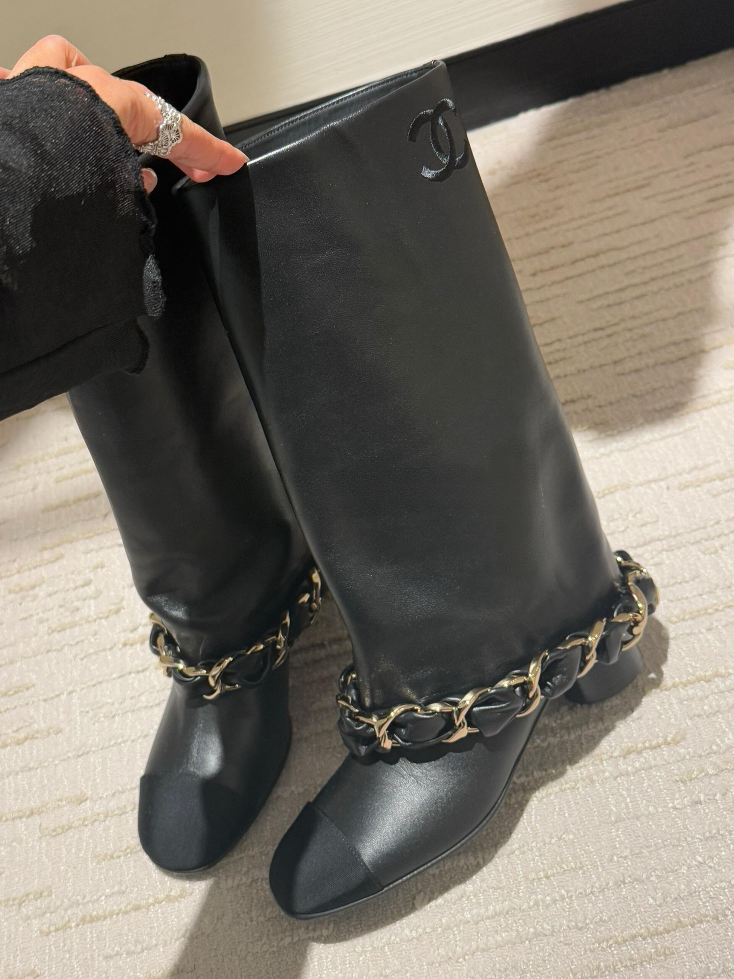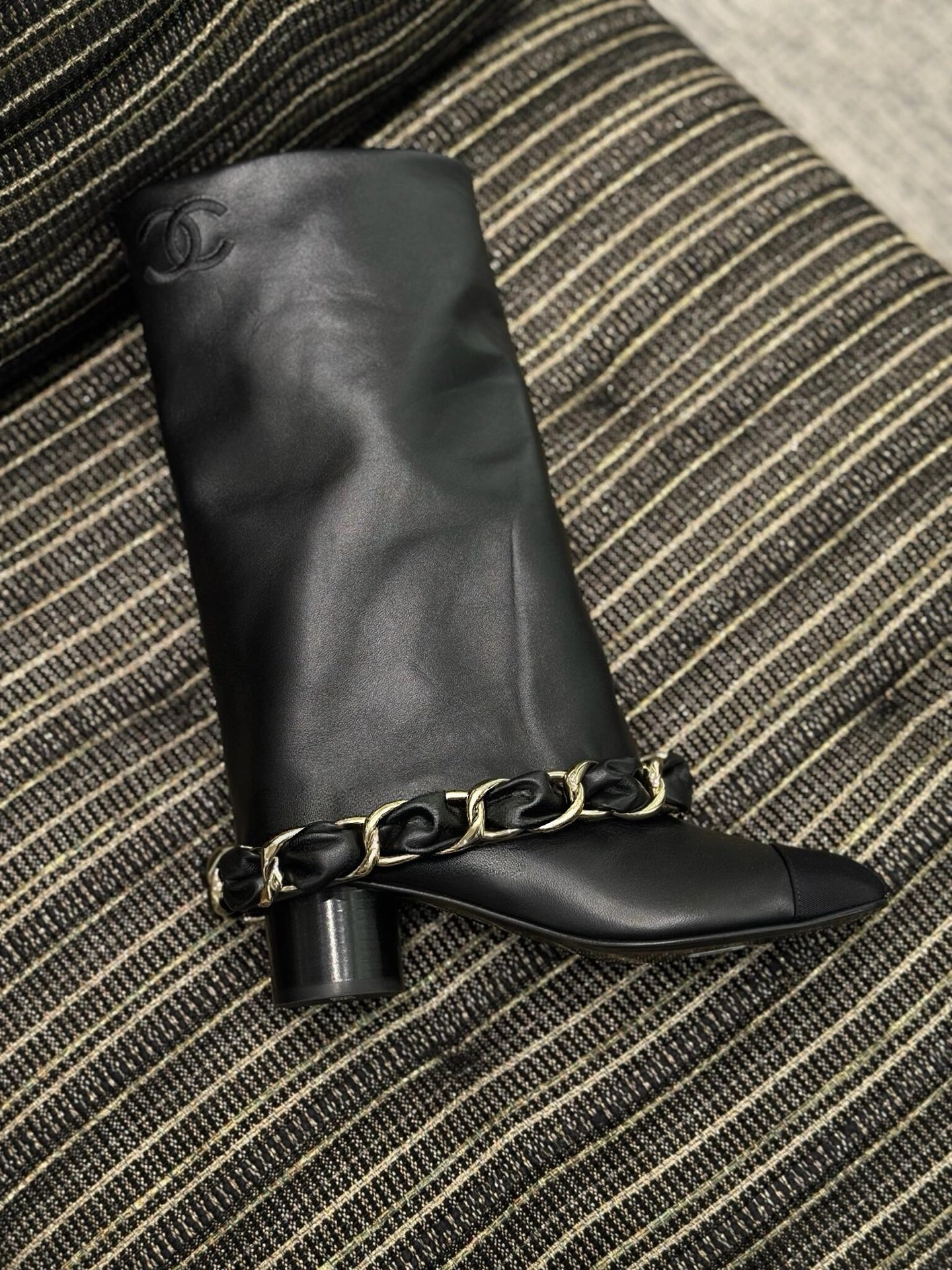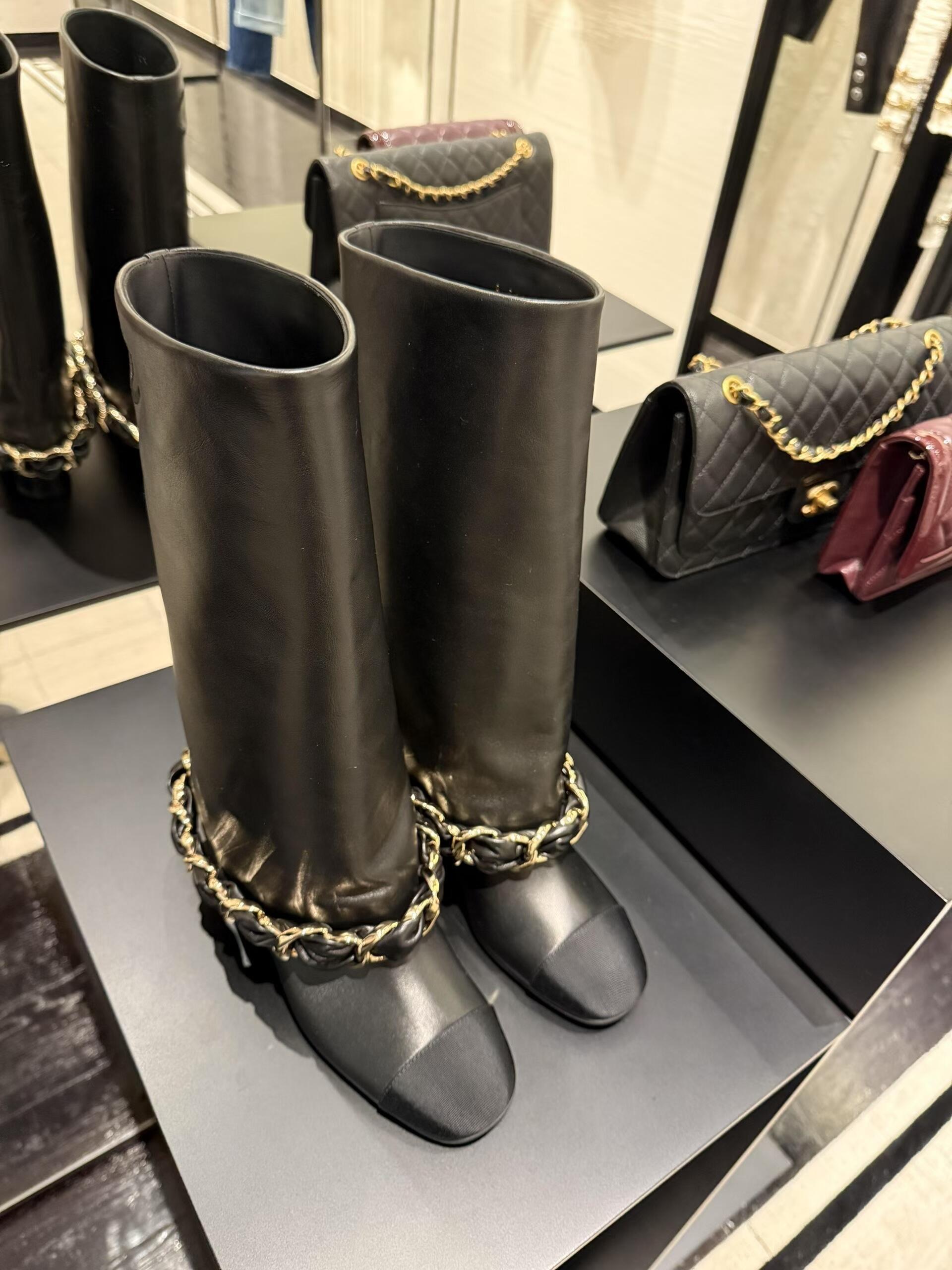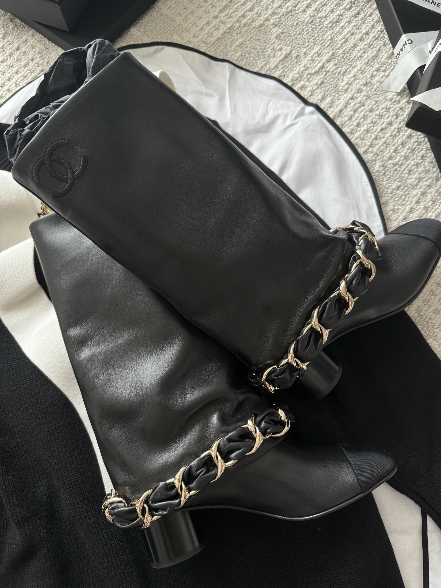 NIGO Chanel High Boots Lambskin Grosgrain Black #nigo335049