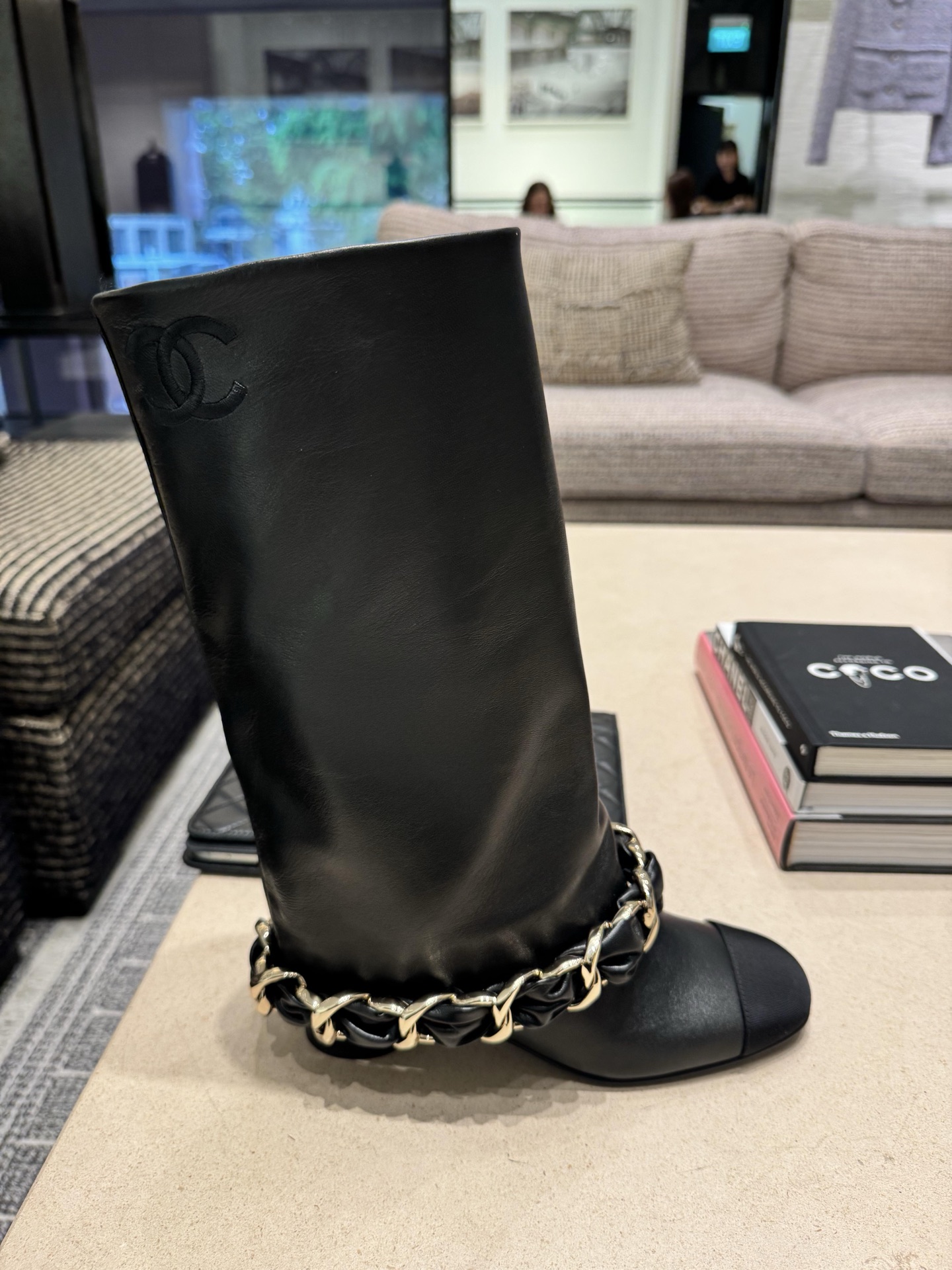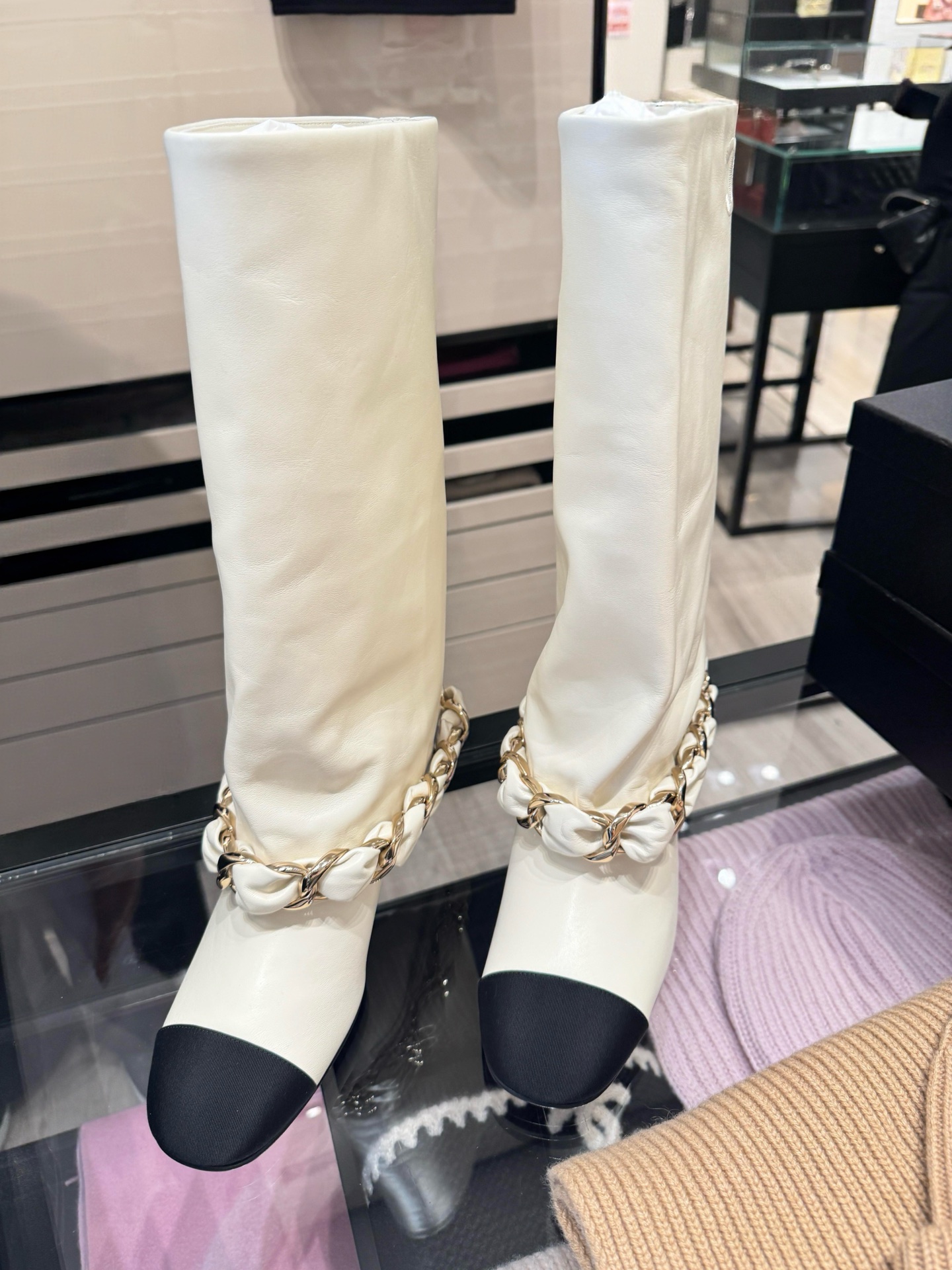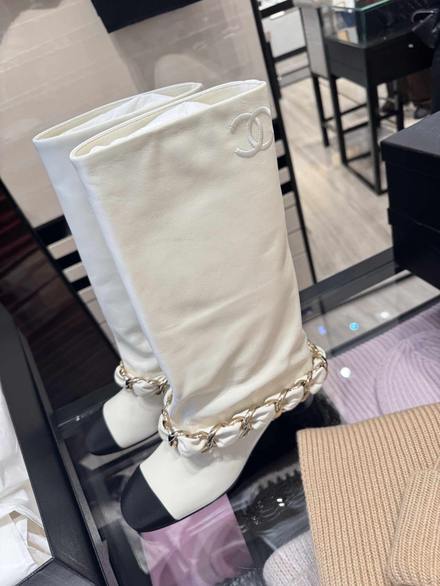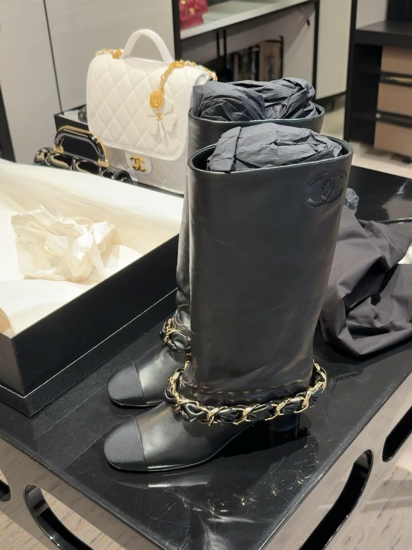 NIGO Chanel High Boots Lambskin Grosgrain Black #nigo335049