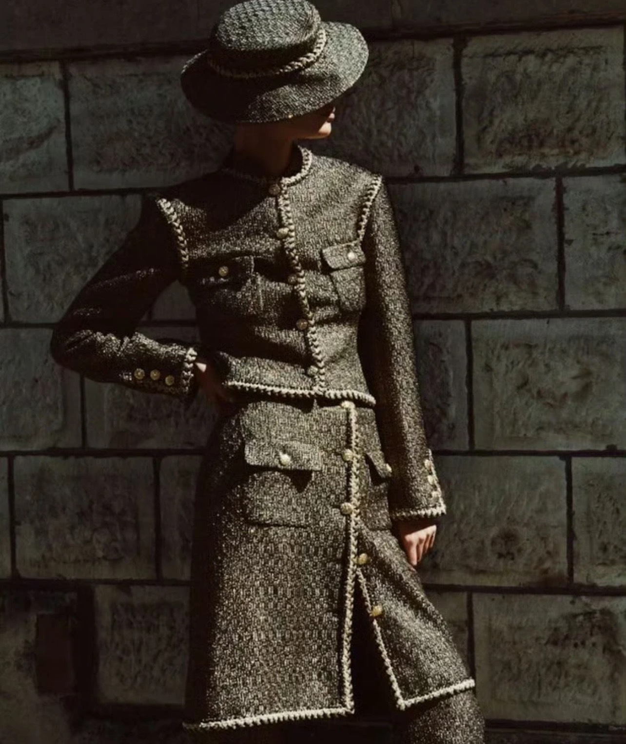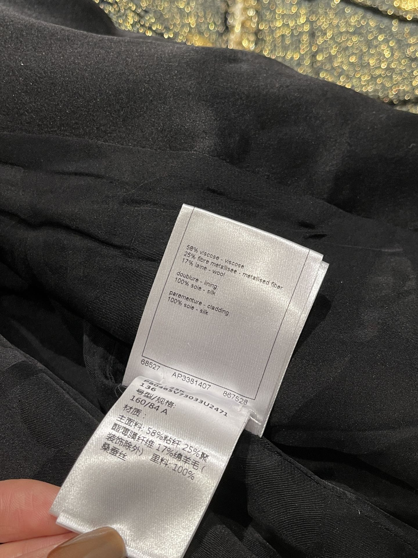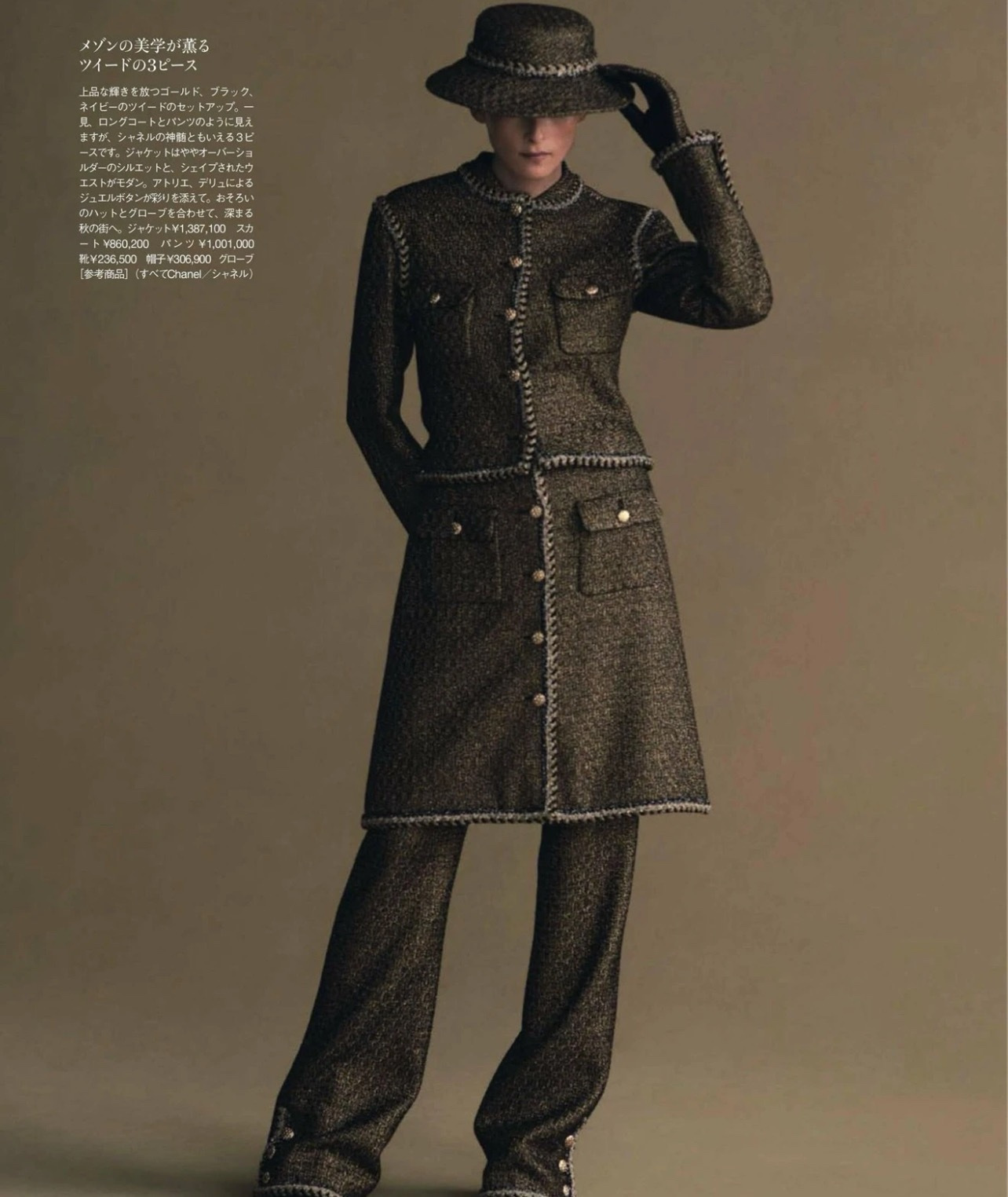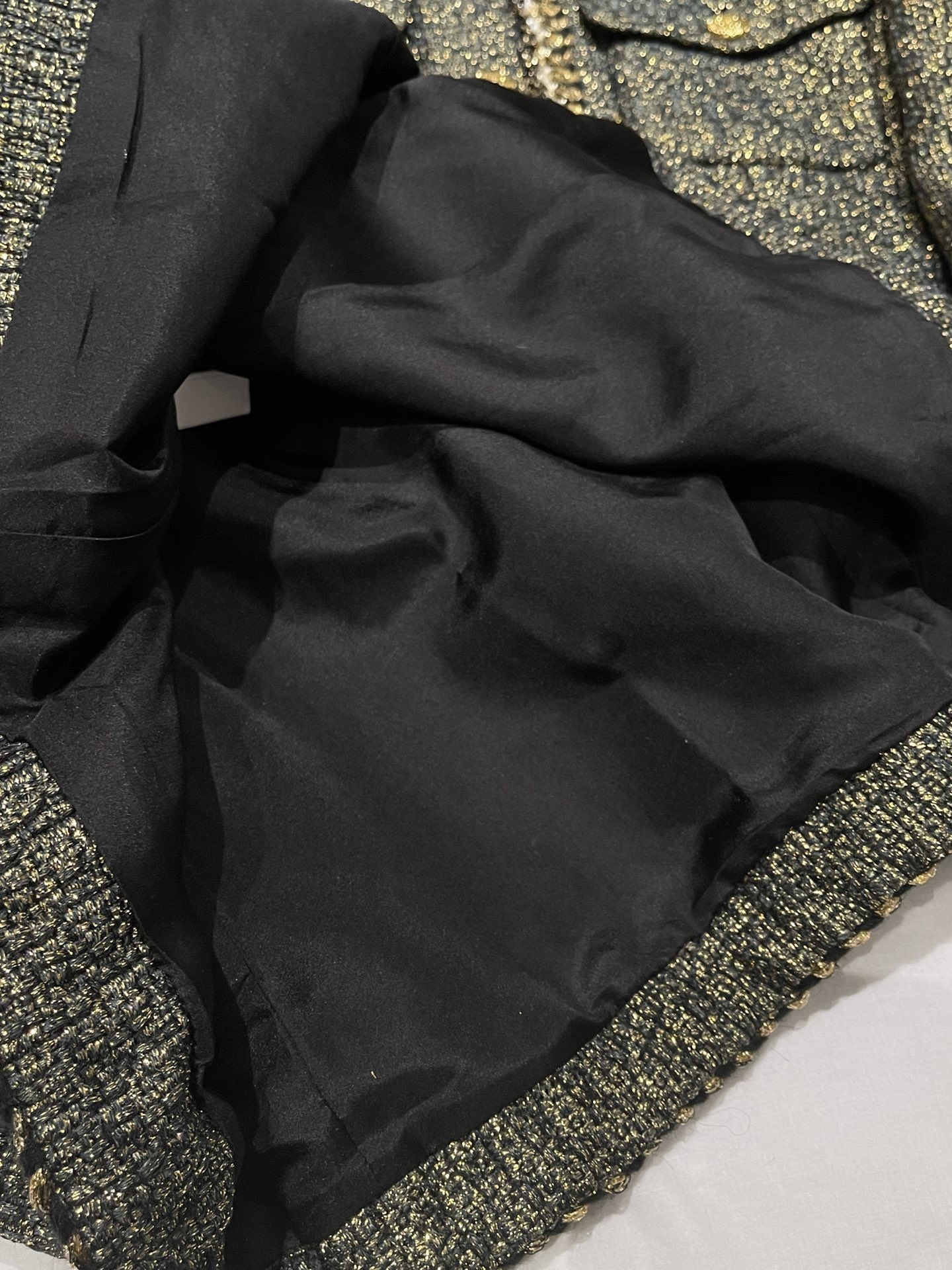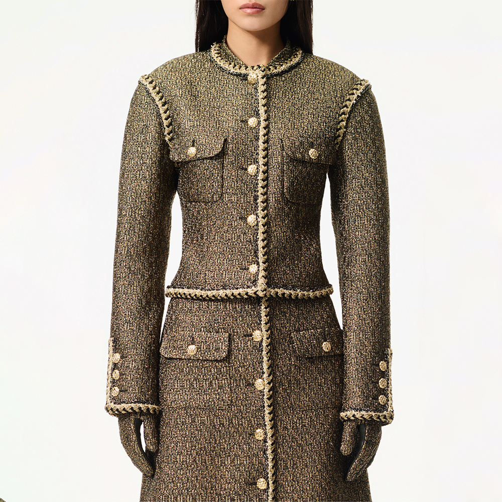 - Material: Tweed, Gold