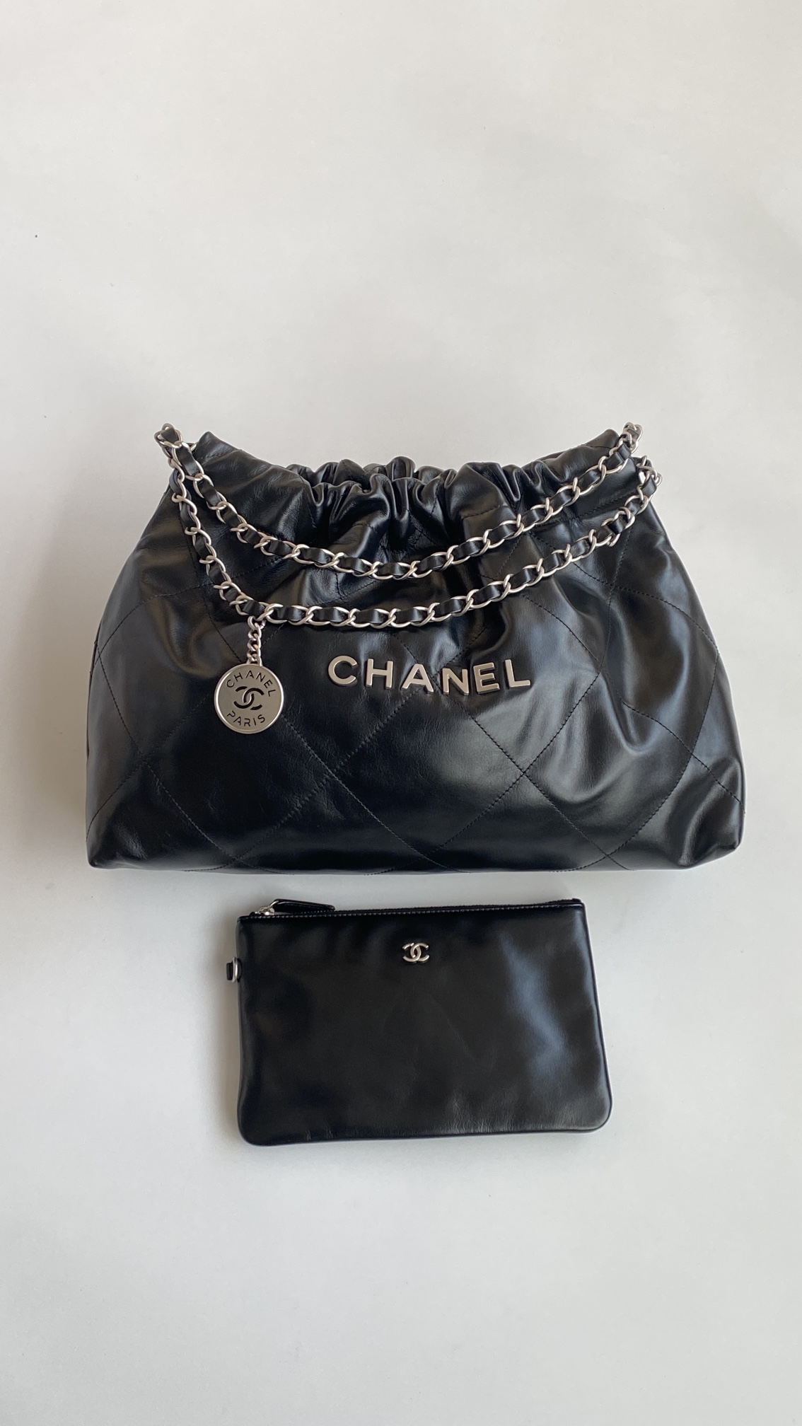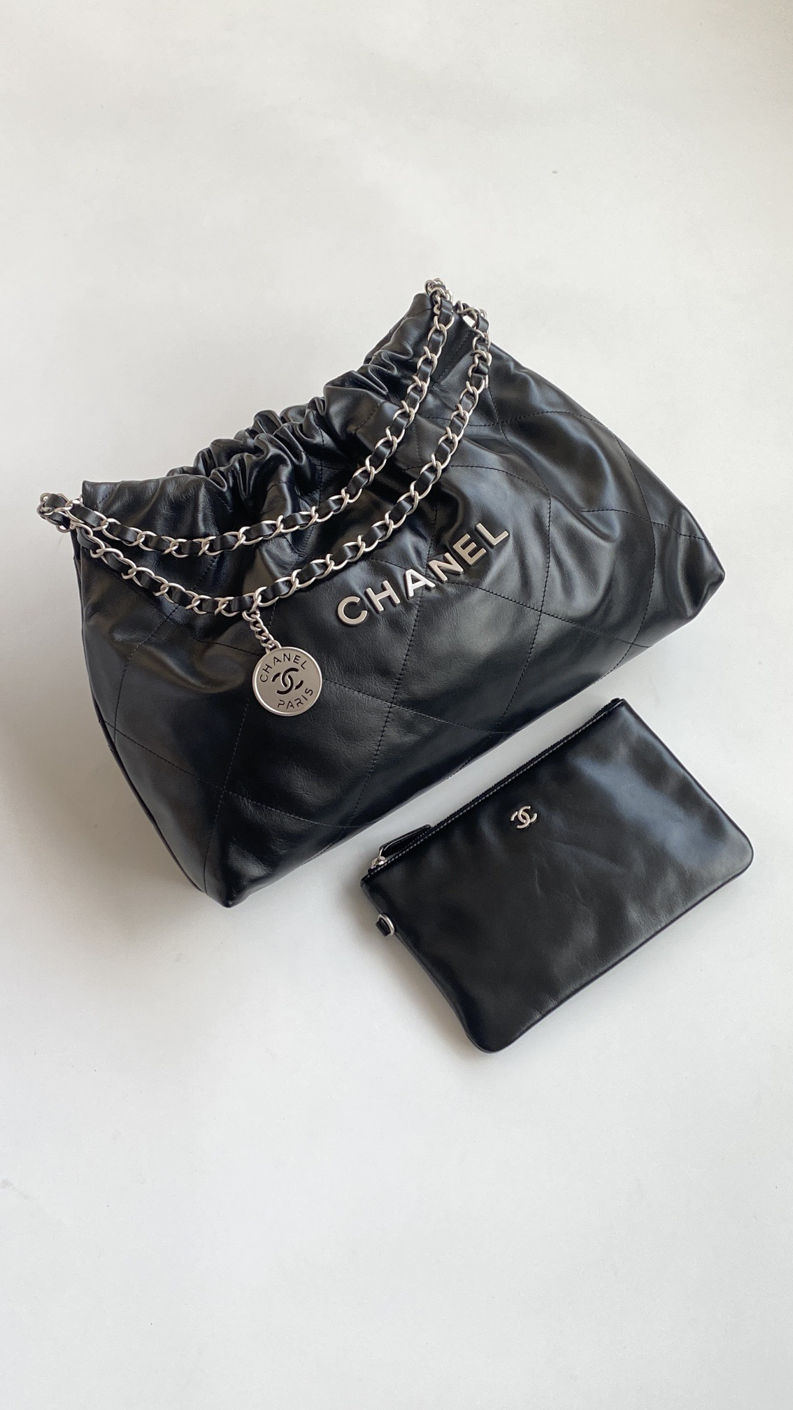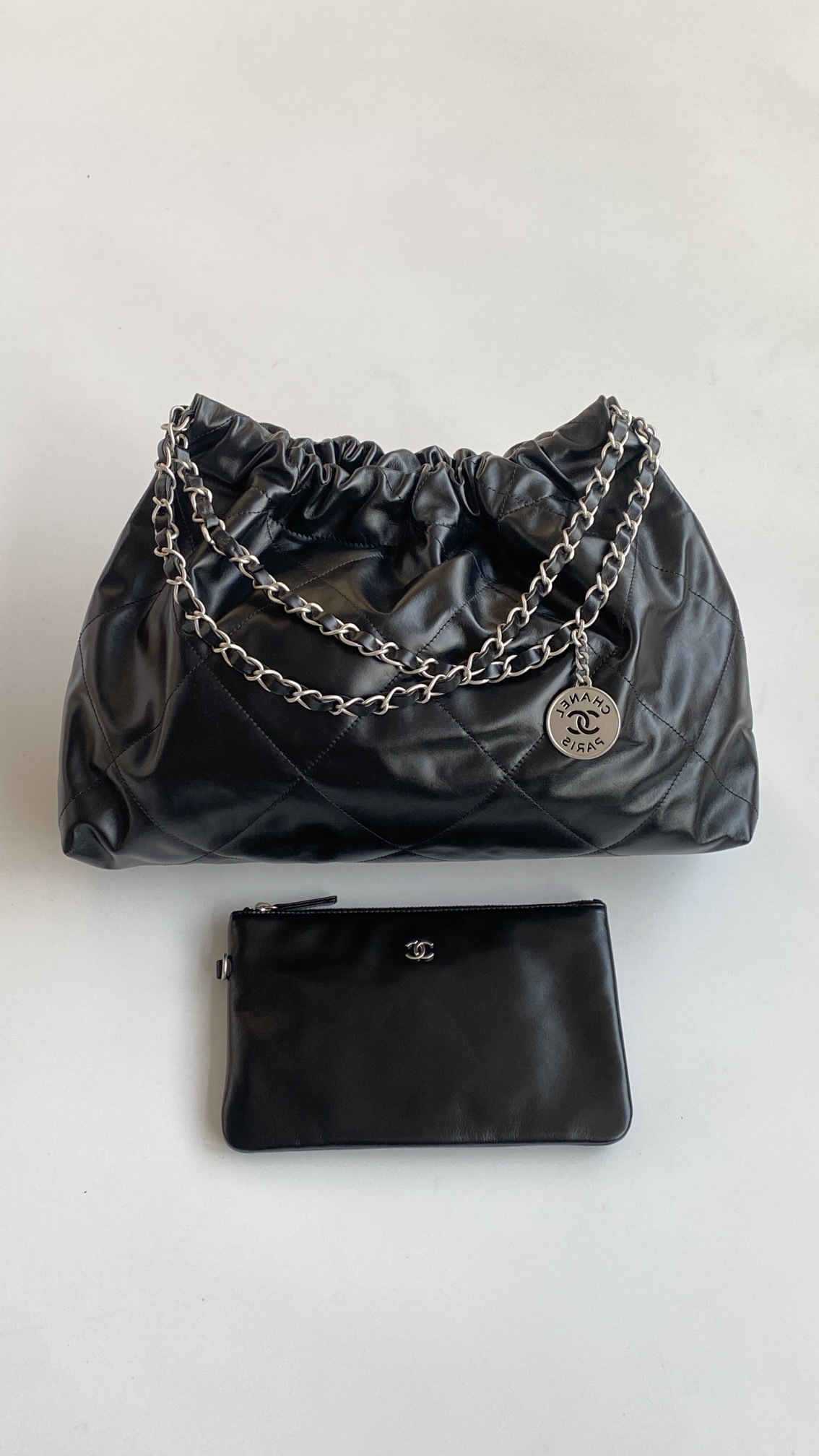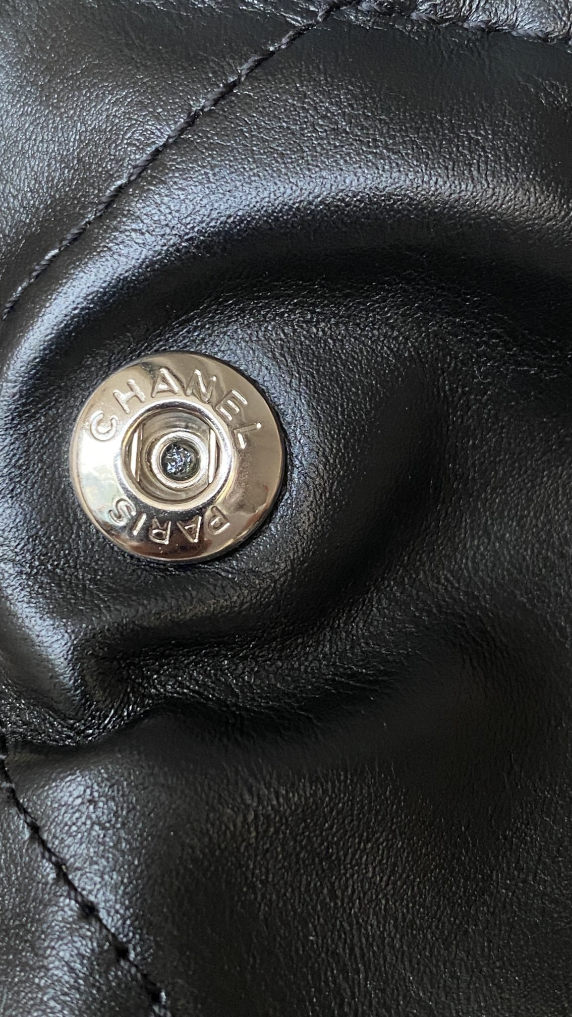 This Chanel handbag showcases the brand's exceptional craftsmanship and attention to detail. Crafted from premium calfskin, in a stunning black colorway, this piece combines timeless luxury with modern style.