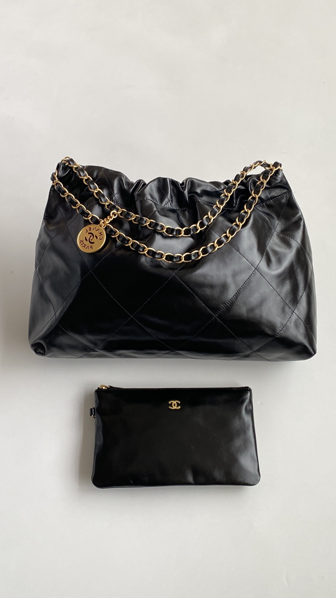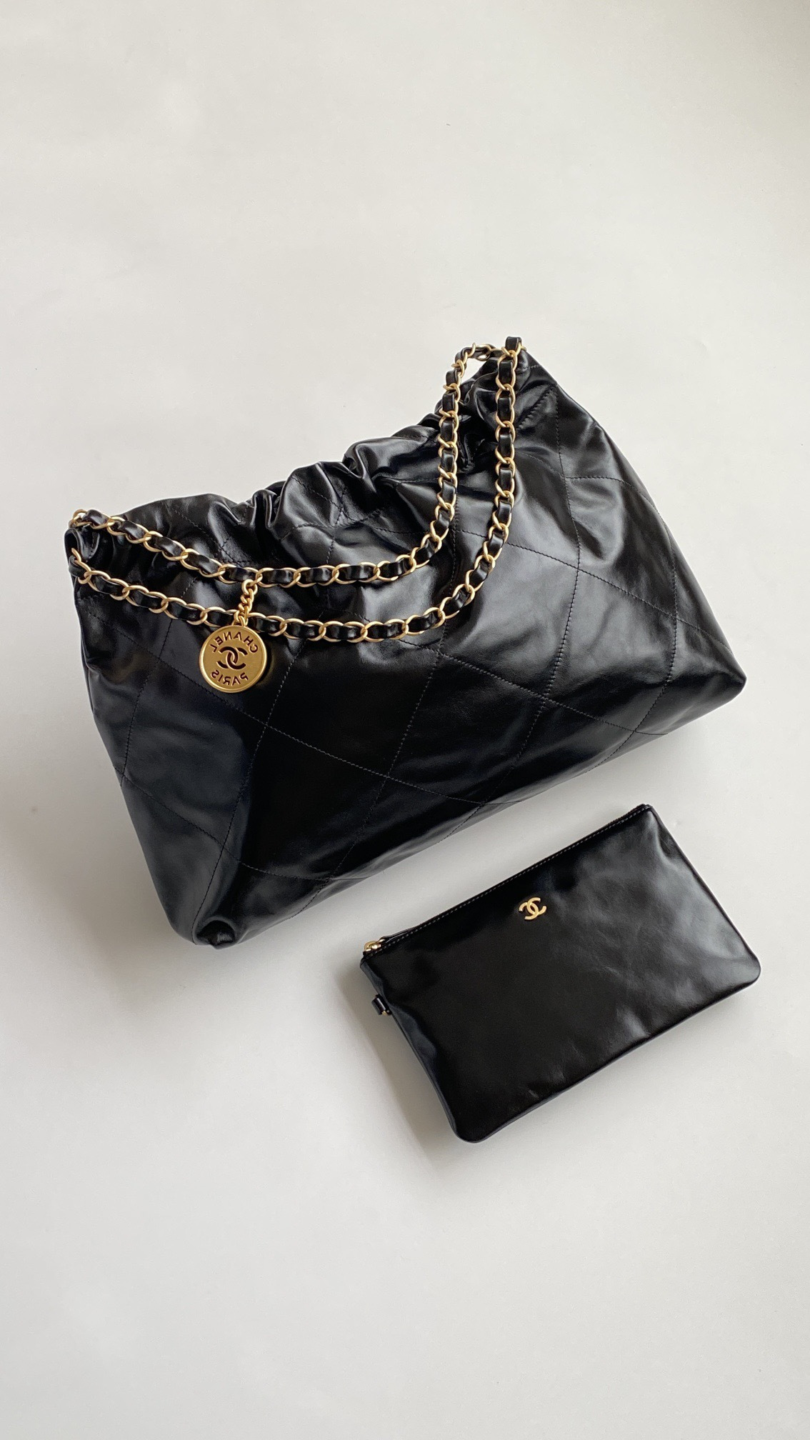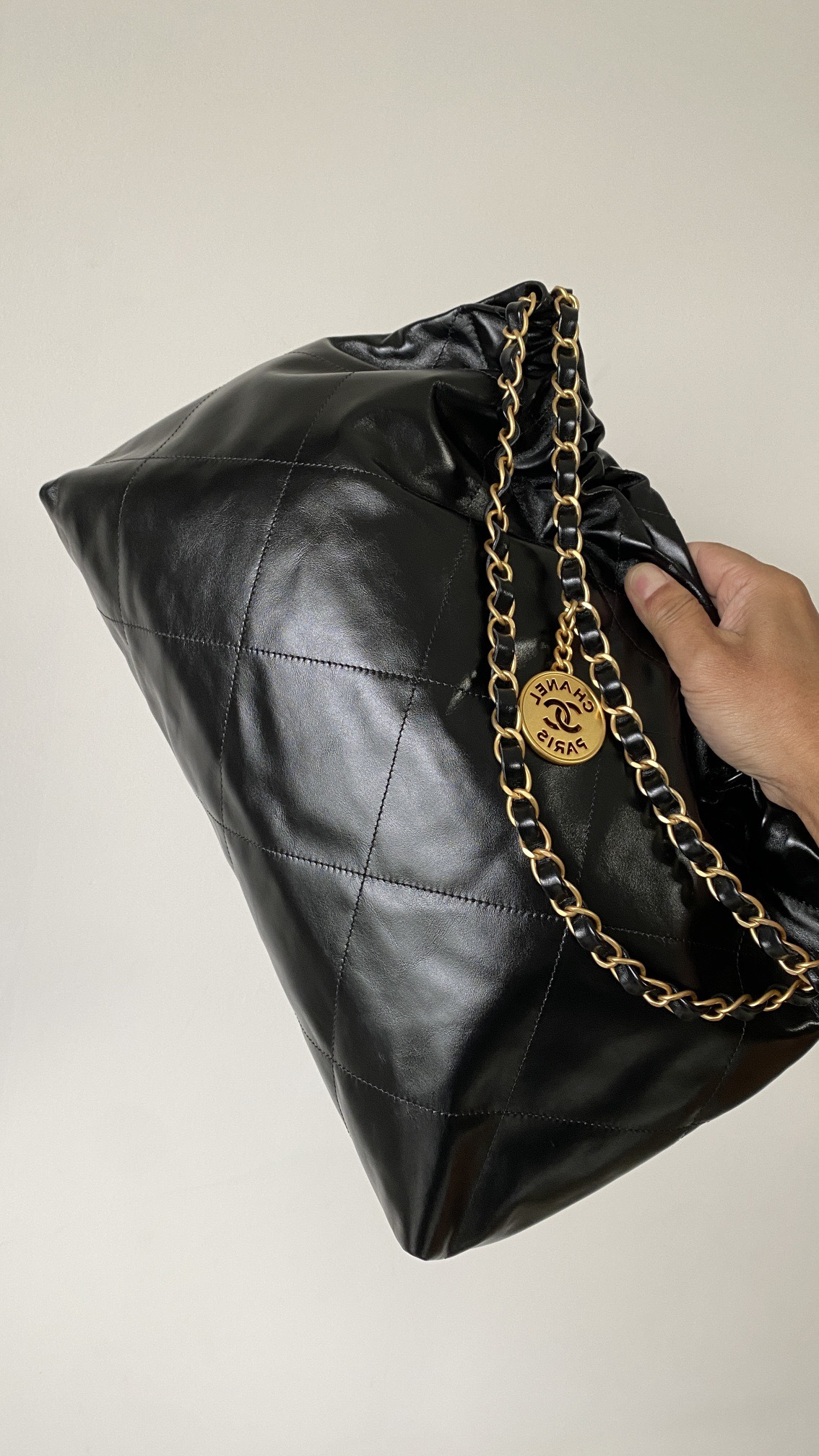 NIGO Chanel Maxi Shopping Bag Shint Calfskin Glold Tone Metal Black #nigo335960