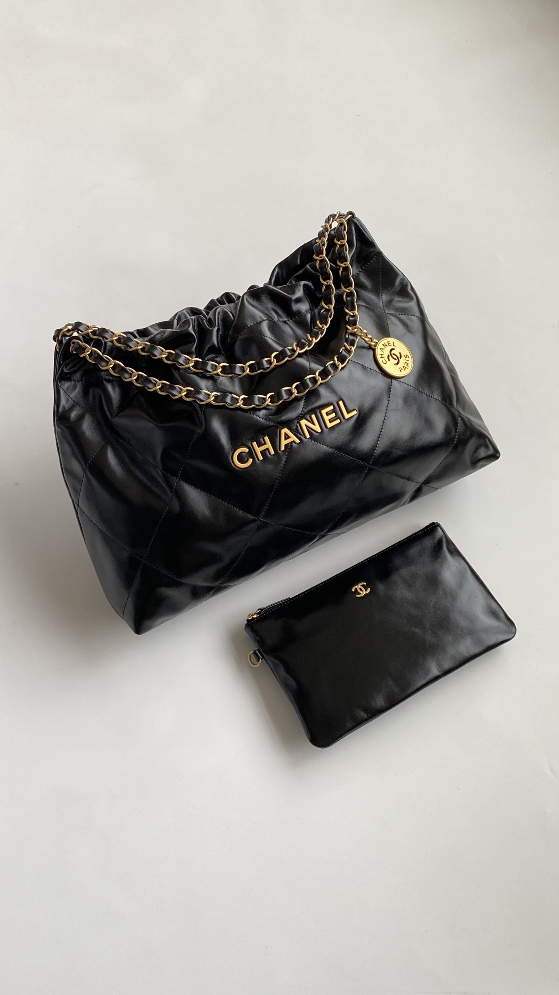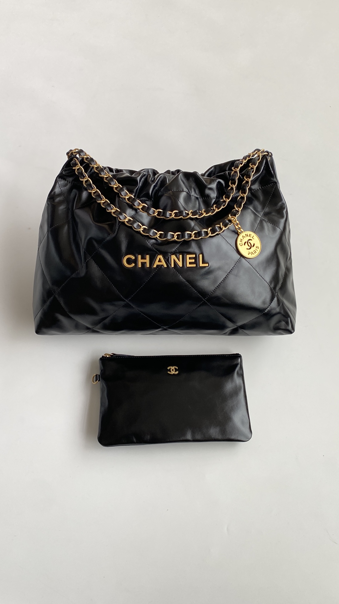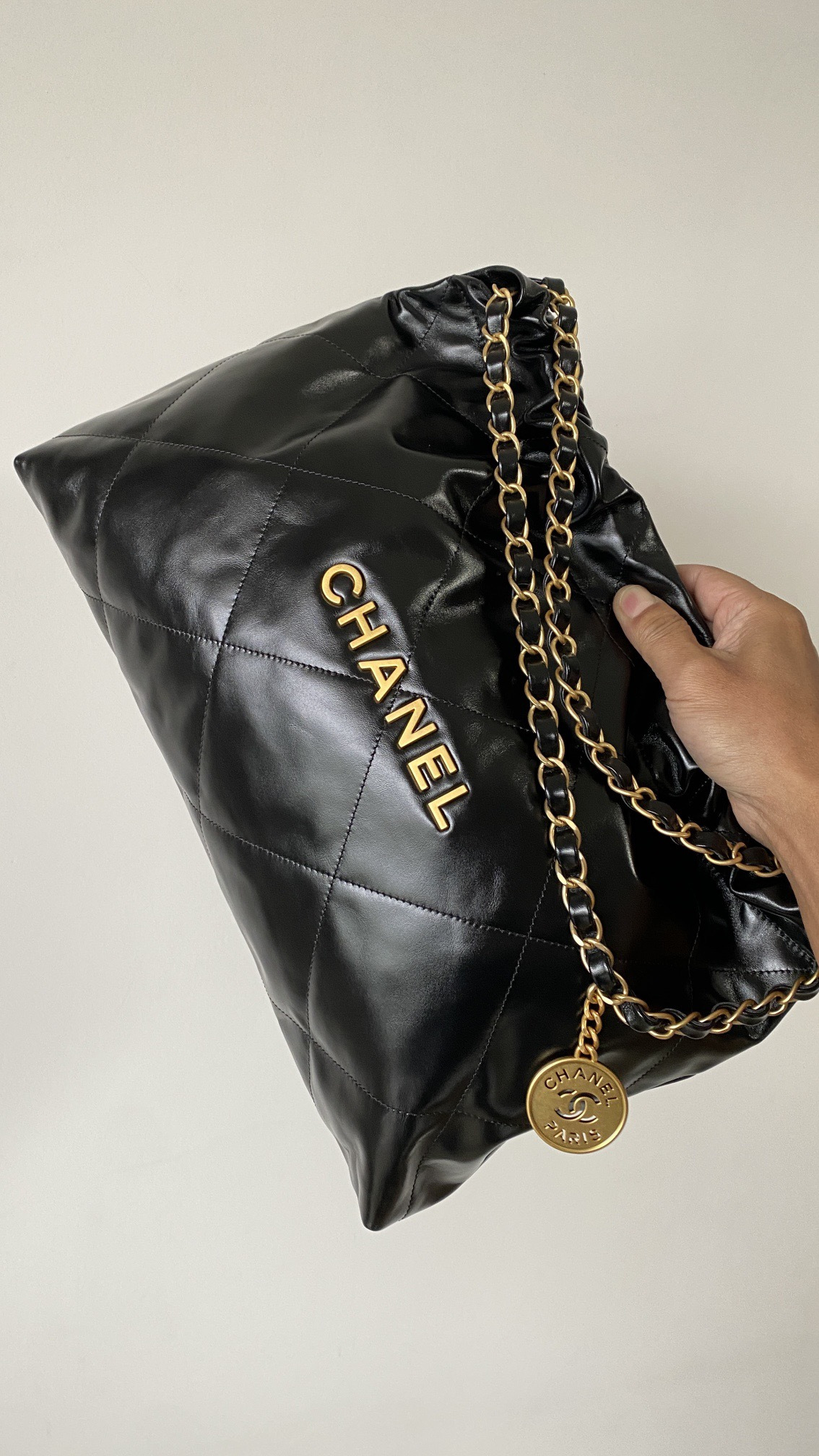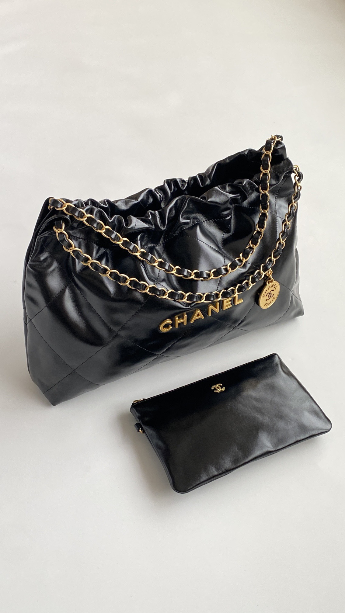 NIGO Chanel Maxi Shopping Bag Shint Calfskin Glold Tone Metal Black #nigo335960