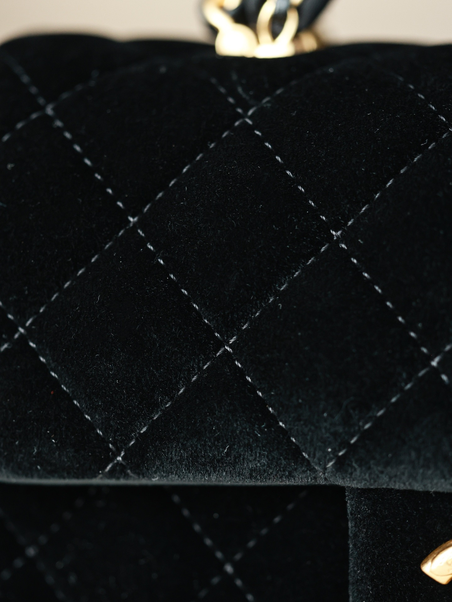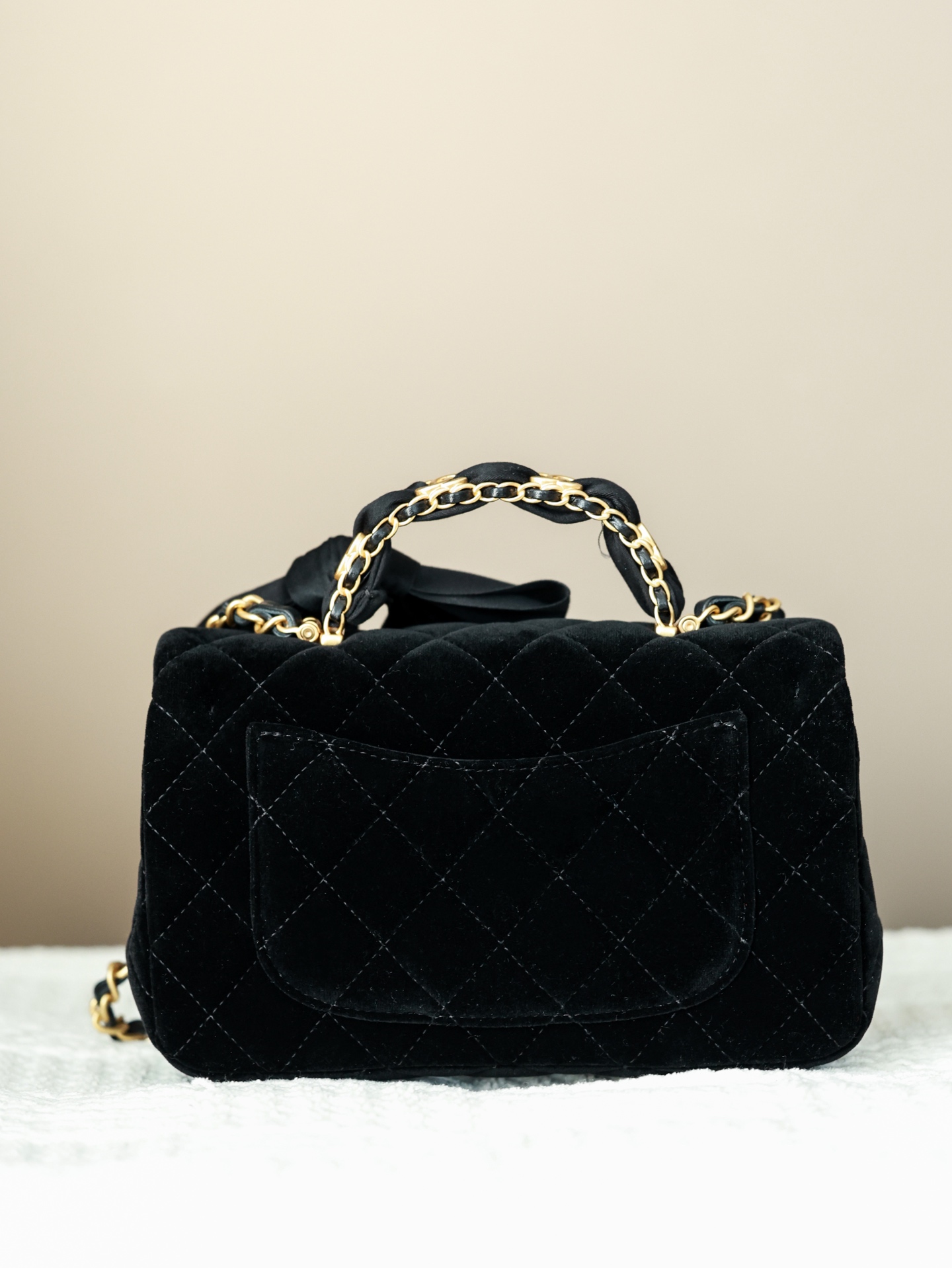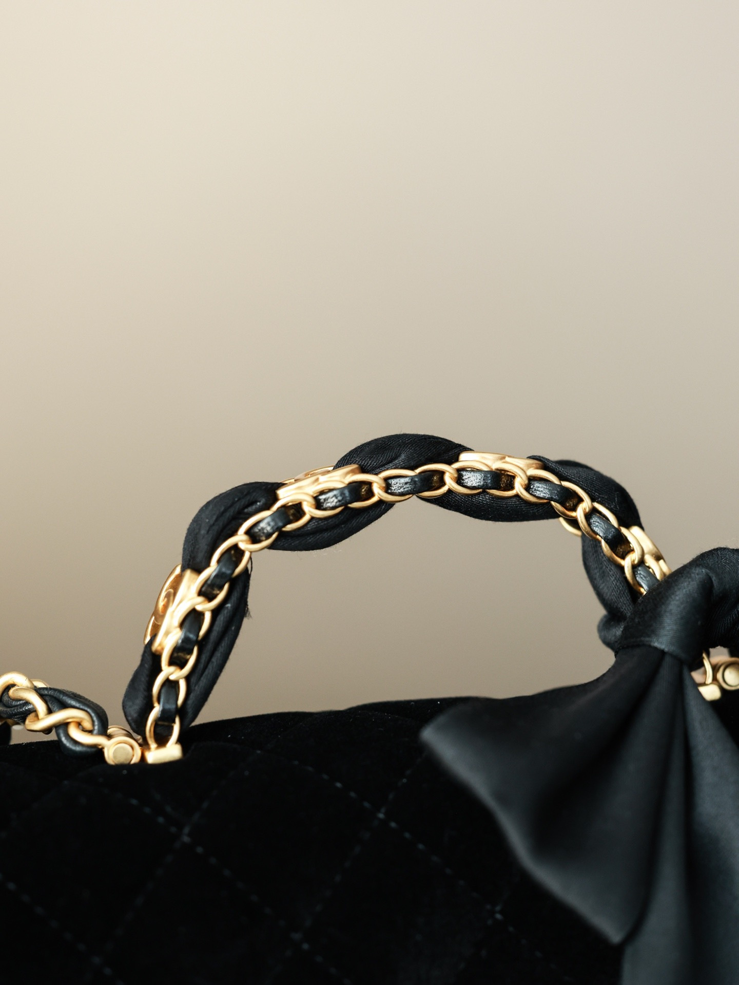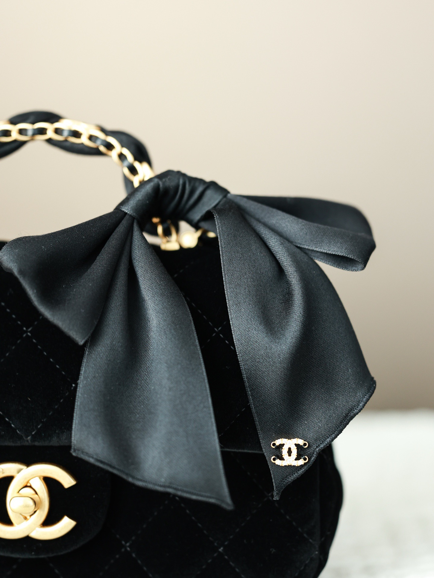NIGO Chanel Mini Flap Bag With Top Handle Velvet Silk Gold-tone Metal Black #nigo336177
