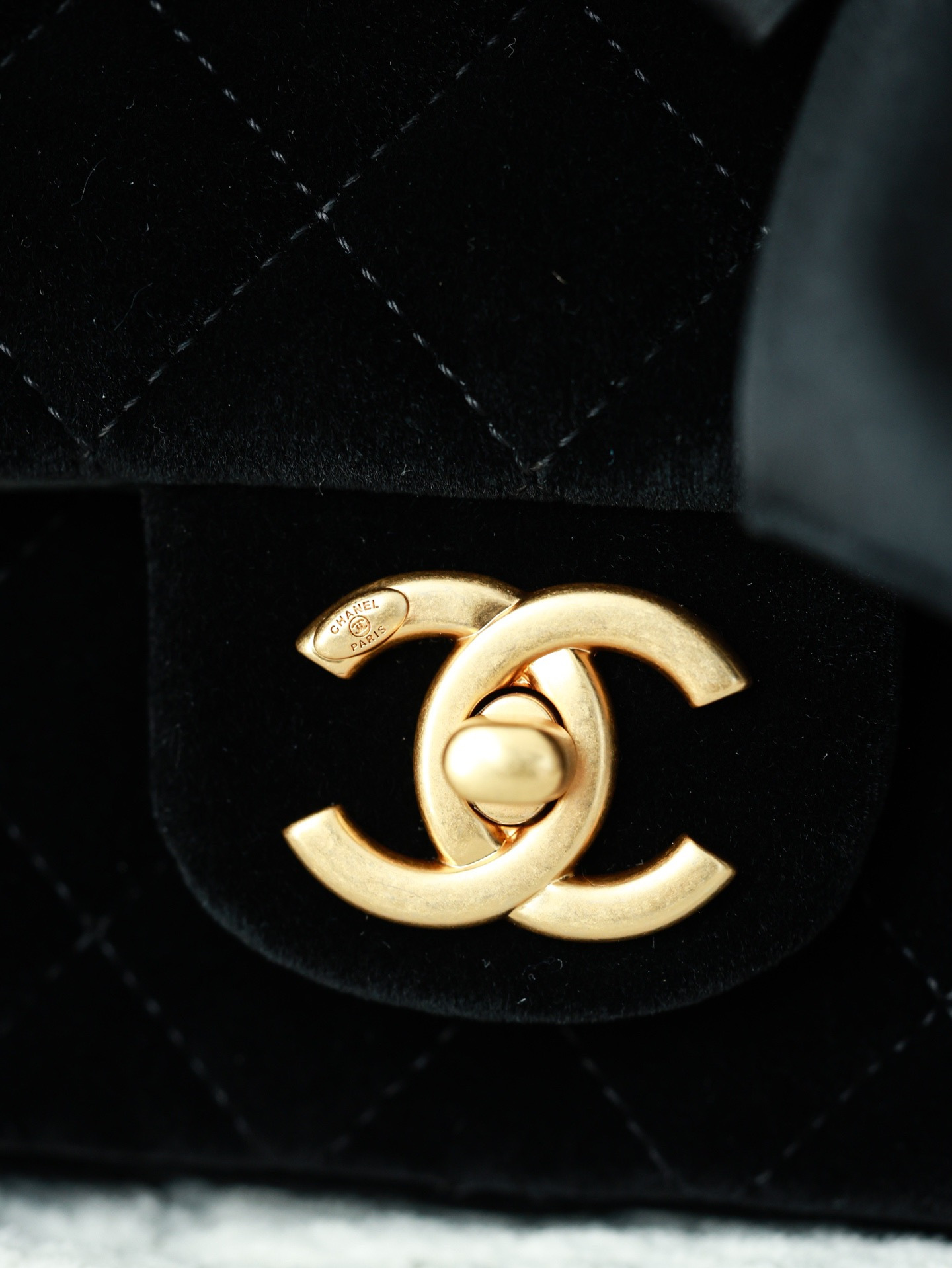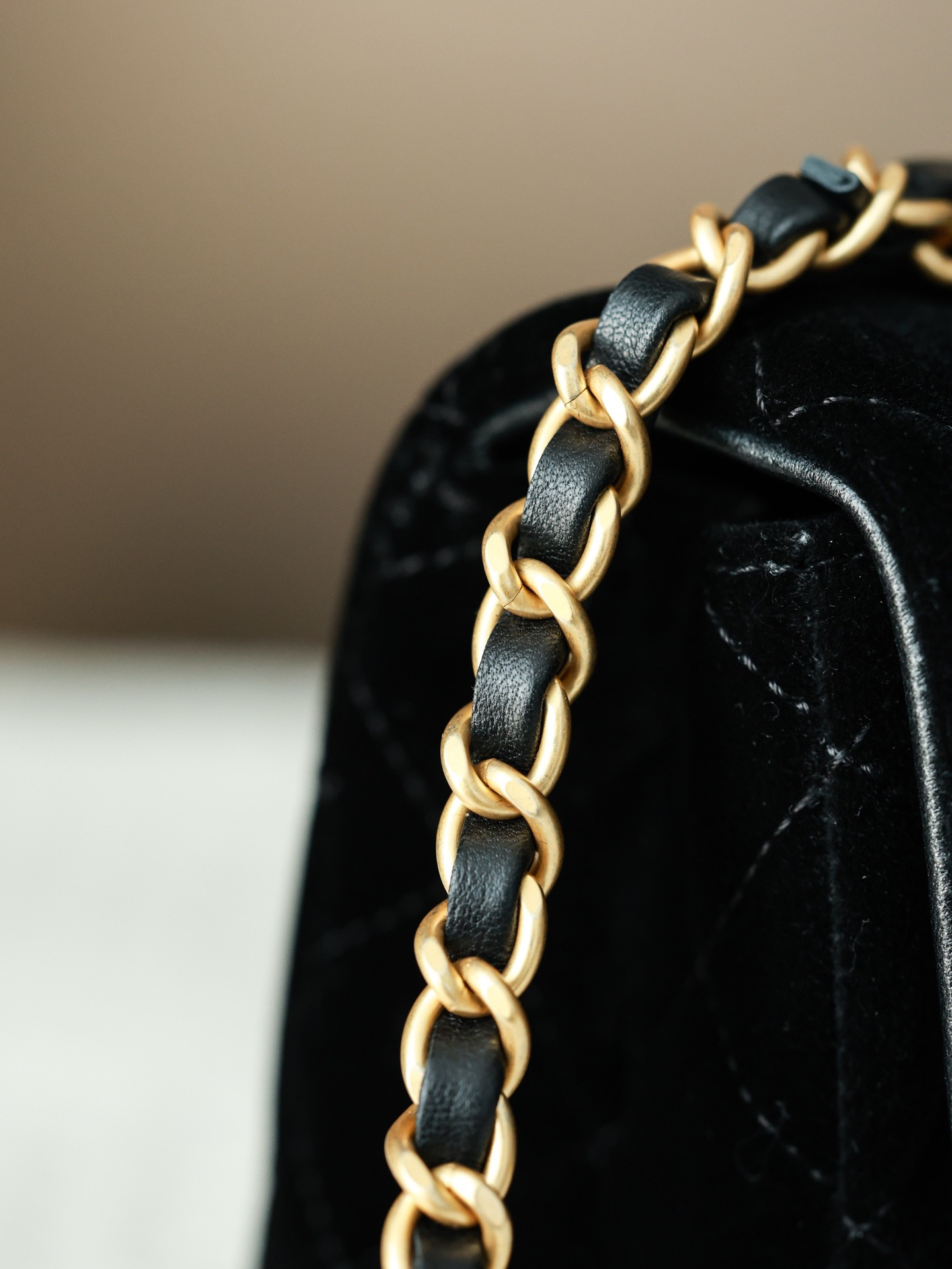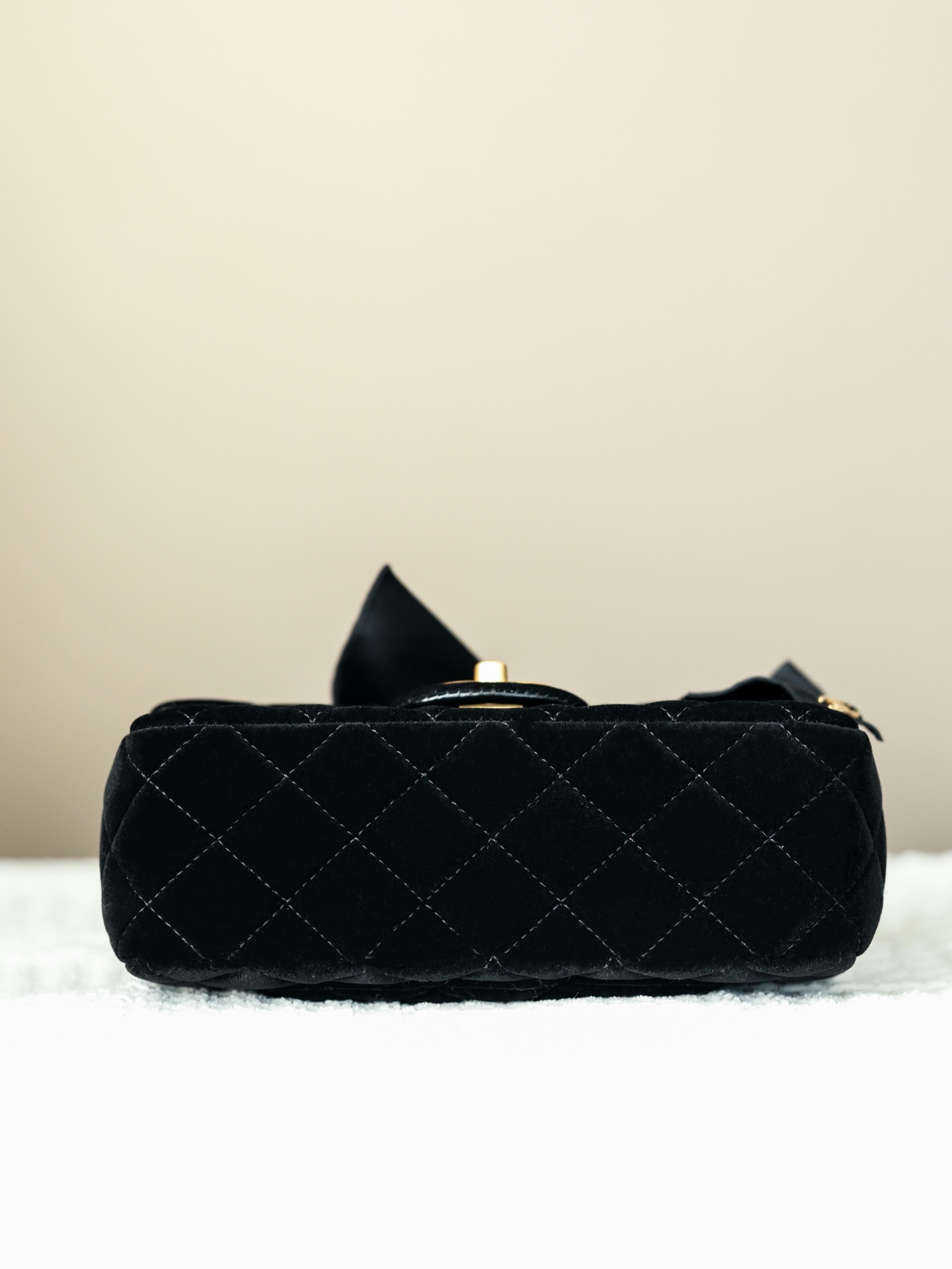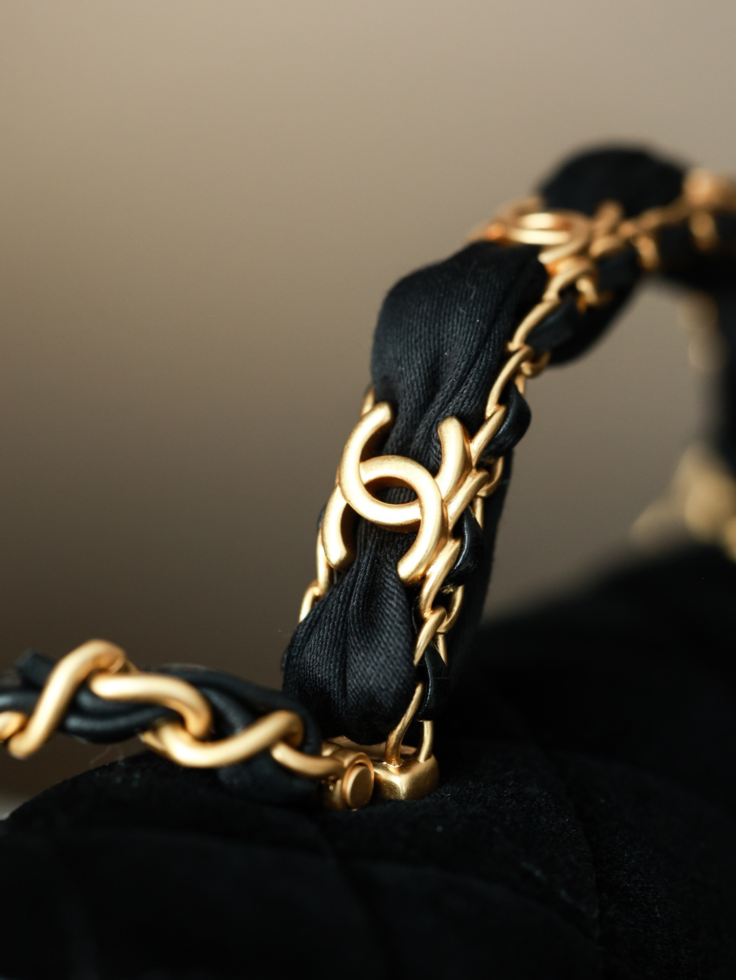 NIGO Chanel Mini Flap Bag With Top Handle Velvet Silk Gold-tone Metal Black #nigo336177