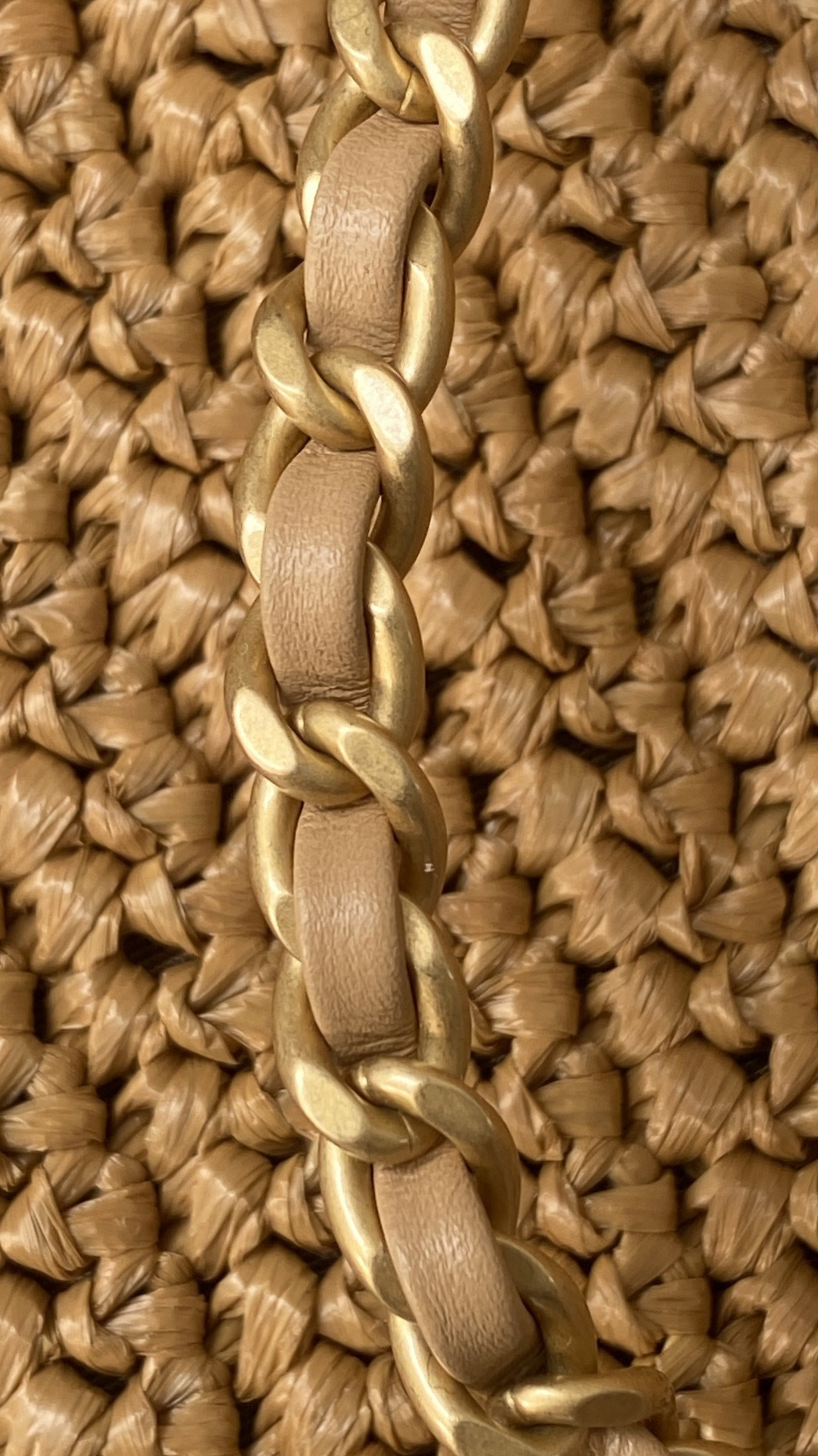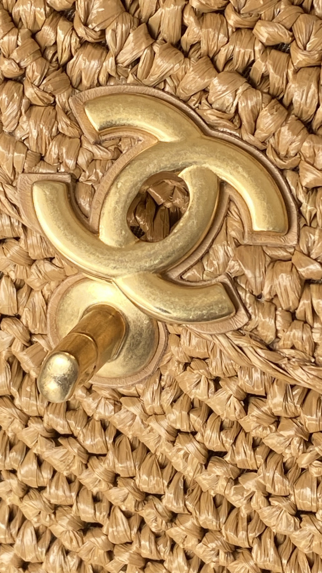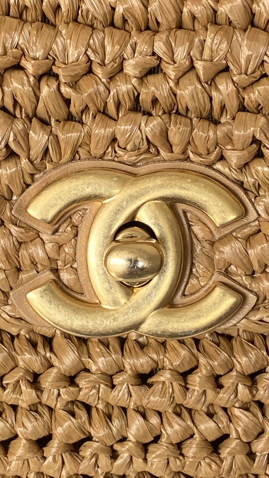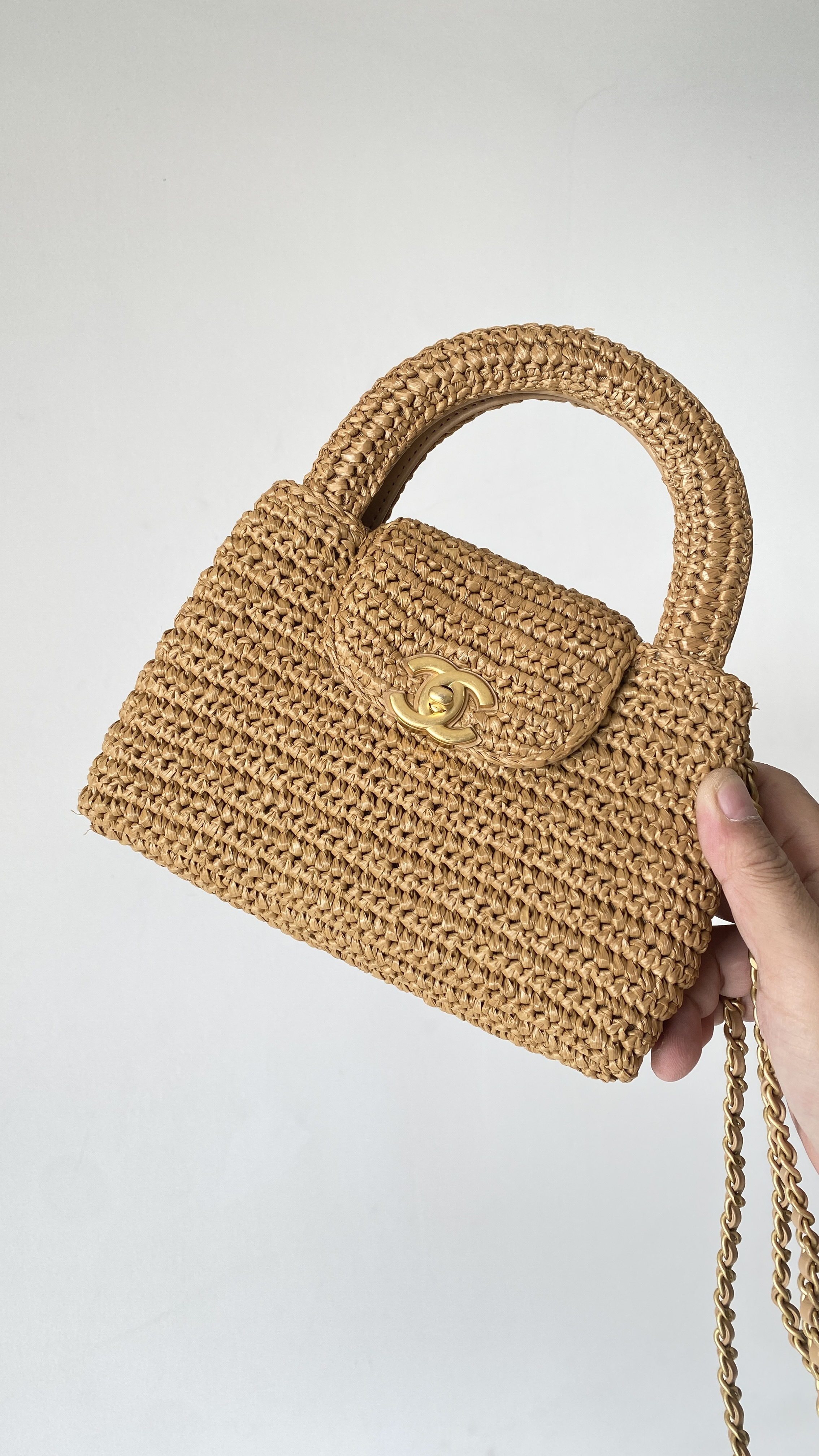 NIGO Chanel Mini Shopping Bag Braided Raffia Gold Tone Metal Dark Beige #nigo335258