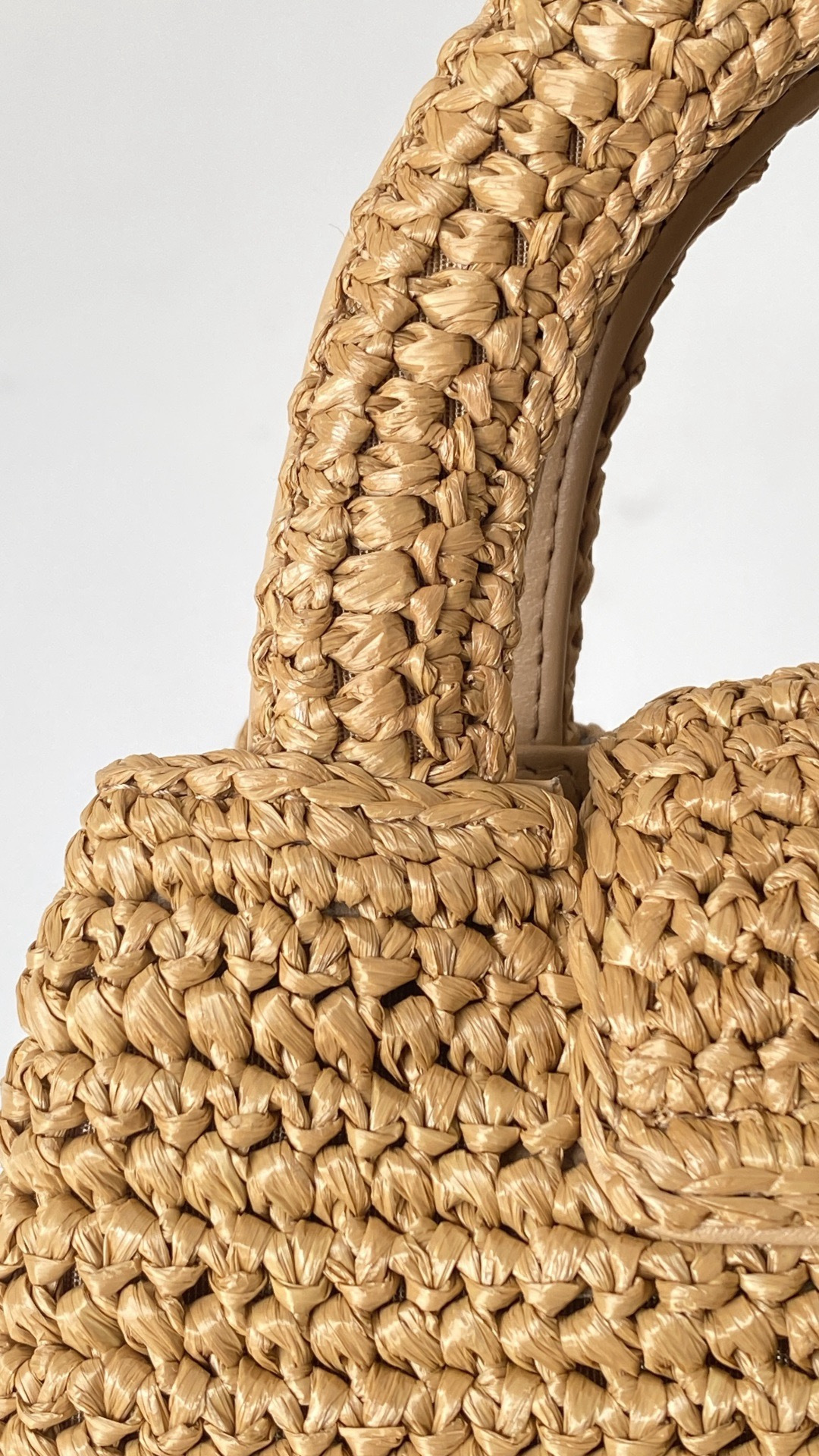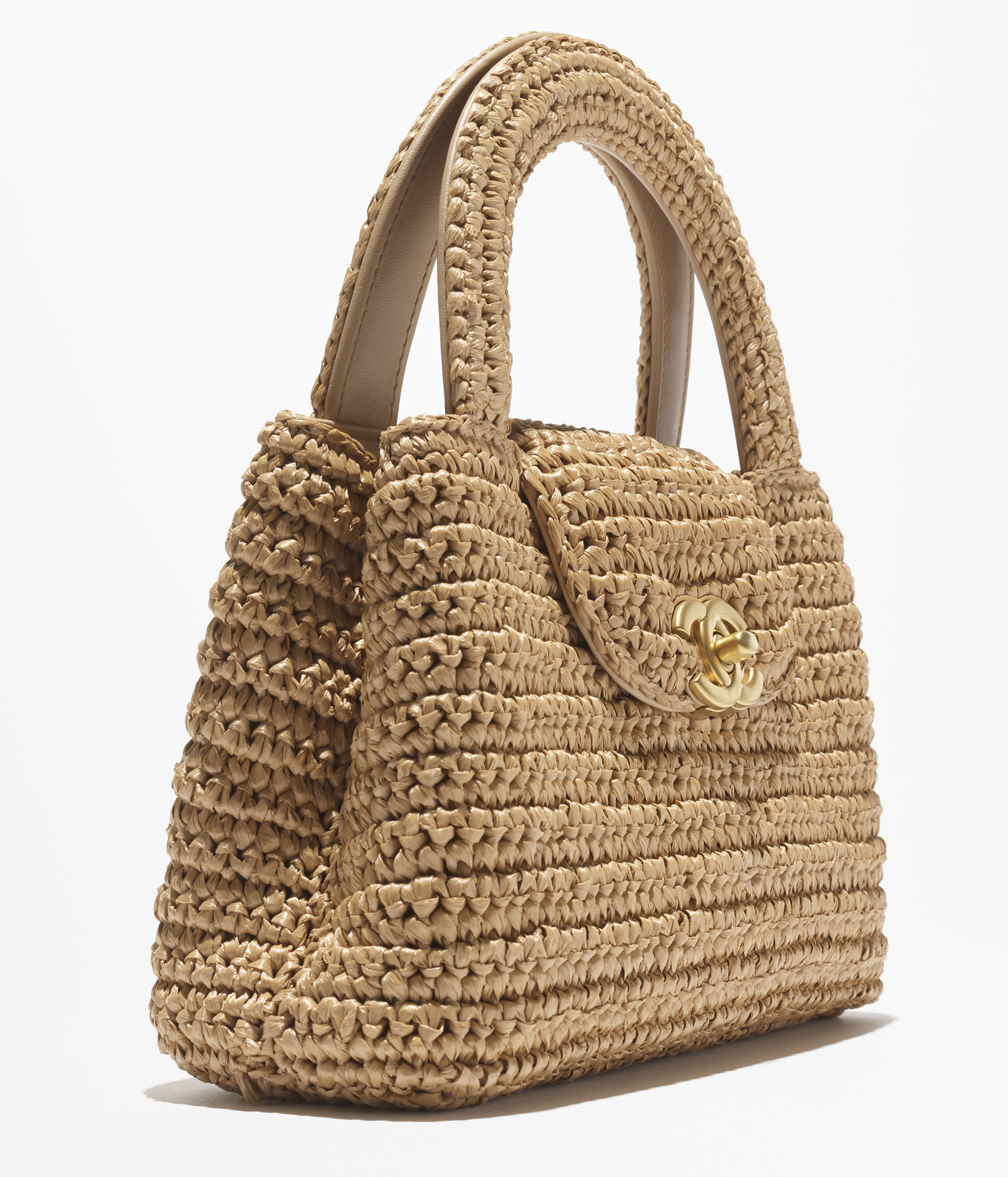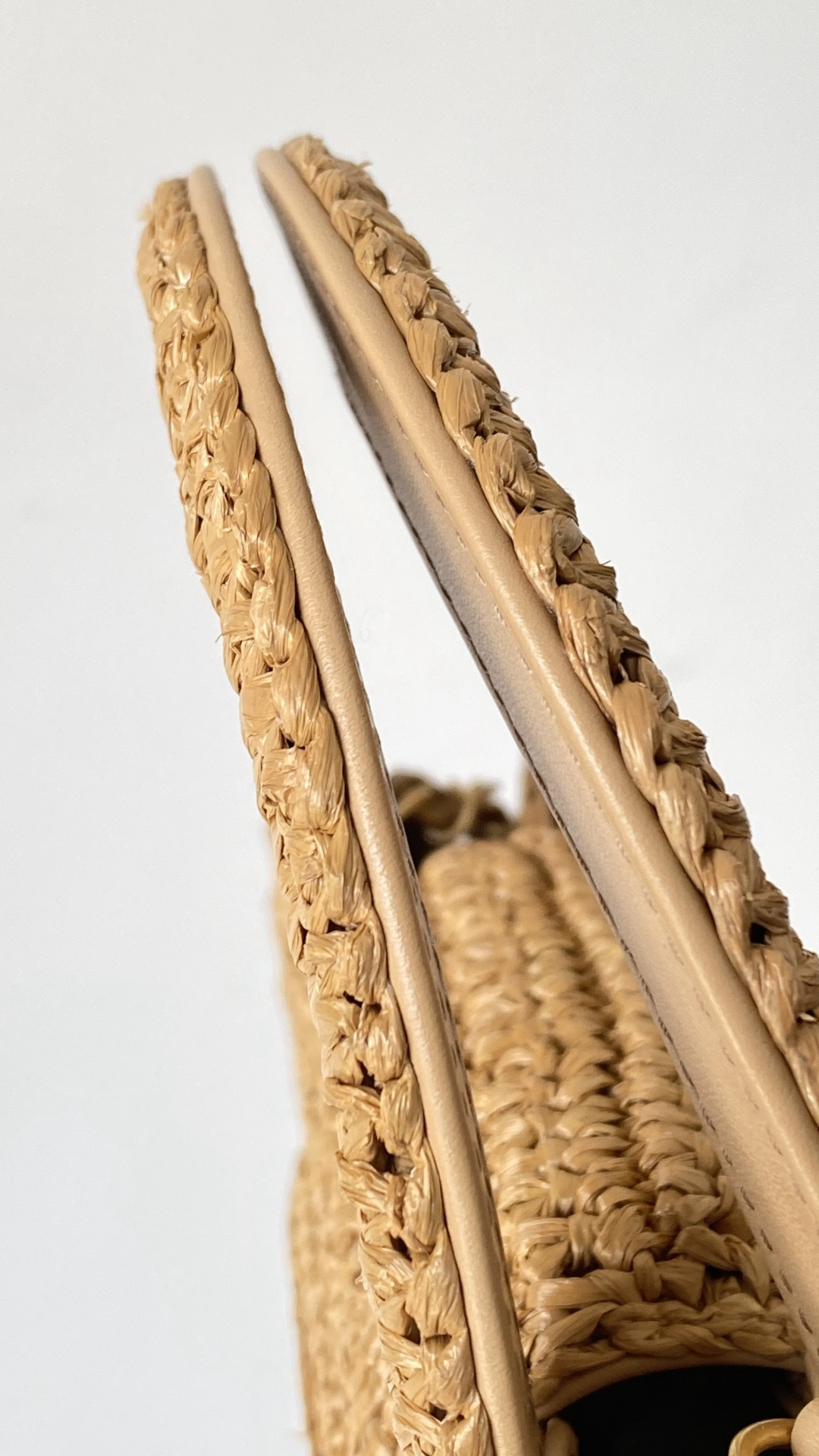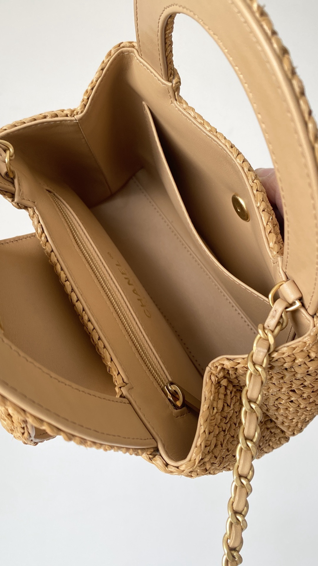 NIGO Chanel Mini Shopping Bag Braided Raffia Gold Tone Metal Dark Beige #nigo335258