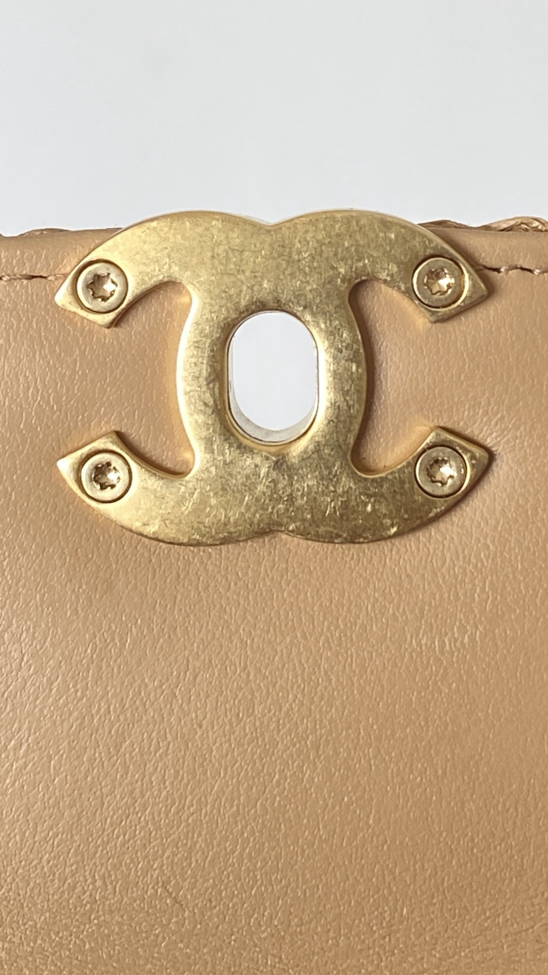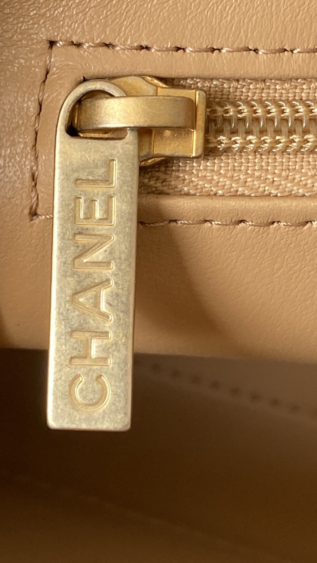 This Chanel handbag showcases the brand's exceptional craftsmanship and attention to detail. Crafted from premium gold, in a stunning beige / gold colorway, this piece combines timeless luxury with modern style.