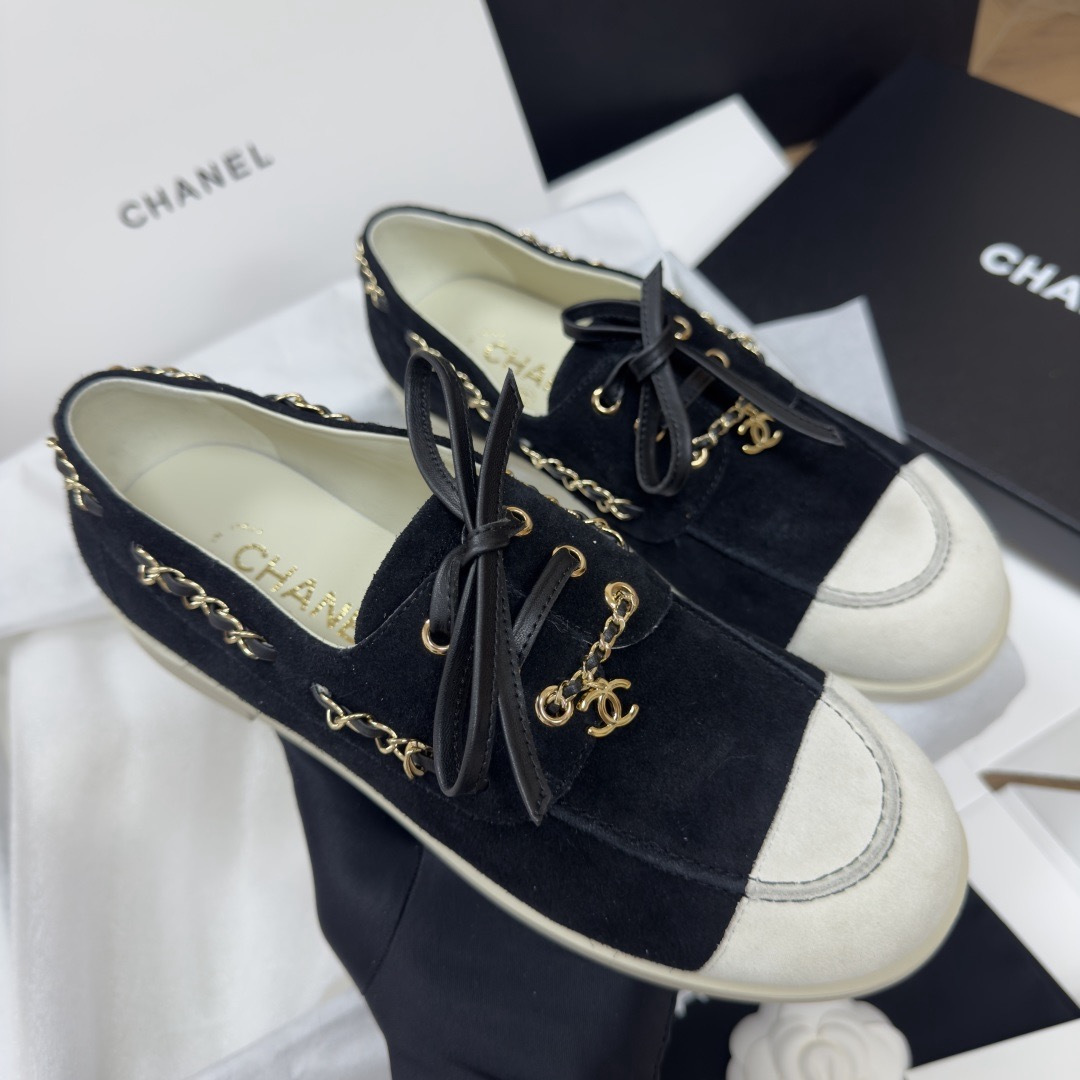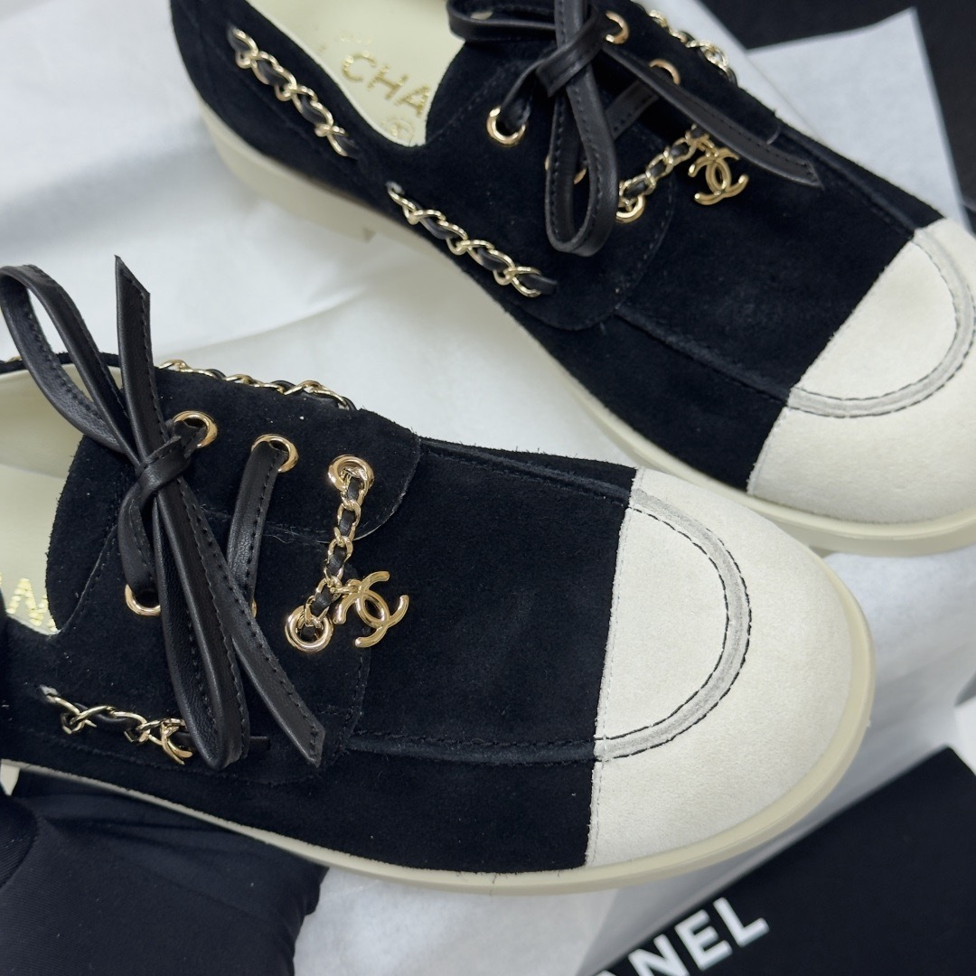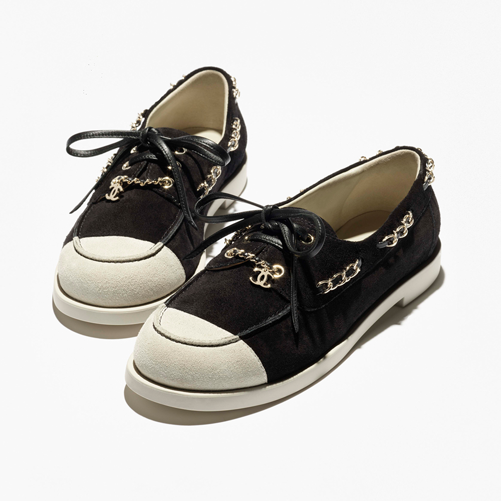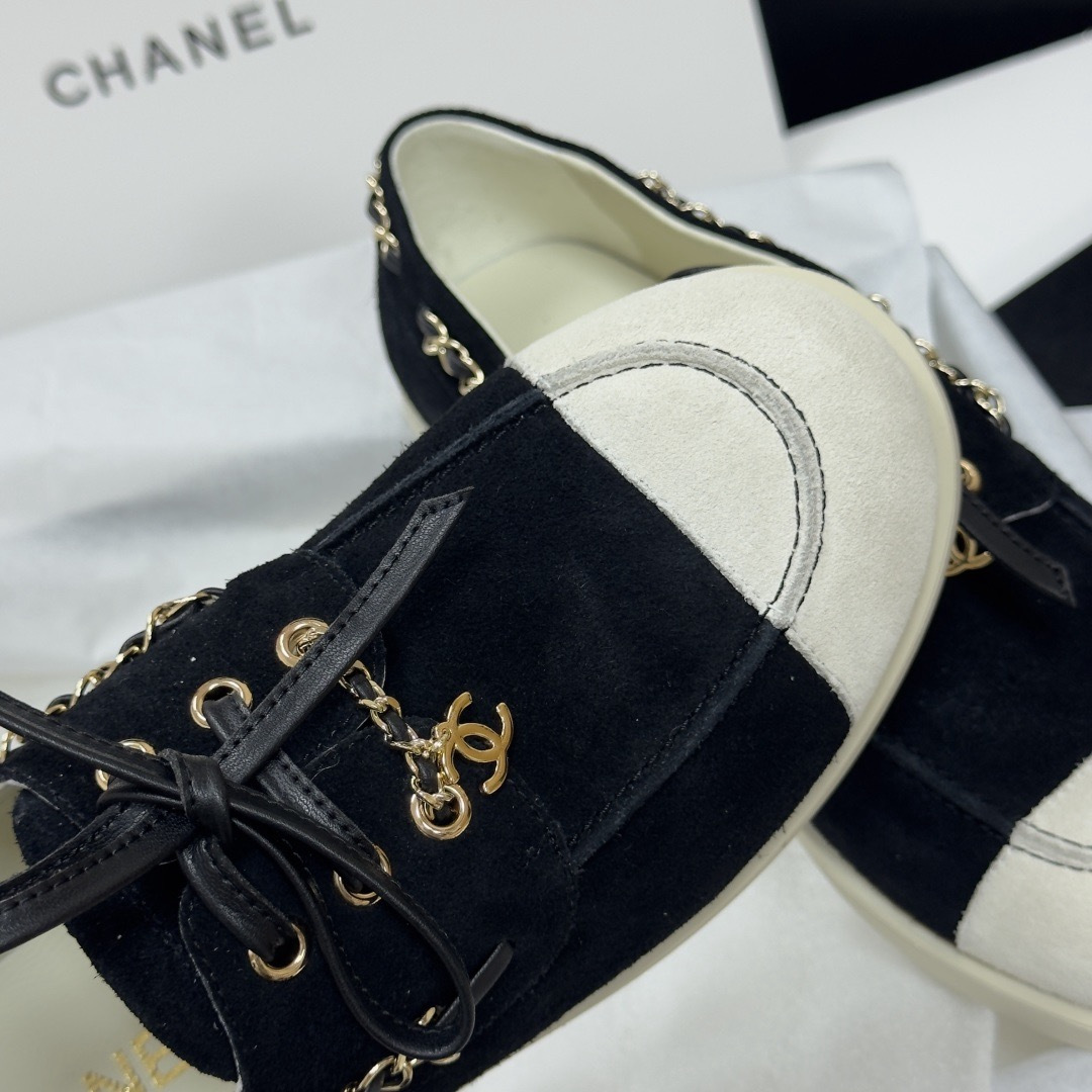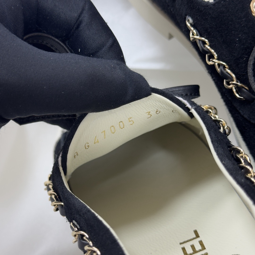 NIGO Chanel Moccasins Suede Calfskin Black Light Gray #nigo336618