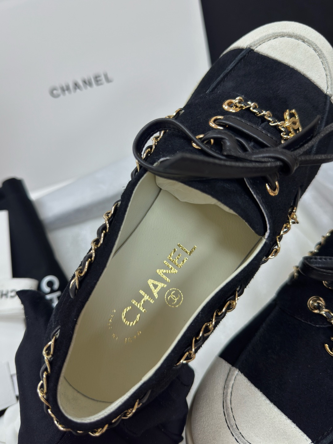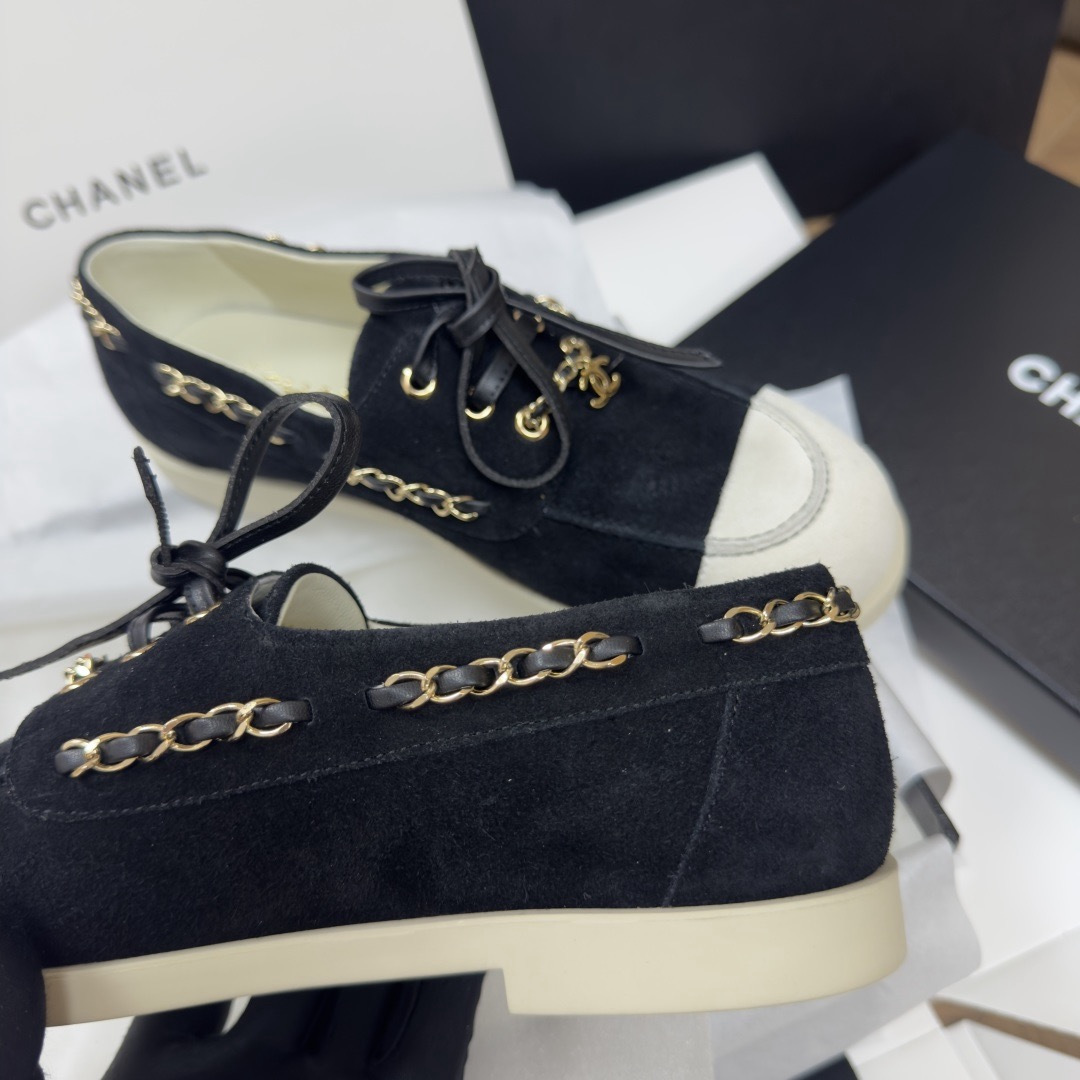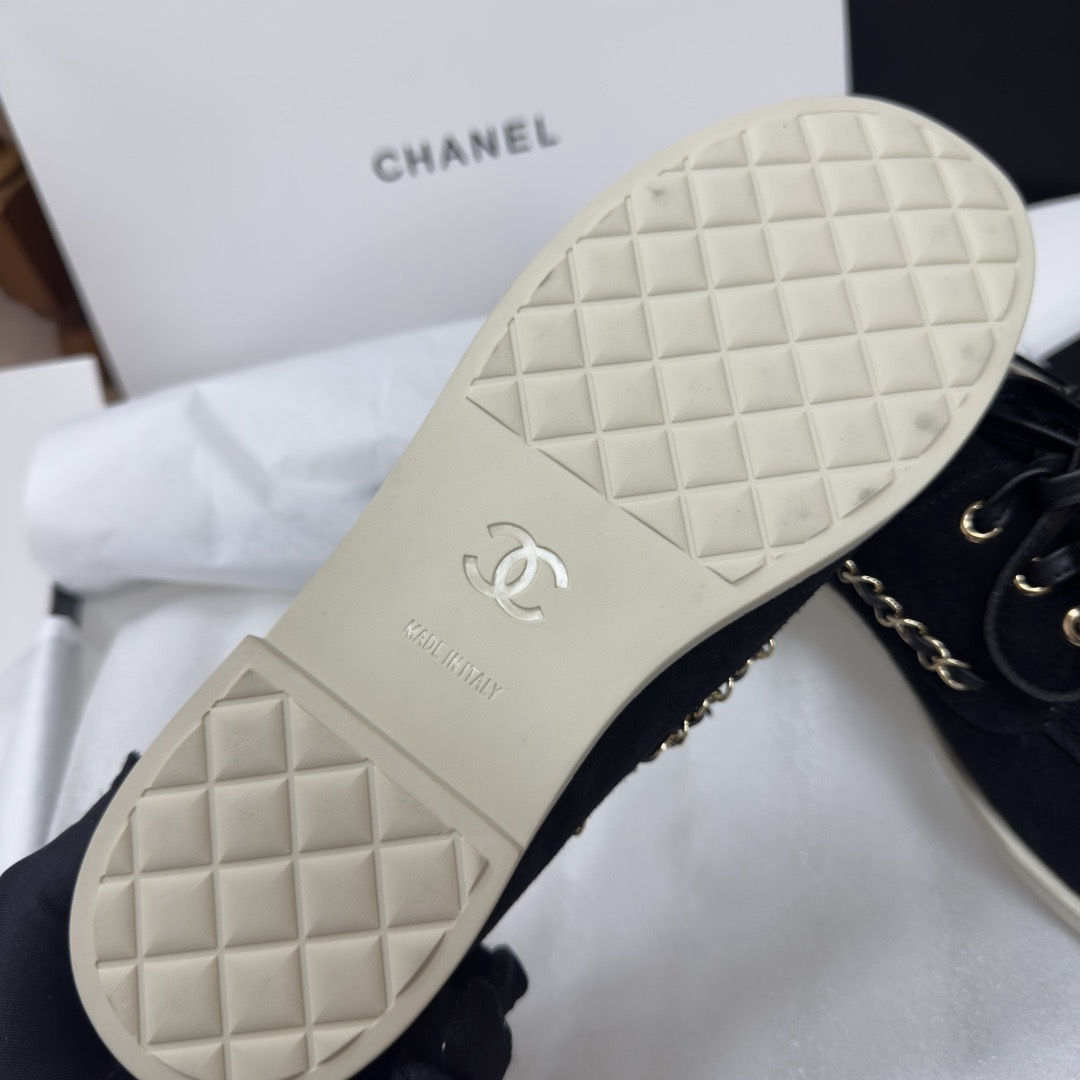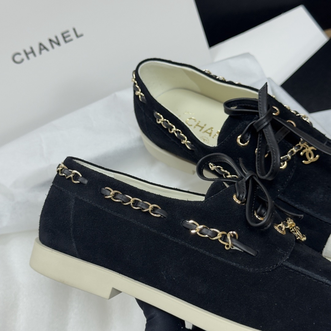 NIGO Chanel Moccasins Suede Calfskin Black Light Gray #nigo336618