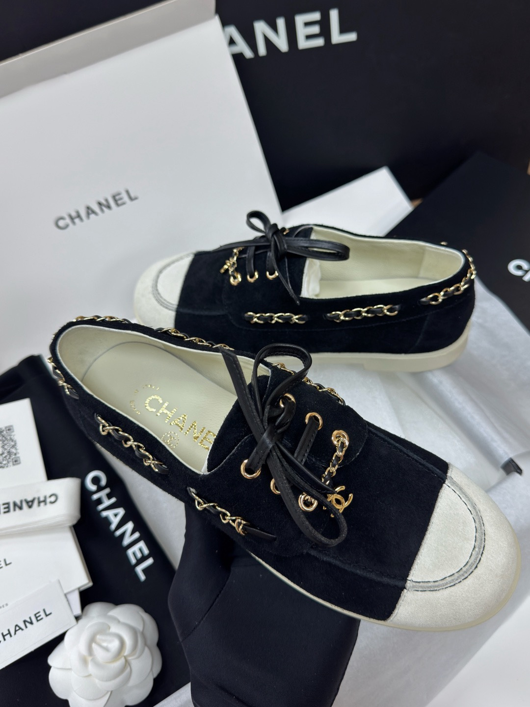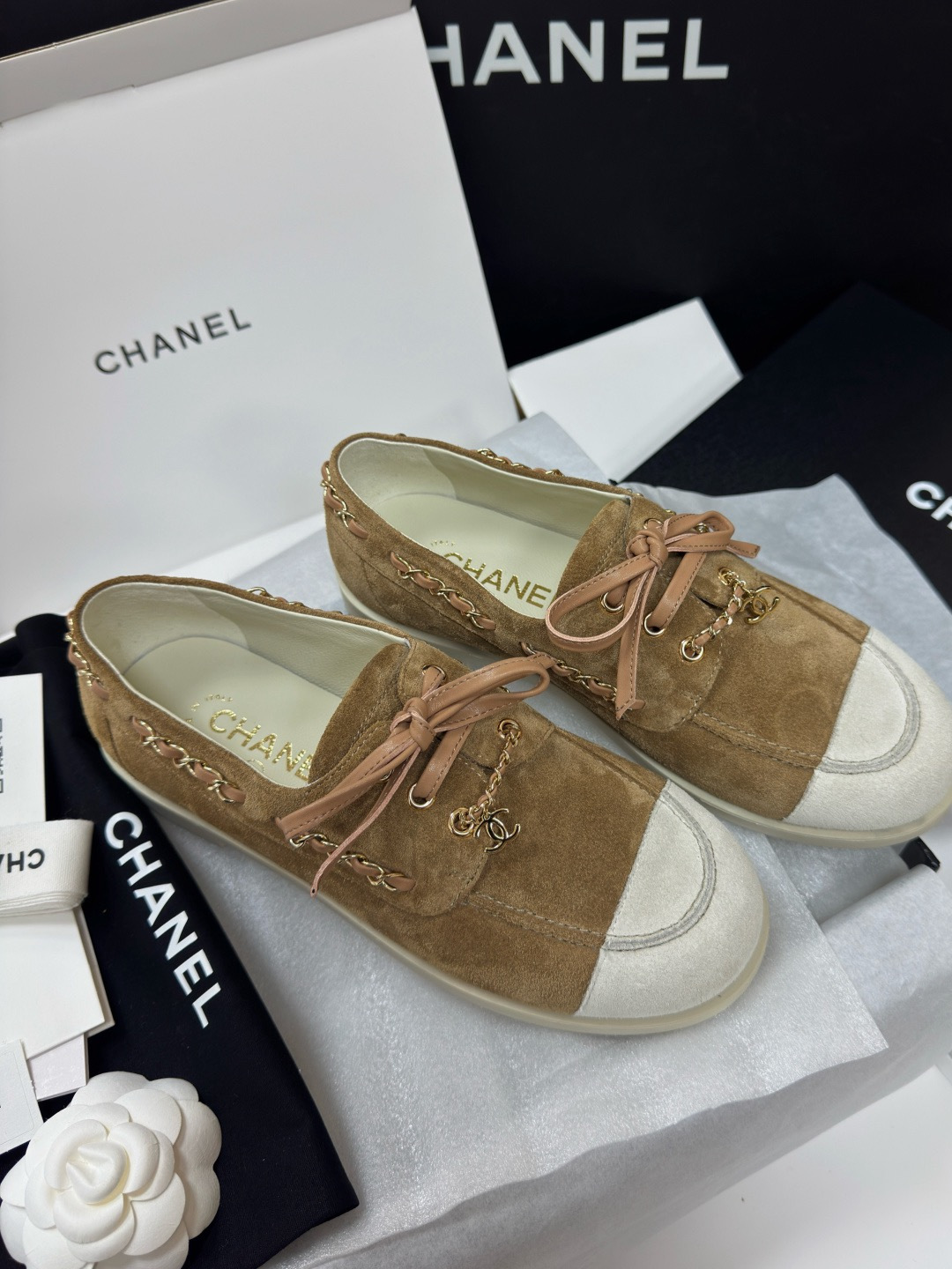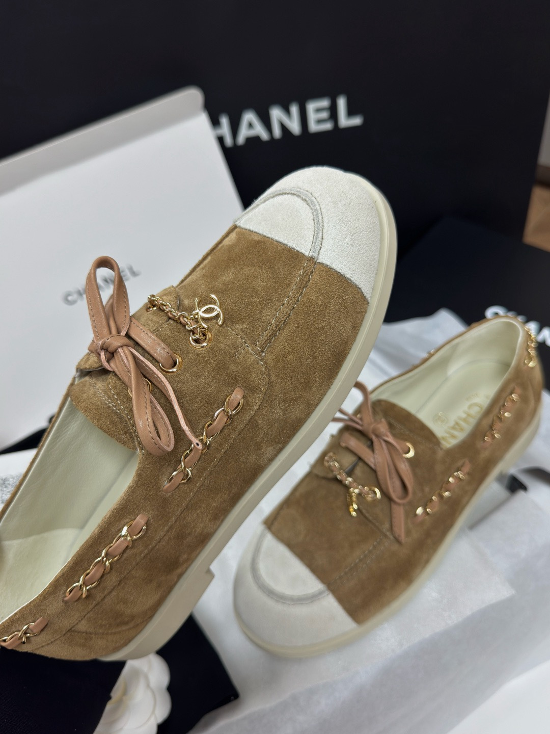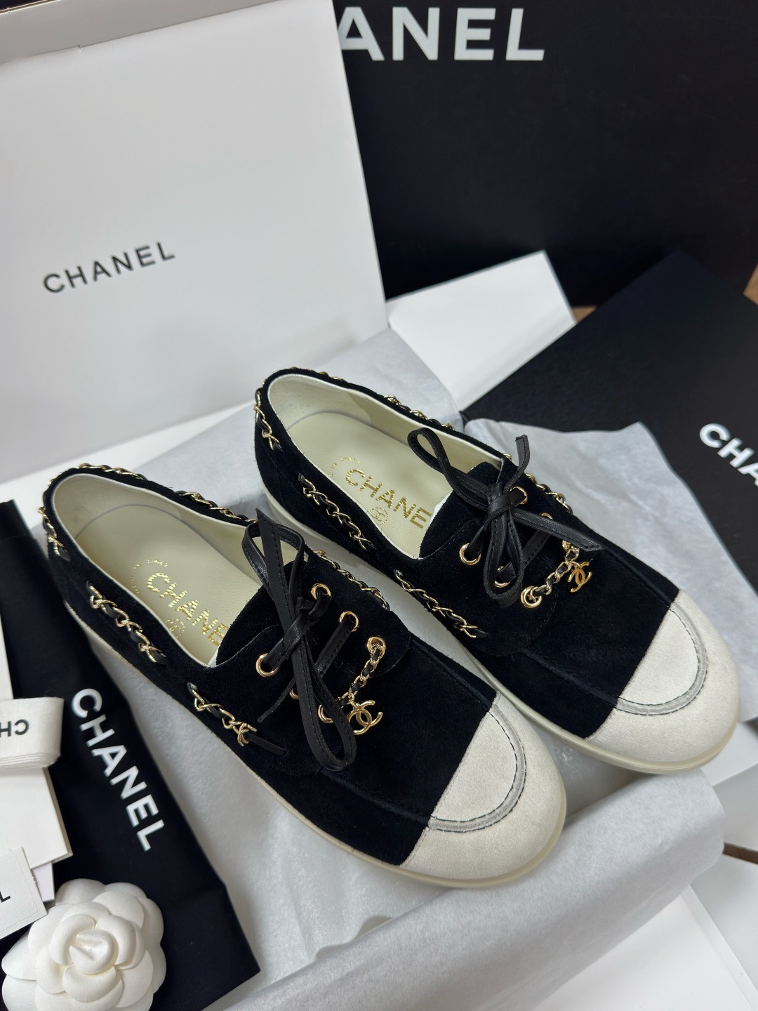 NIGO Chanel Moccasins Suede Calfskin Black Light Gray #nigo336618