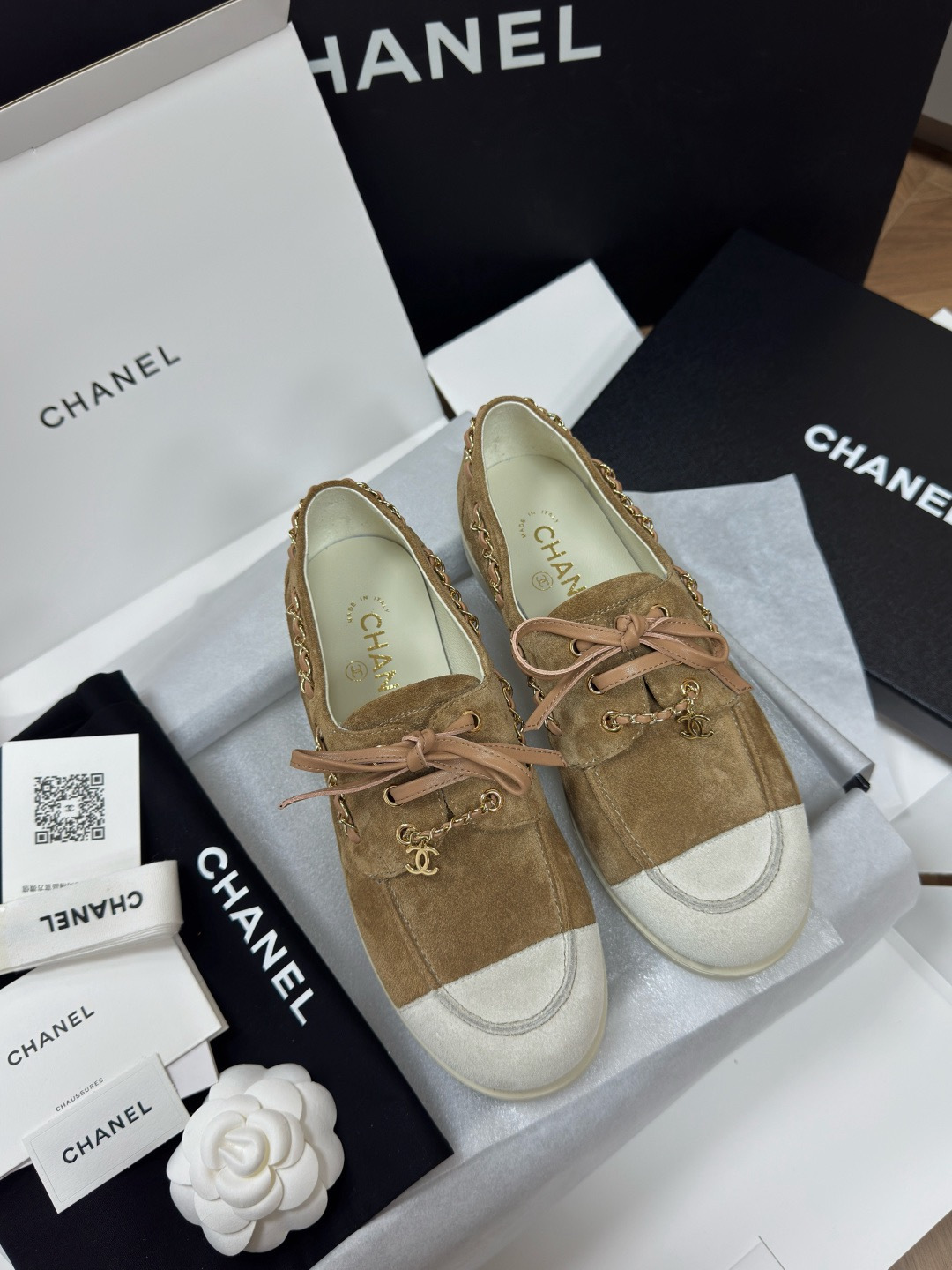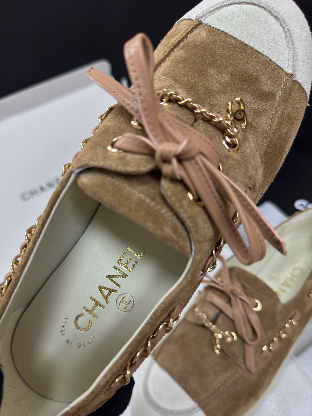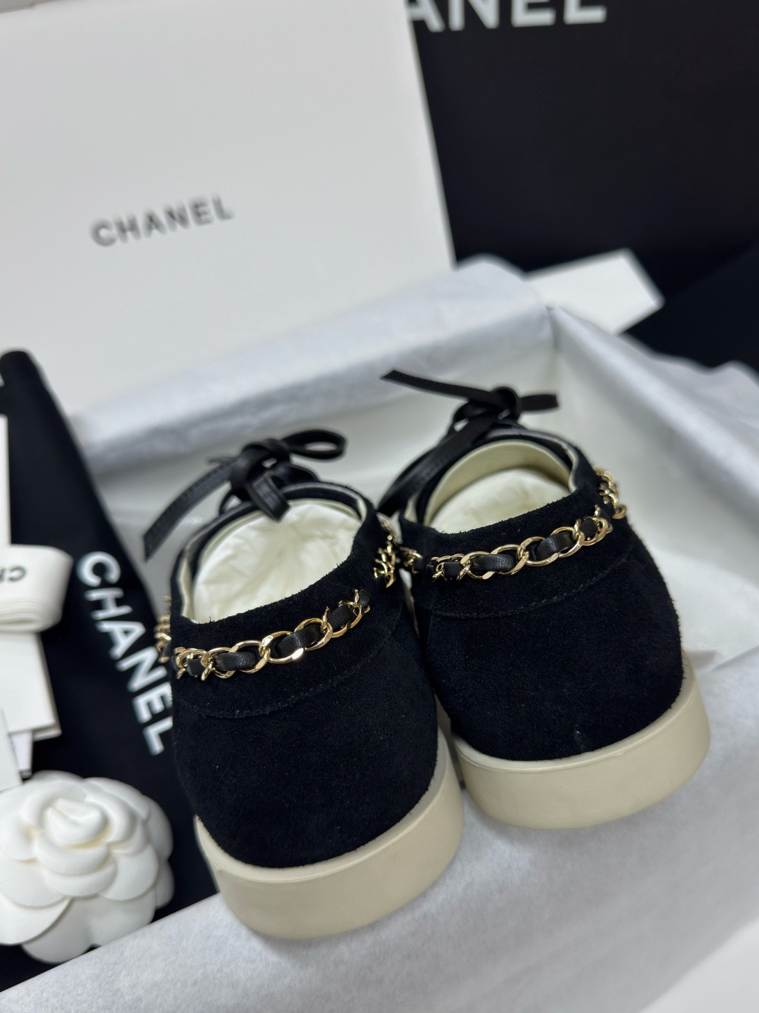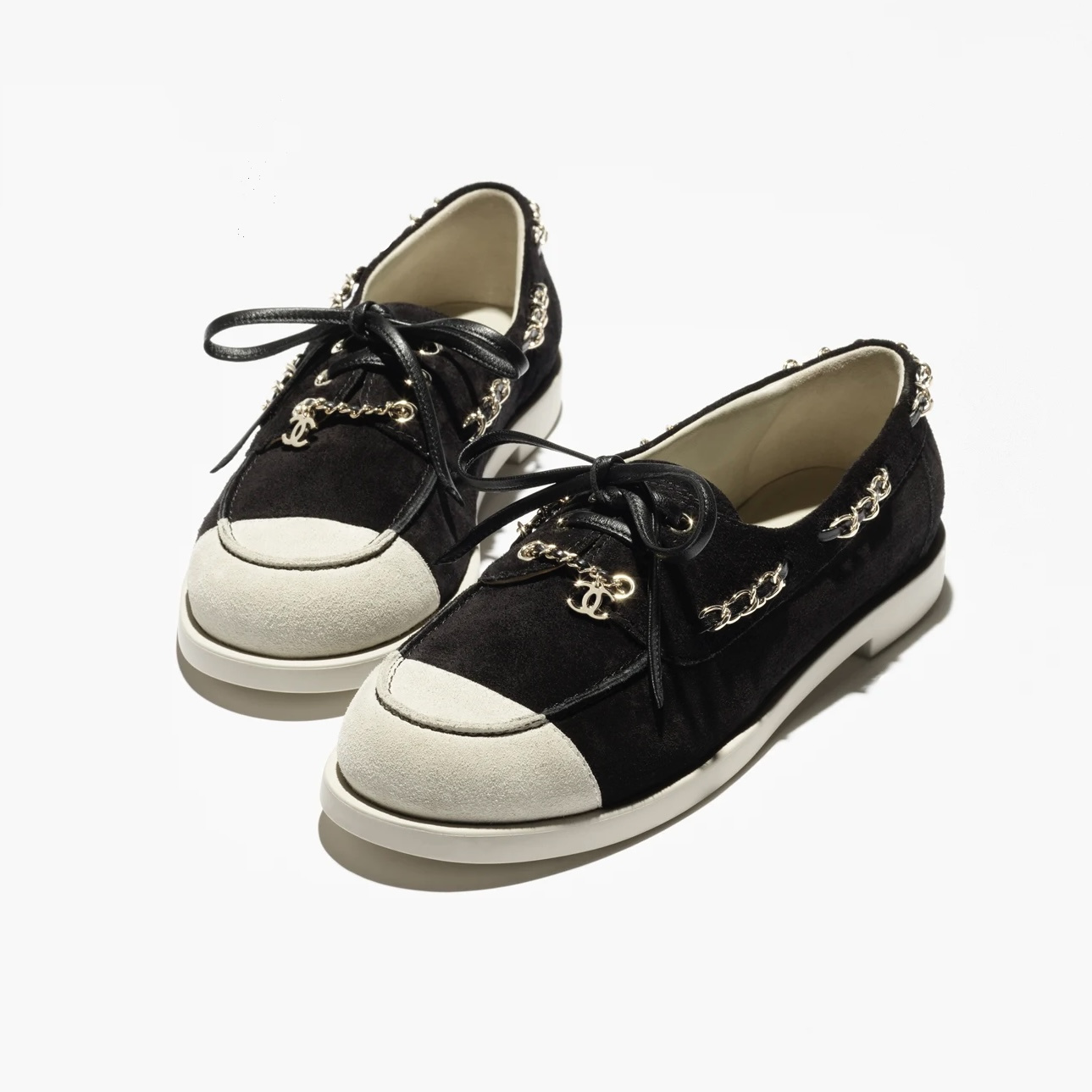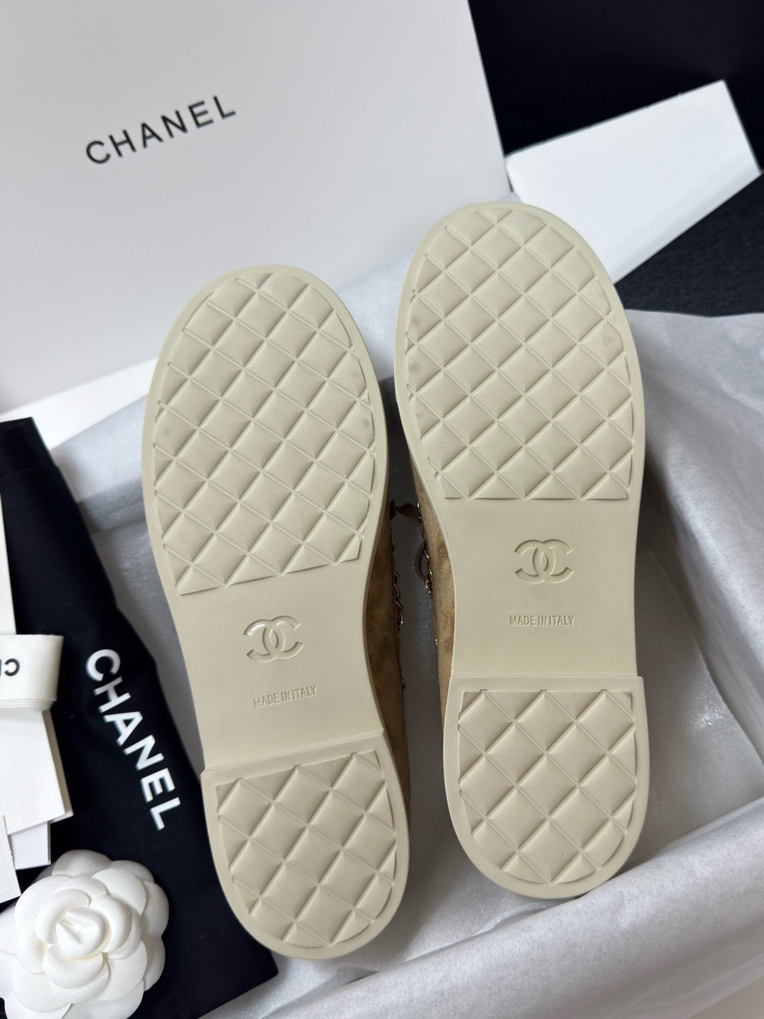 NIGO Chanel Moccasins Suede Calfskin Black Light Gray #nigo336618