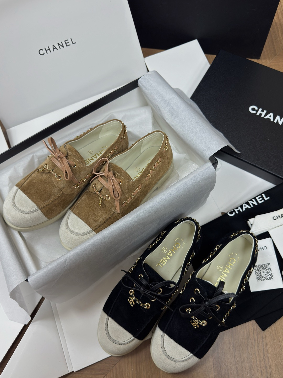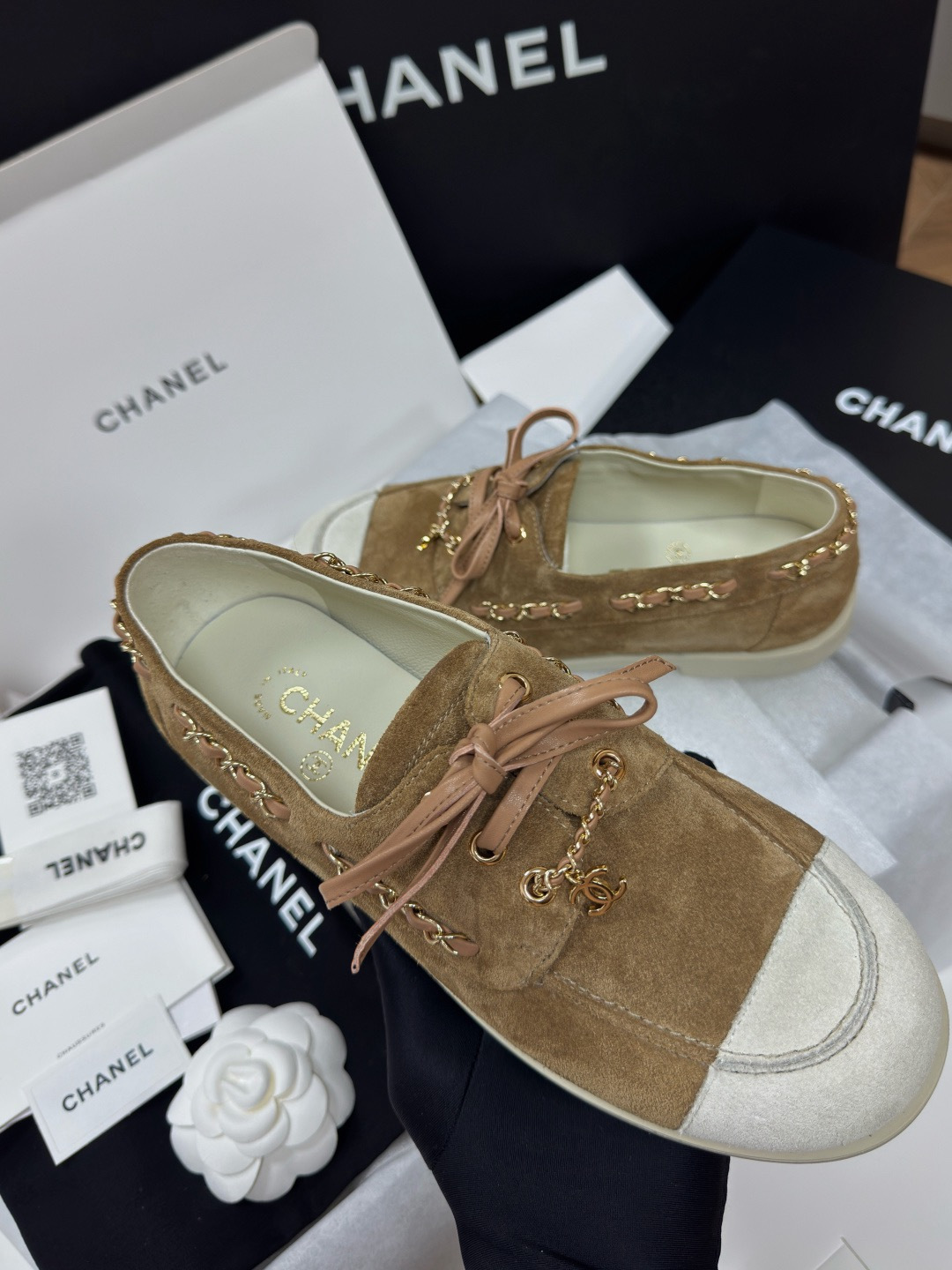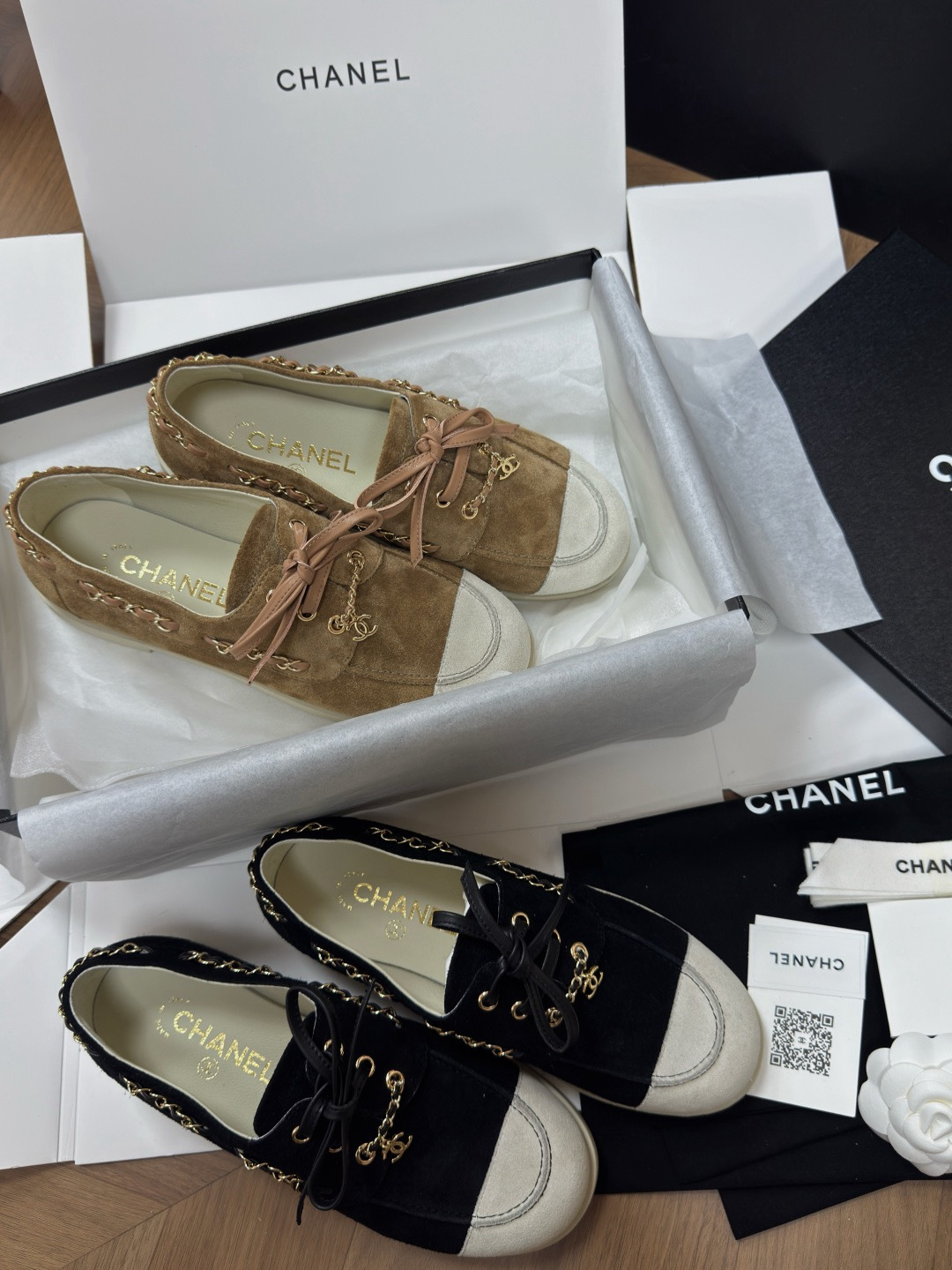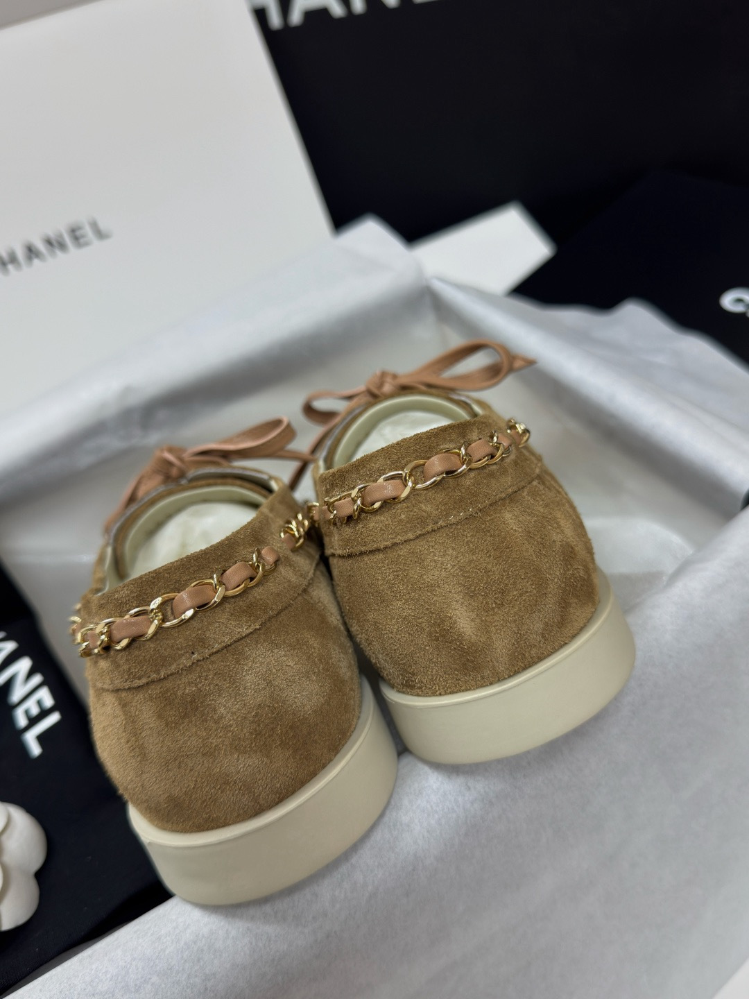 NIGO Chanel Moccasins Suede Calfskin Black Light Gray #nigo336618