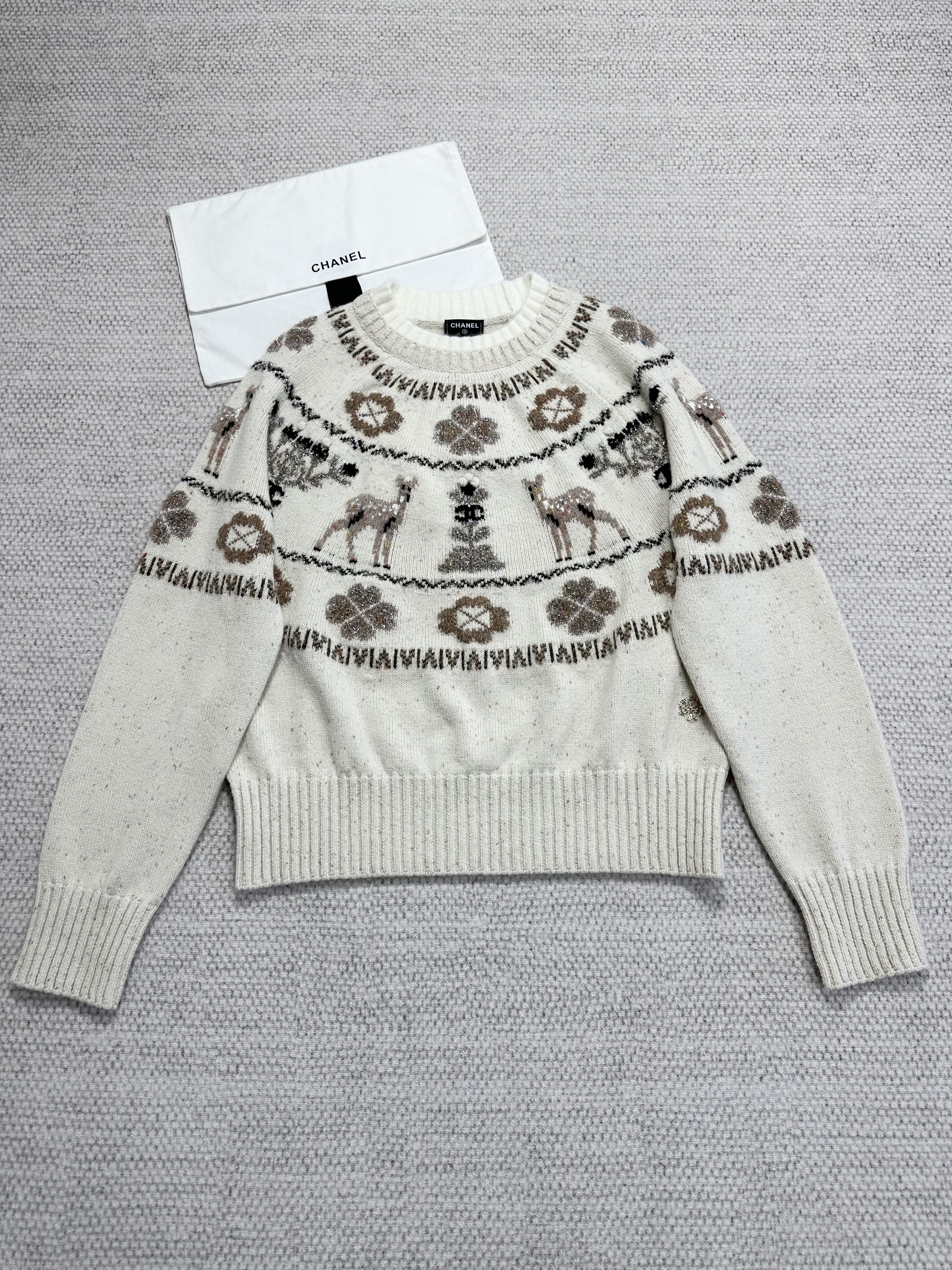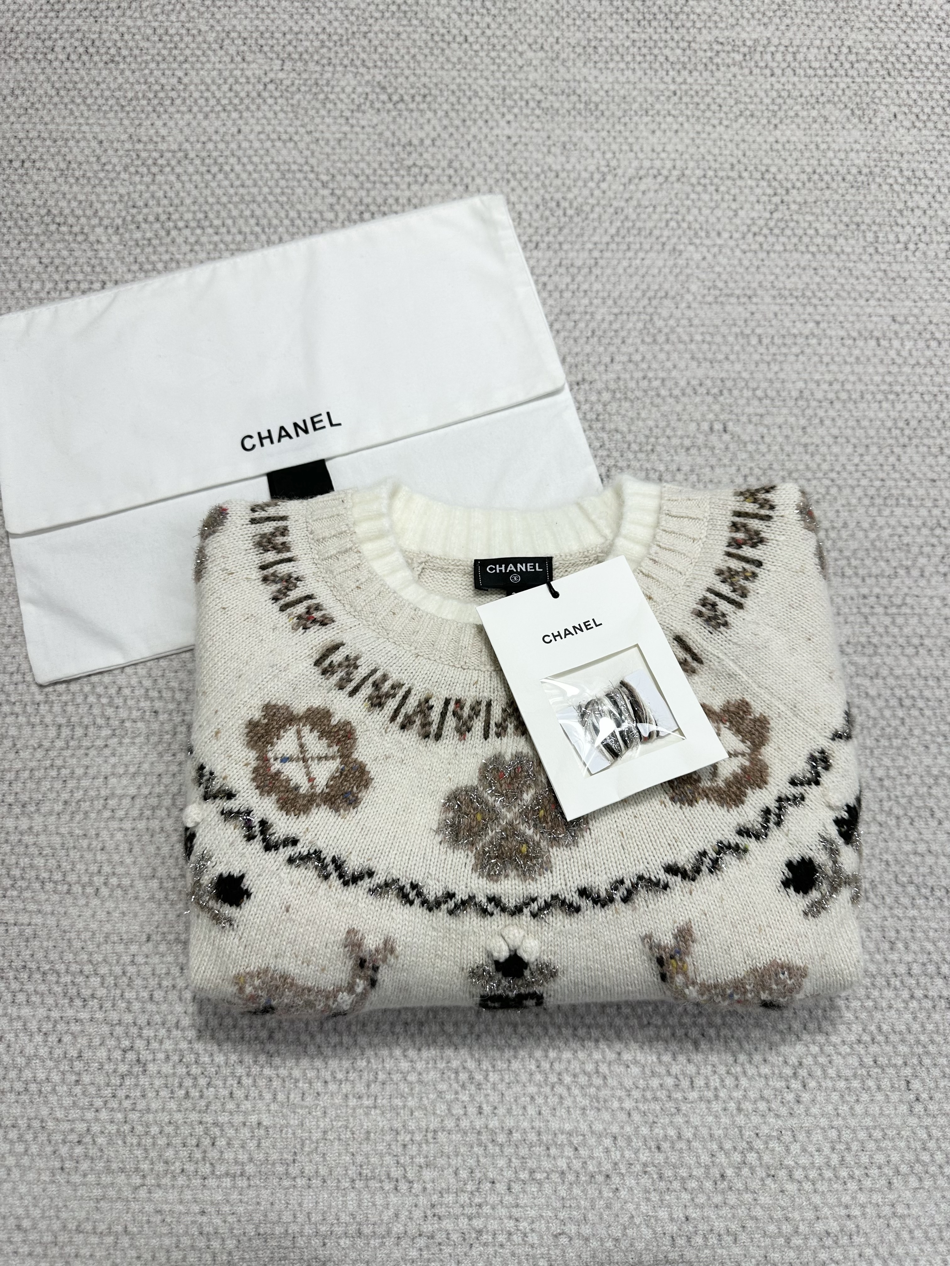 NIGO Chanel Pullover Cashmere Ecru Beige Black #nigo376367