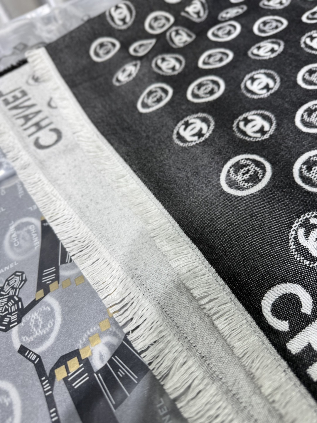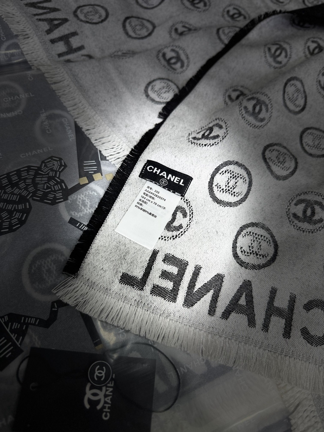This Chanel scarf showcases the brand's exceptional craftsmanship and attention to detail. this piece combines timeless luxury with modern style.