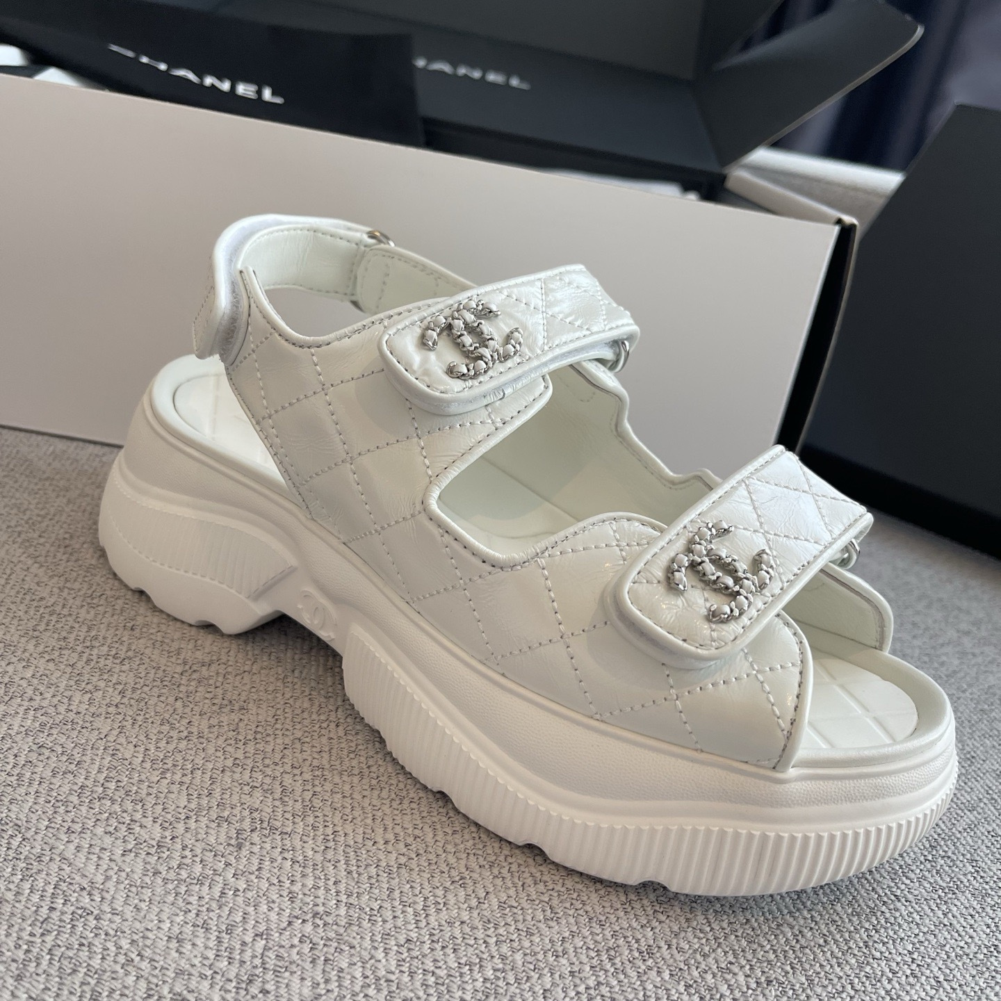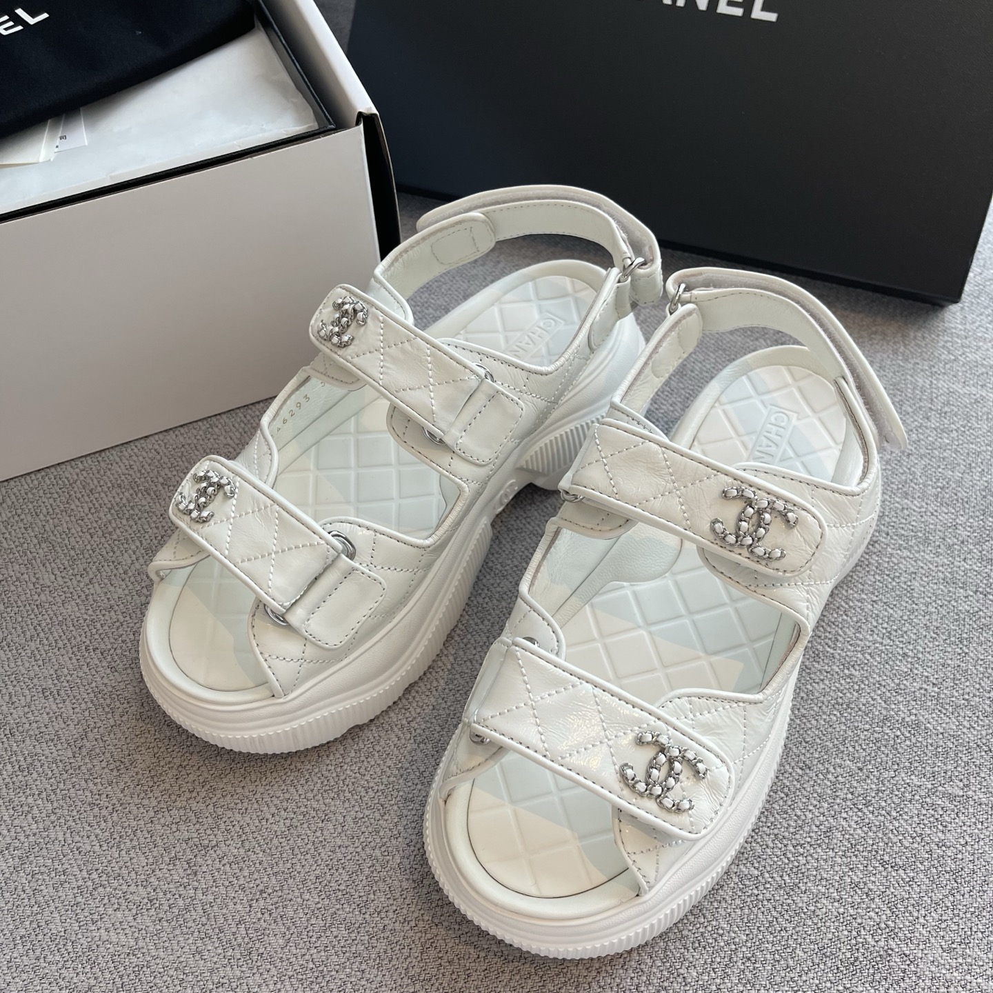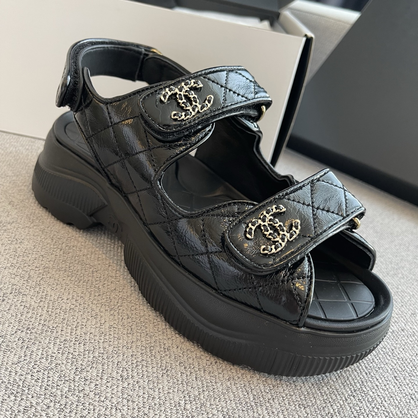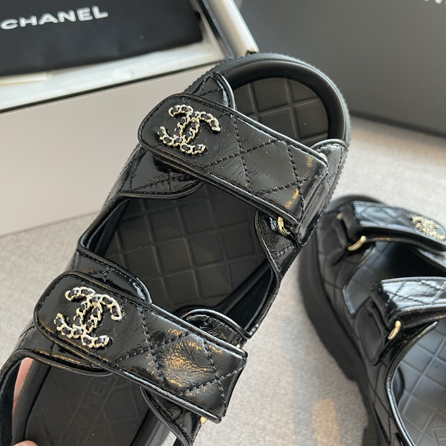 NIGO Chanel Sandals Shiny Calfskin Black White #nigo376185