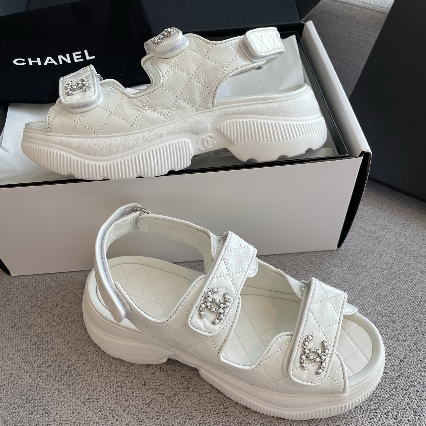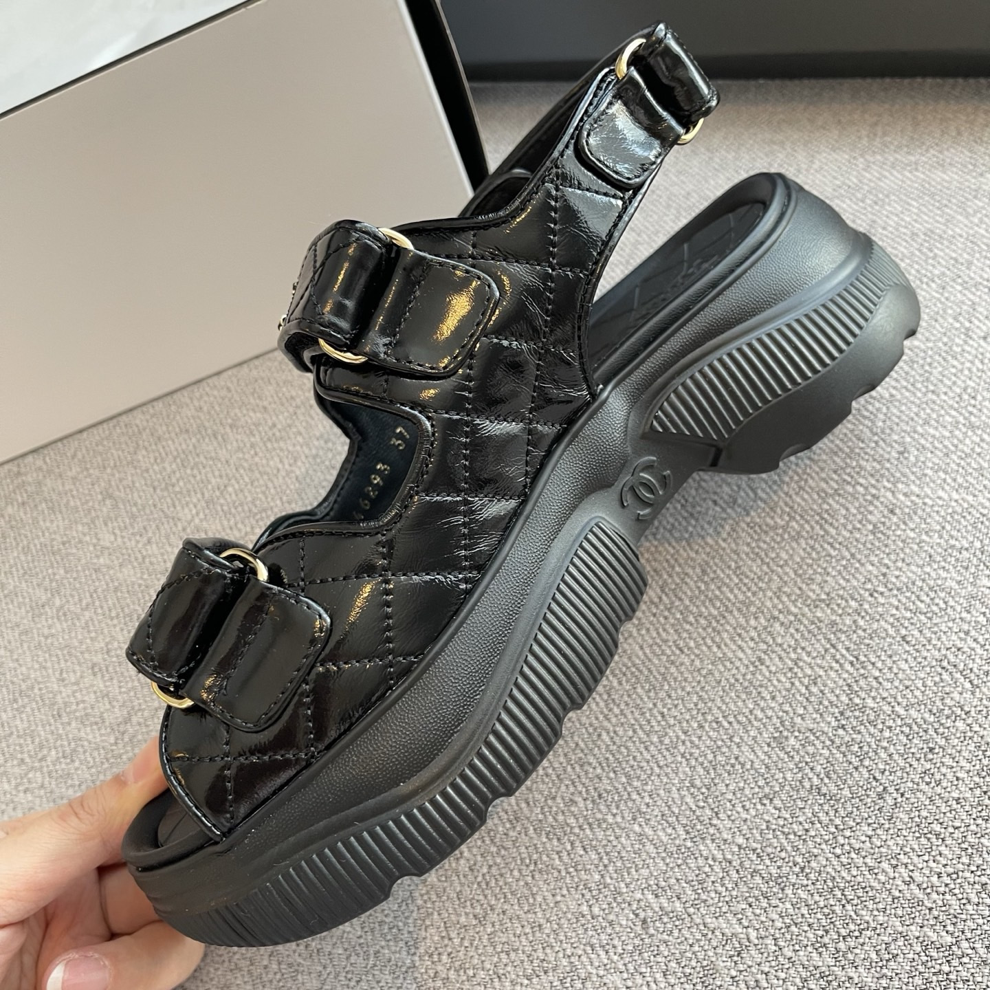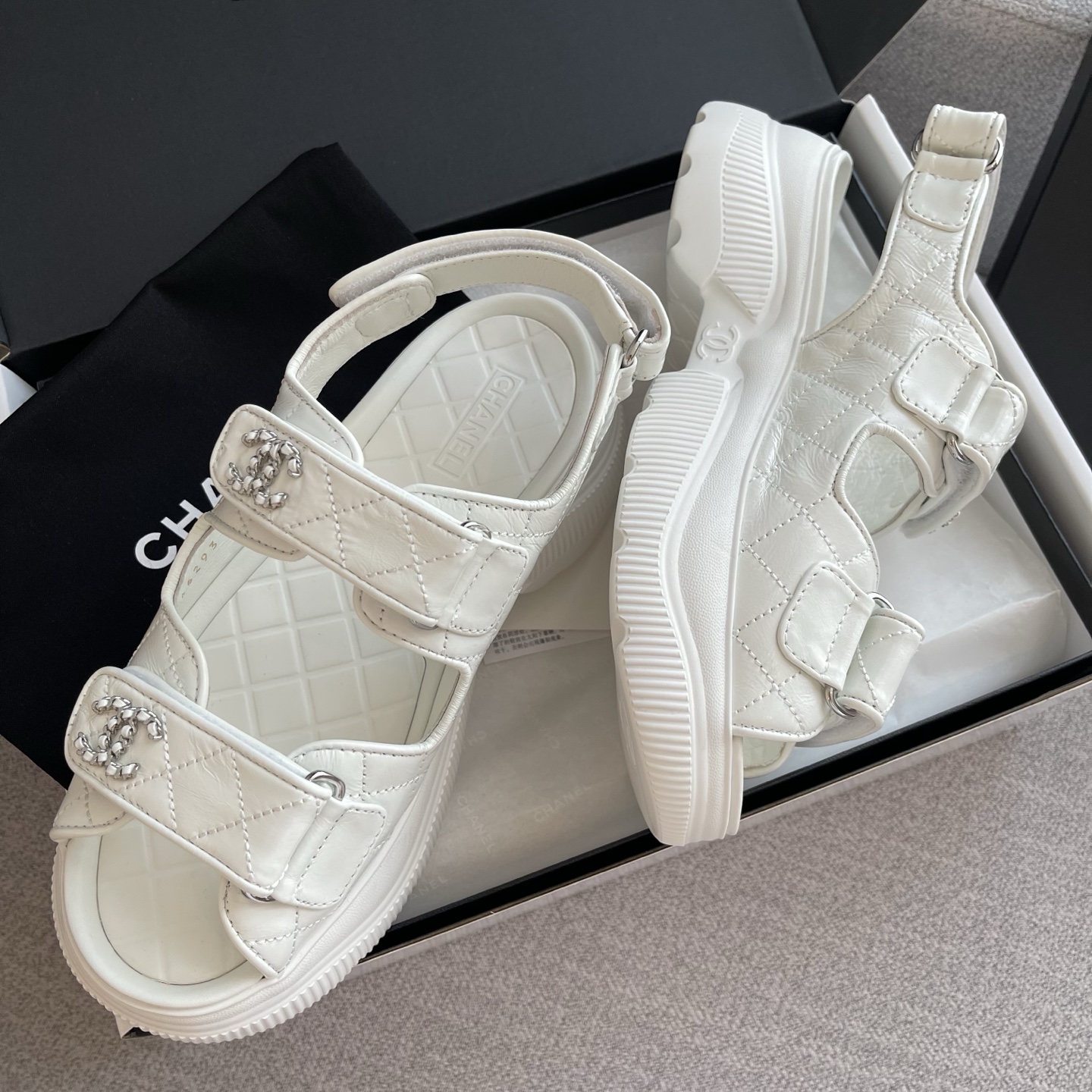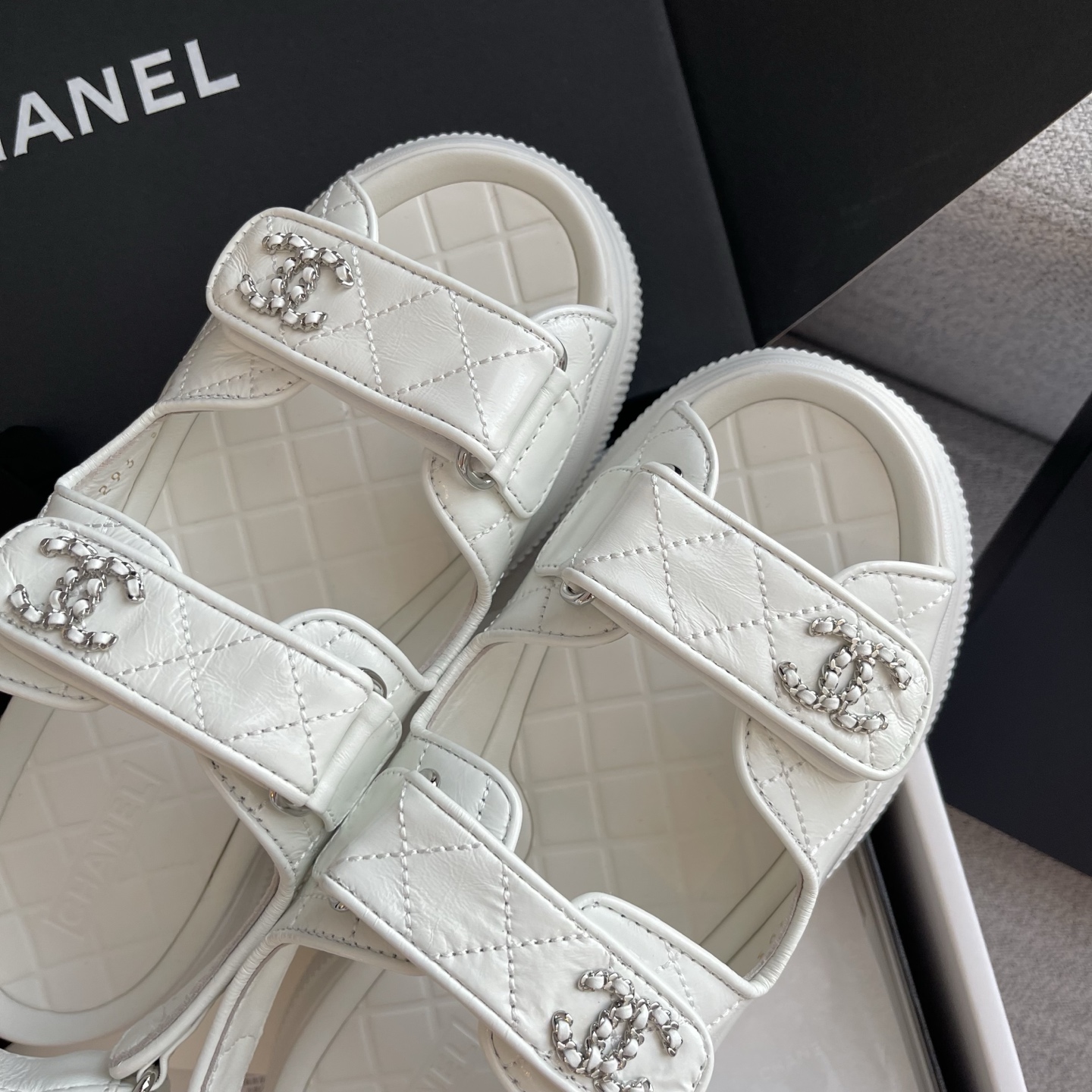 NIGO Chanel Sandals Shiny Calfskin Black White #nigo376185