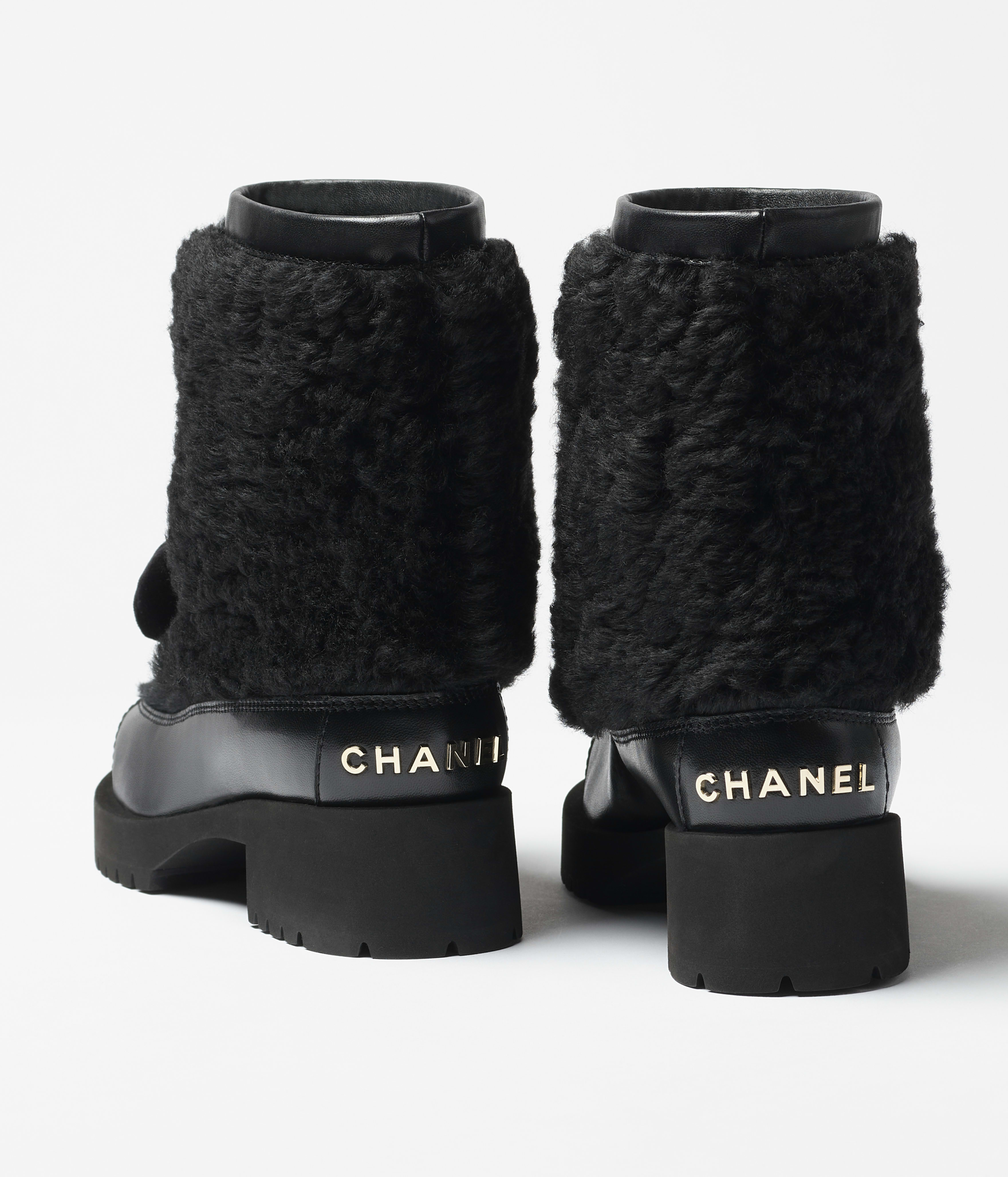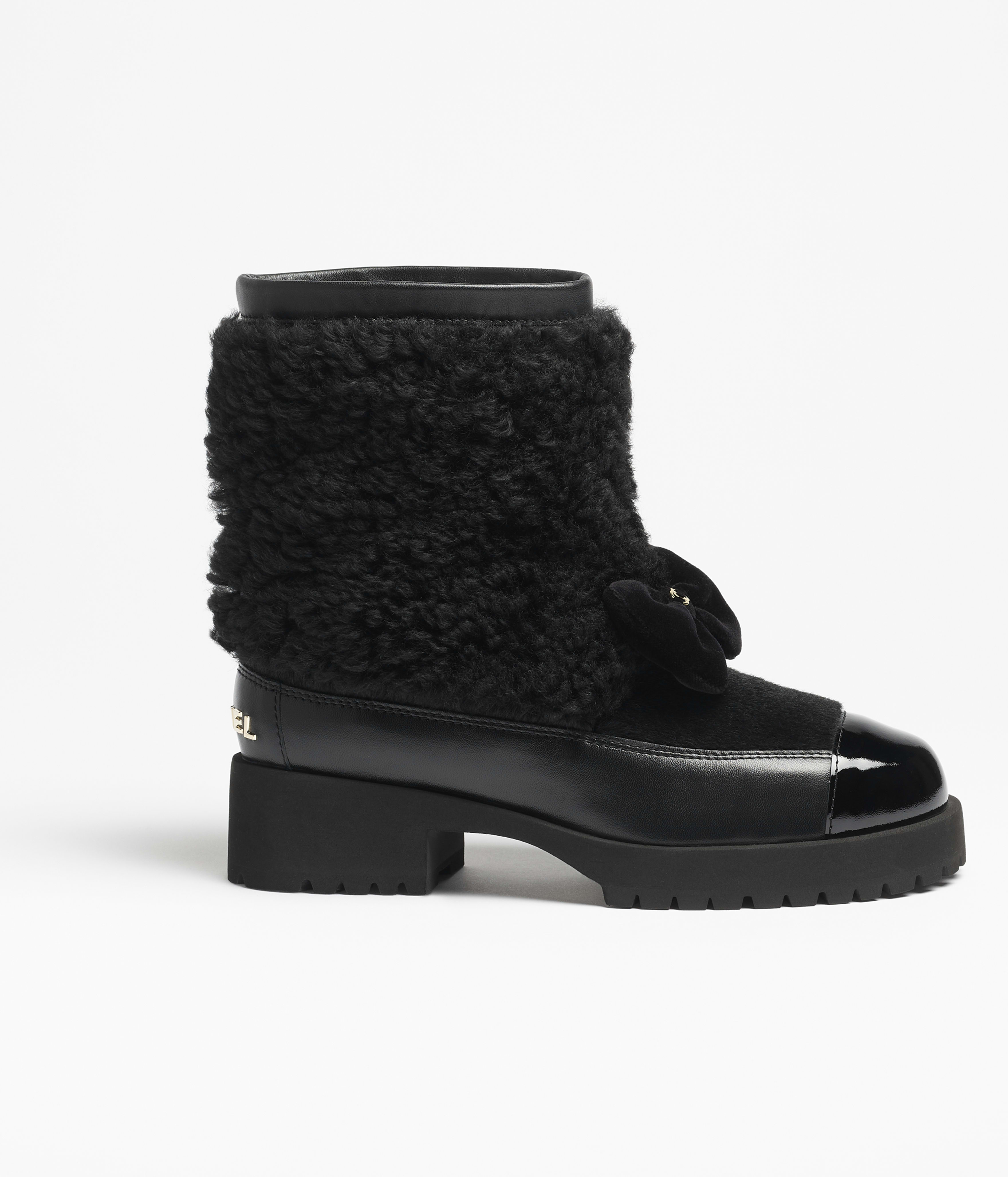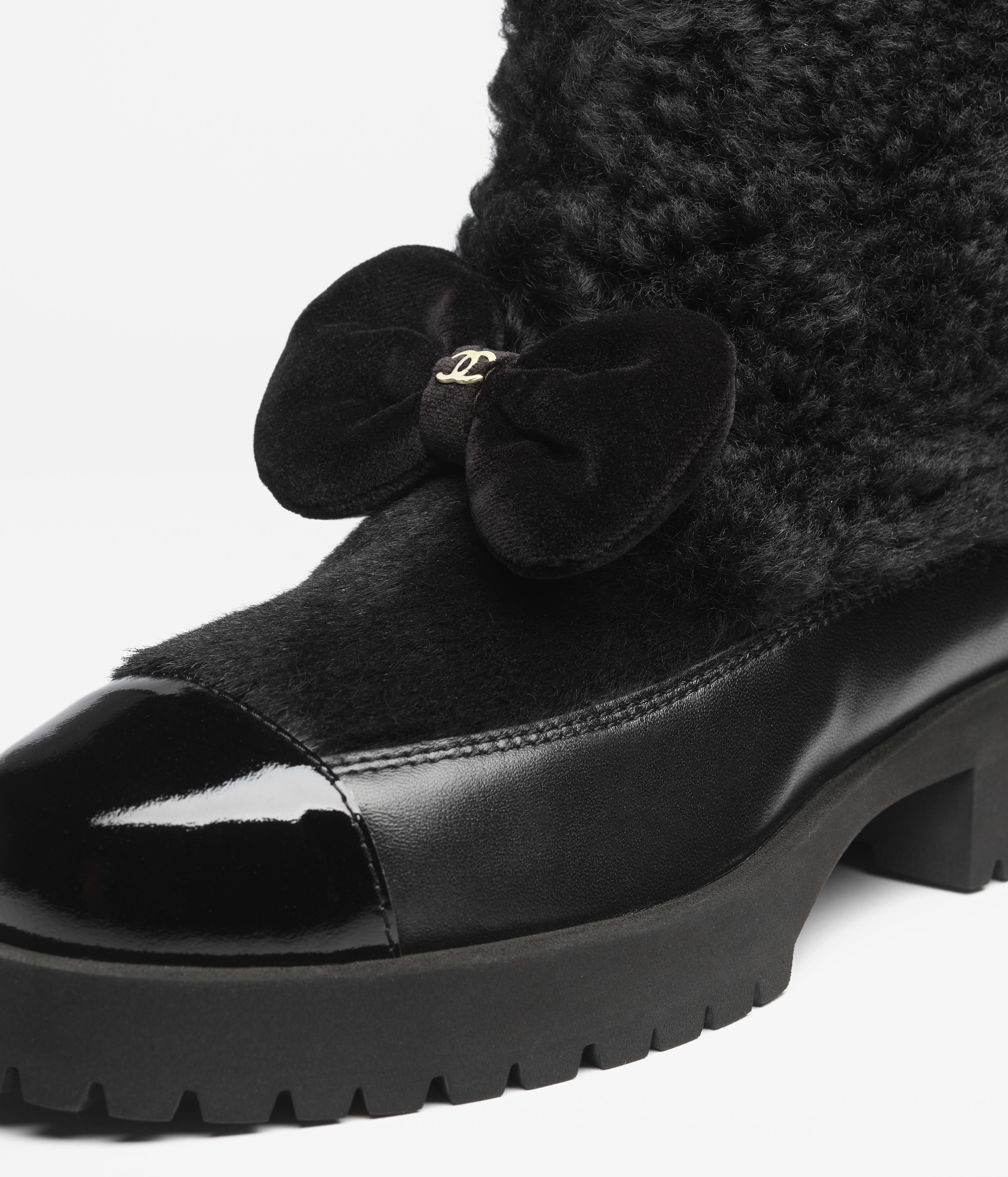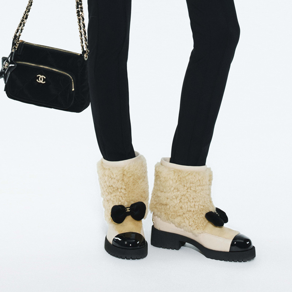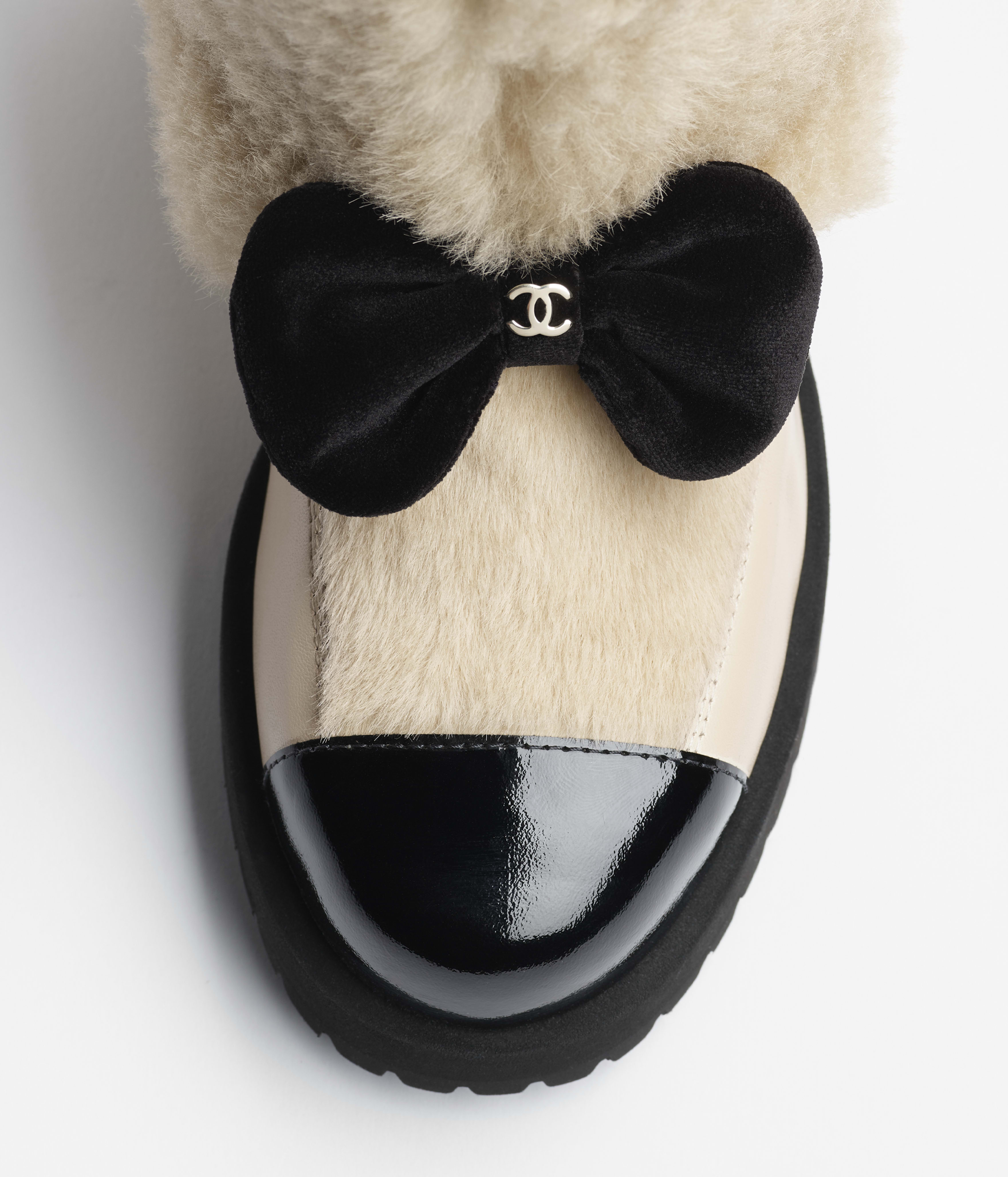 NIGO Chanel Short Boots Shearling Lambskin Calfskin Lambskin Patent Calfskin Beige Black #nigo334244