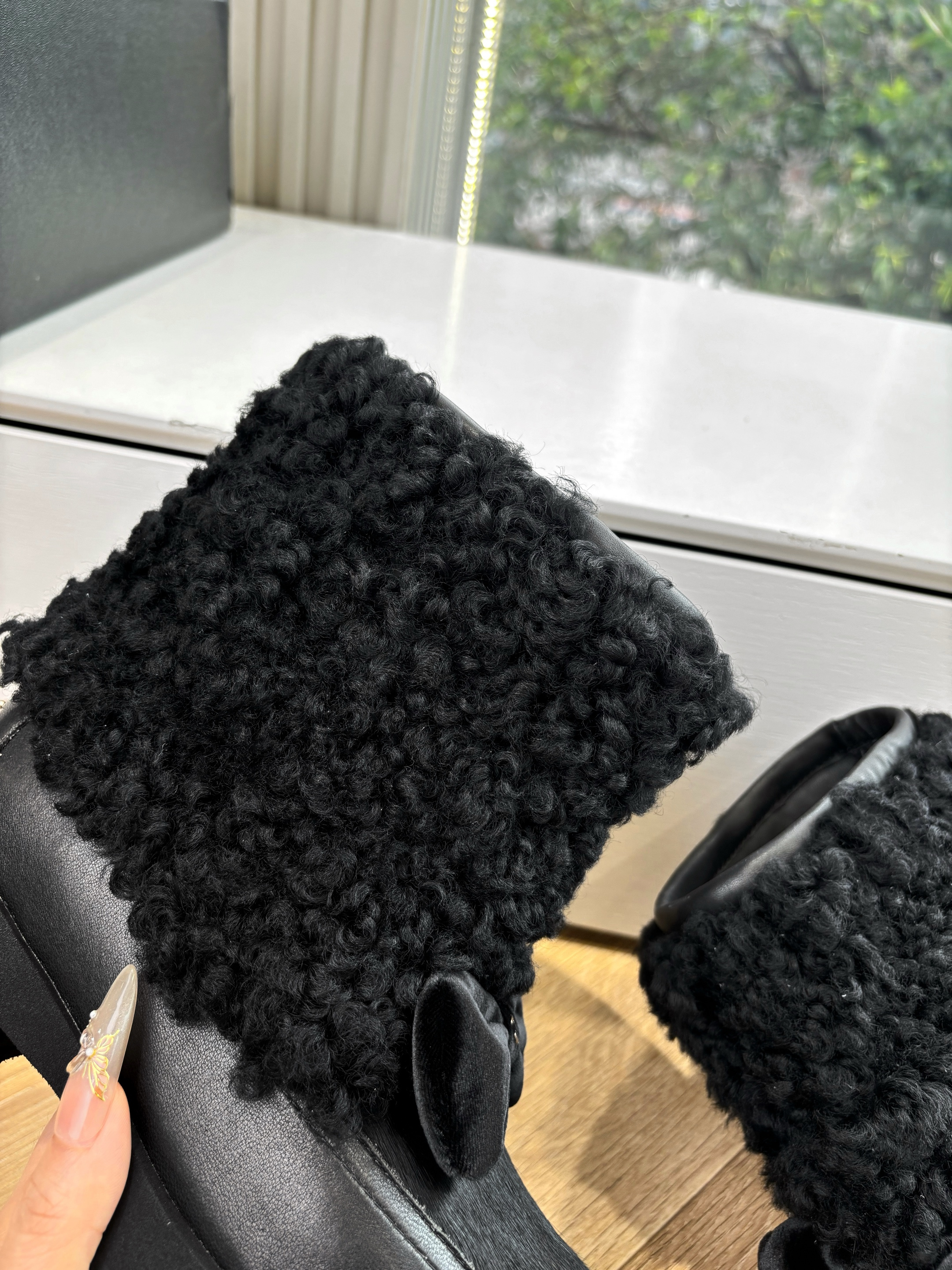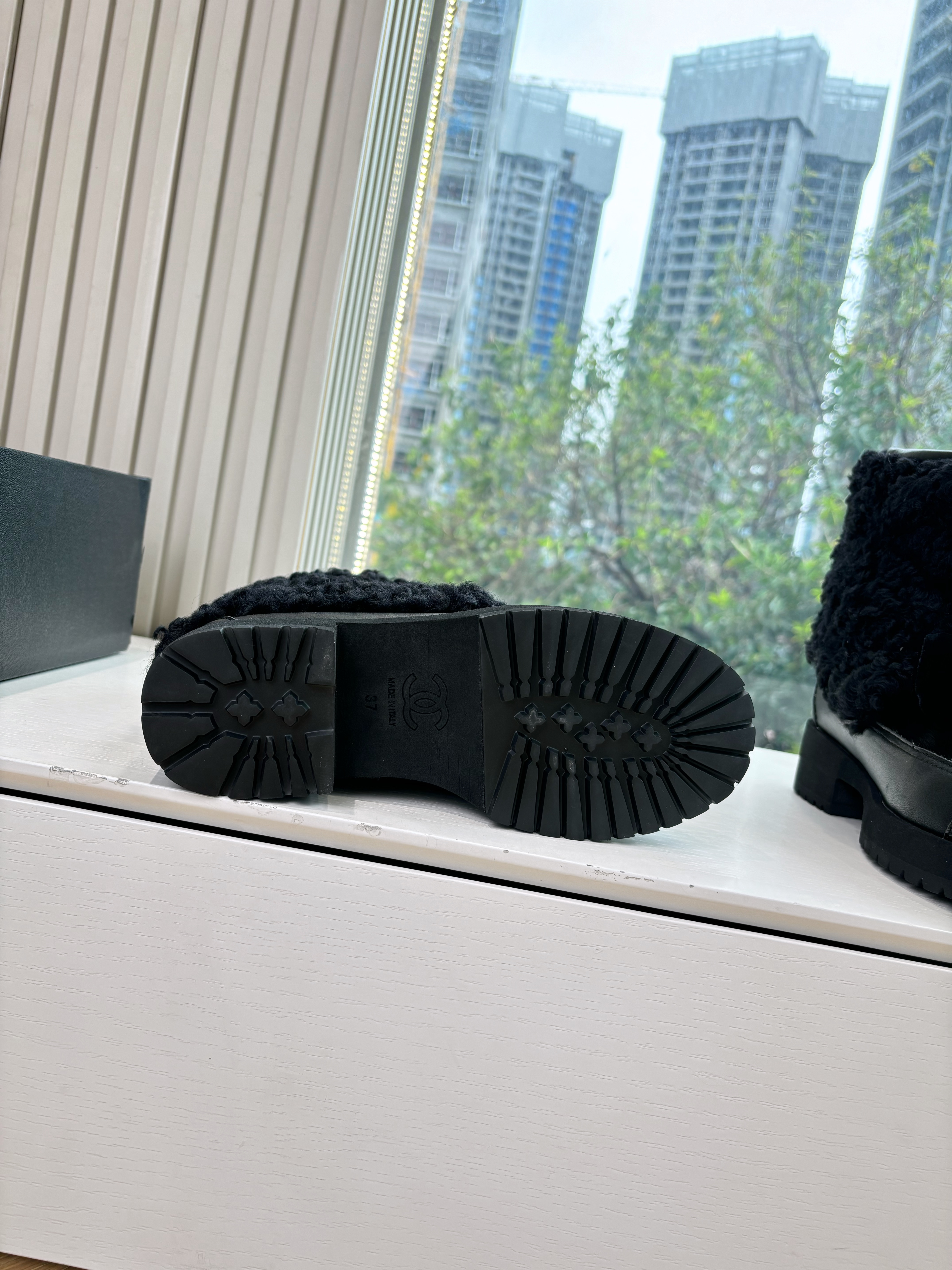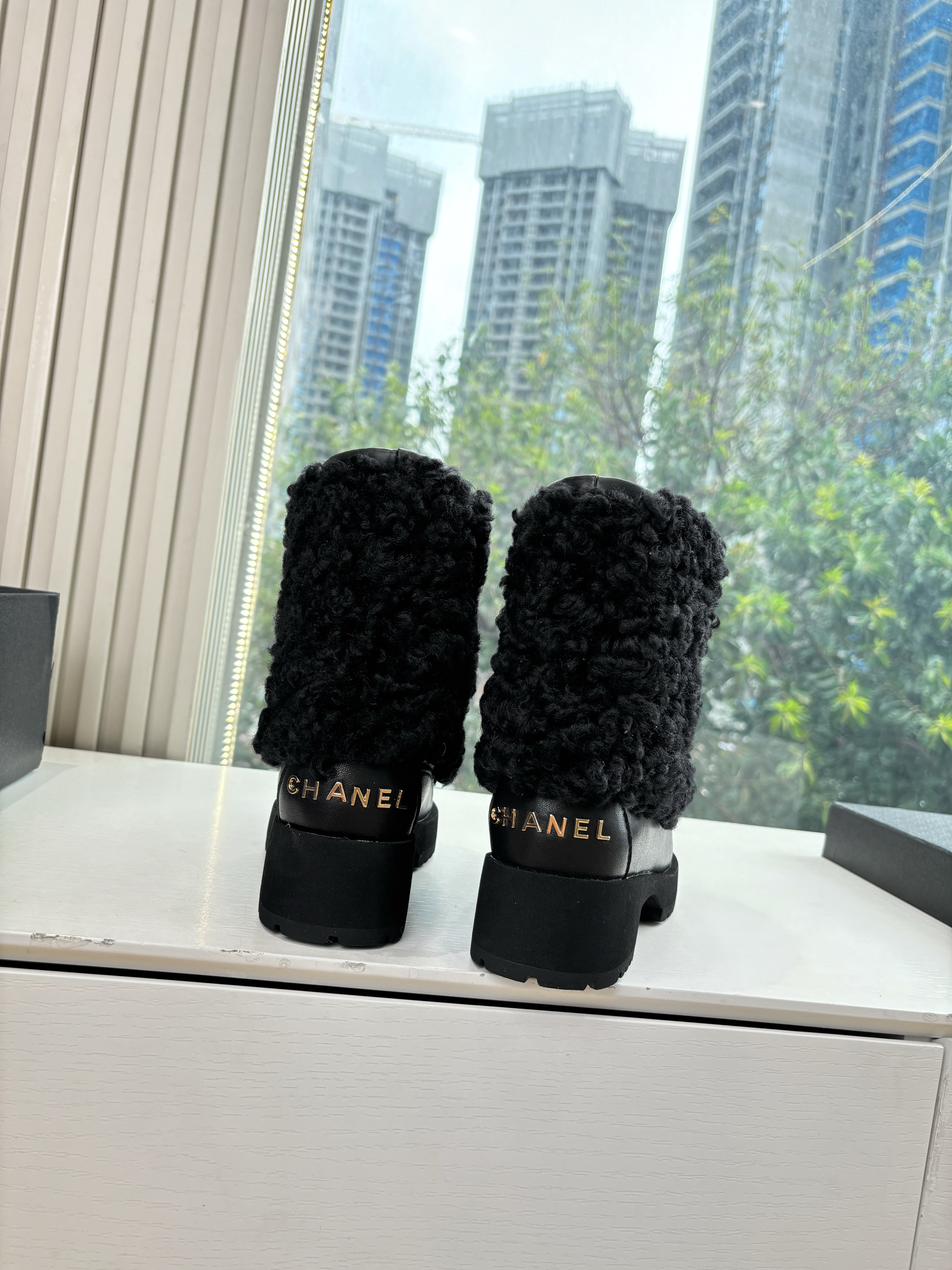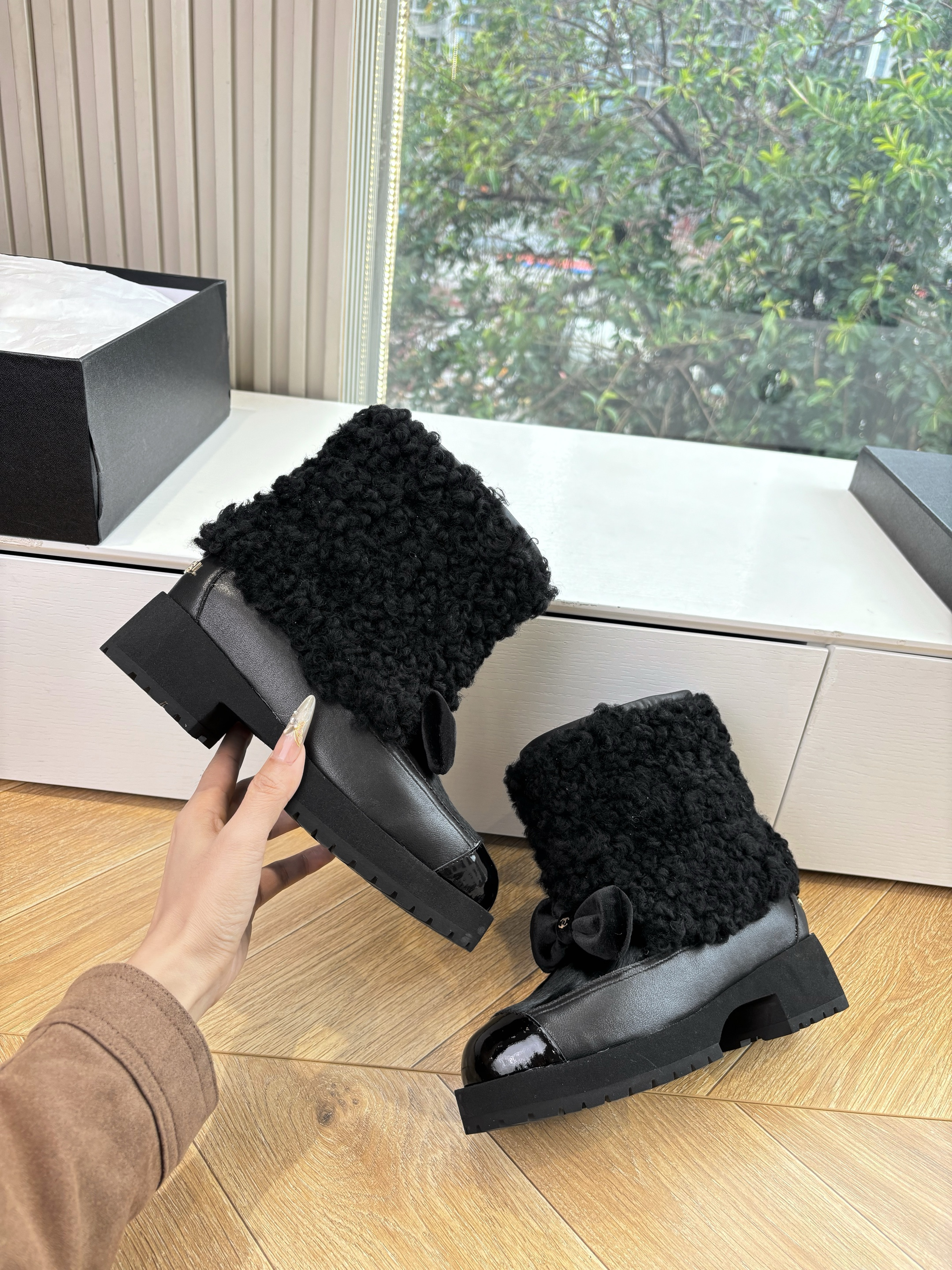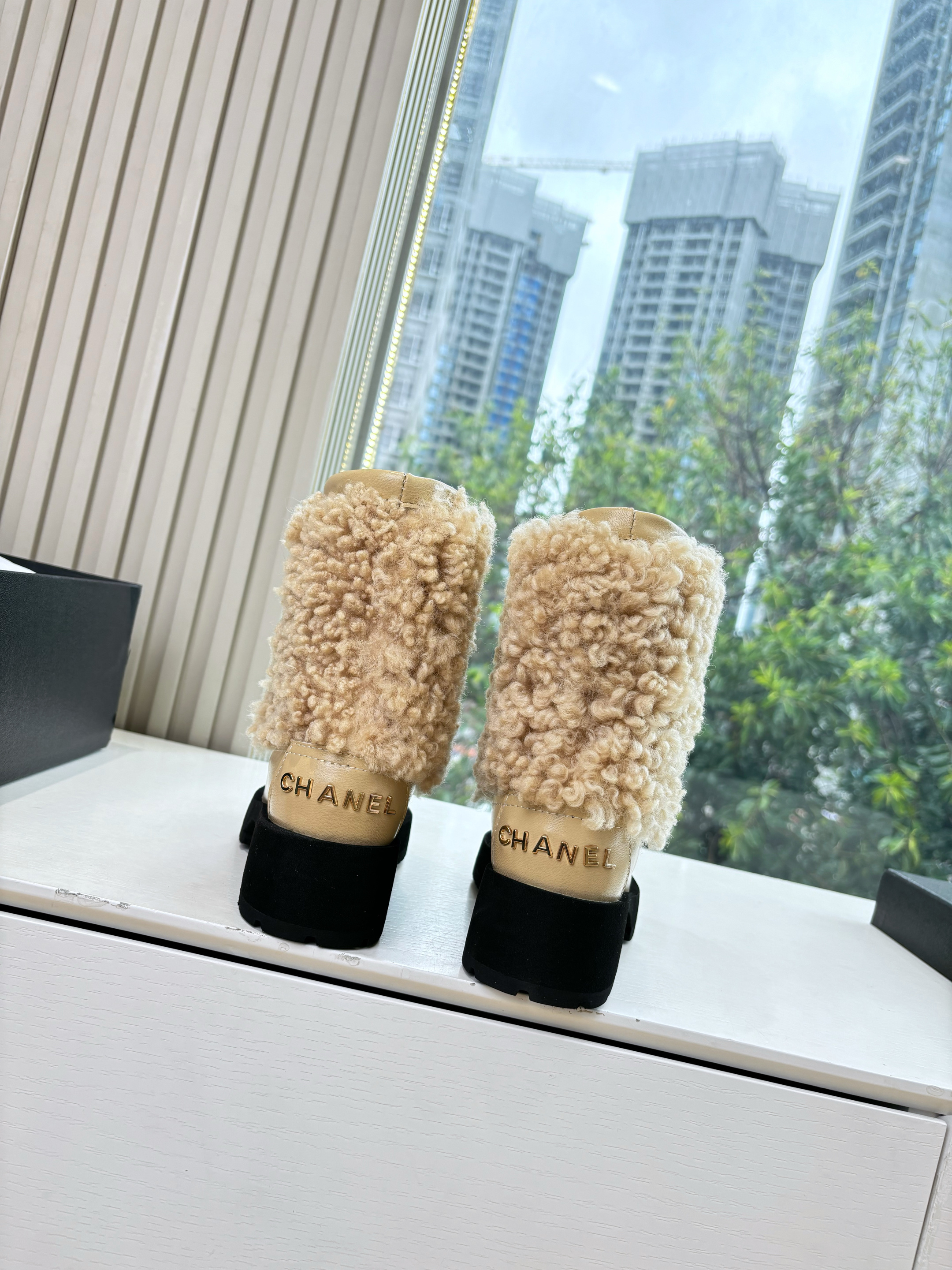 NIGO Chanel Short Boots Shearling Lambskin Calfskin Lambskin Patent Calfskin Beige Black #nigo334244