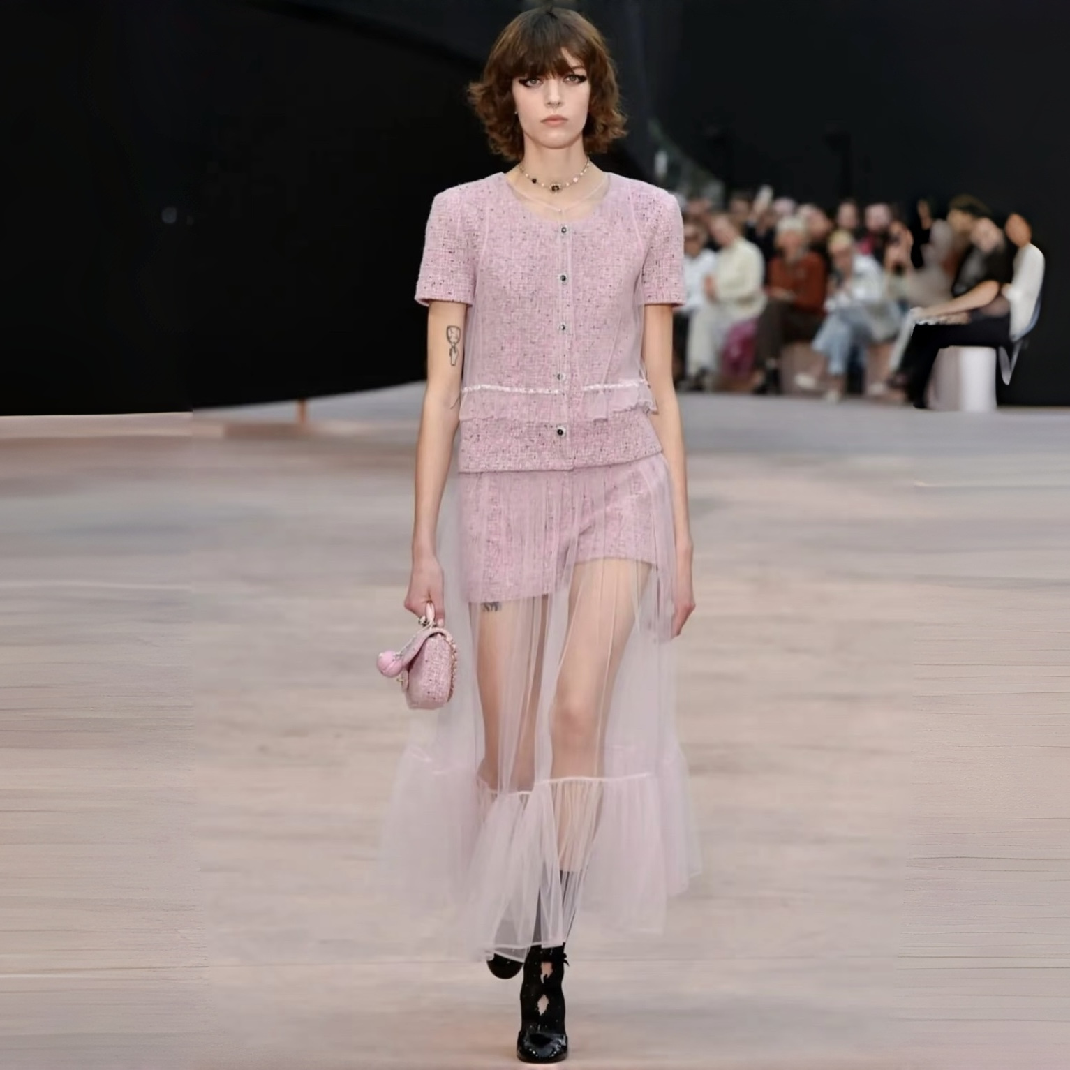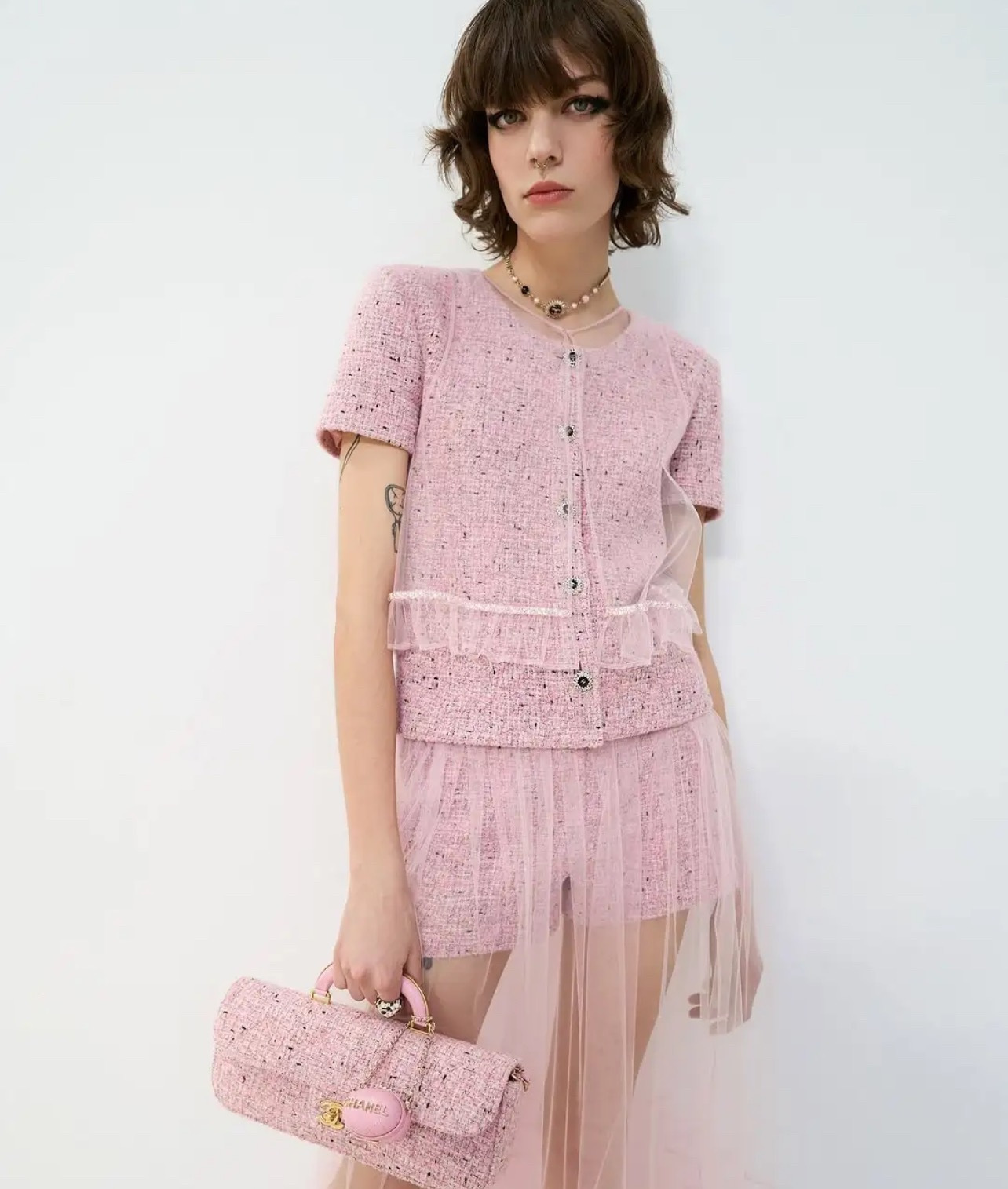 NIGO Chanel Short-sleeved Top Shorts Tweed Pink Black White#nigo335416