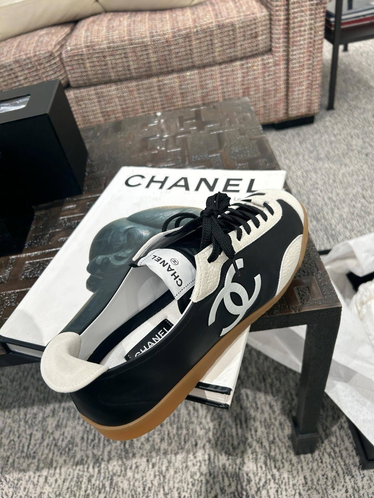 This Chanel shoes showcases the brand's exceptional craftsmanship and attention to detail. Crafted from premium suede, calfskin, in a stunning black / white colorway, this piece combines timeless luxury with modern style.