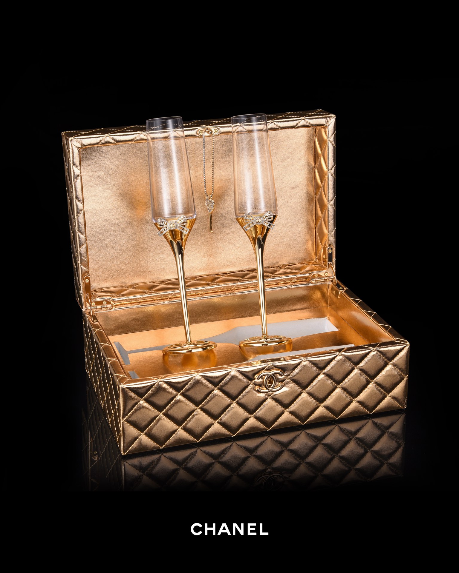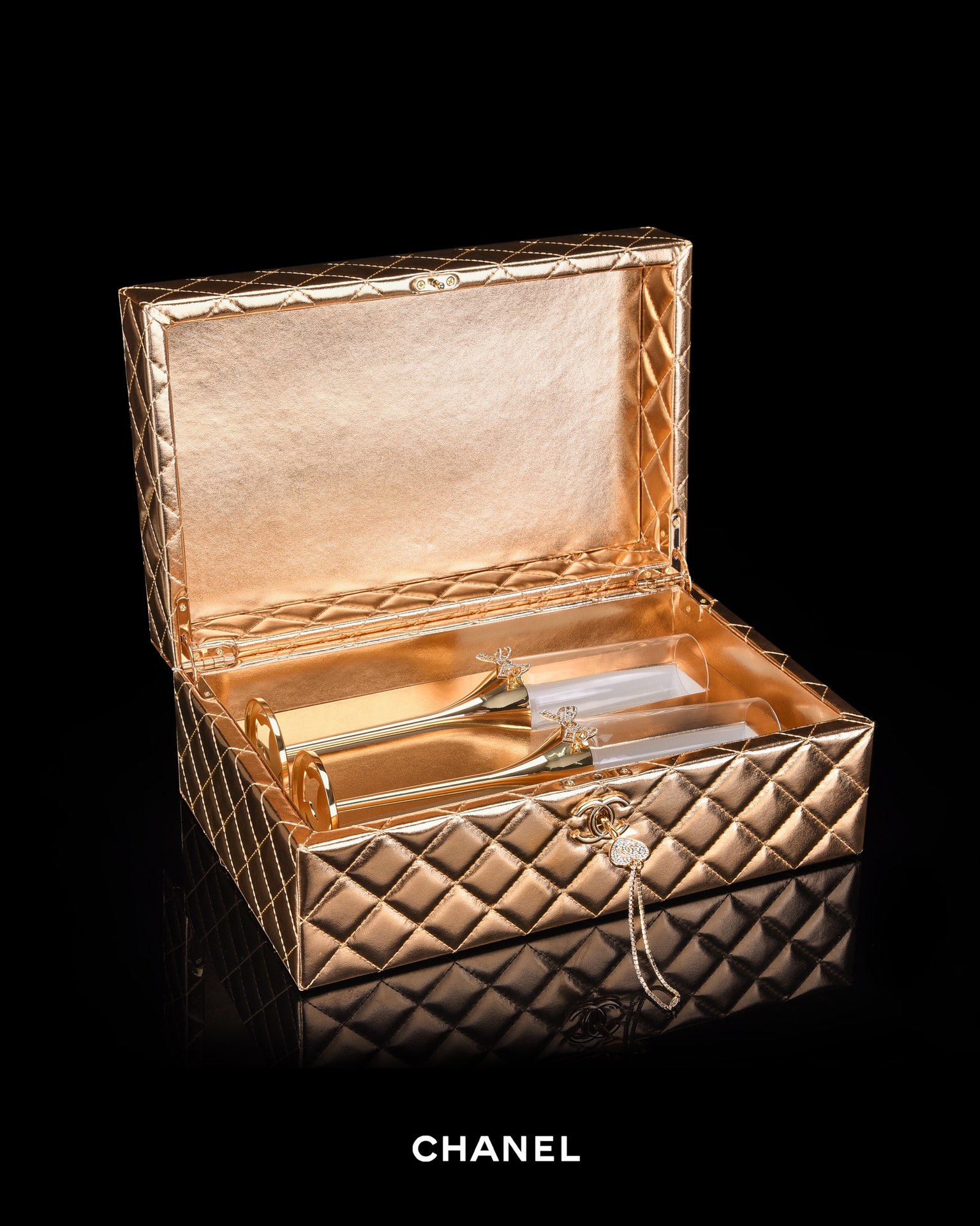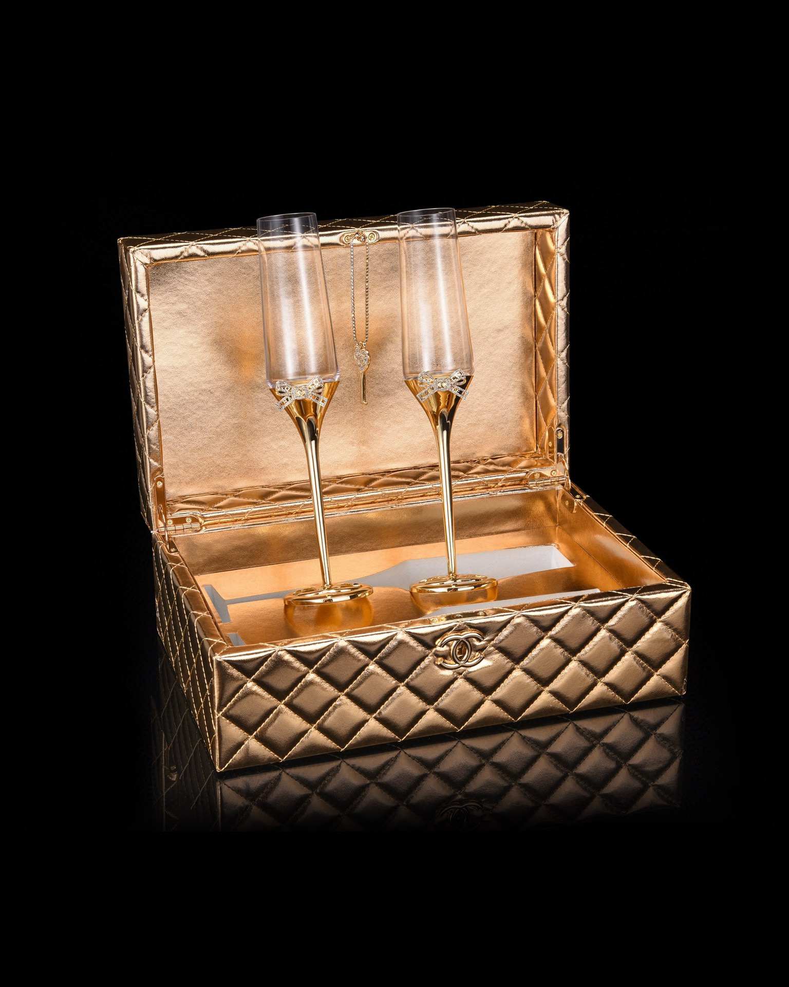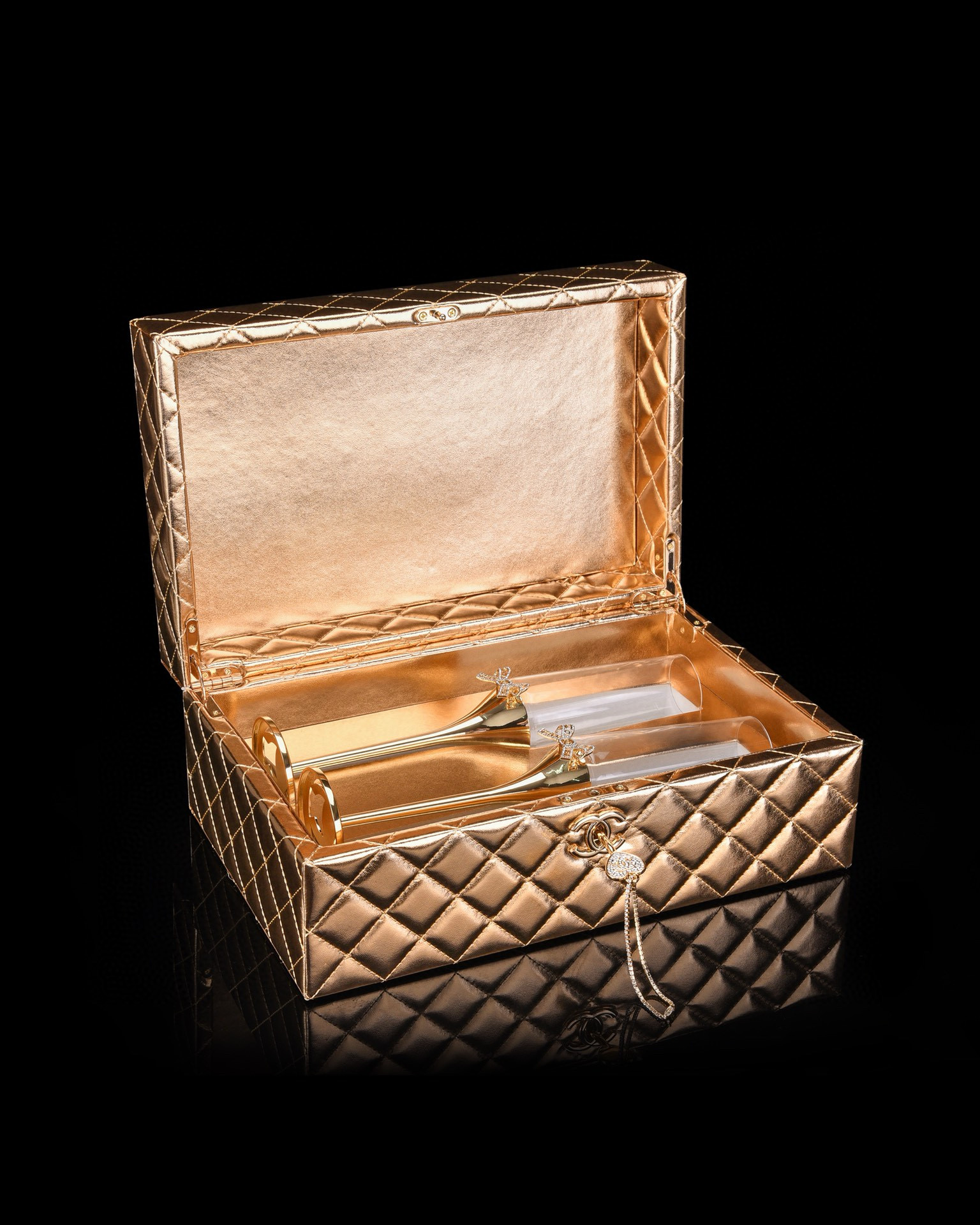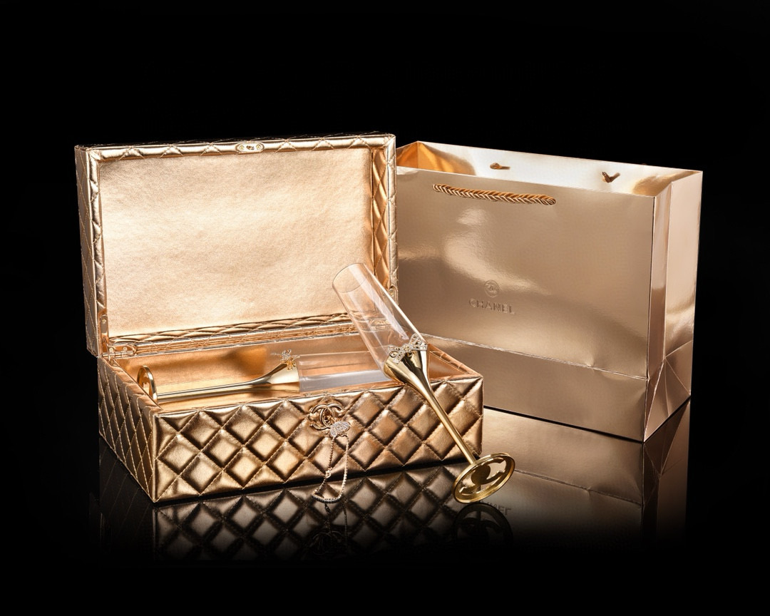 NIGO Chanel Solid Color Diamond Lattice Solid Wood Hard Case Champagne Glass Gift Box Set #nigo75845