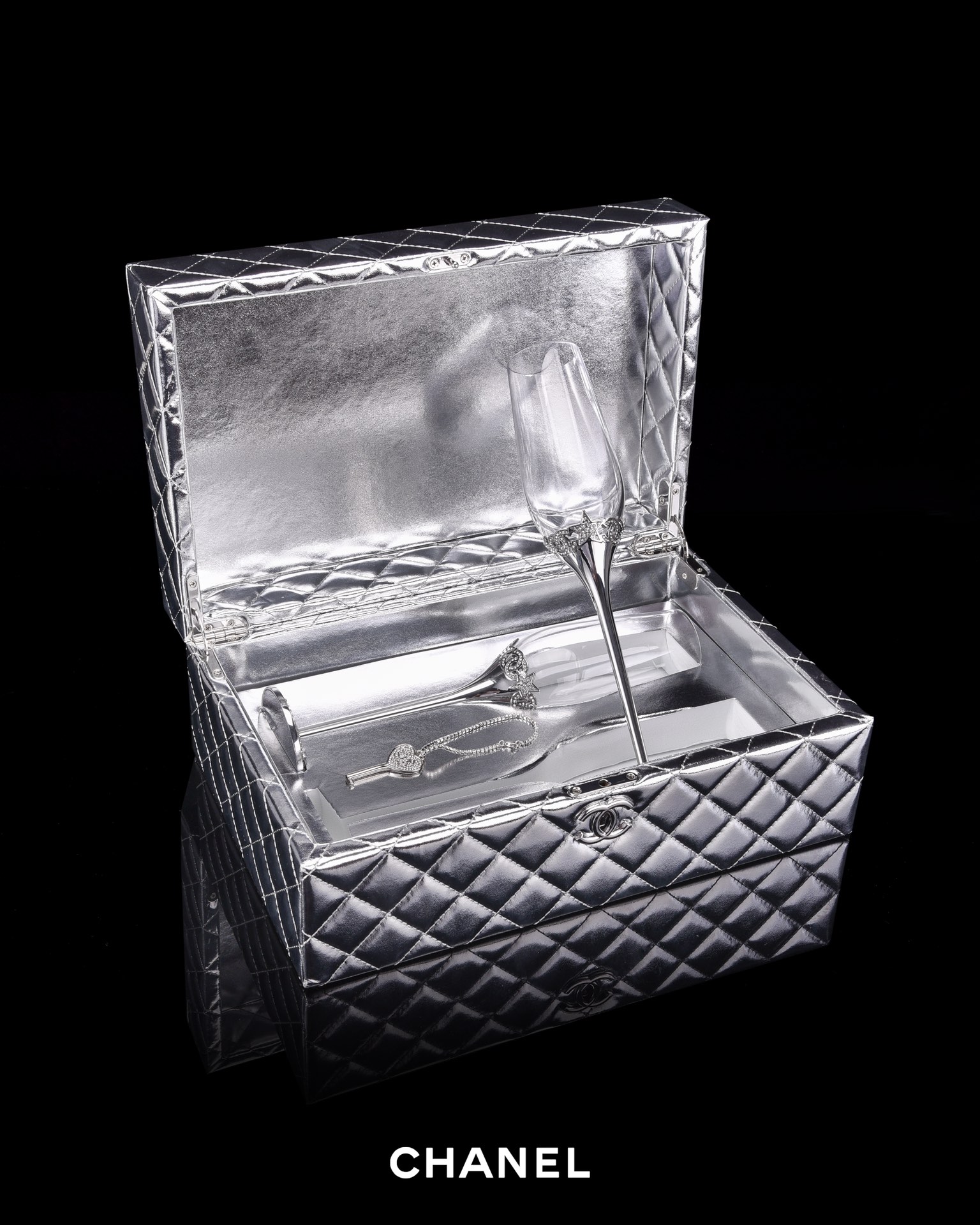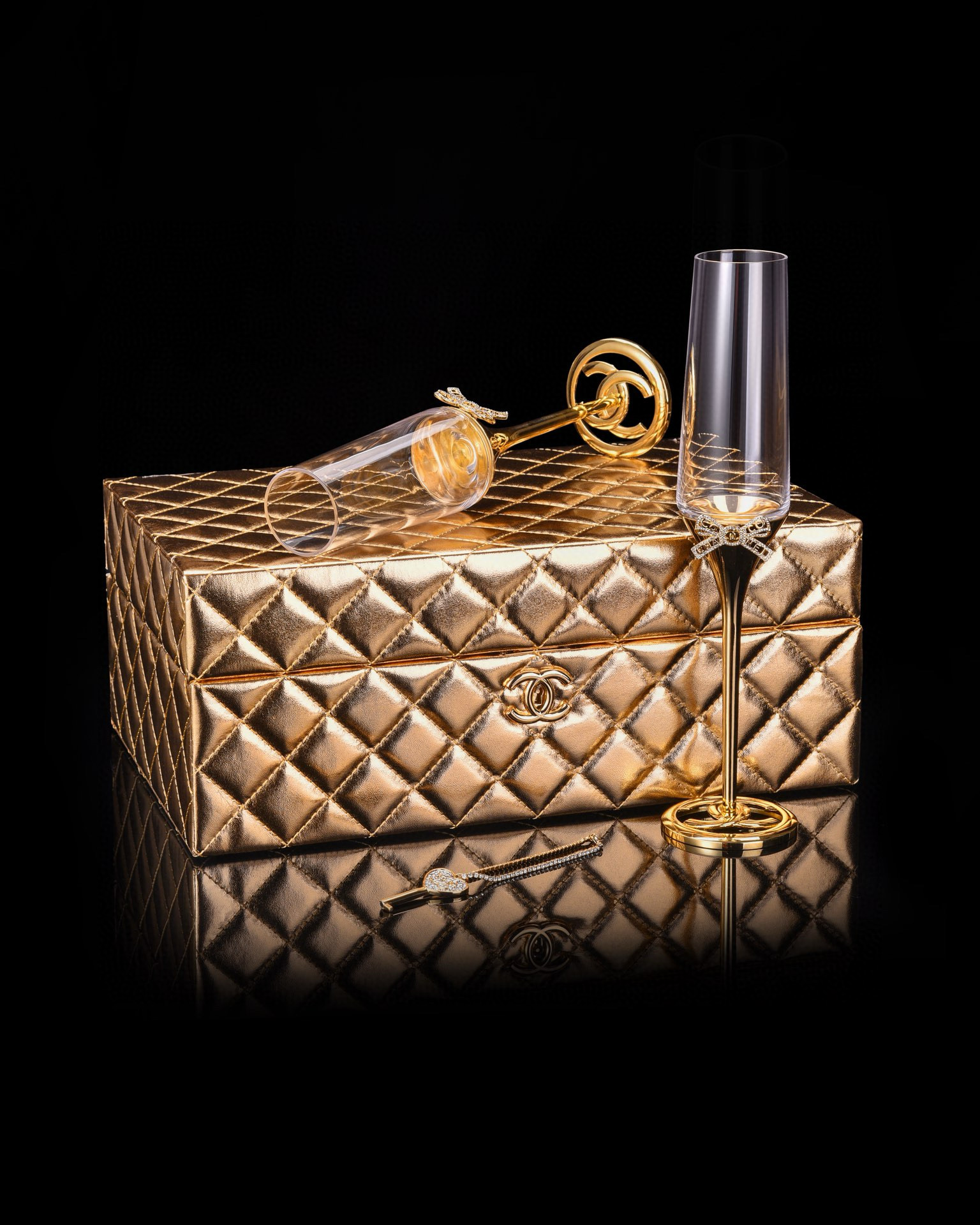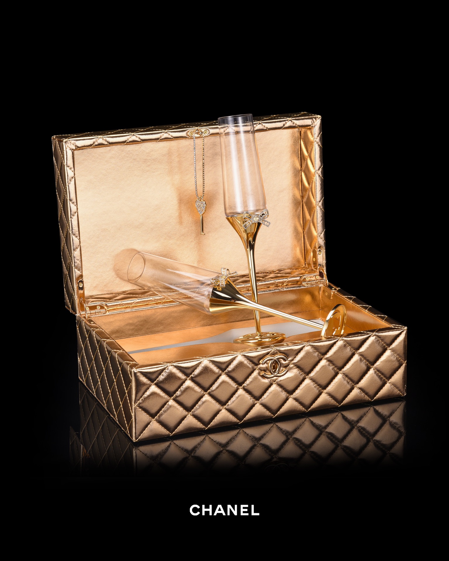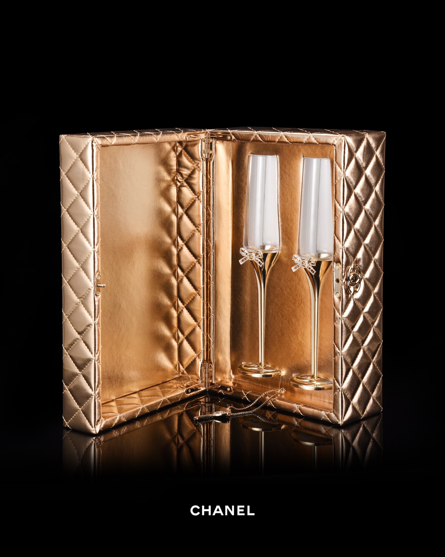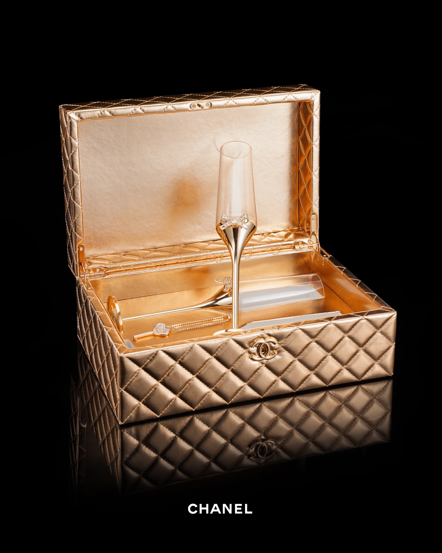 NIGO Chanel Solid Color Diamond Lattice Solid Wood Hard Case Champagne Glass Gift Box Set #nigo75845