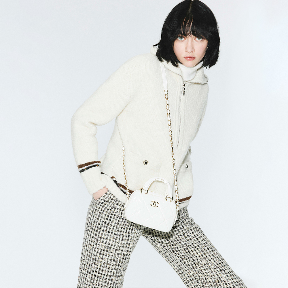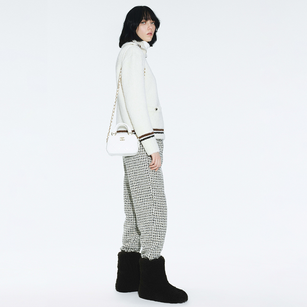 This Chanel clothing showcases the brand's exceptional craftsmanship and attention to detail. Crafted from premium cashmere, in a stunning white / brown colorway, this piece combines timeless luxury with modern style.
