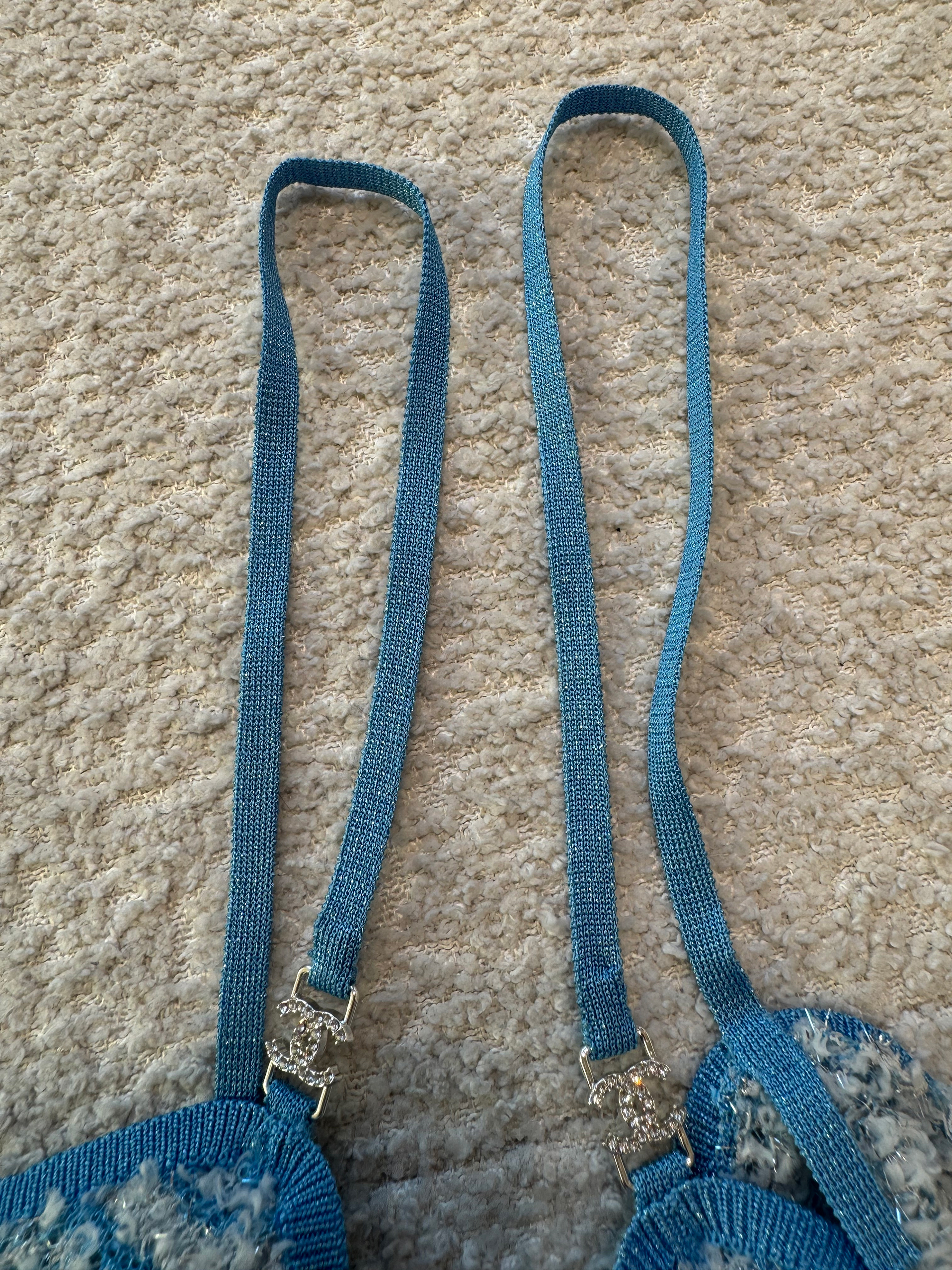 This Chanel accessory showcases the brand's exceptional craftsmanship and attention to detail. in a stunning black / blue / light blue colorway, this piece combines timeless luxury with modern style.