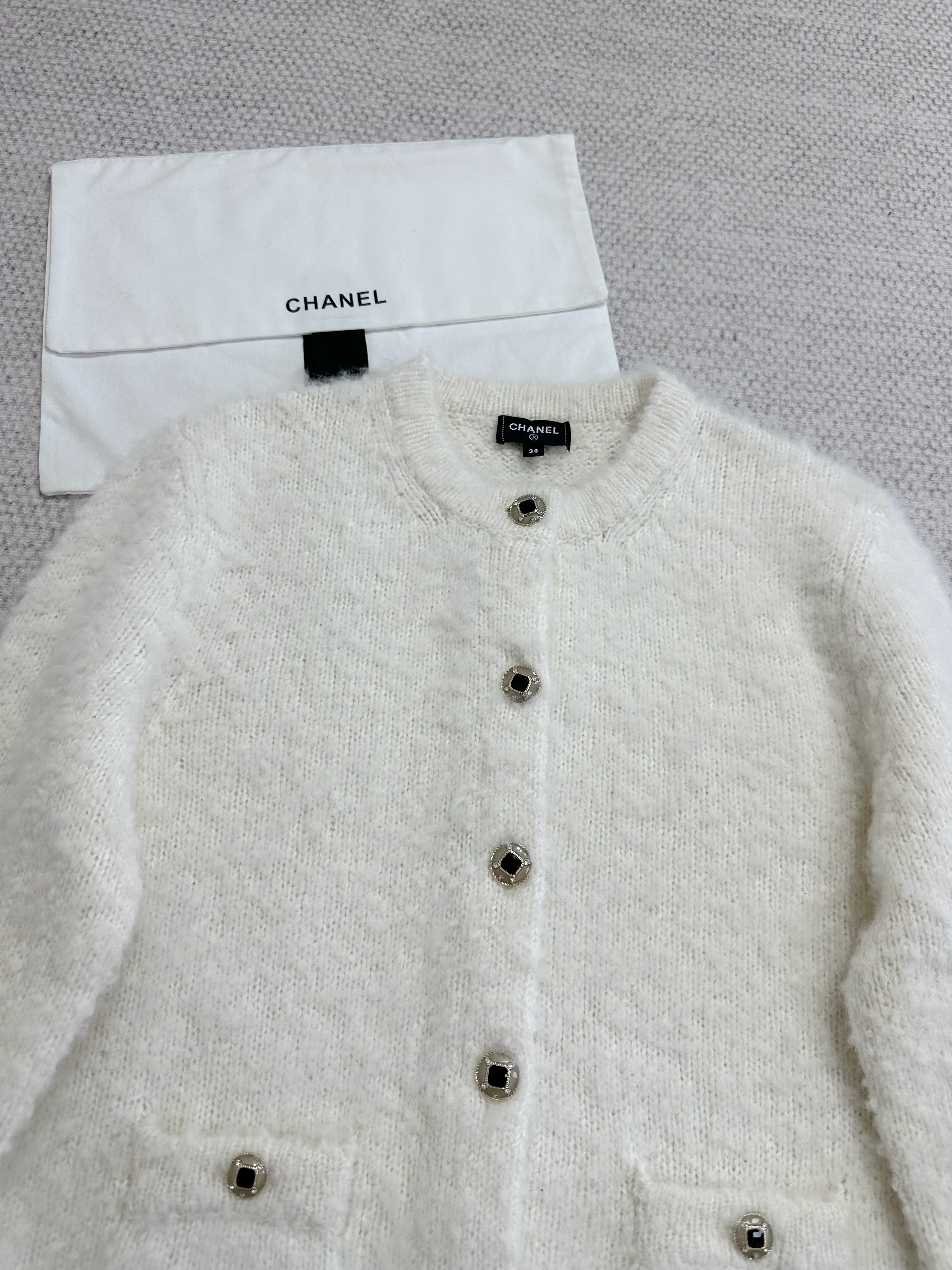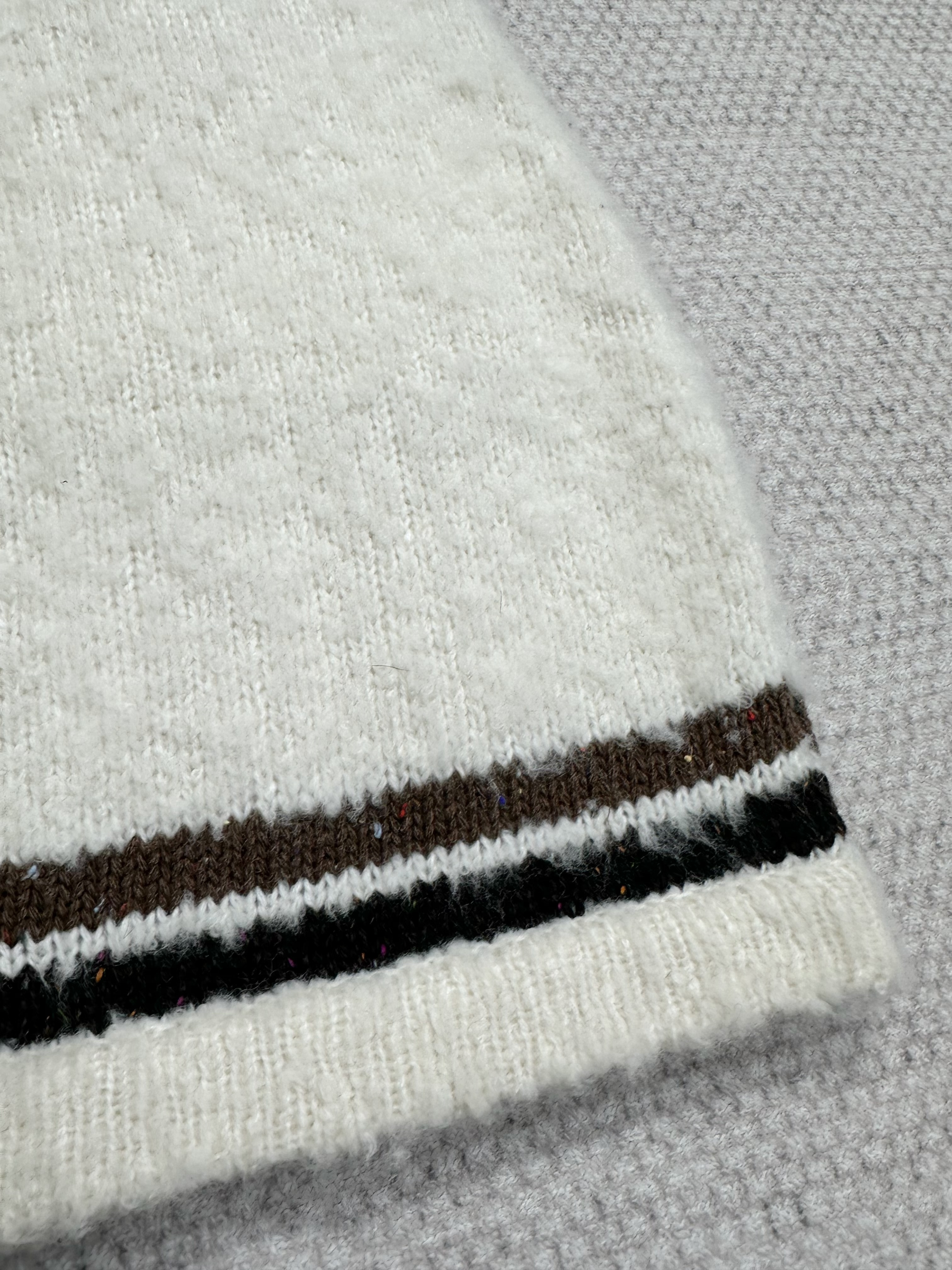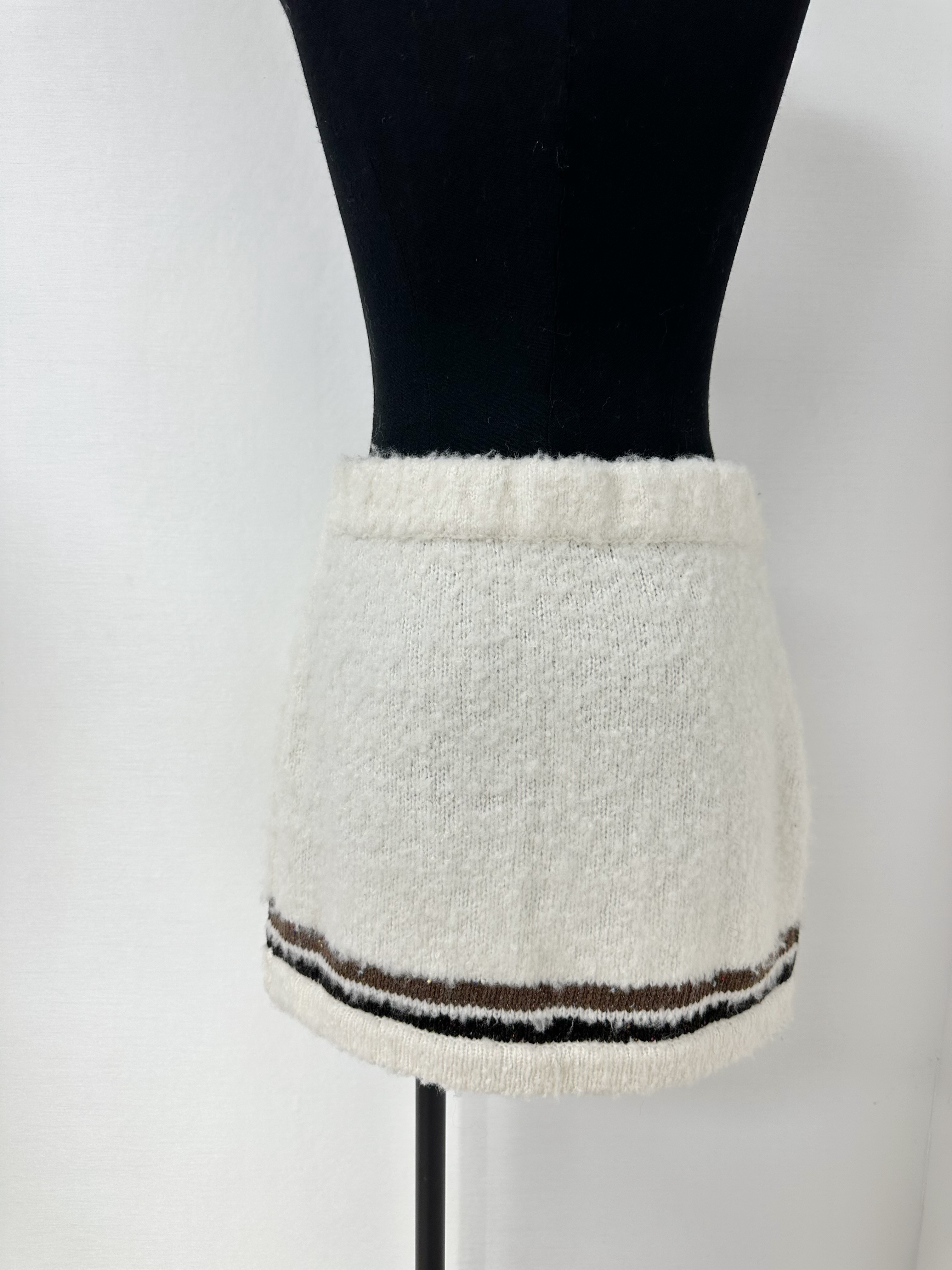 This Chanel clothing showcases the brand's exceptional craftsmanship and attention to detail. Crafted from premium cashmere, in a stunning white / brown colorway, this piece combines timeless luxury with modern style.