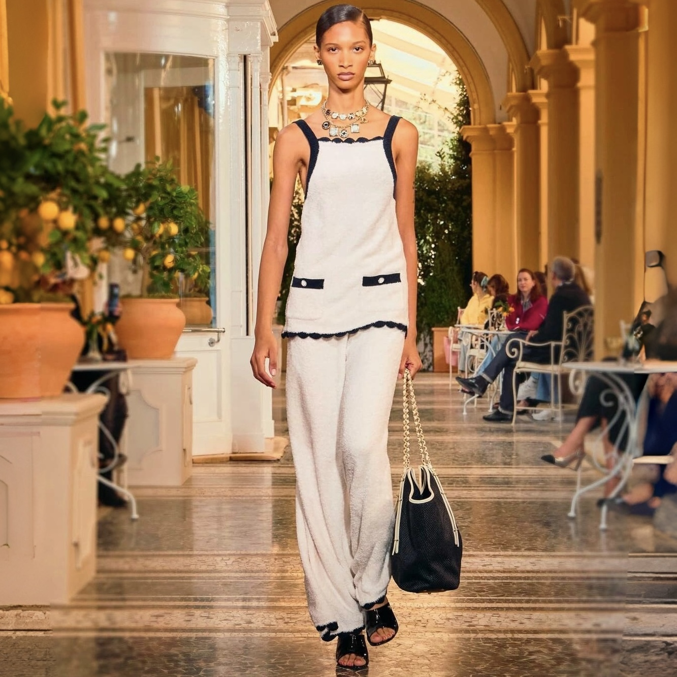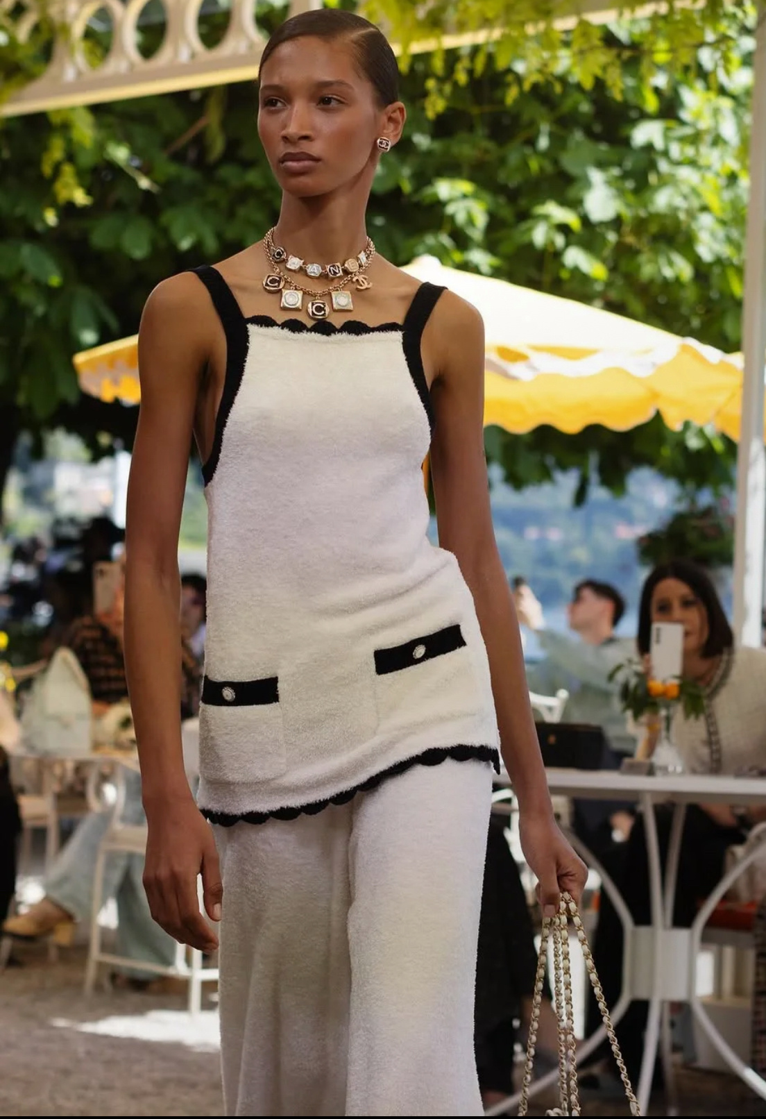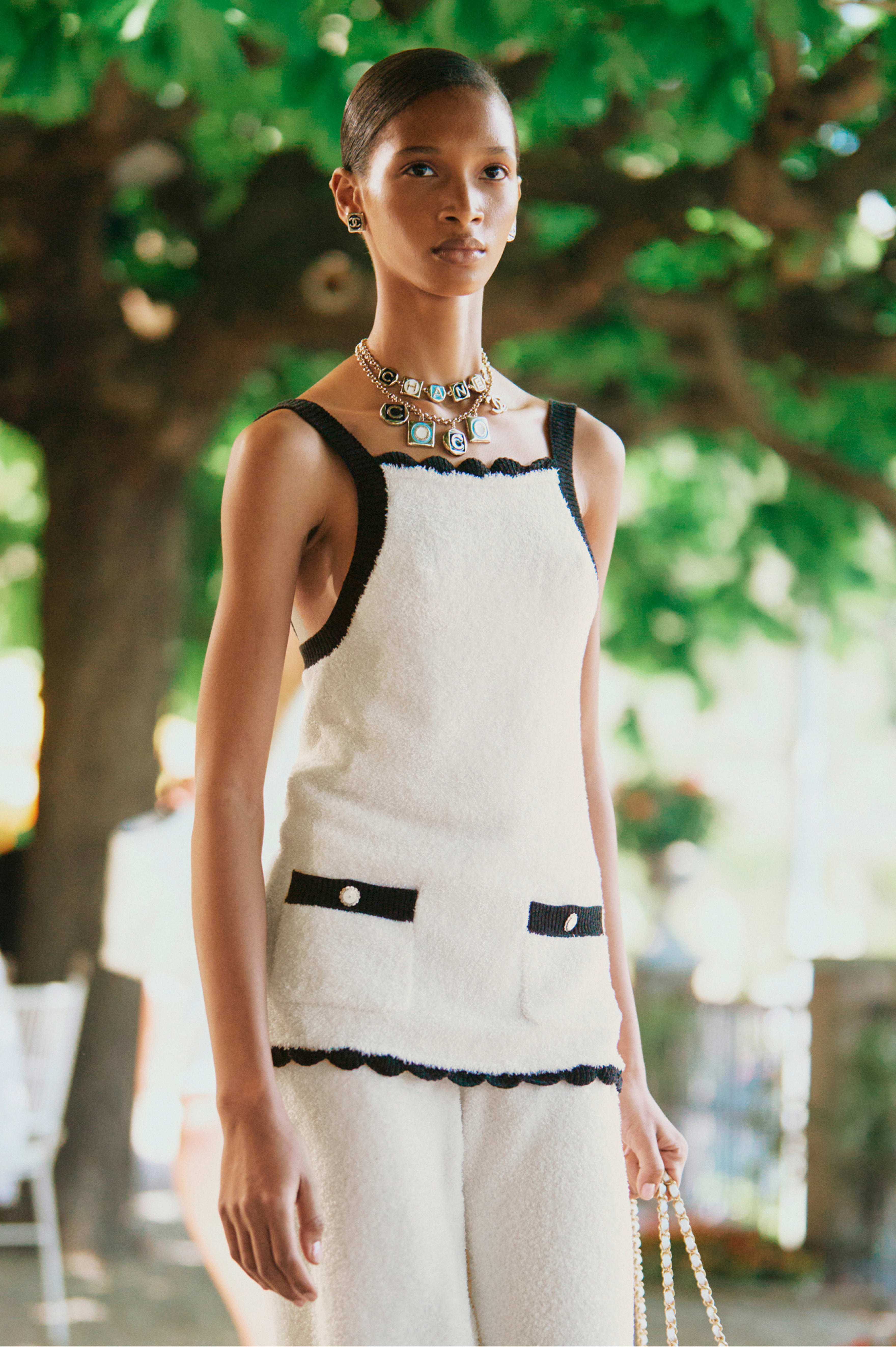 NIGO Chanel Top Silk White Navy Blue #nigo335494