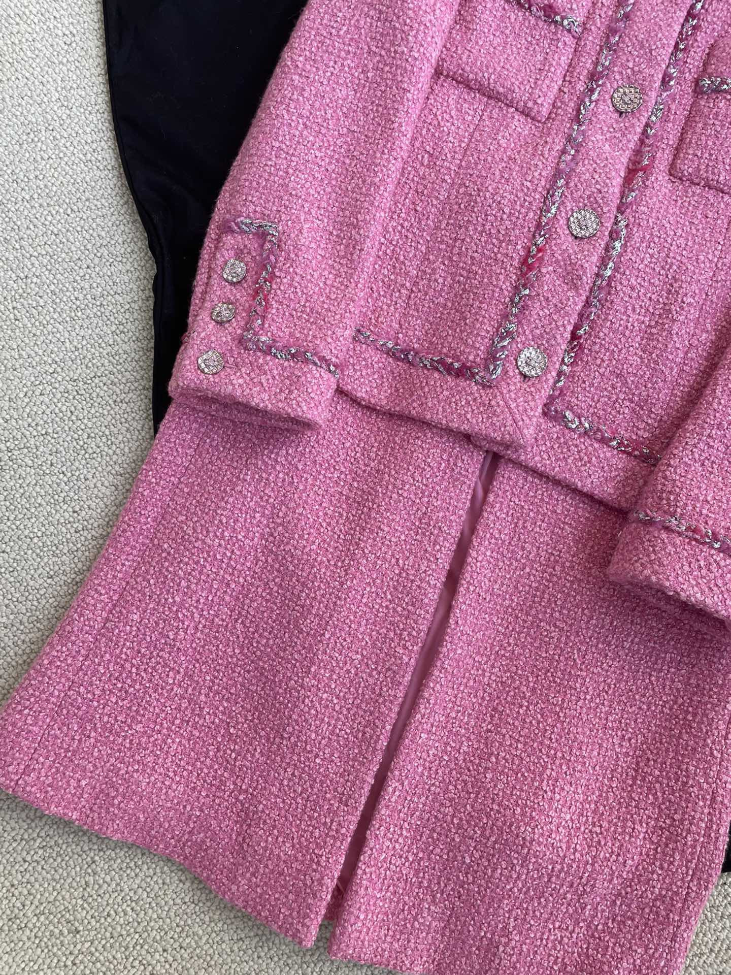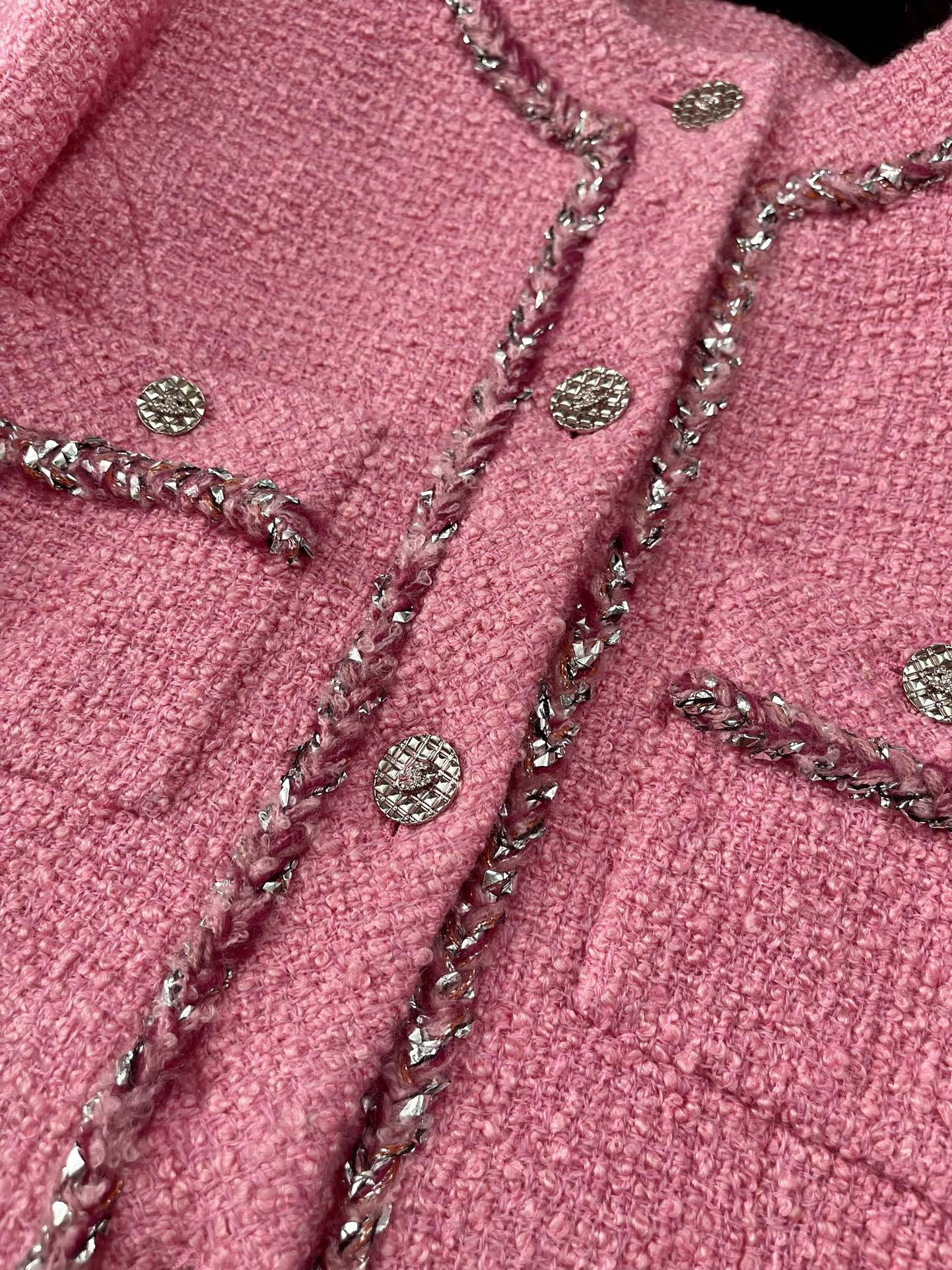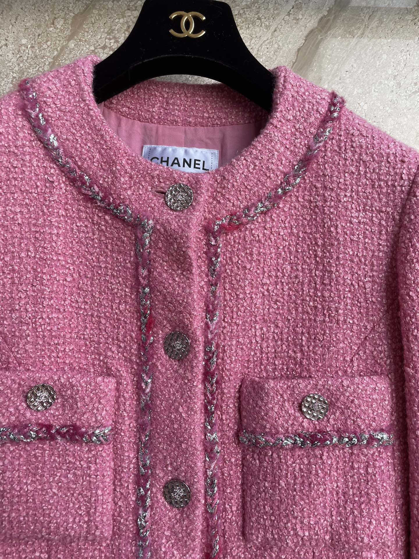 NIGO Chanel Tweed Pink Silver Silk Long Coat #nigo335876