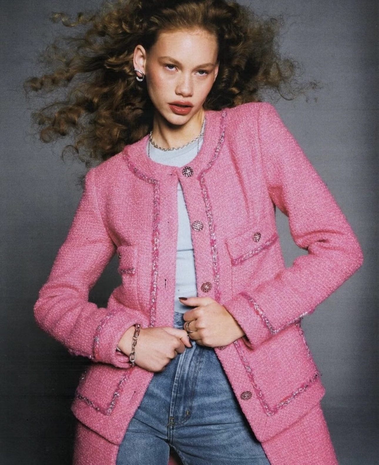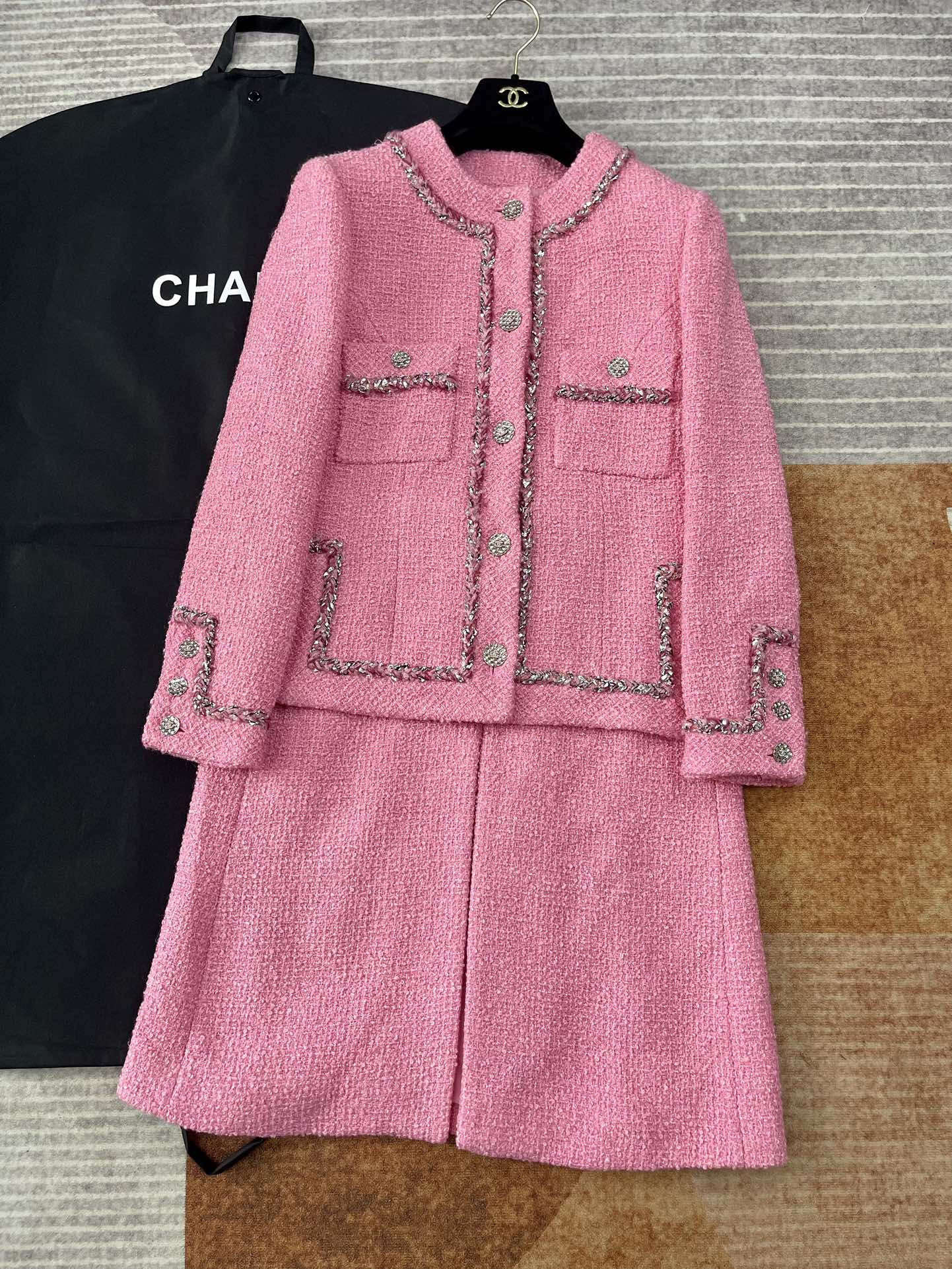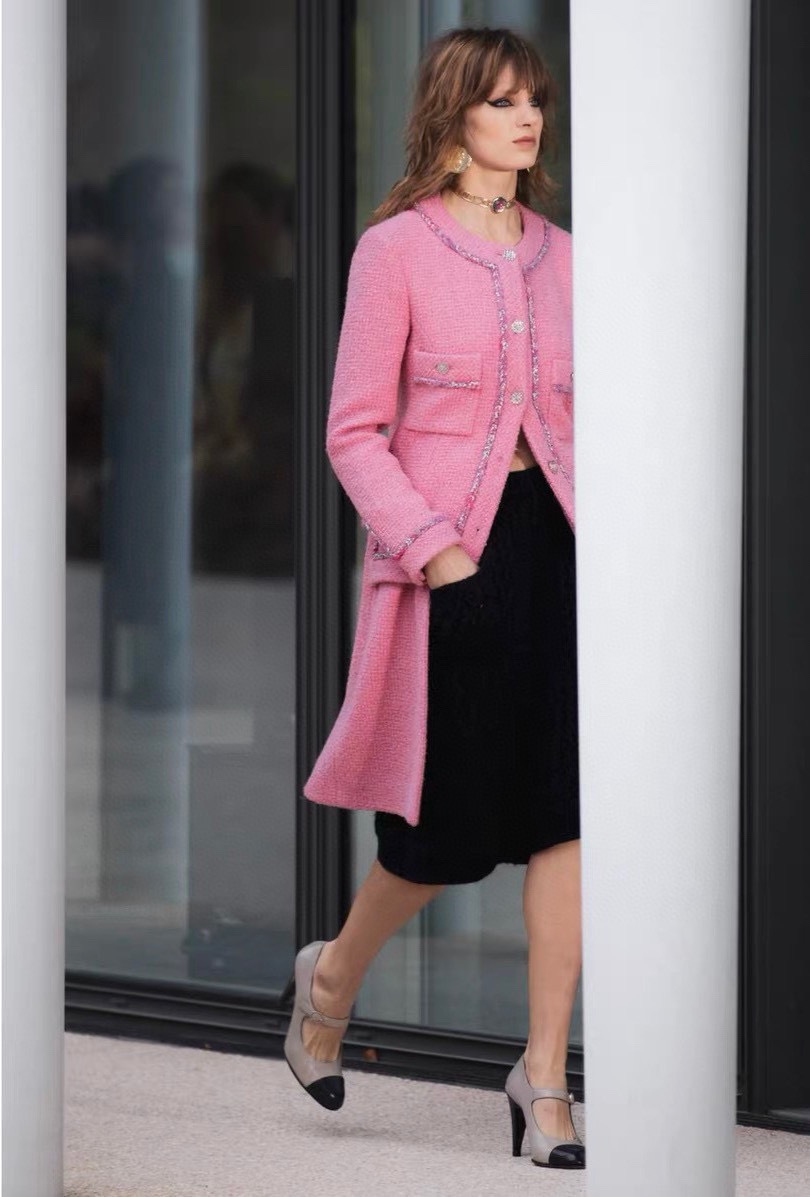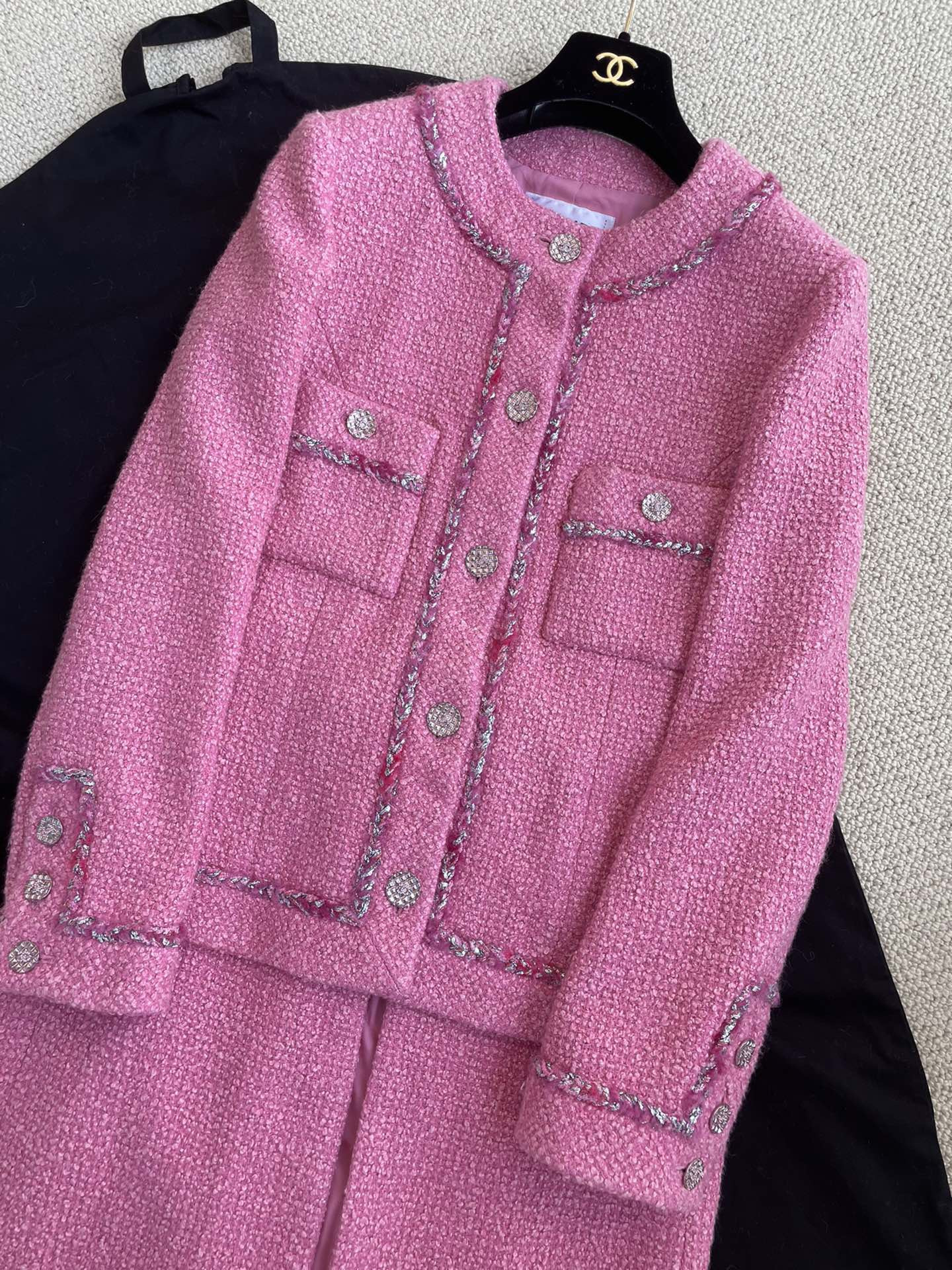 NIGO Chanel Tweed Pink Silver Silk Long Coat #nigo335876