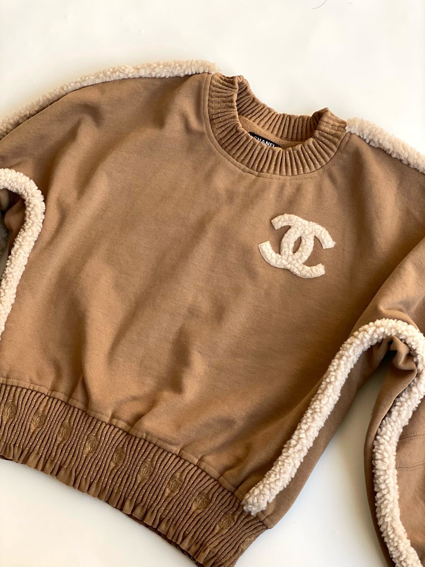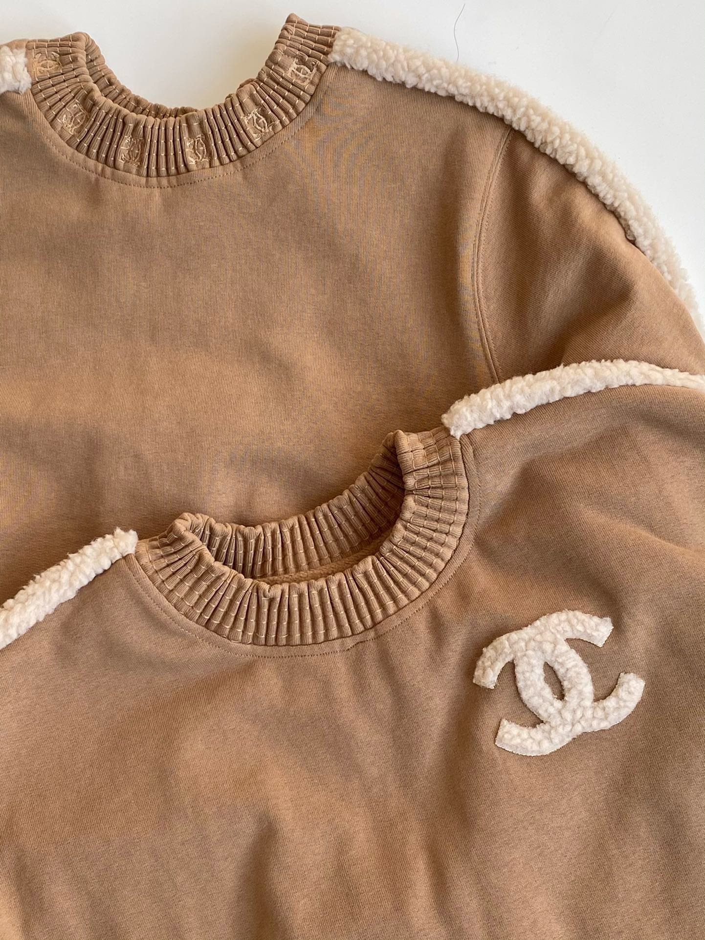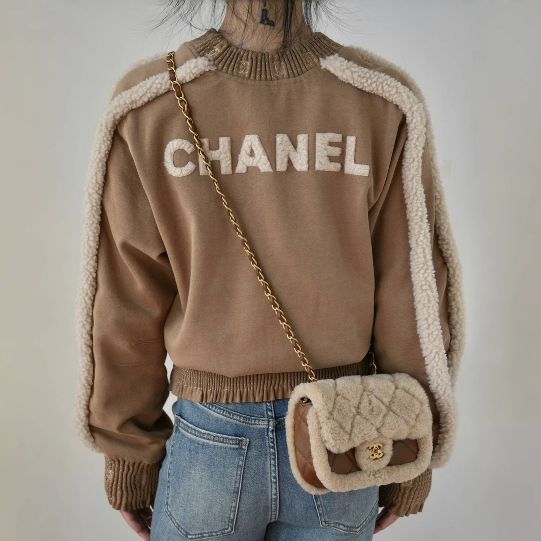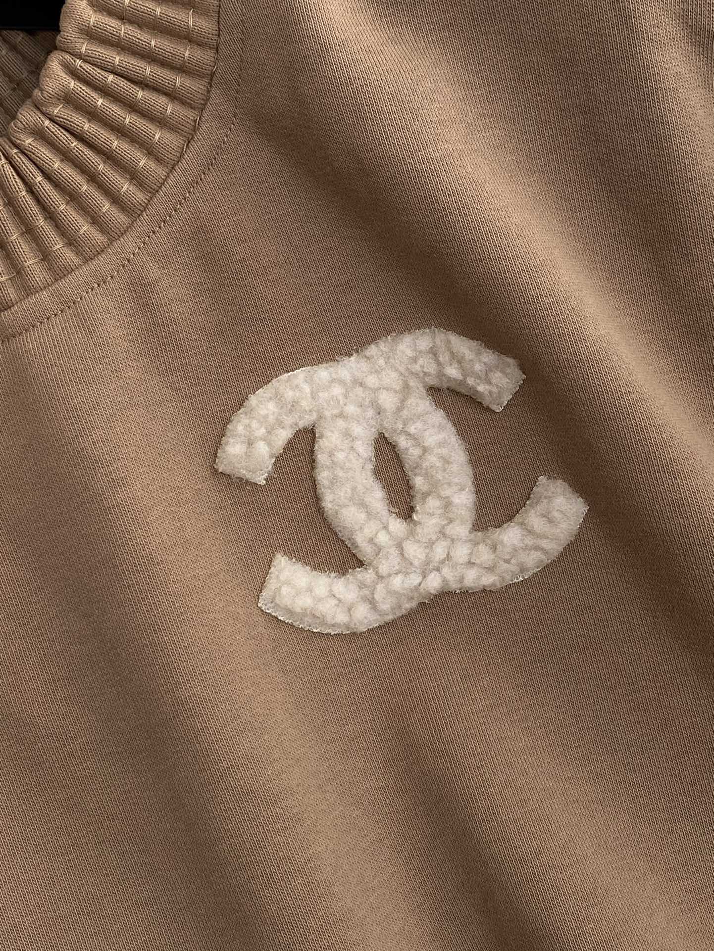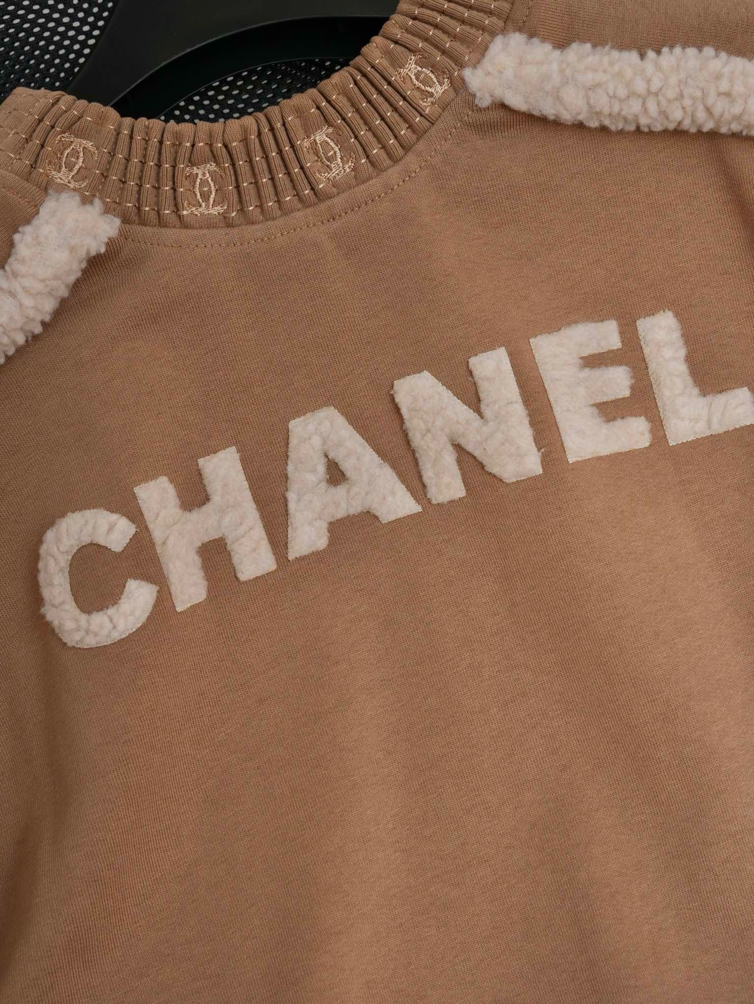 NIGO Chanel Women's Autumn and Winter Solid Color Lamb's Wool Patch Cotton Twill Round Neck Long Sleeve Pullover Sweatshirt #nigo73963
