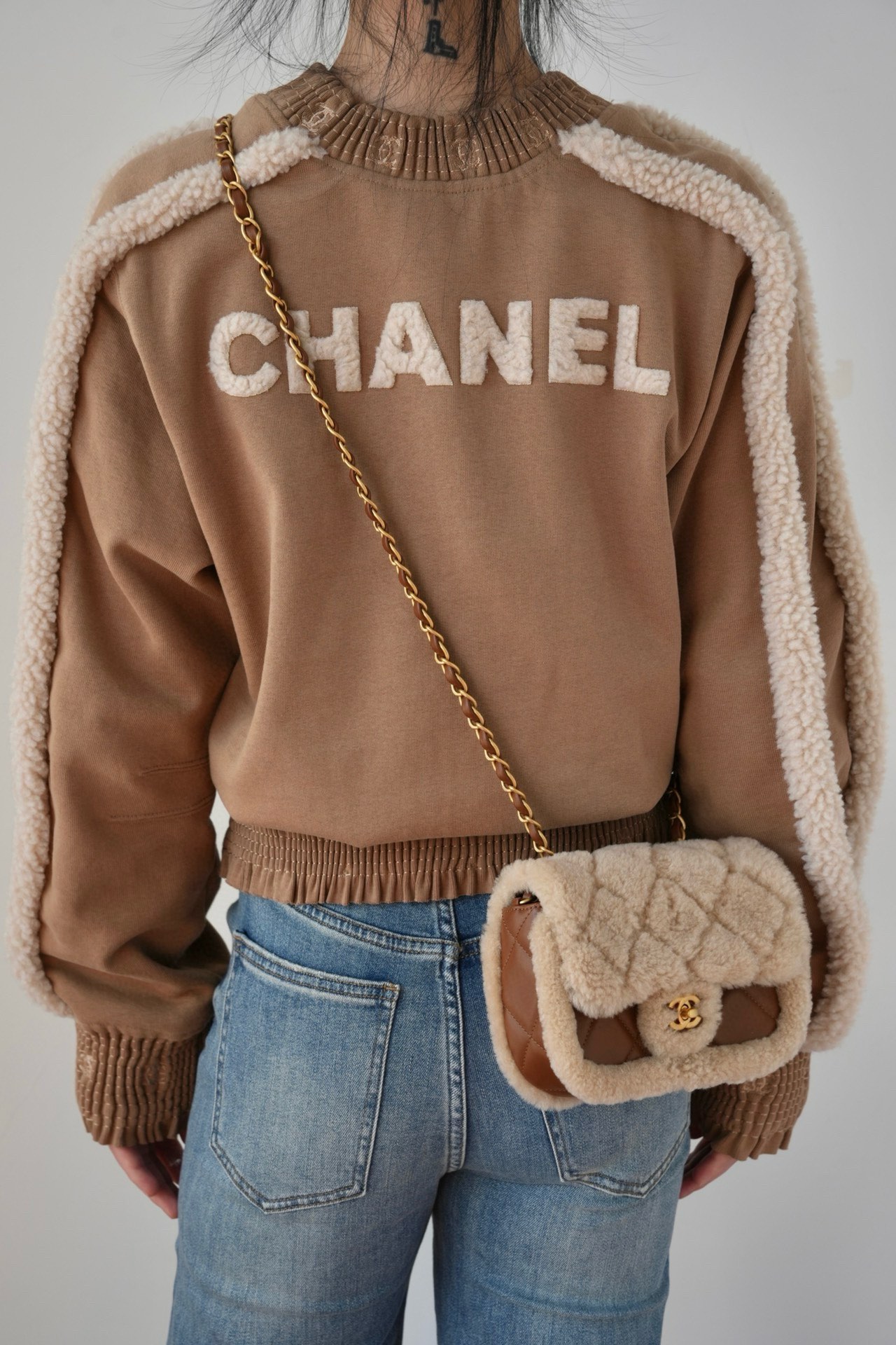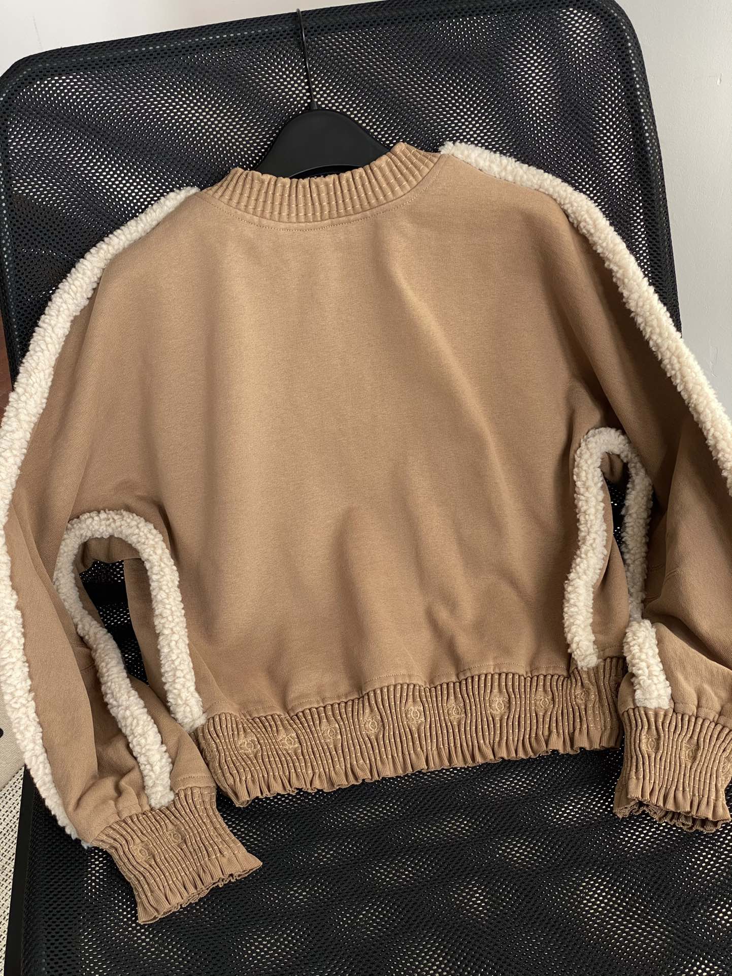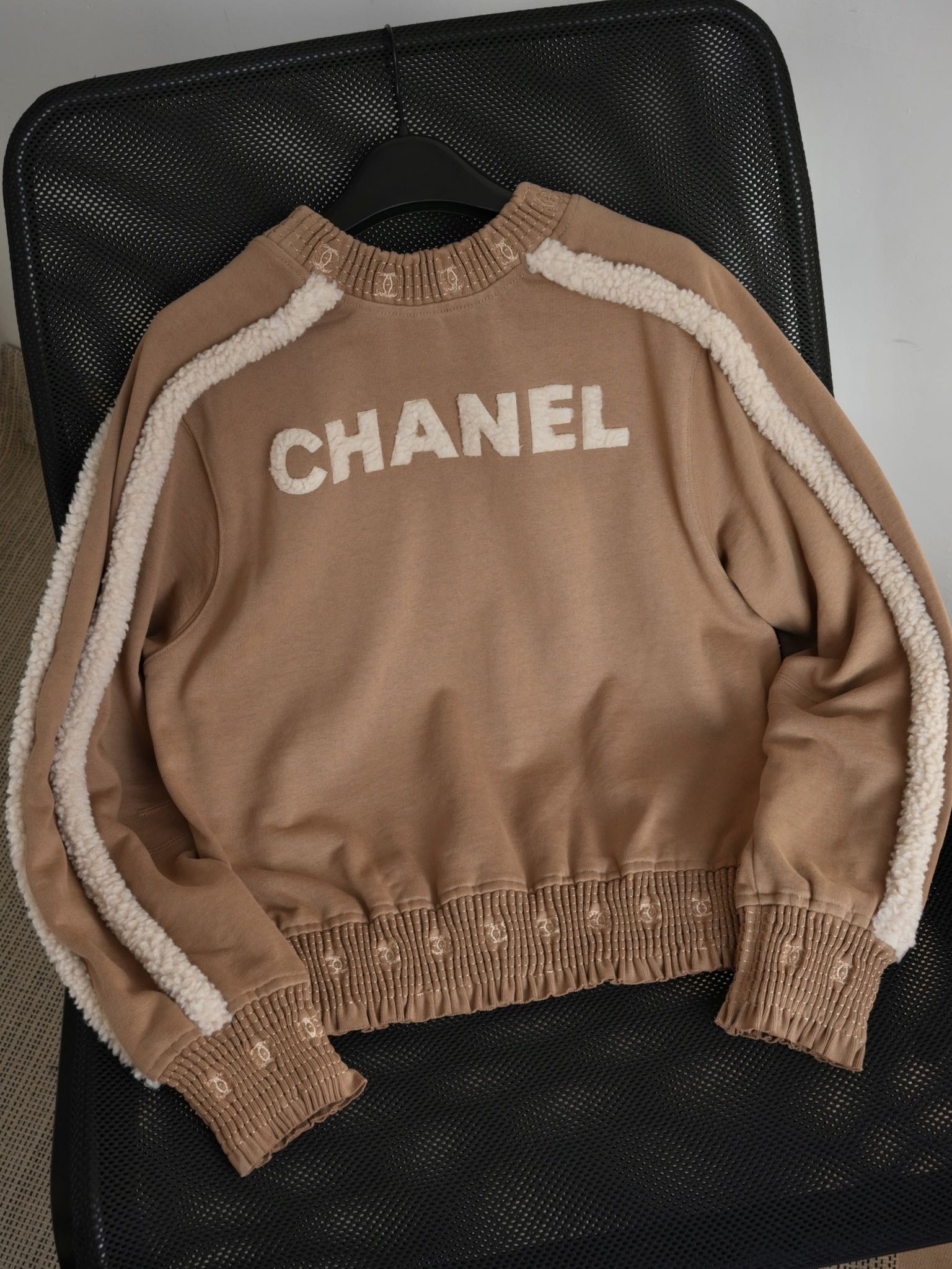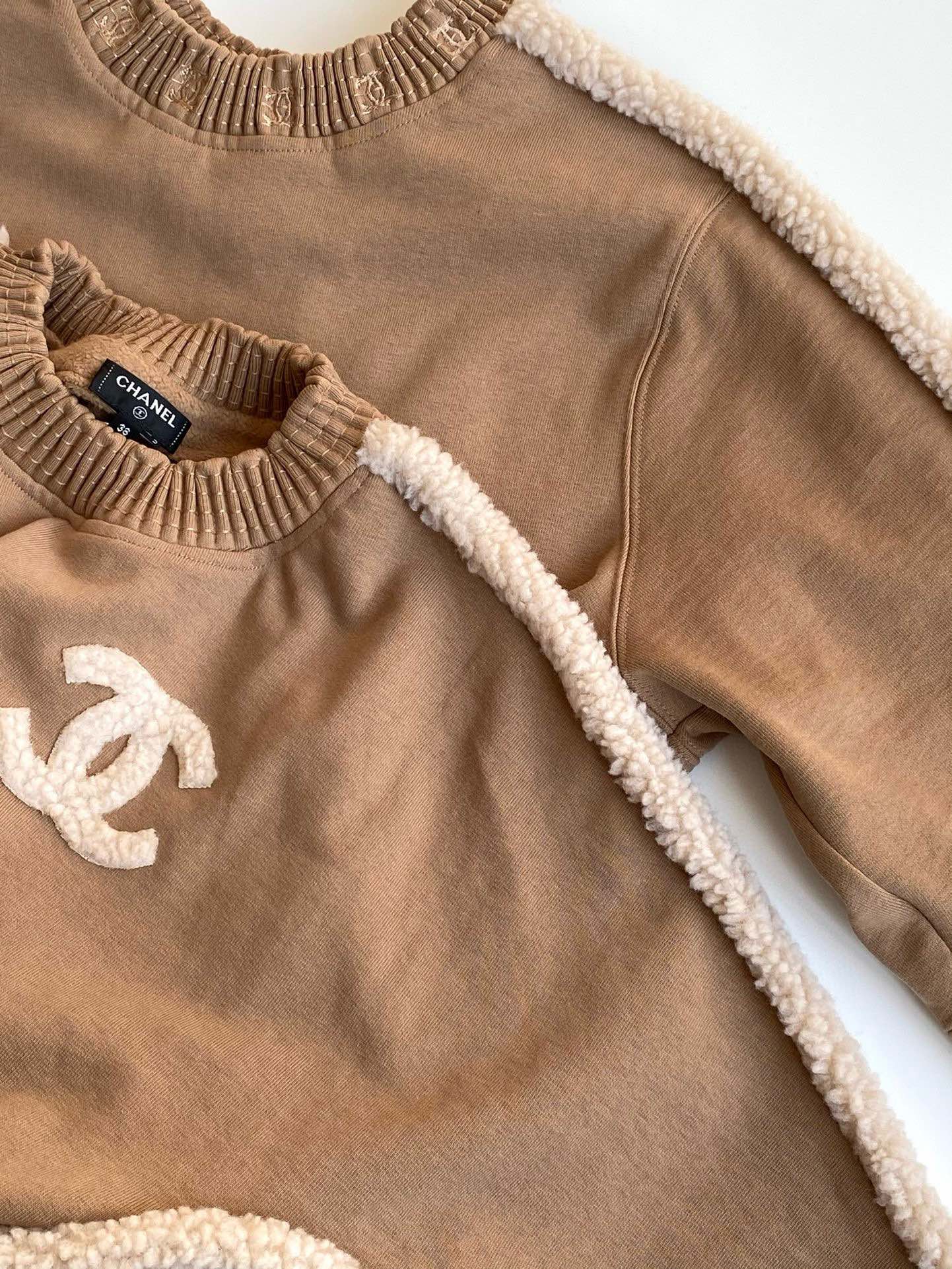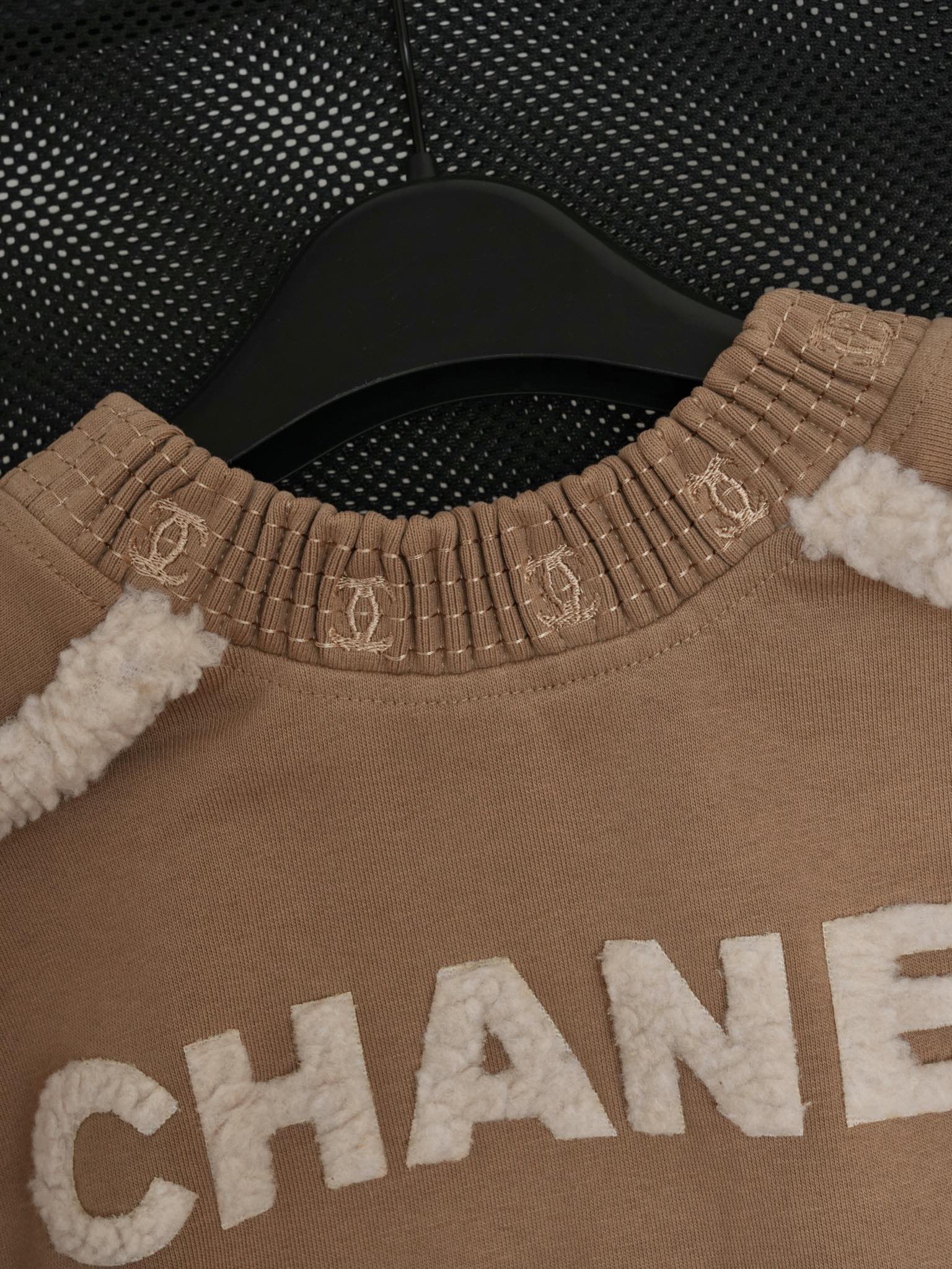 NIGO Chanel Women's Autumn and Winter Solid Color Lamb's Wool Patch Cotton Twill Round Neck Long Sleeve Pullover Sweatshirt #nigo73963